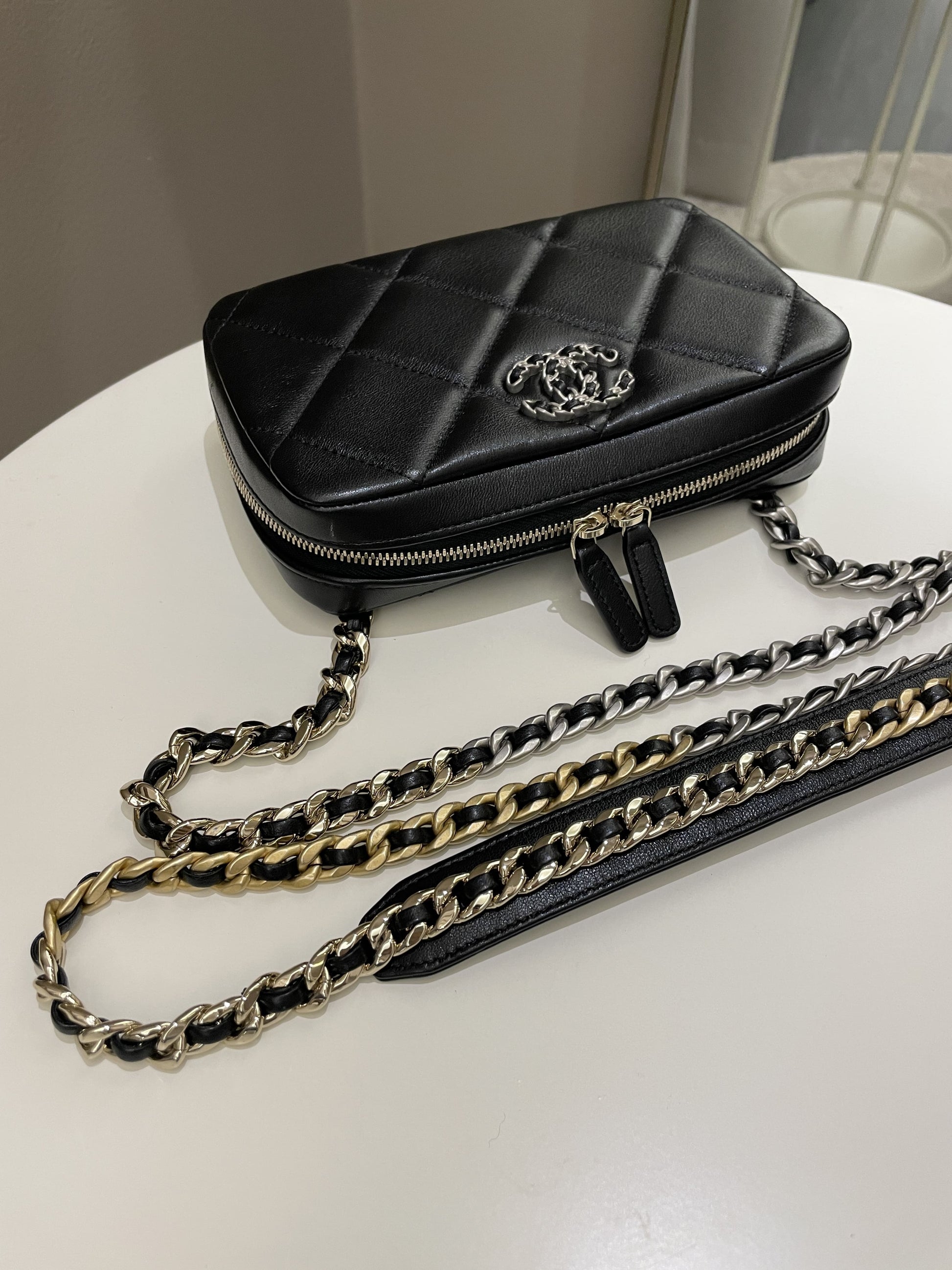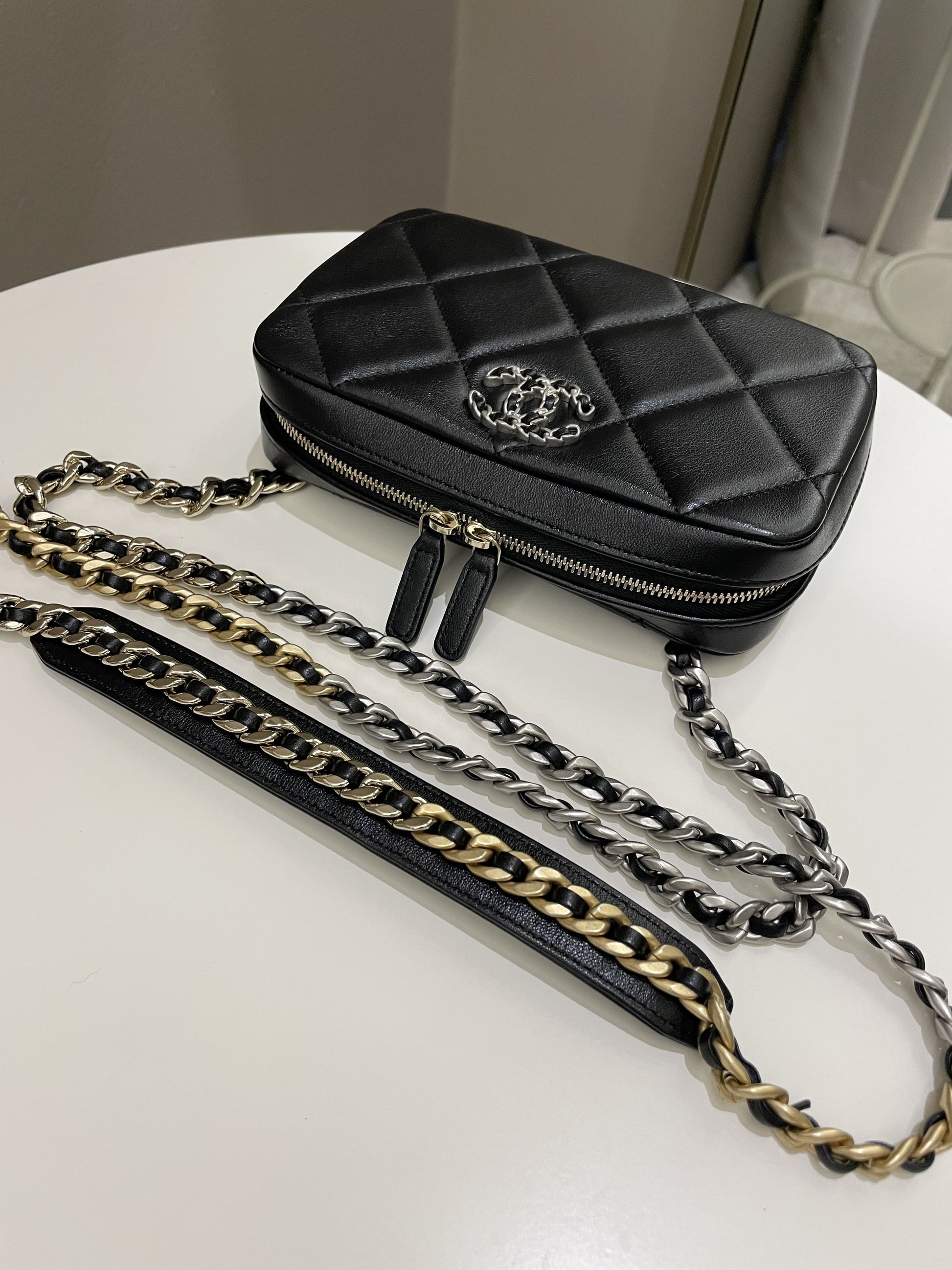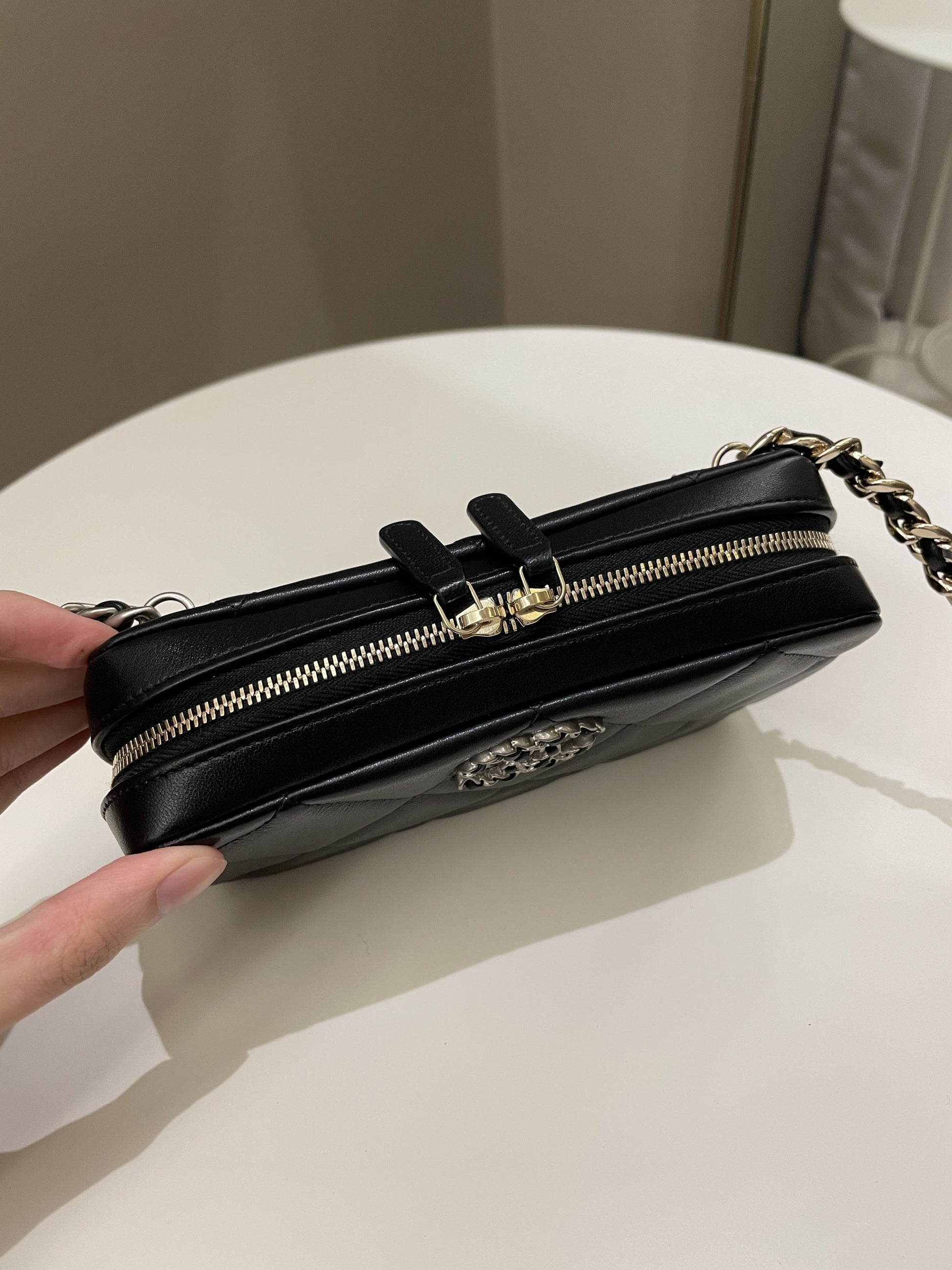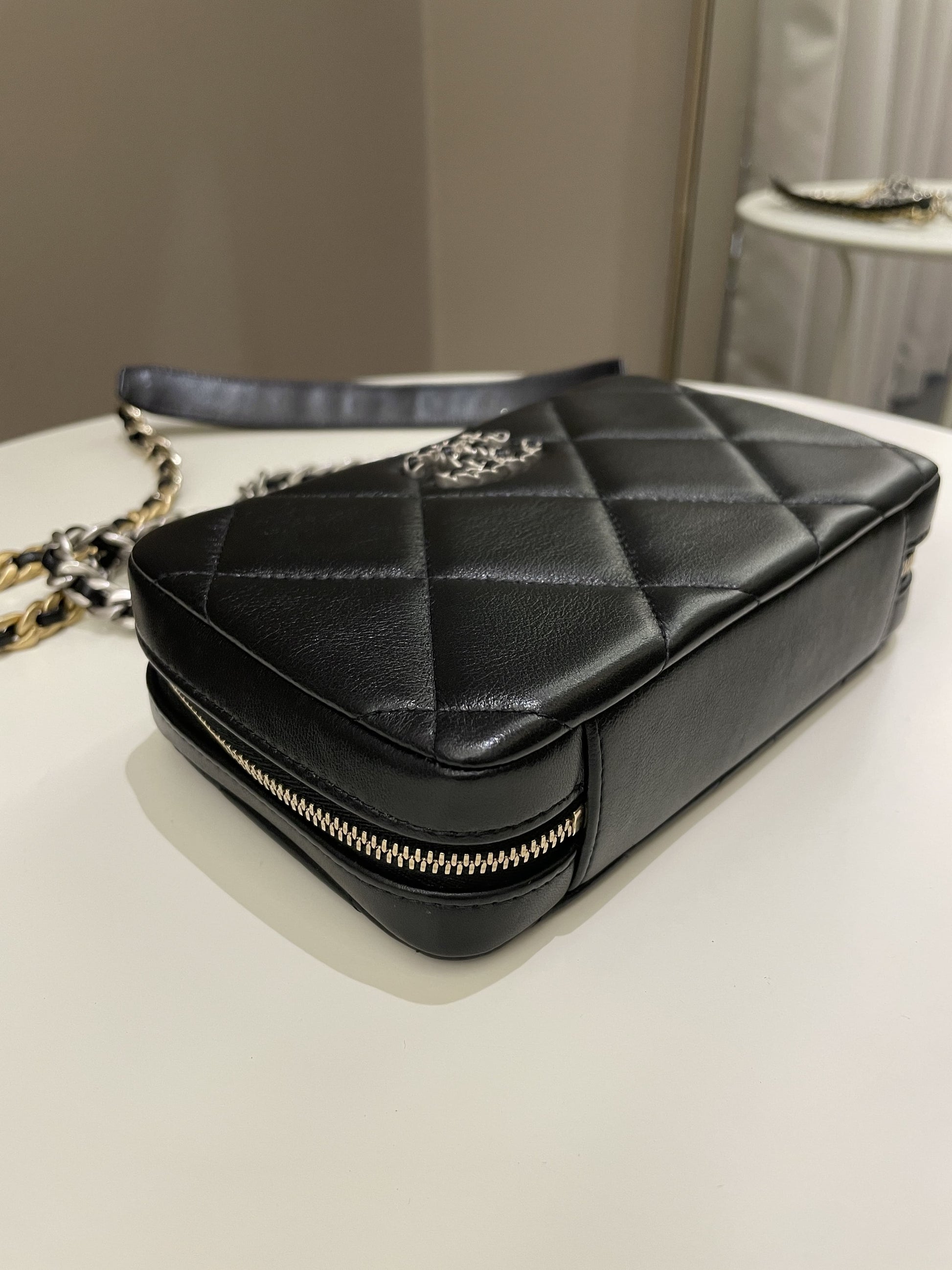 Chanel 19 Quilted Camera Sling Bag Black Lambskin