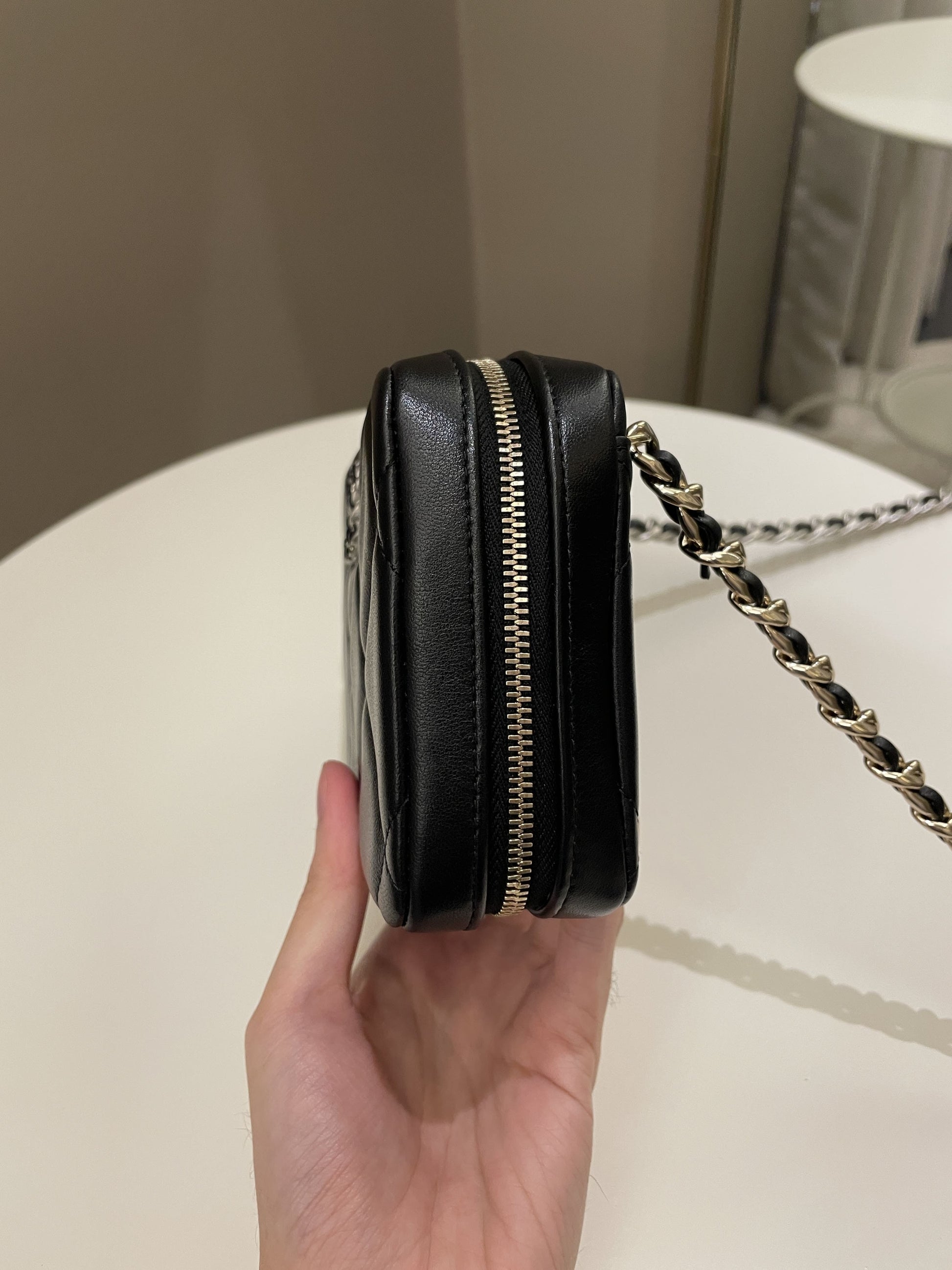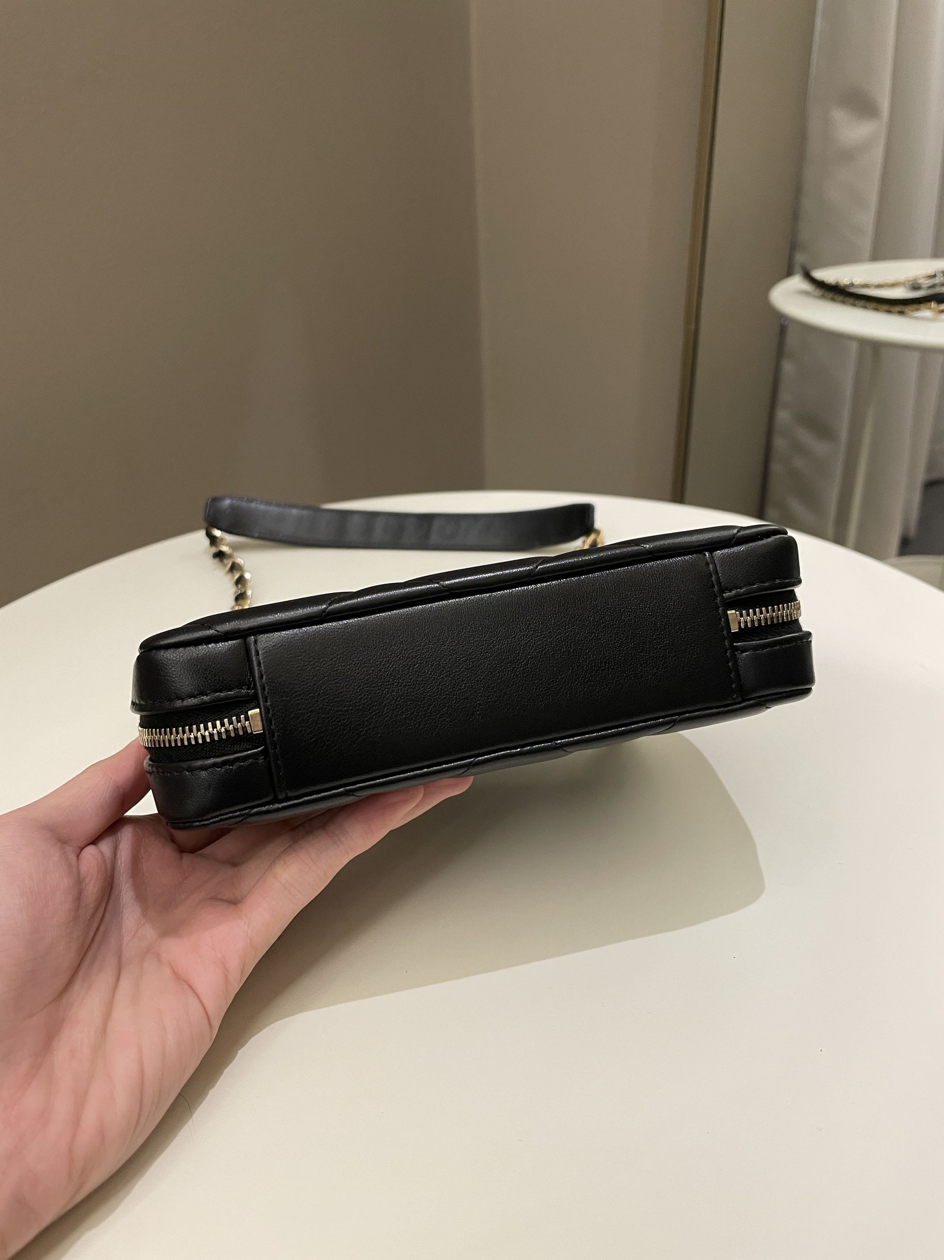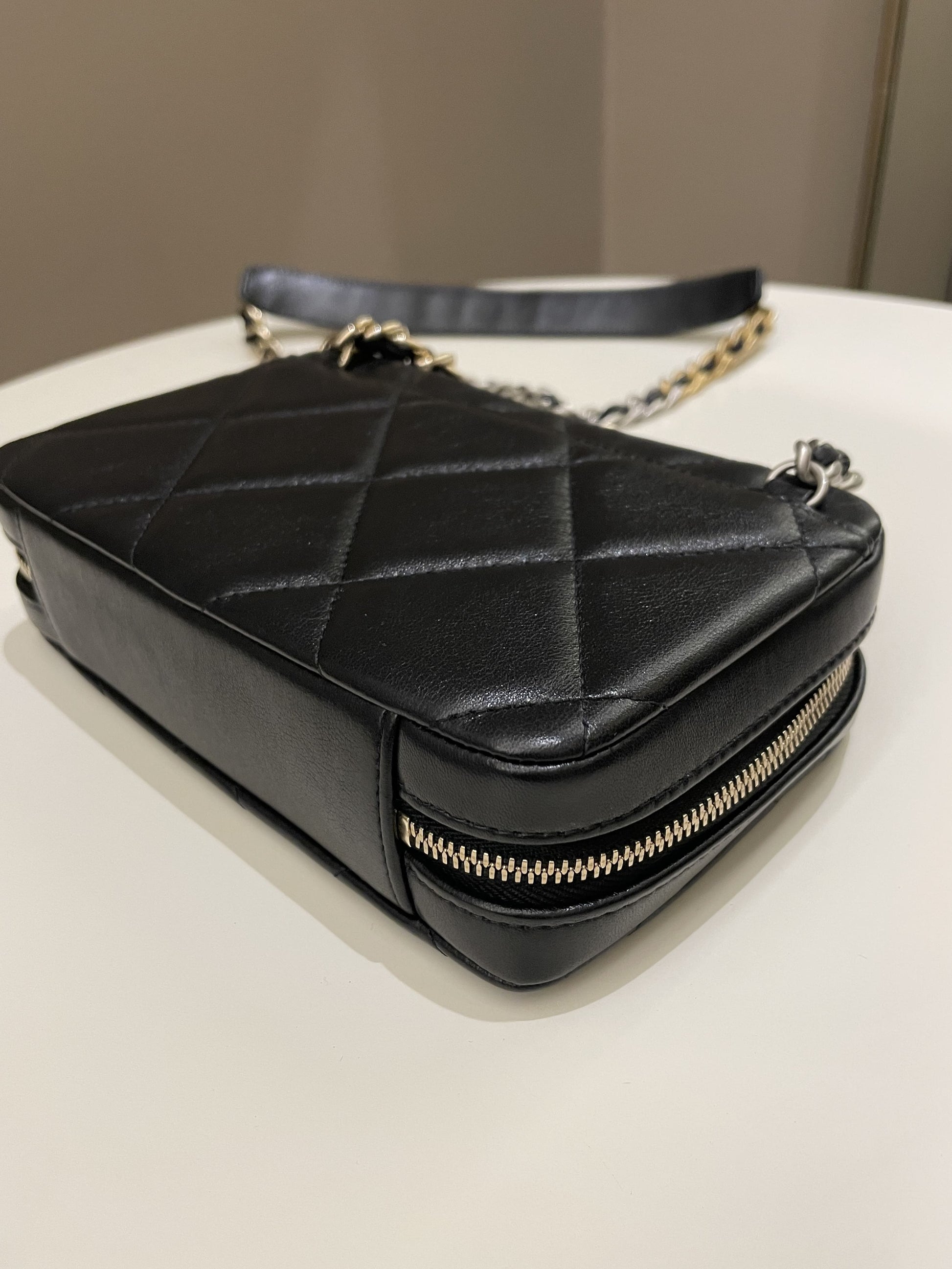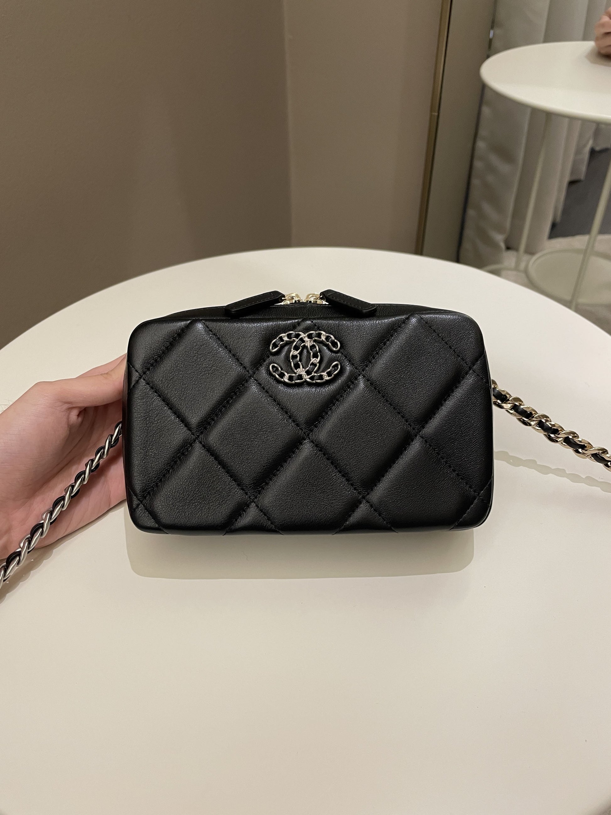 Chanel 19 Quilted Camera Sling Bag Black Lambskin