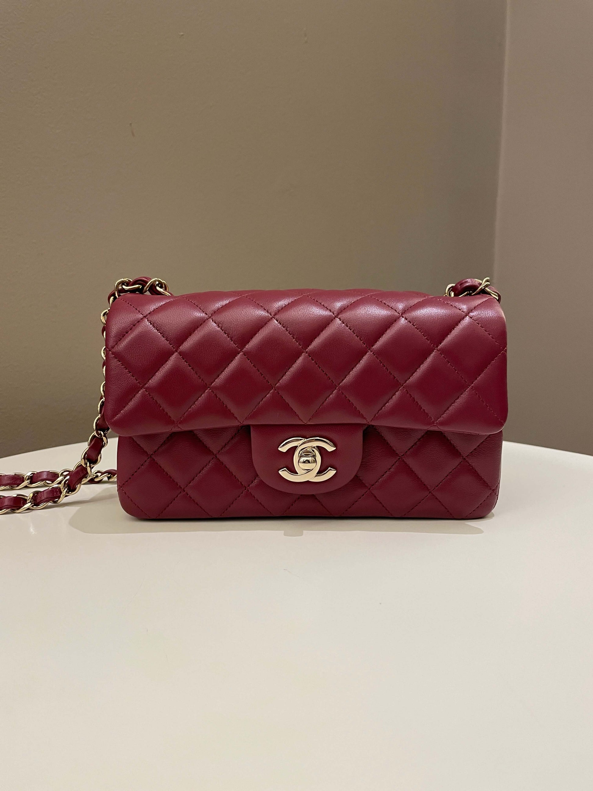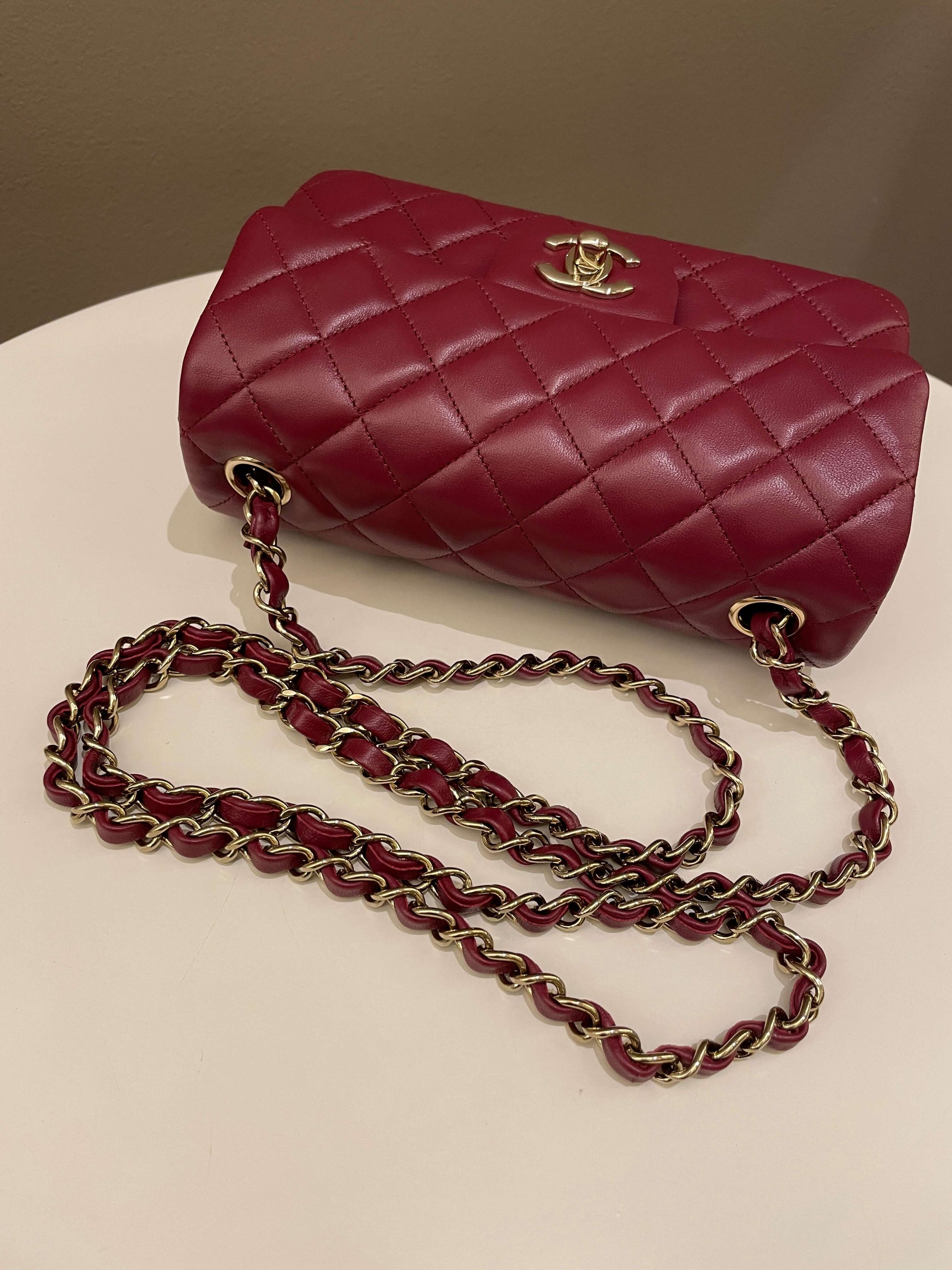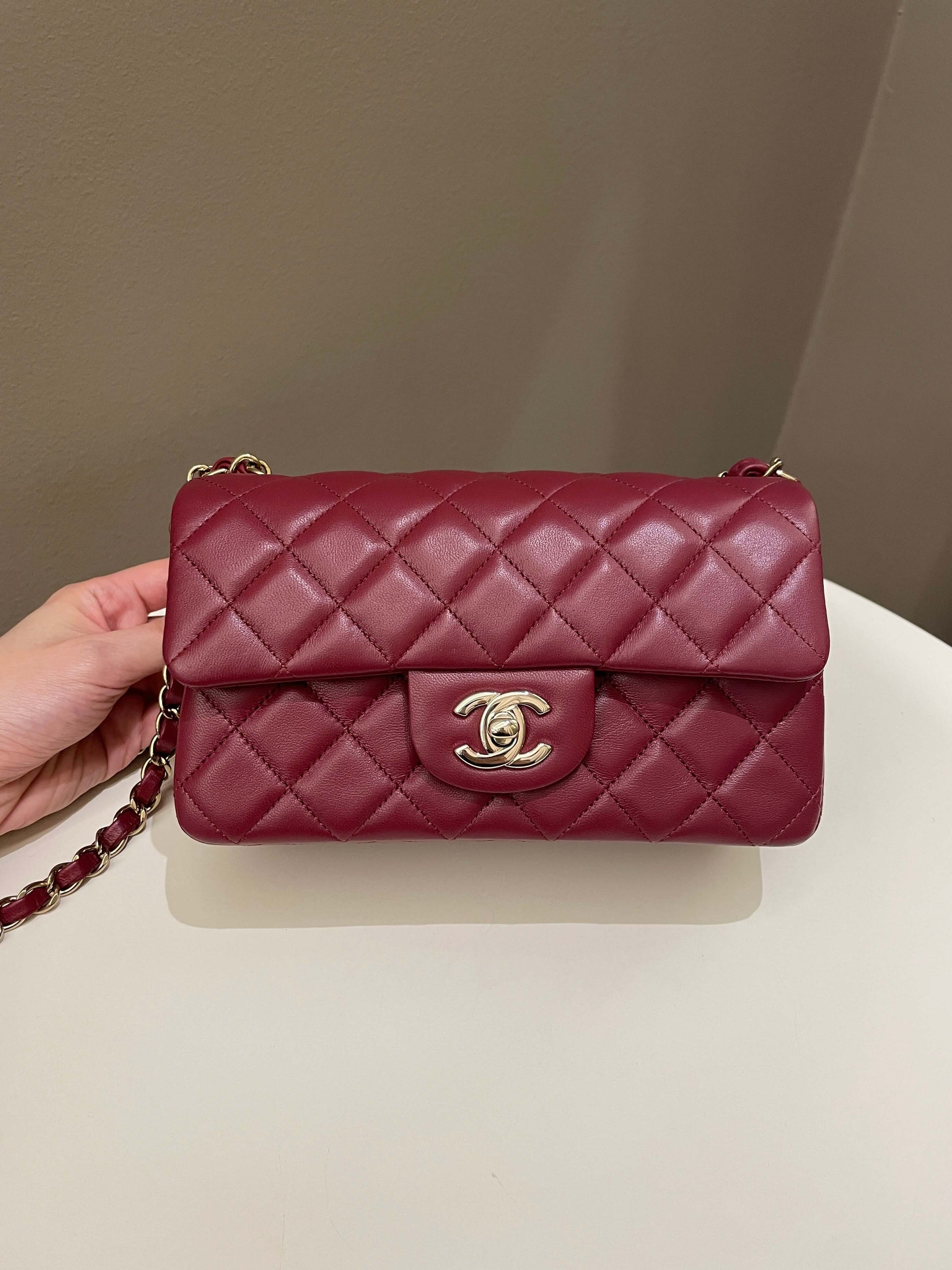 Chanel 22A Quilted Mini Rectangular Burgundy Lambskin