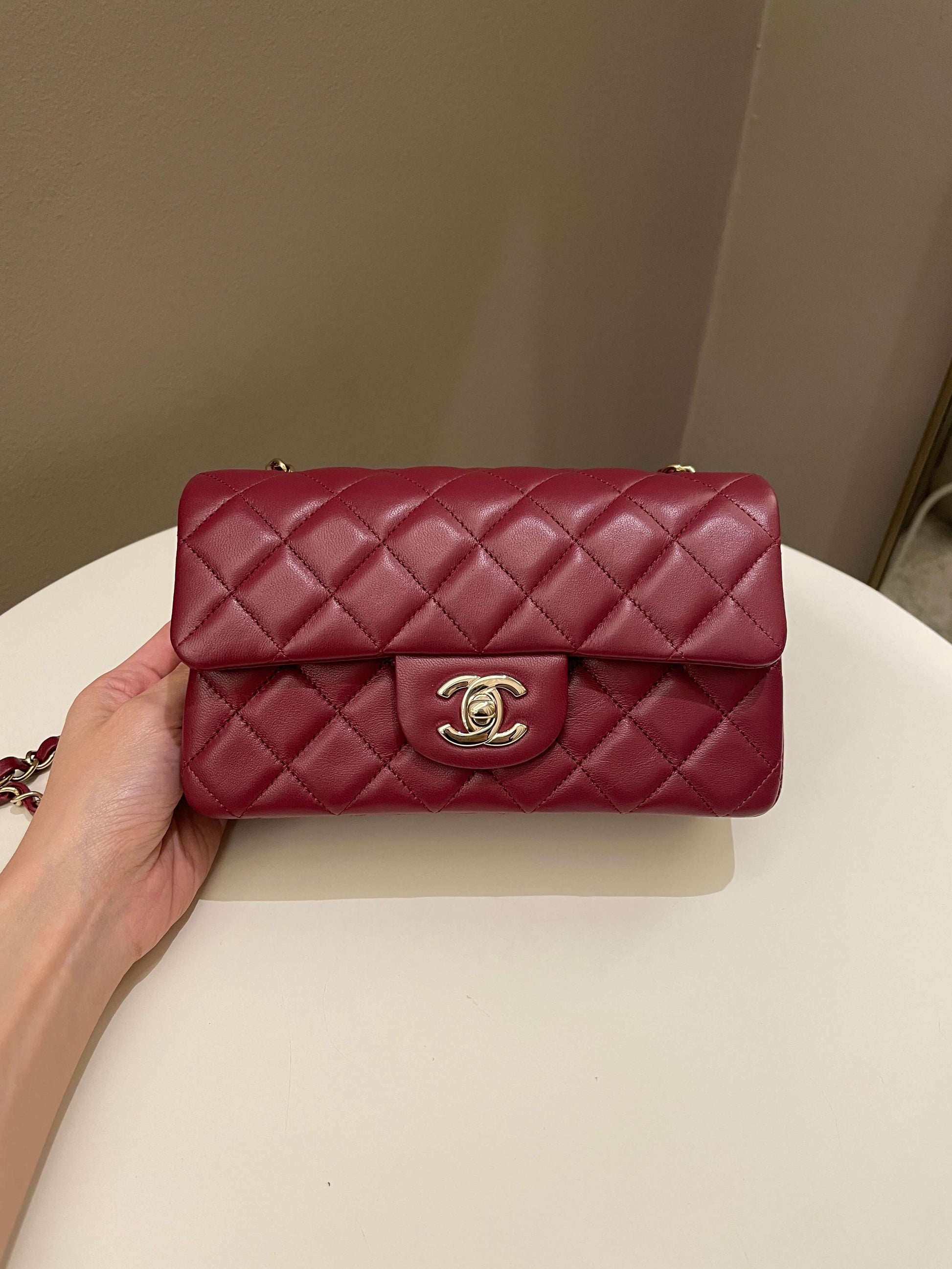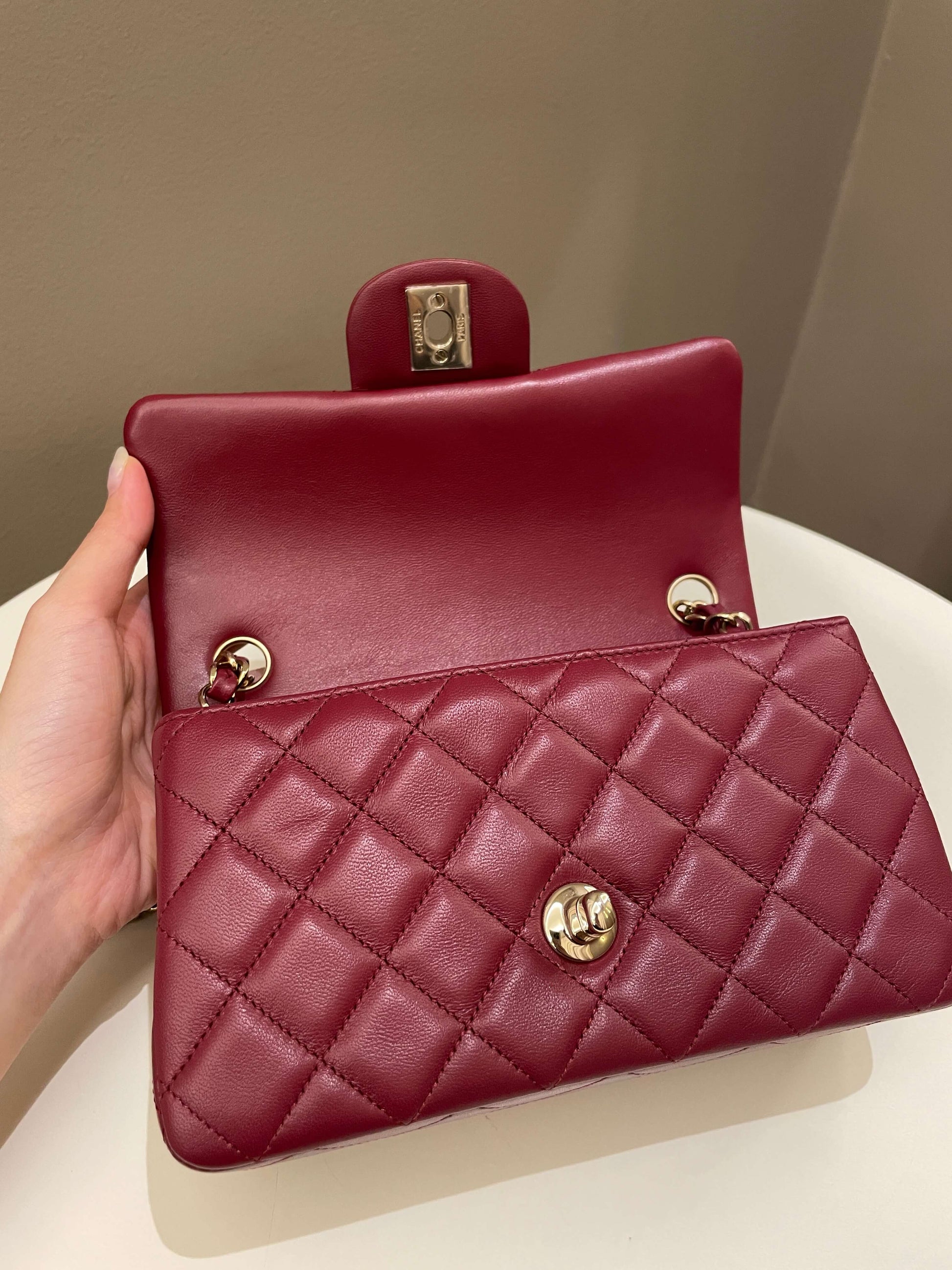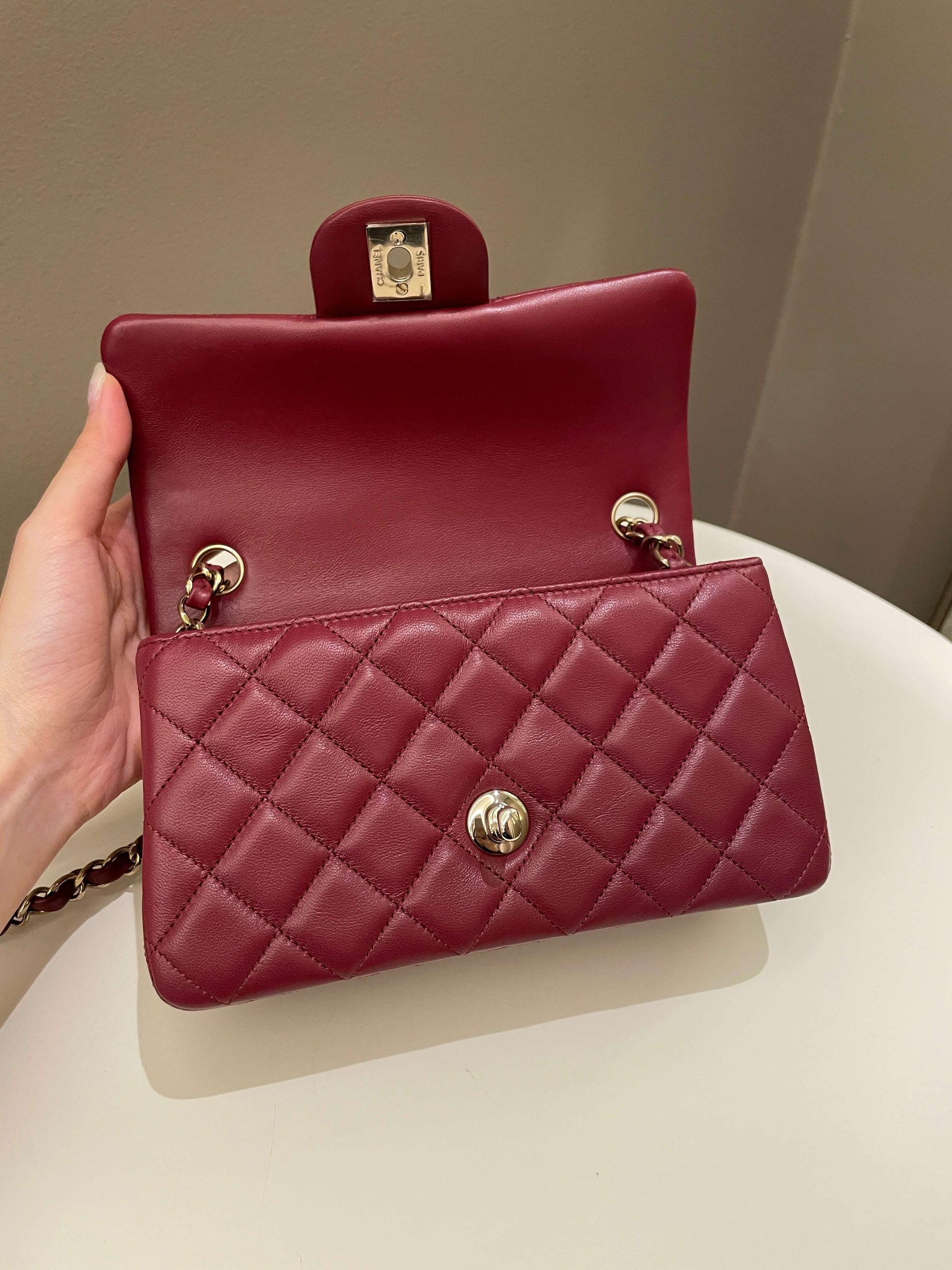 Chanel 22A Quilted Mini Rectangular Burgundy Lambskin