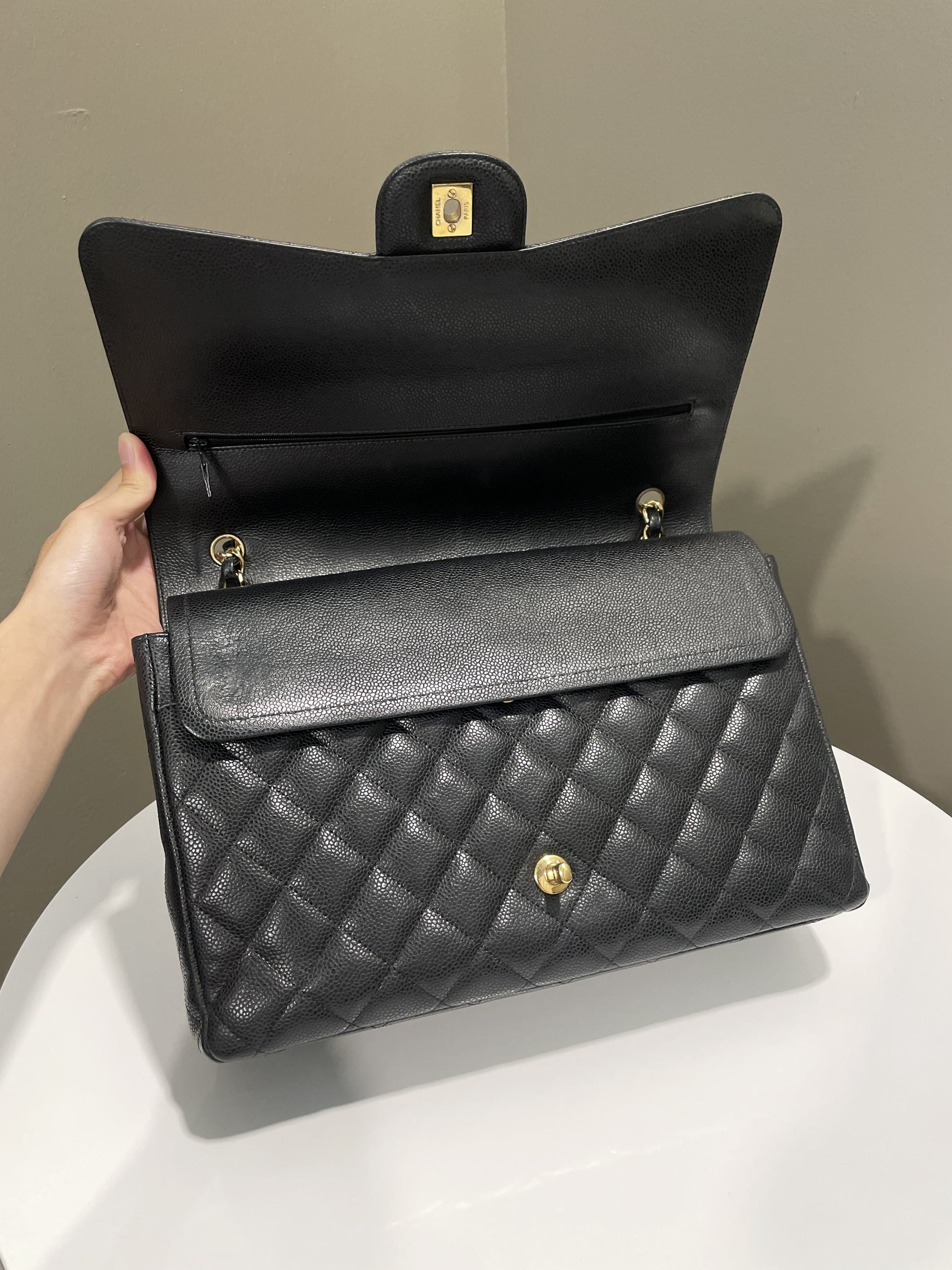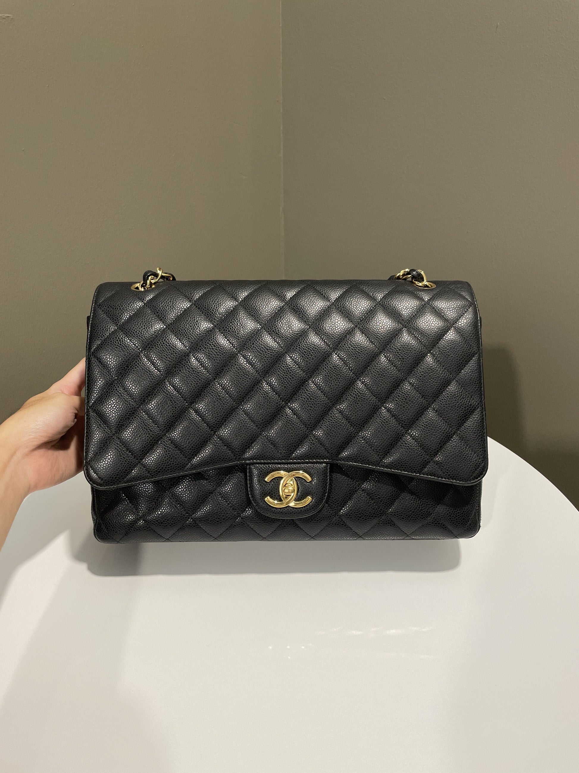 Chanel Classic Quilted Maxi Double Flap Black Caviar