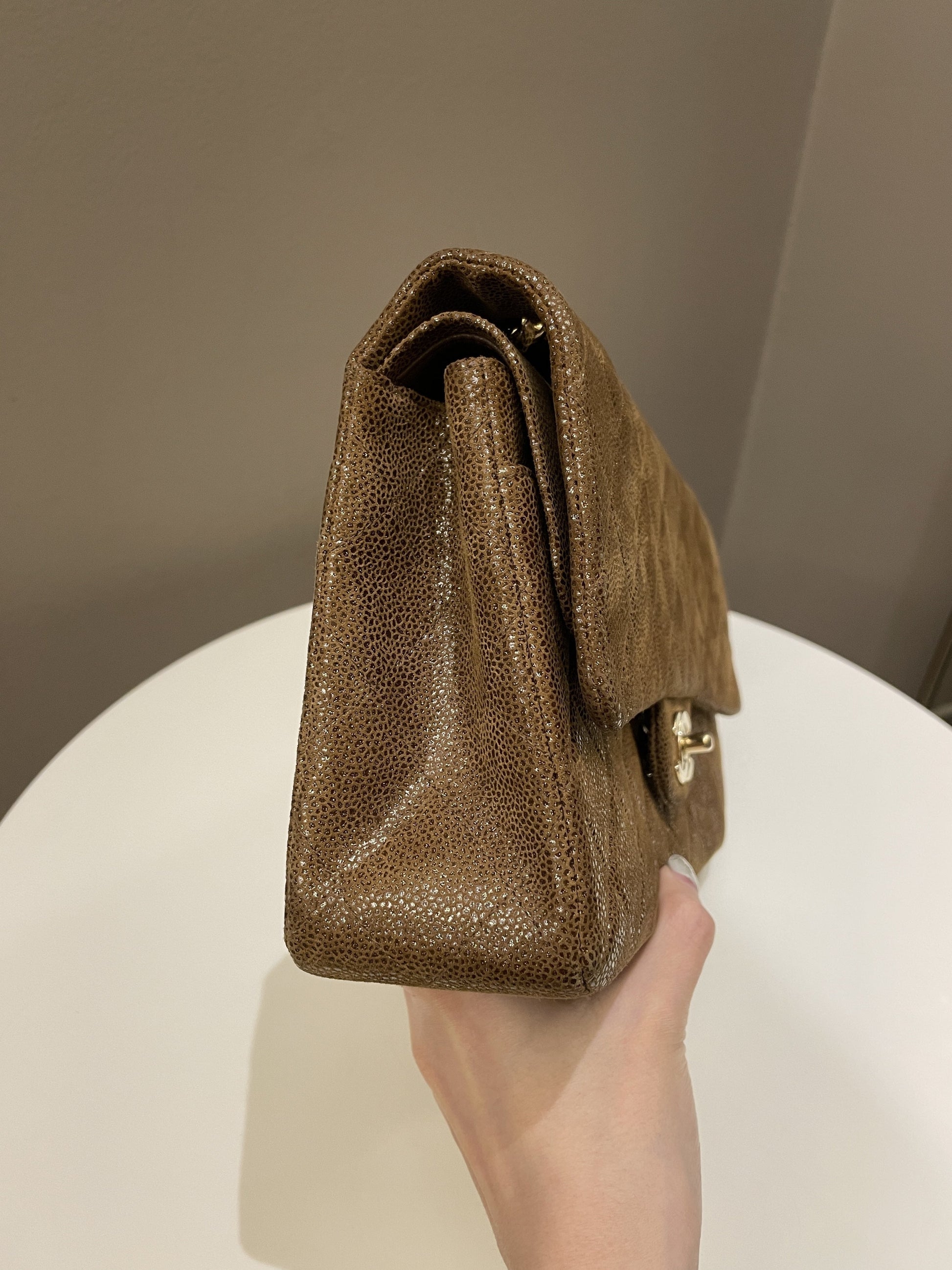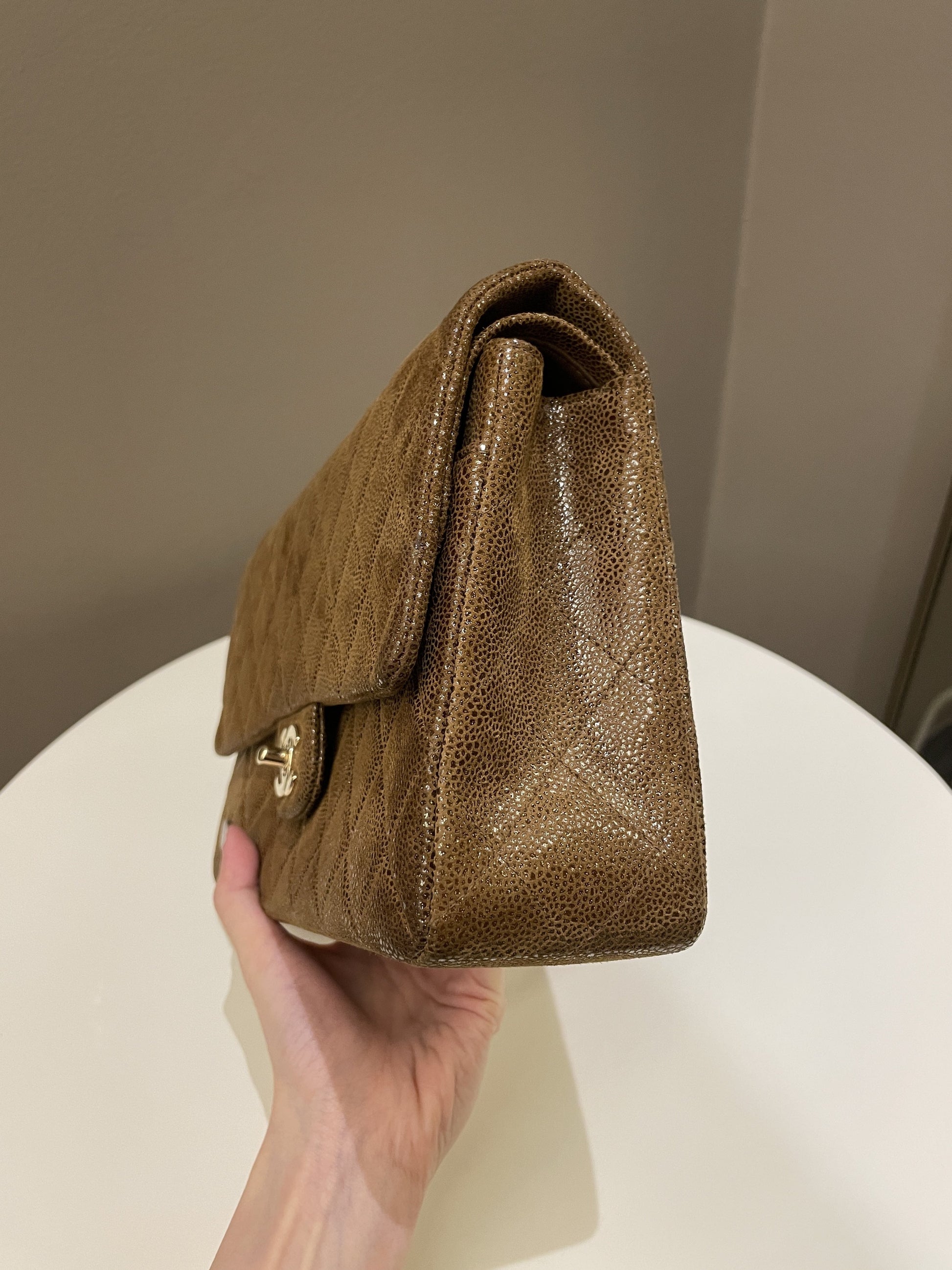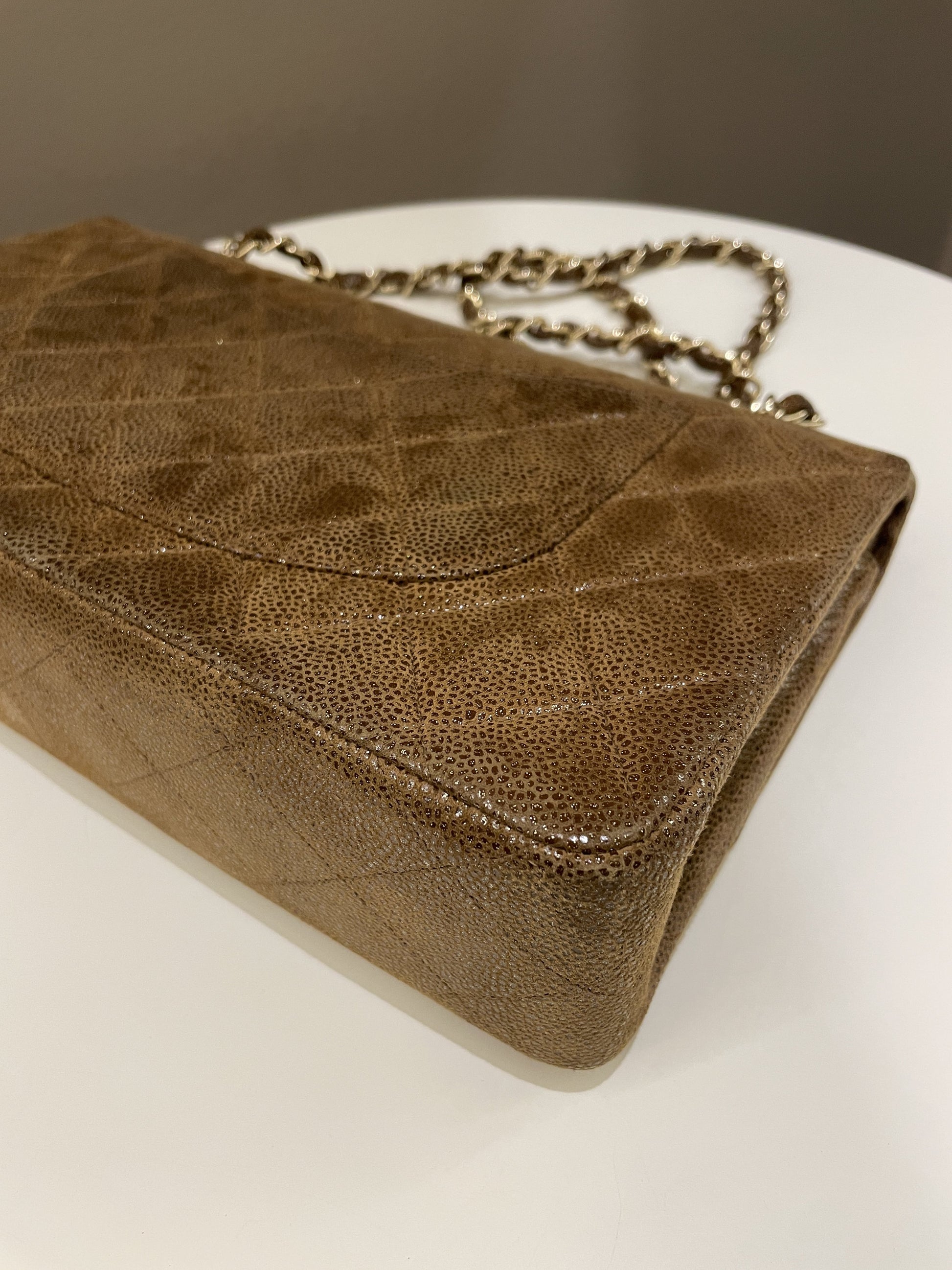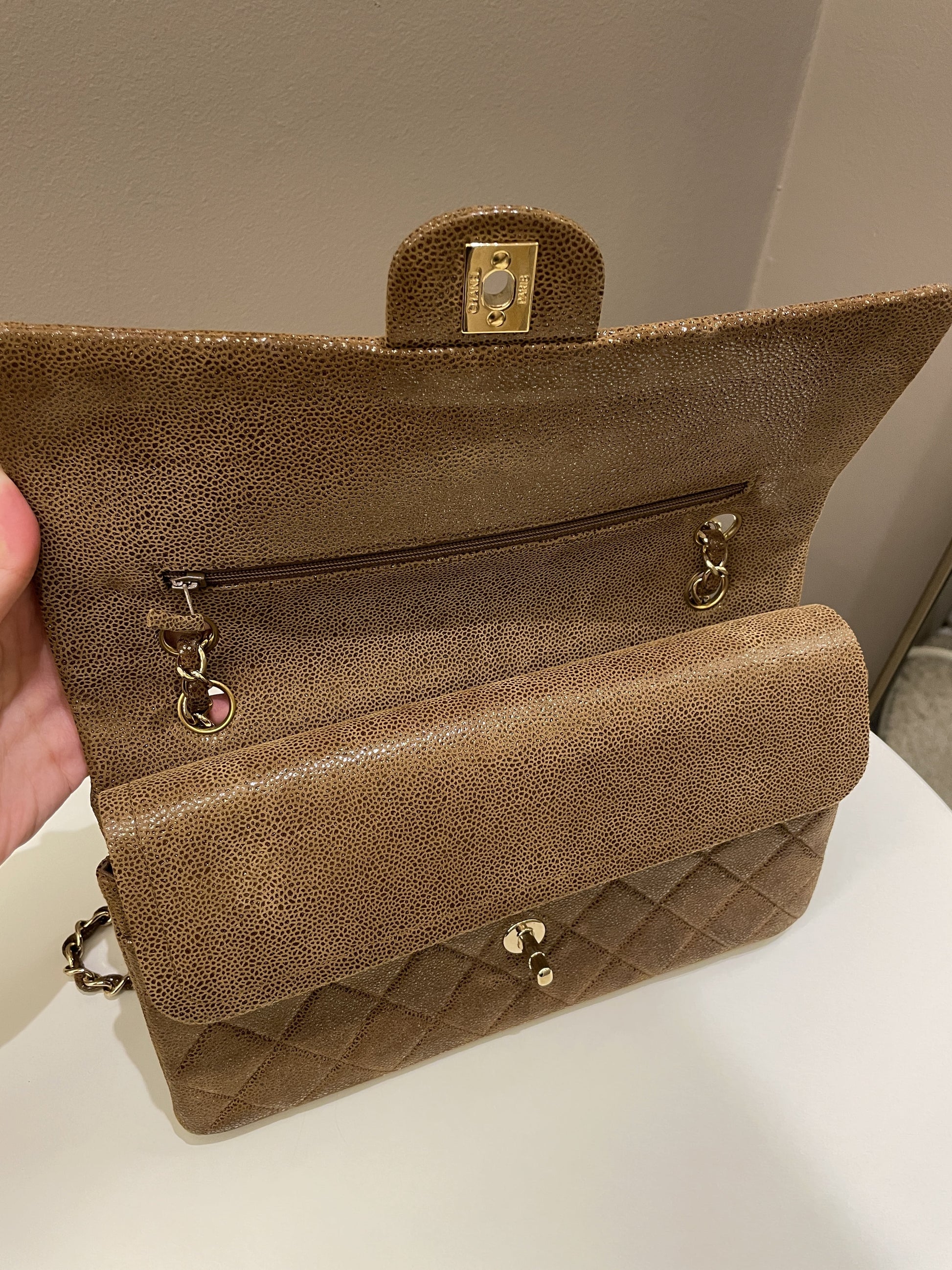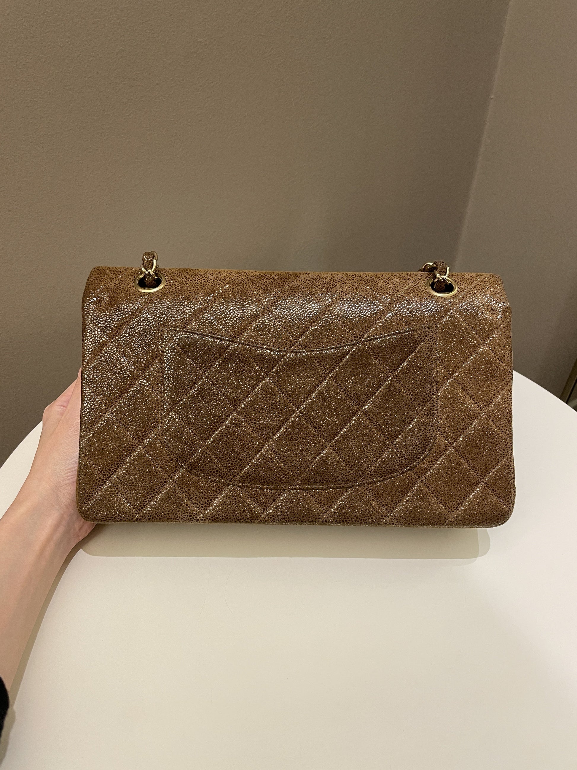 Chanel Vintage Classic Quilted Double Flap Brown Suede Caviar