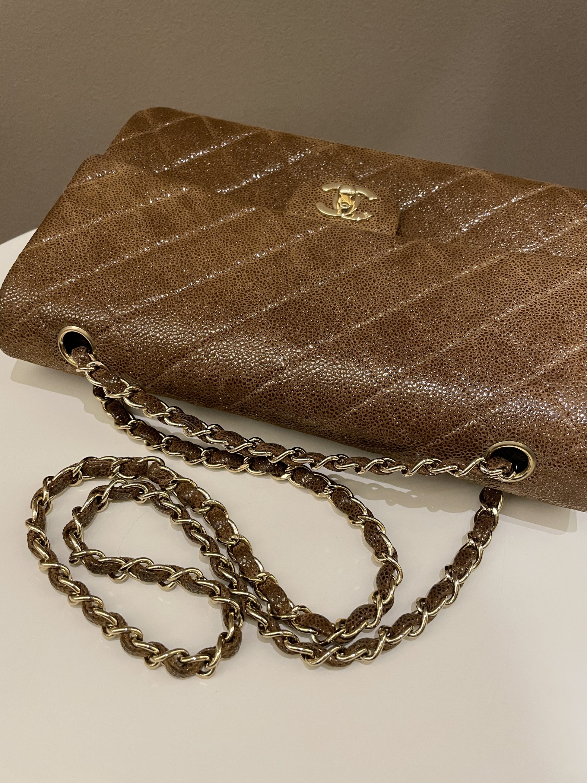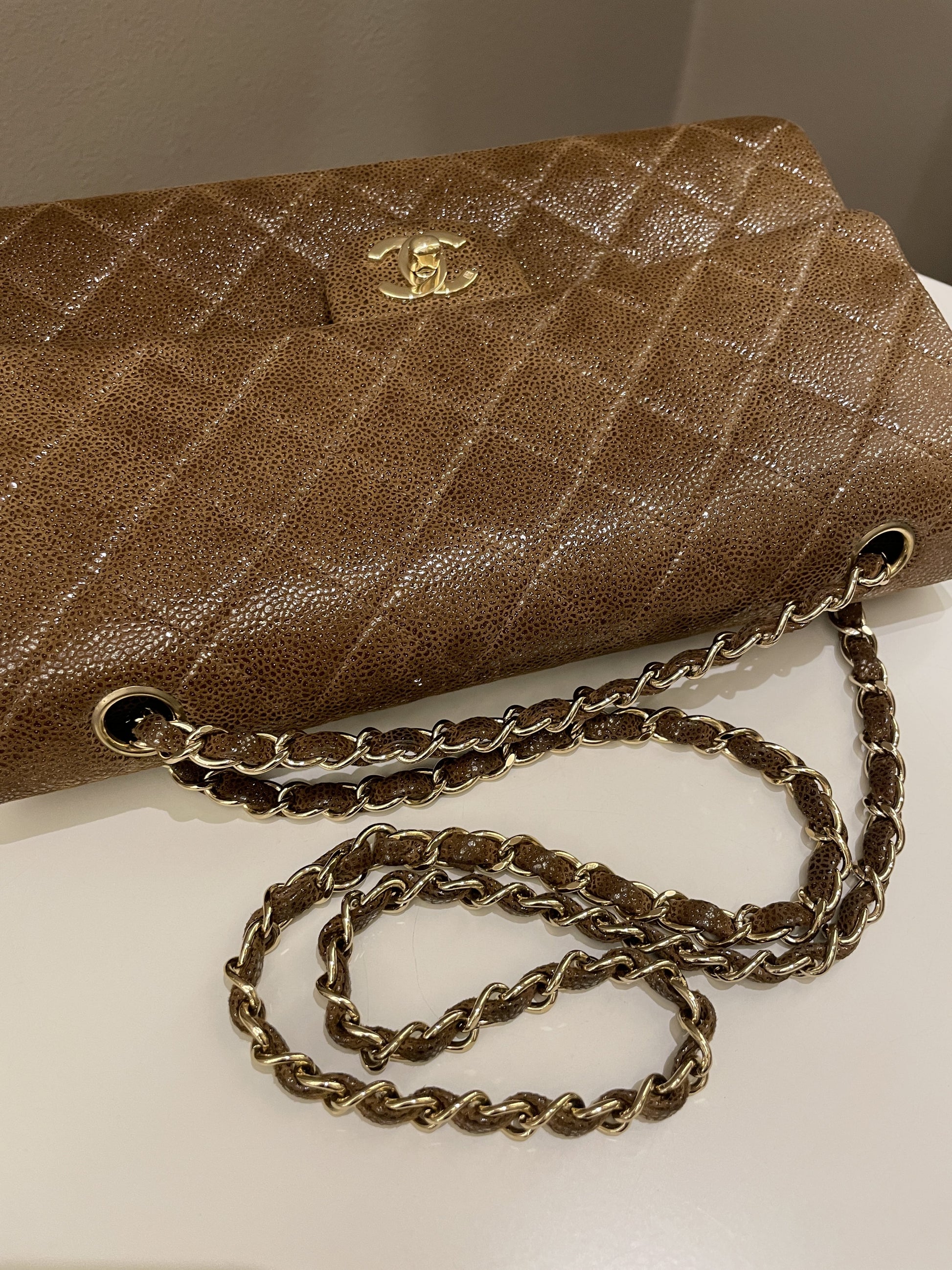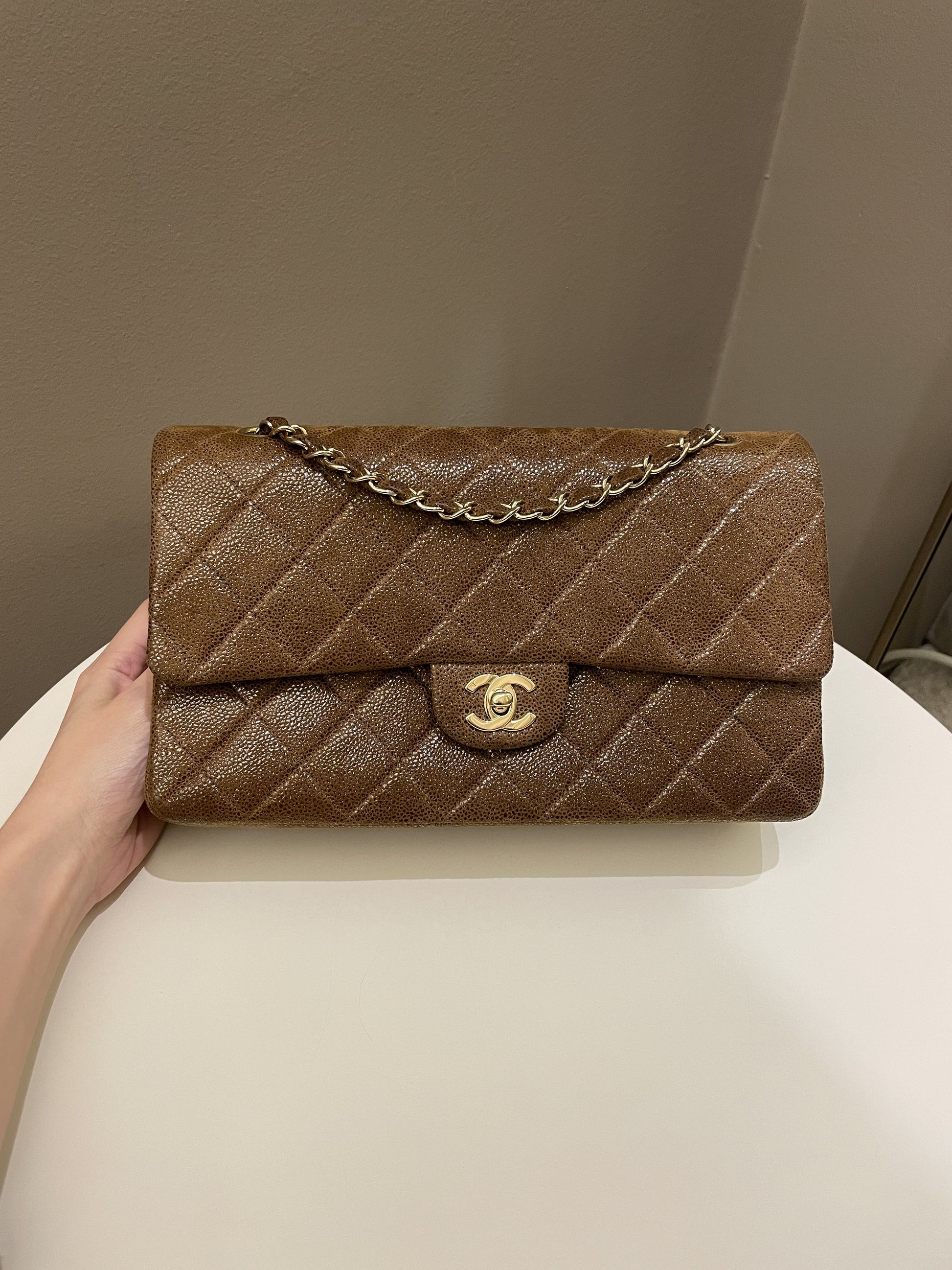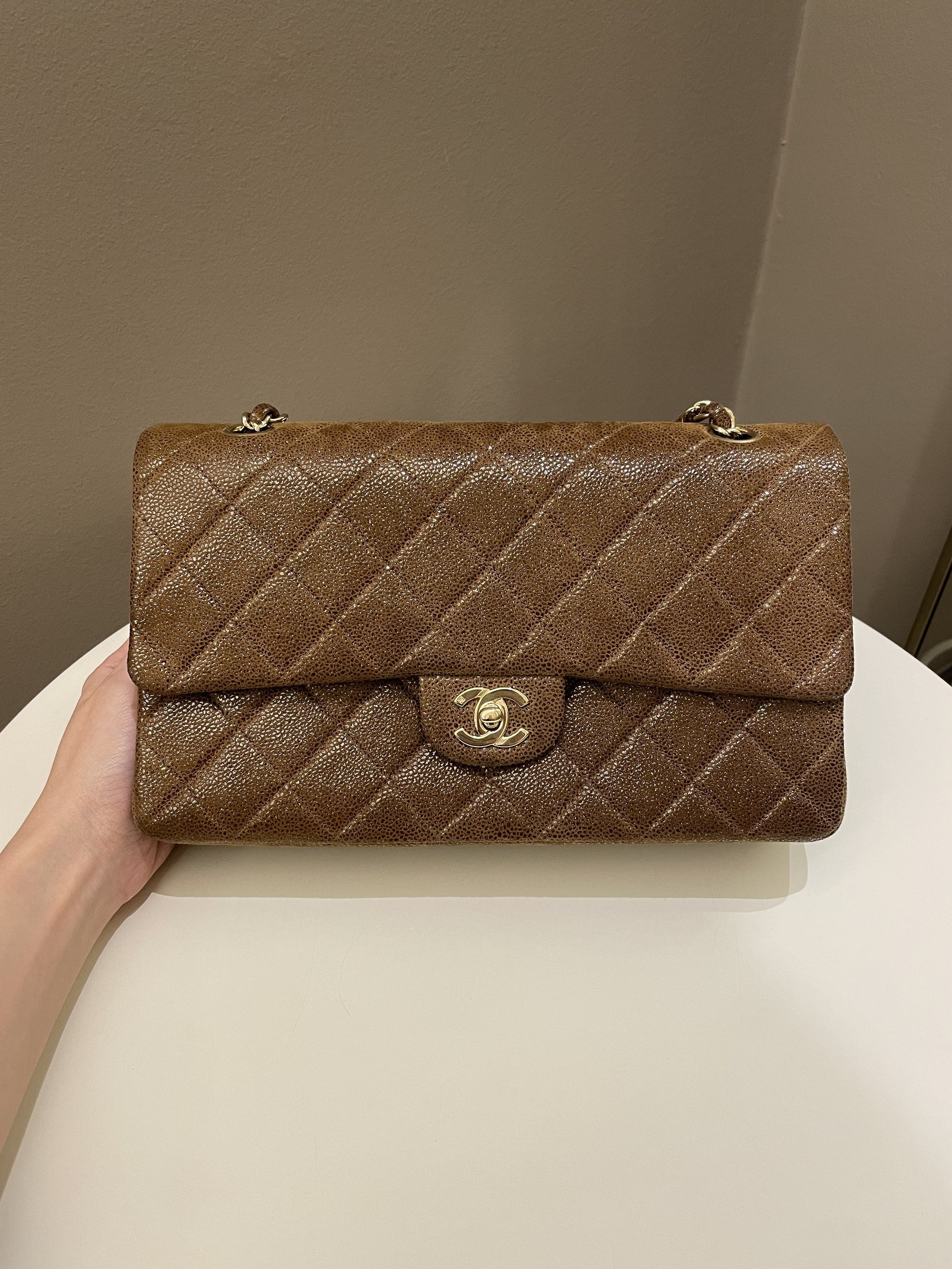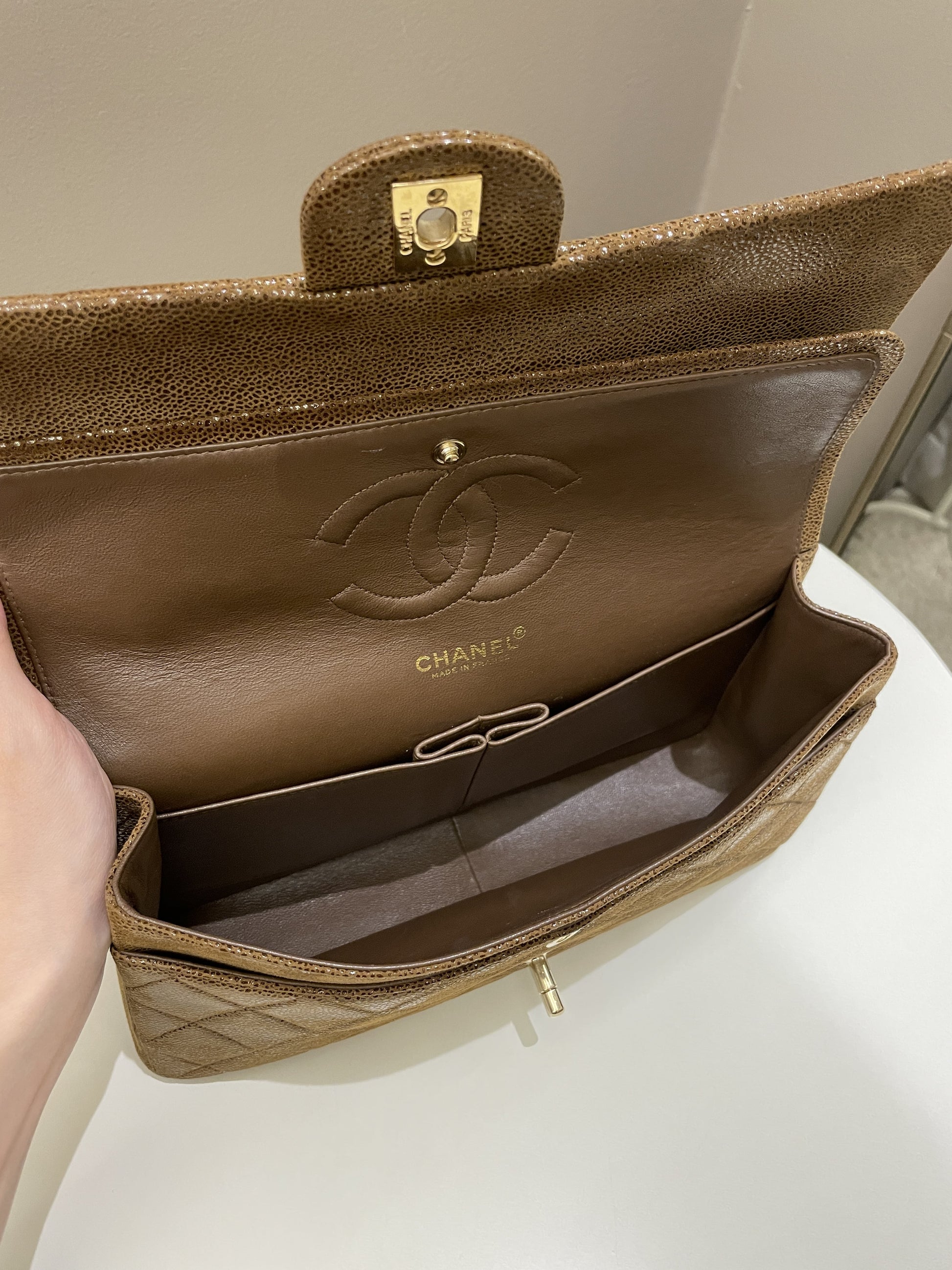 Chanel Vintage Classic Quilted Double Flap Brown Suede Caviar