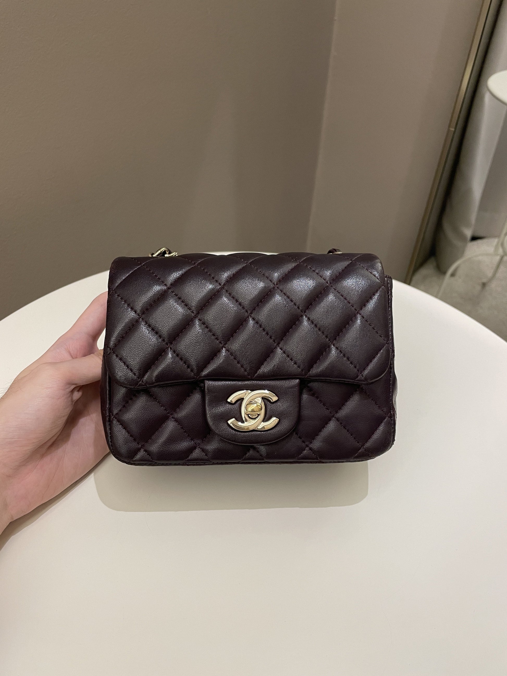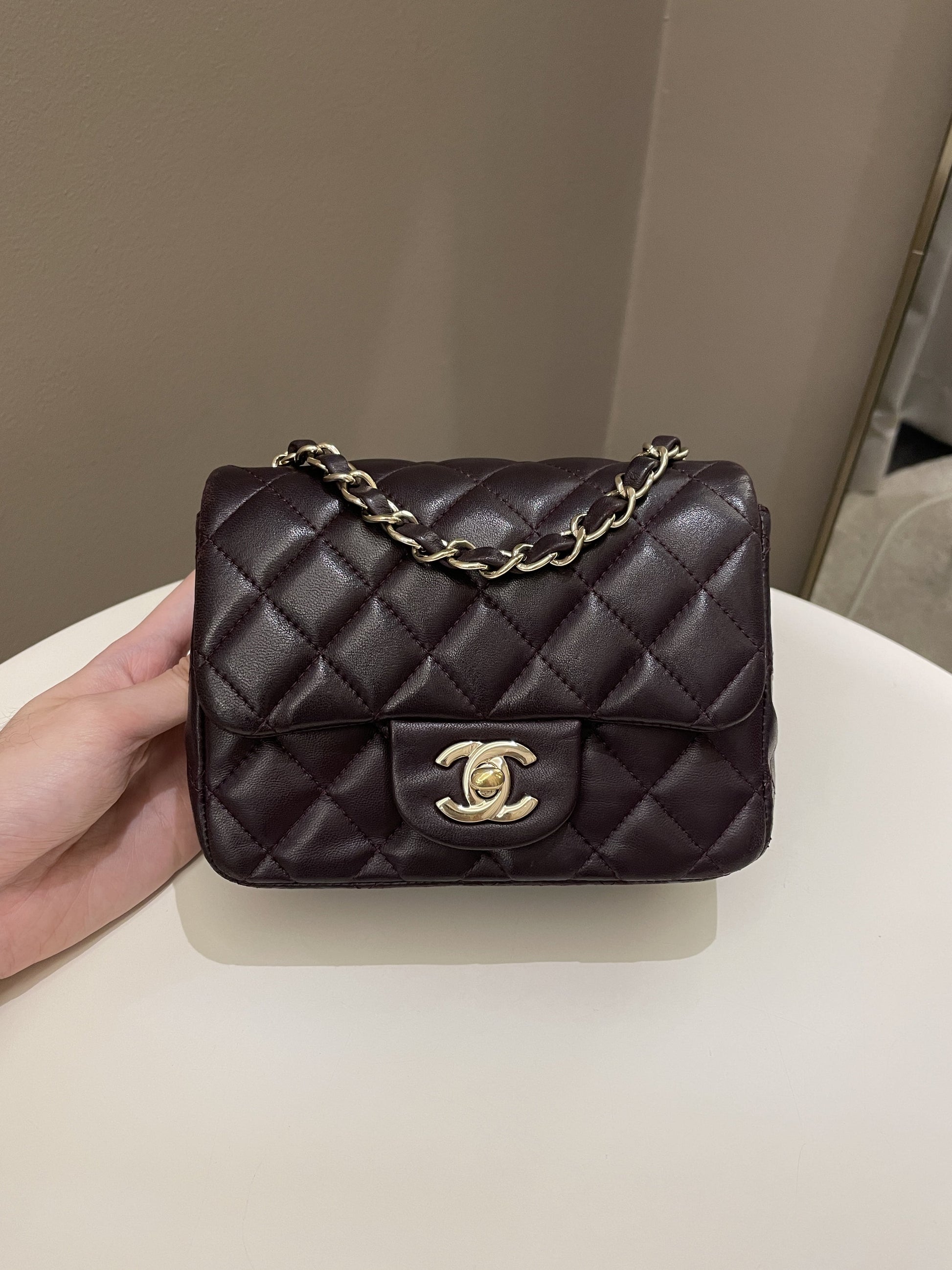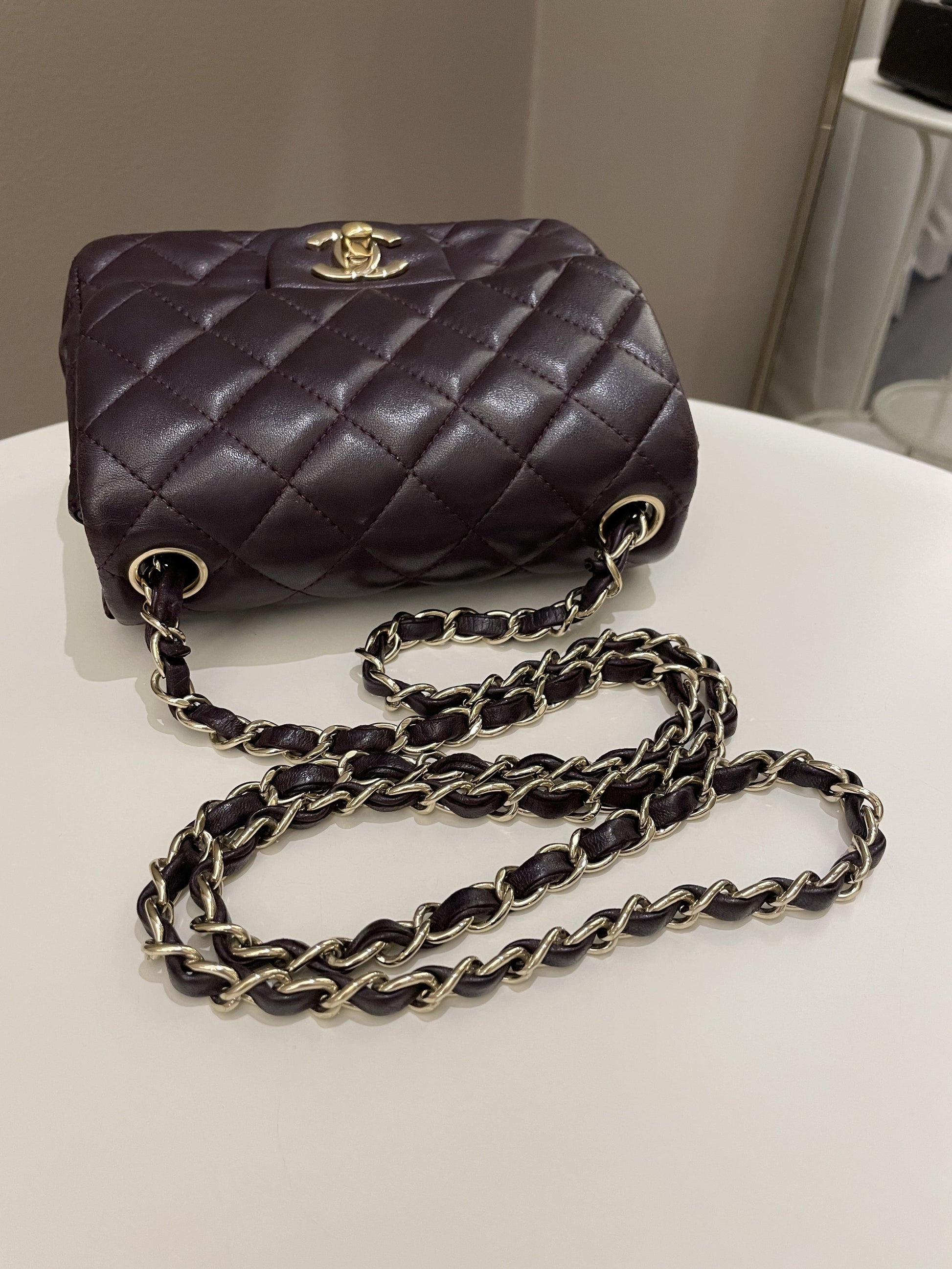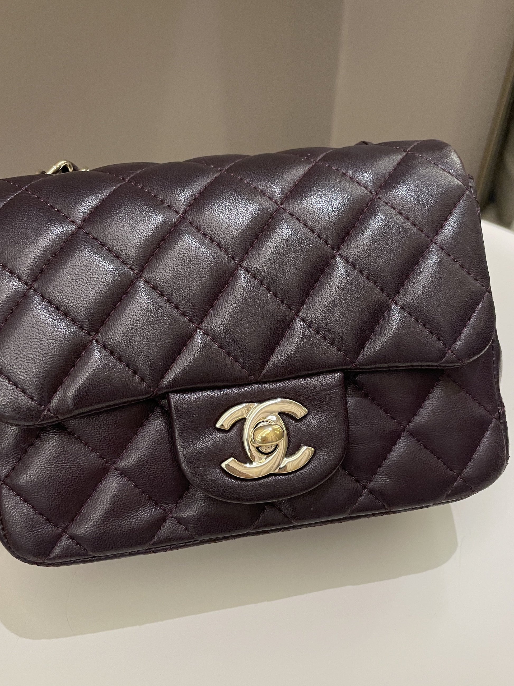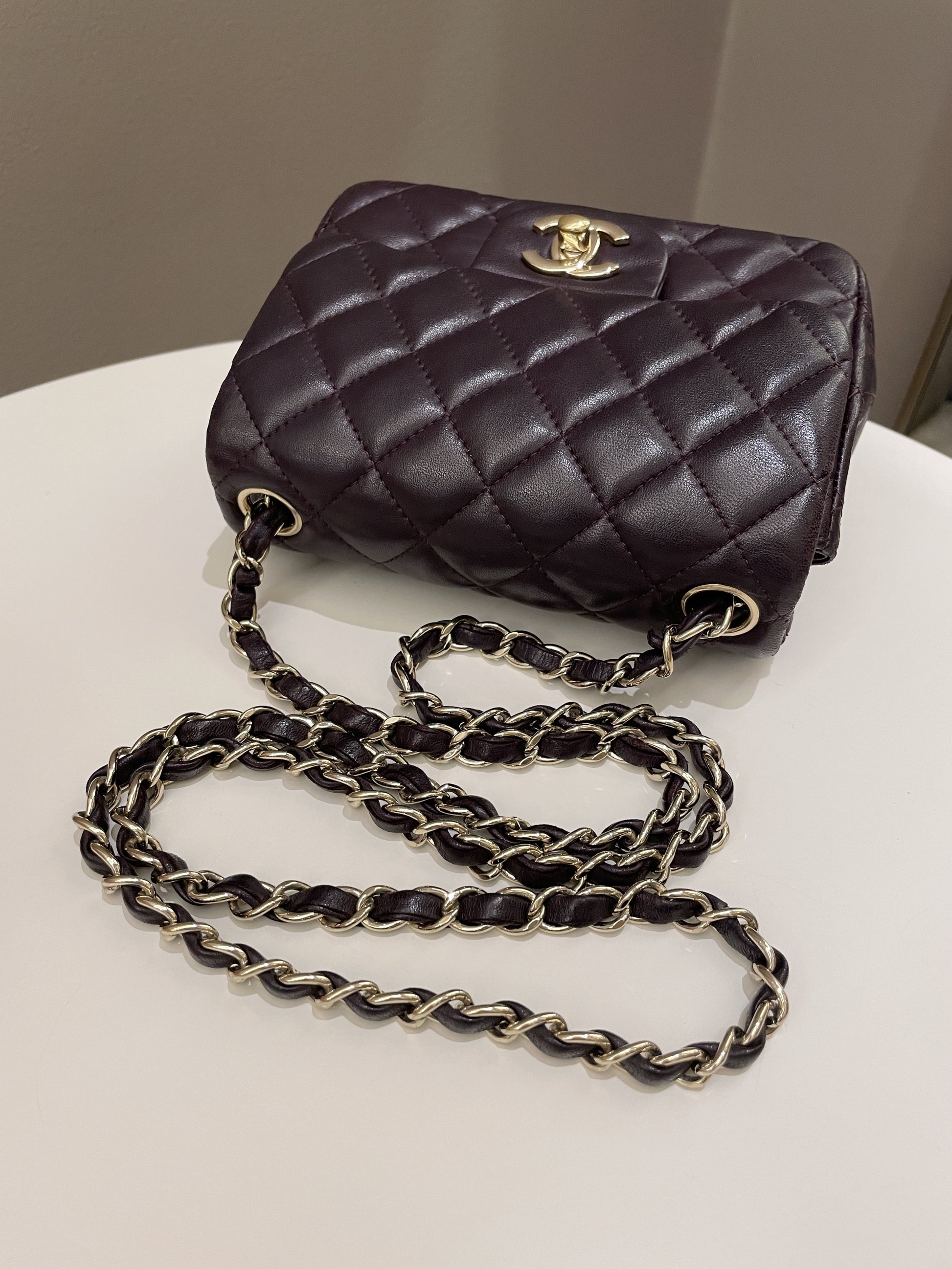 Chanel Classic Quilted Mini Square Dark Purple Lambskin