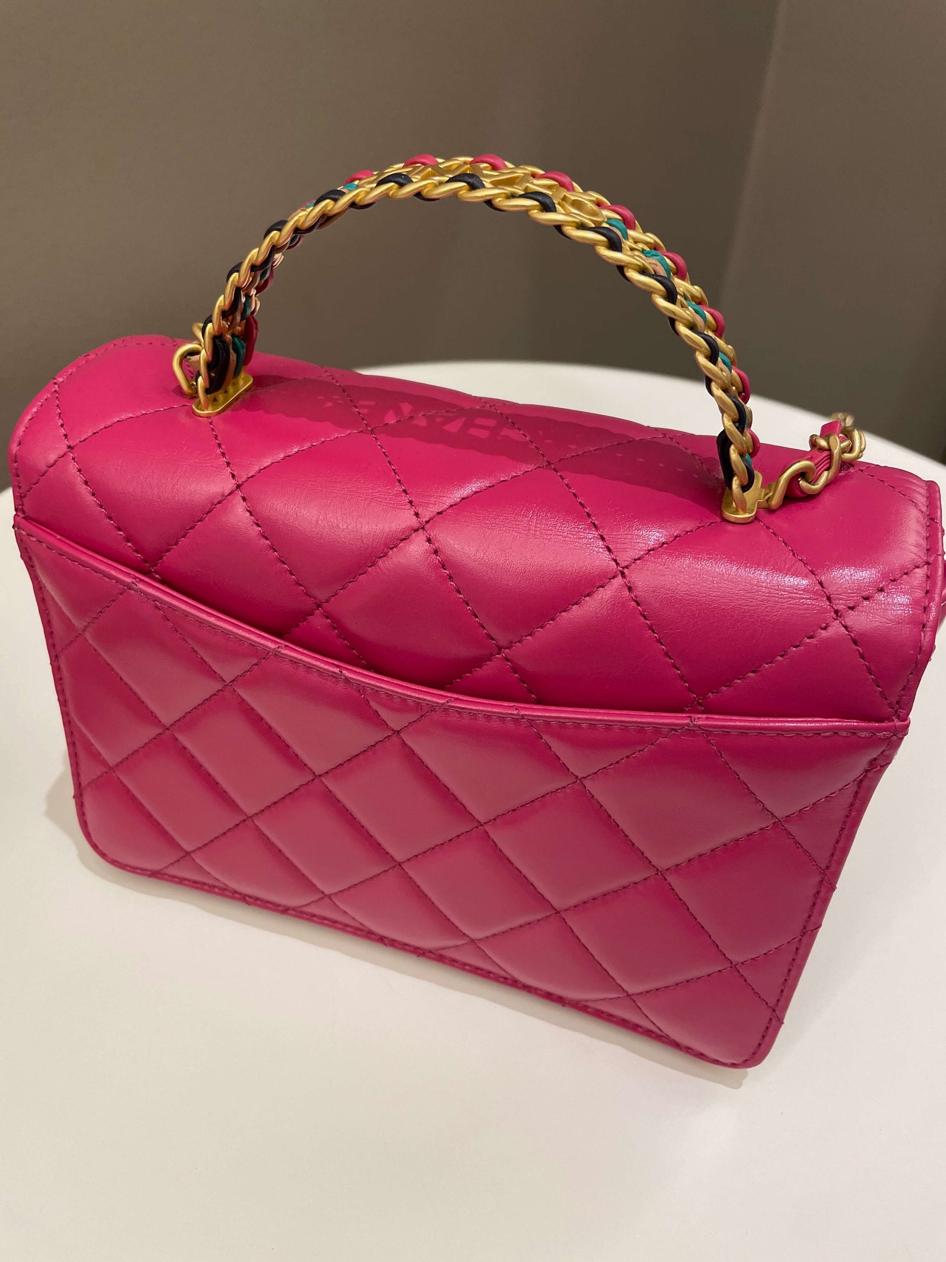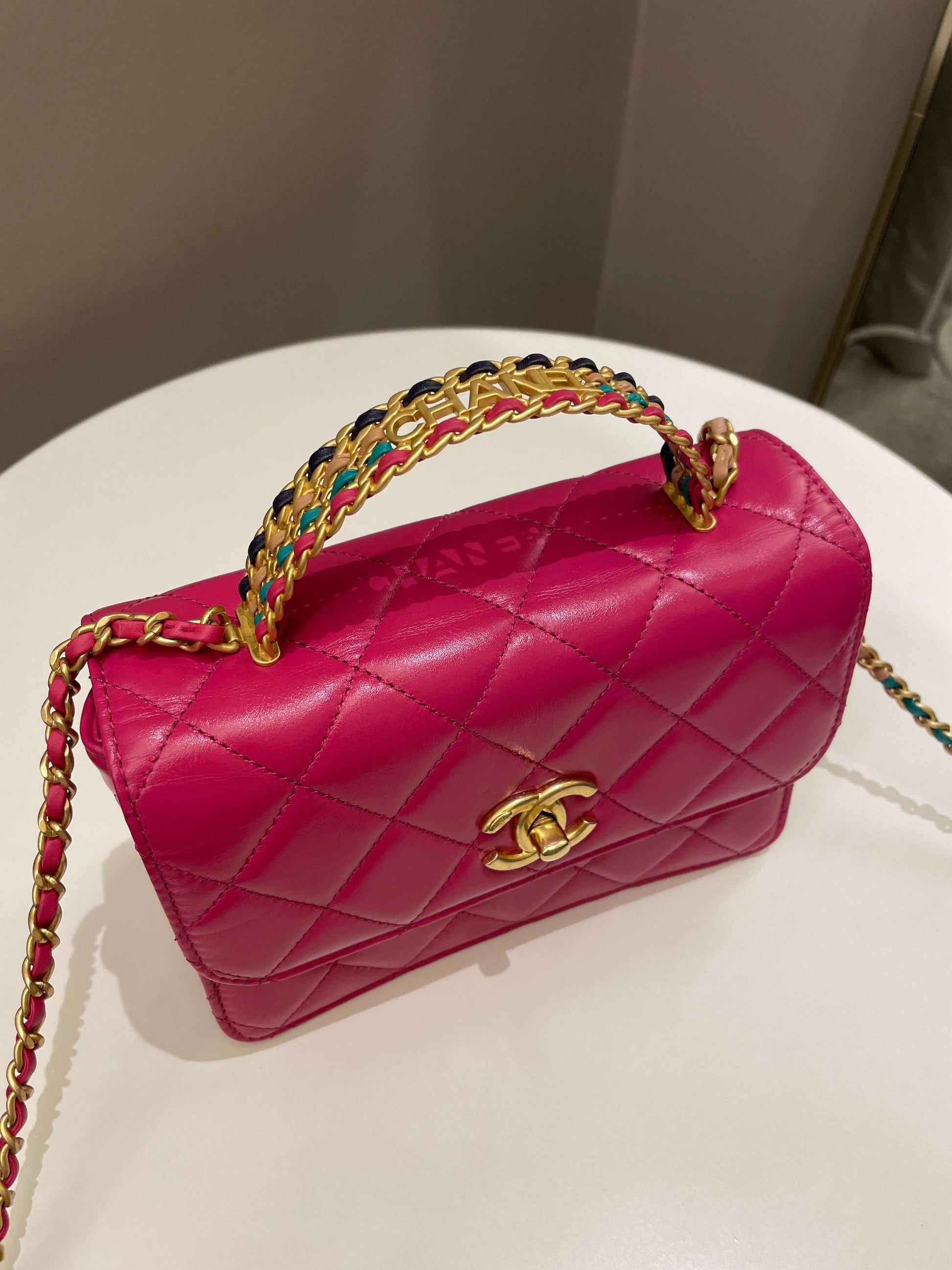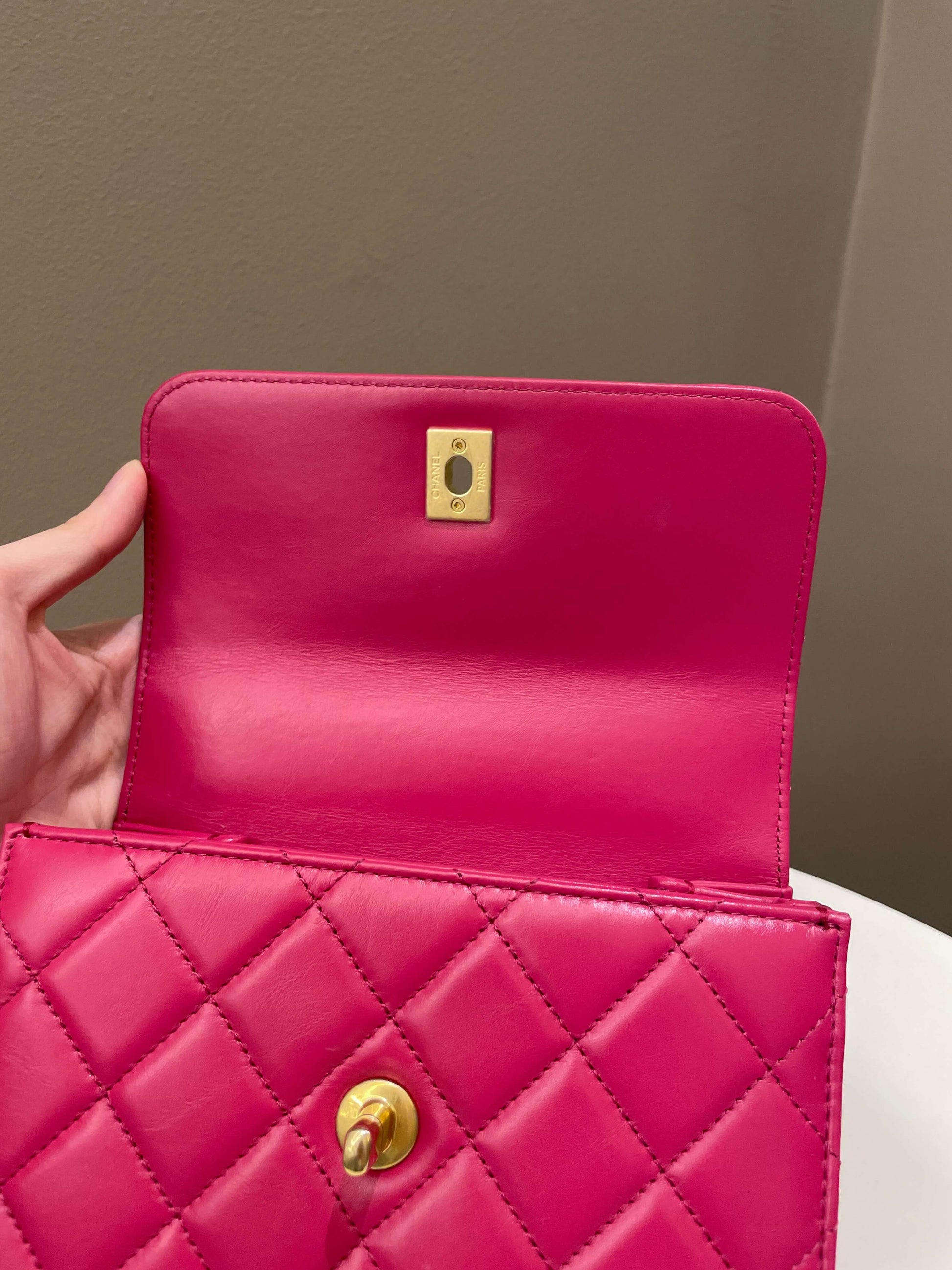 Chanel 23P Quilted Top Handle Flap Chain Rose