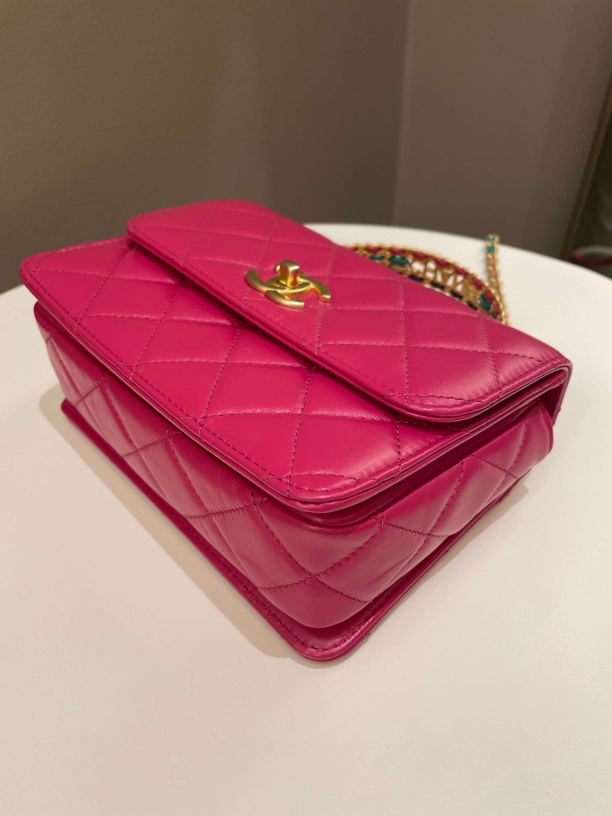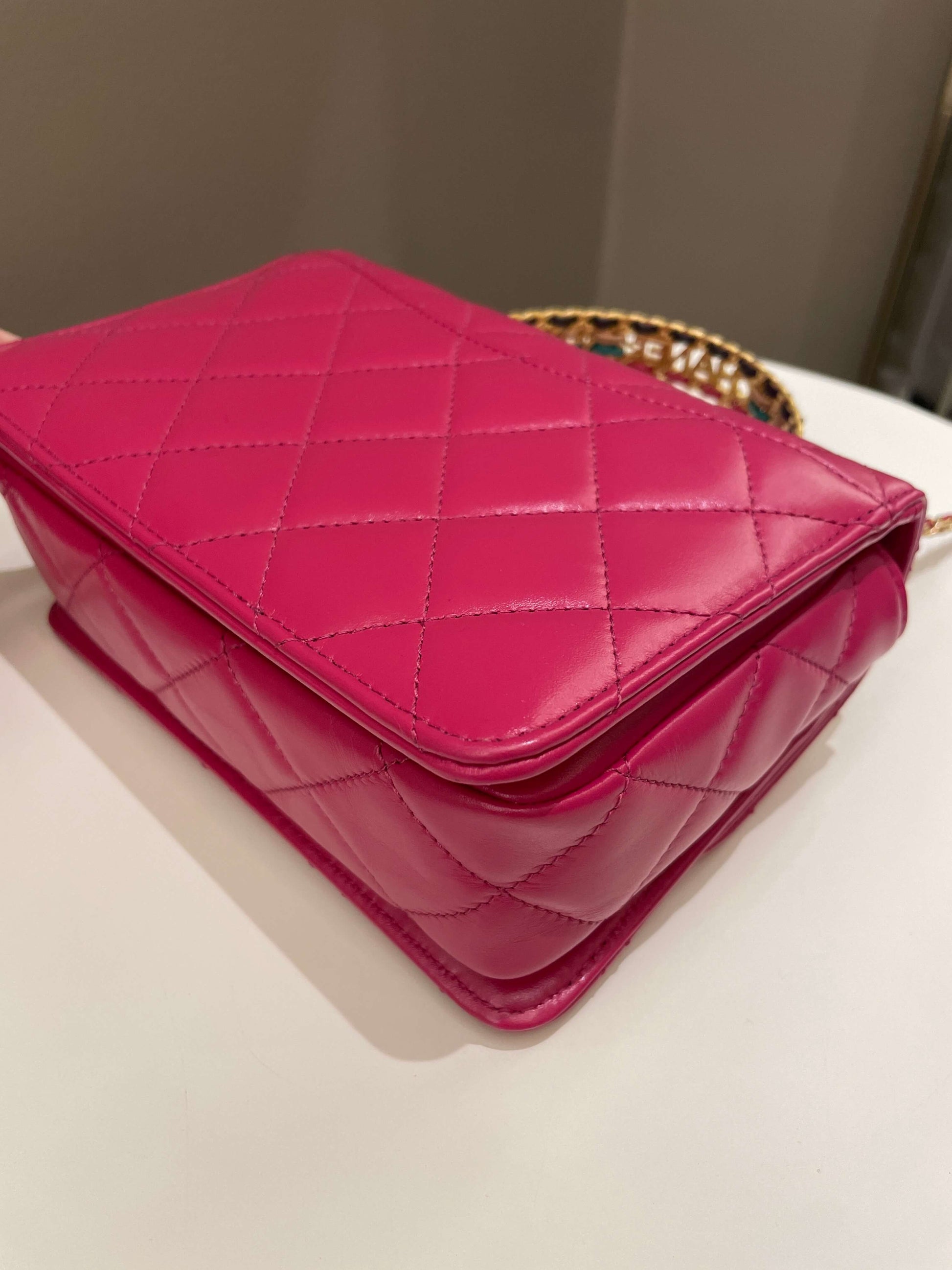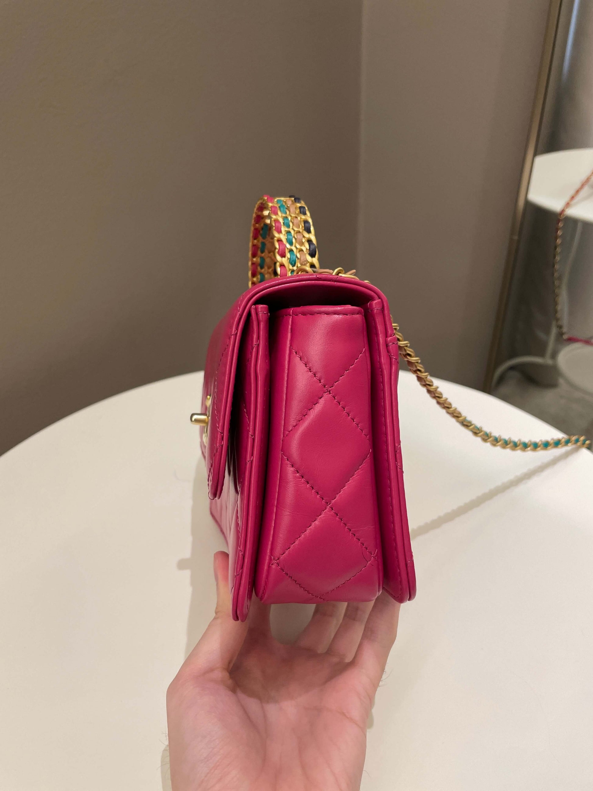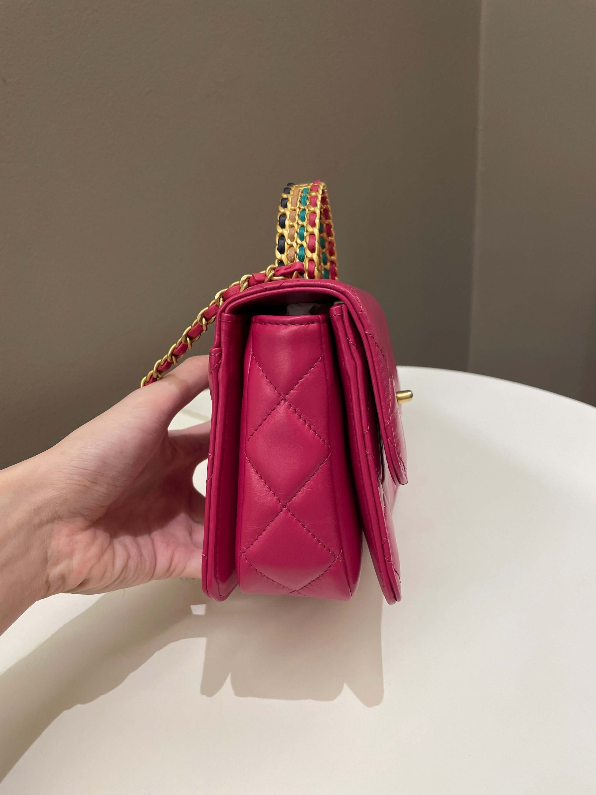 Chanel 23P Quilted Top Handle Flap Chain Rose