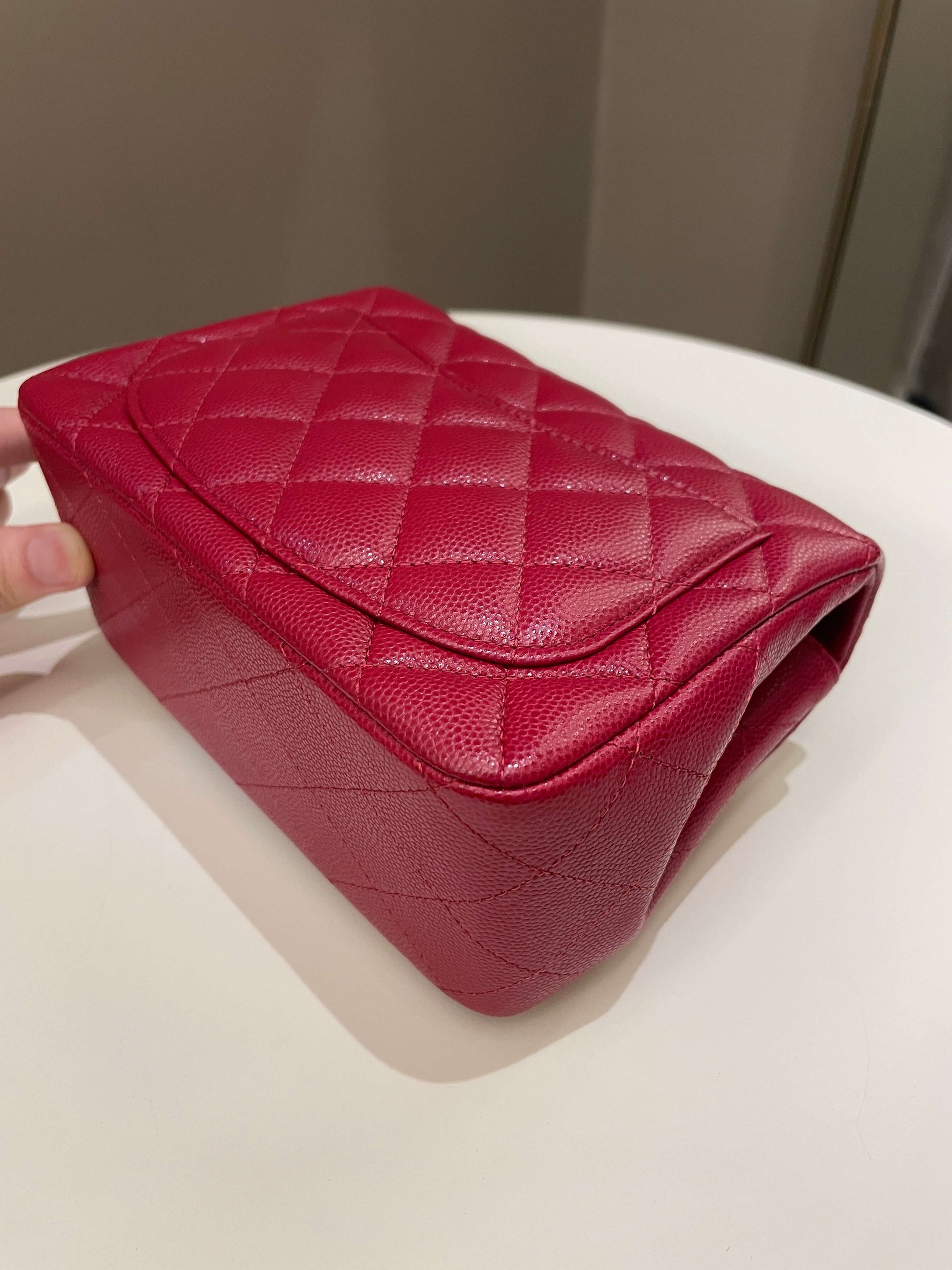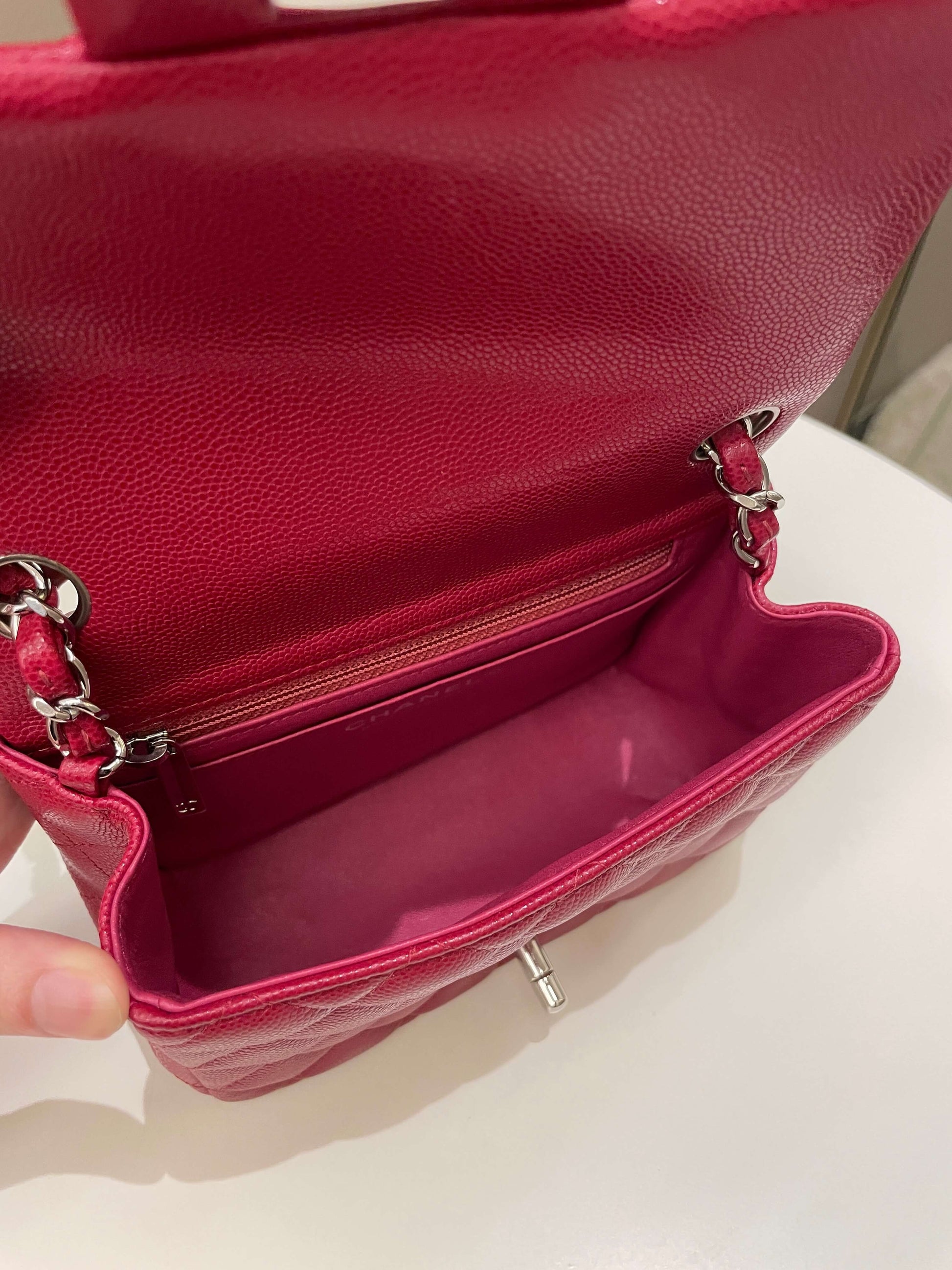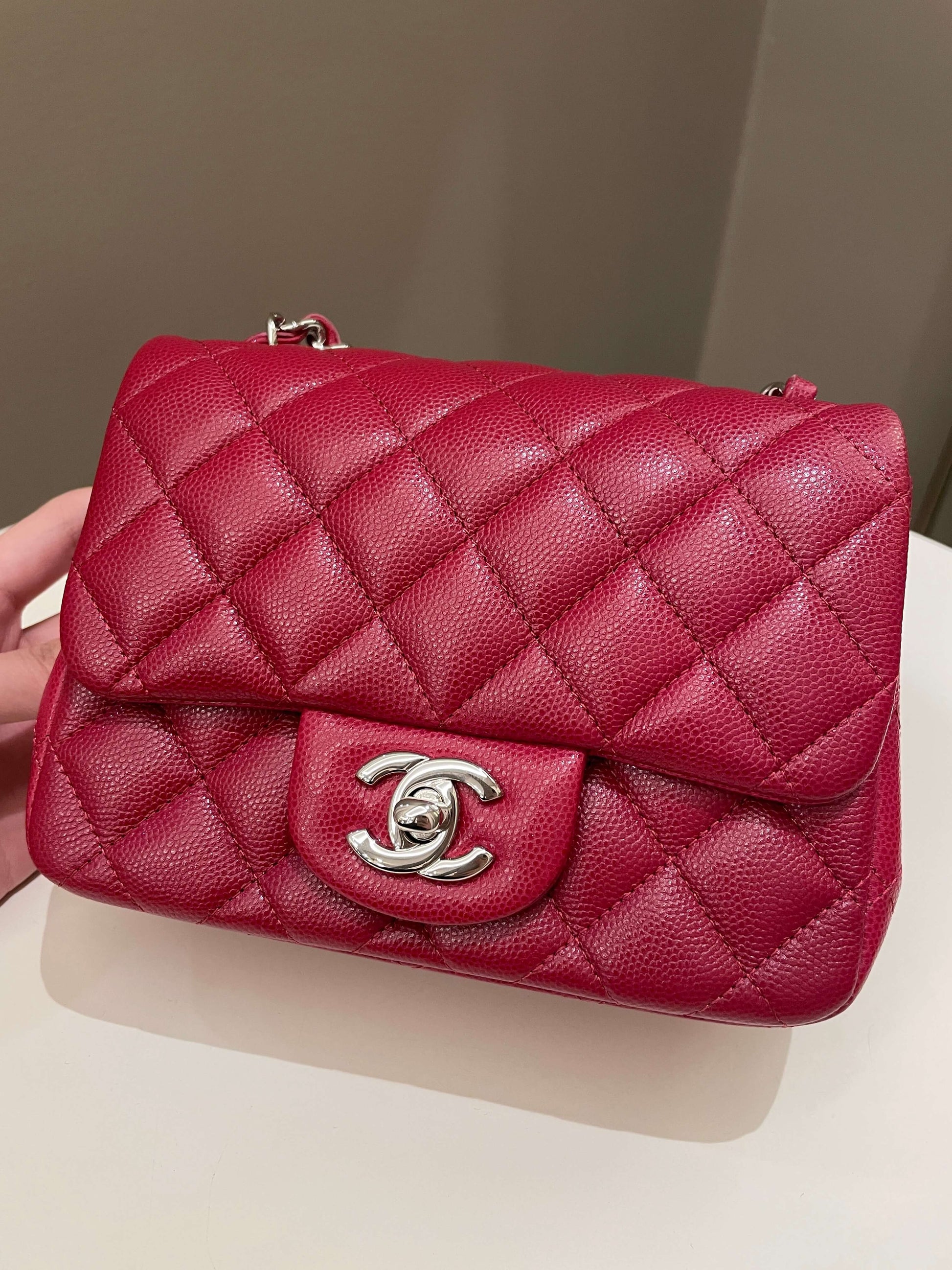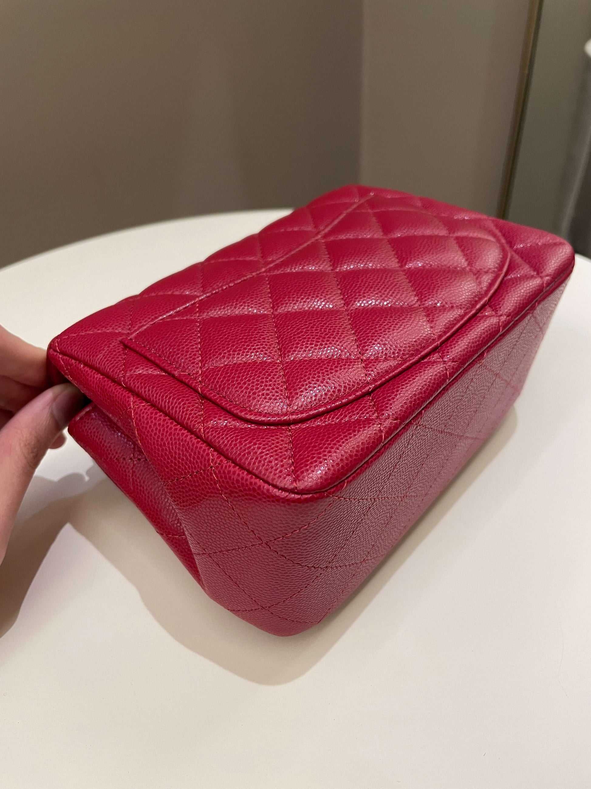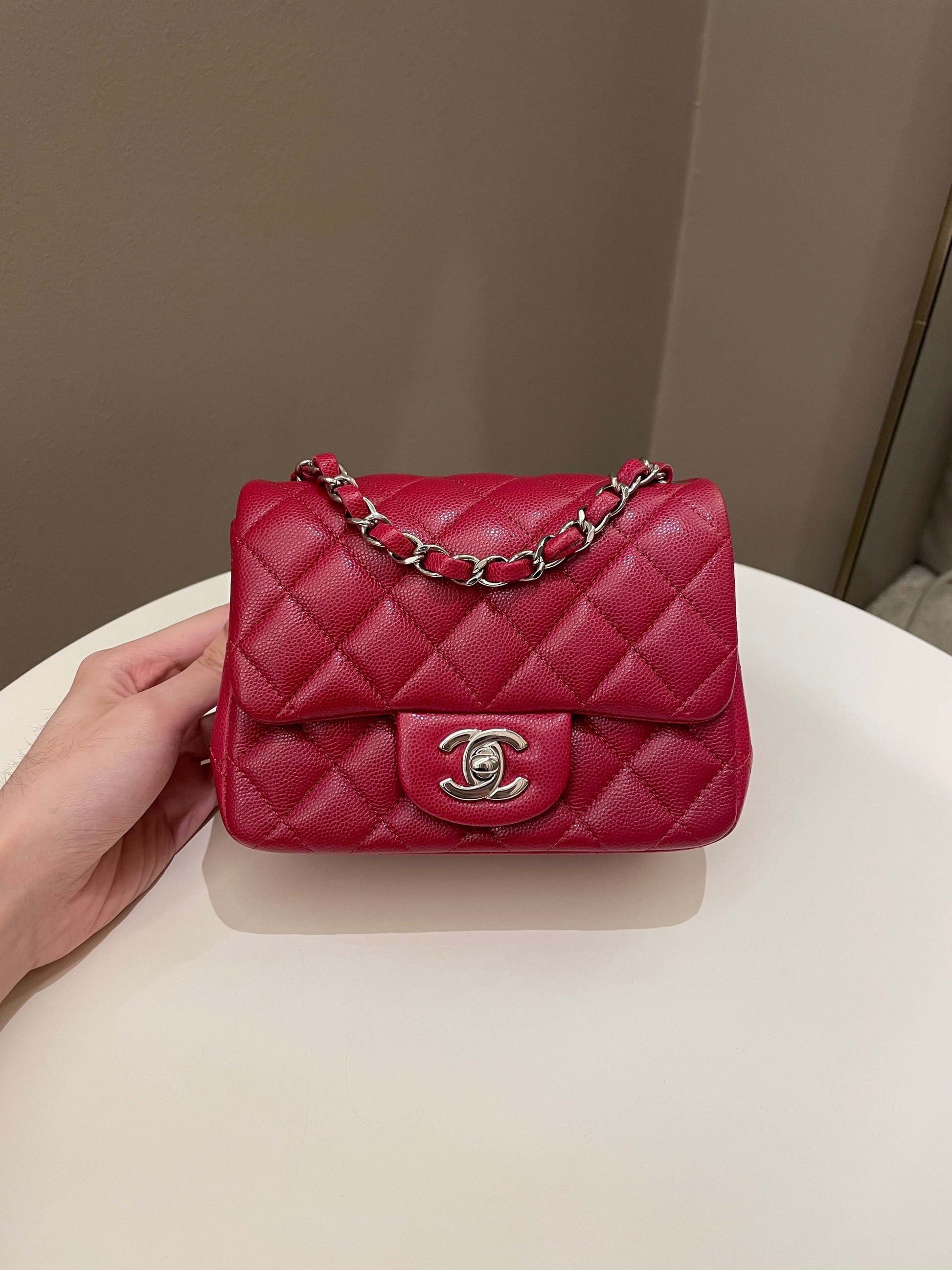 Chanel 18B Classic Quilted Mini Square Red Caviar