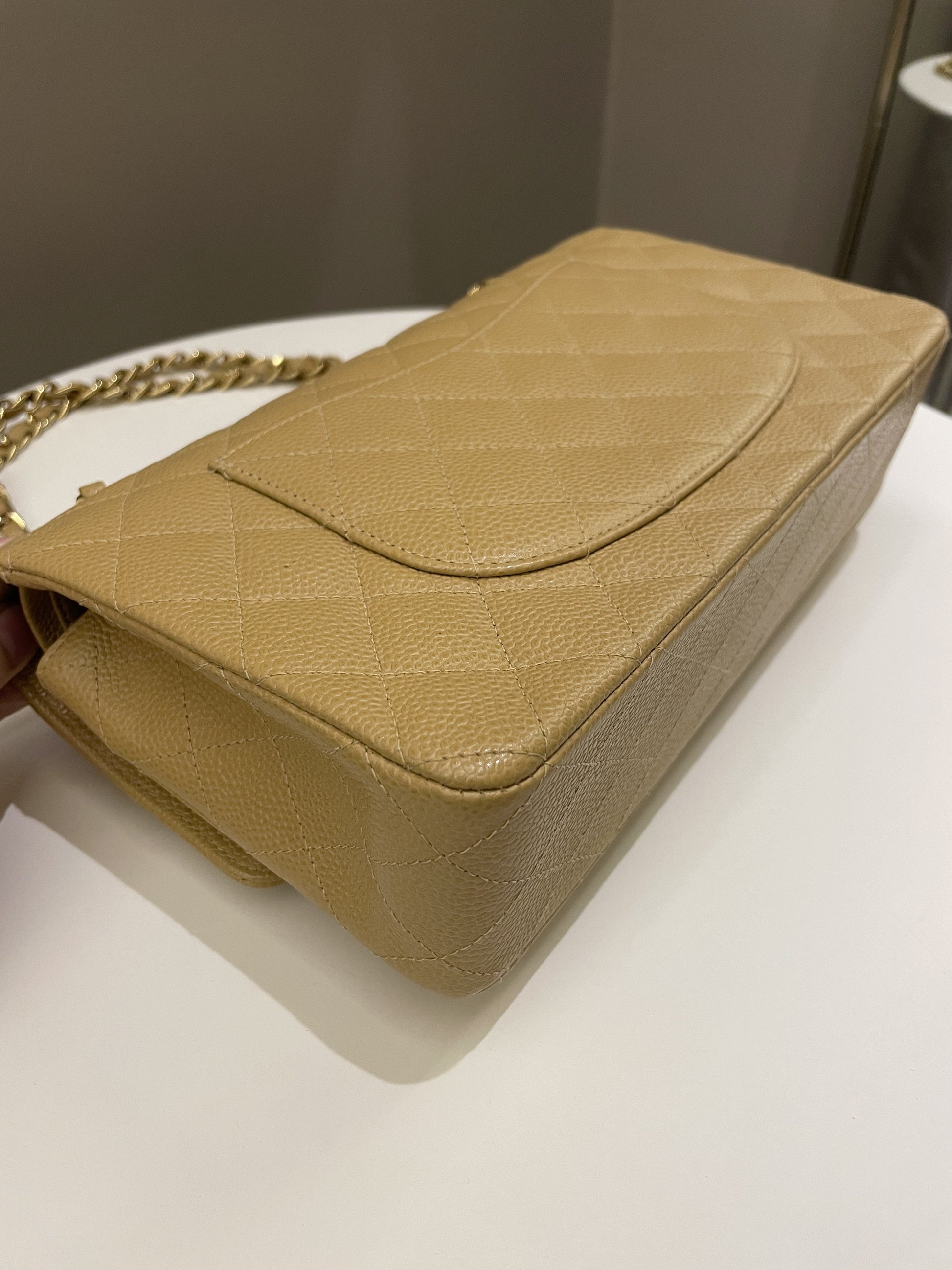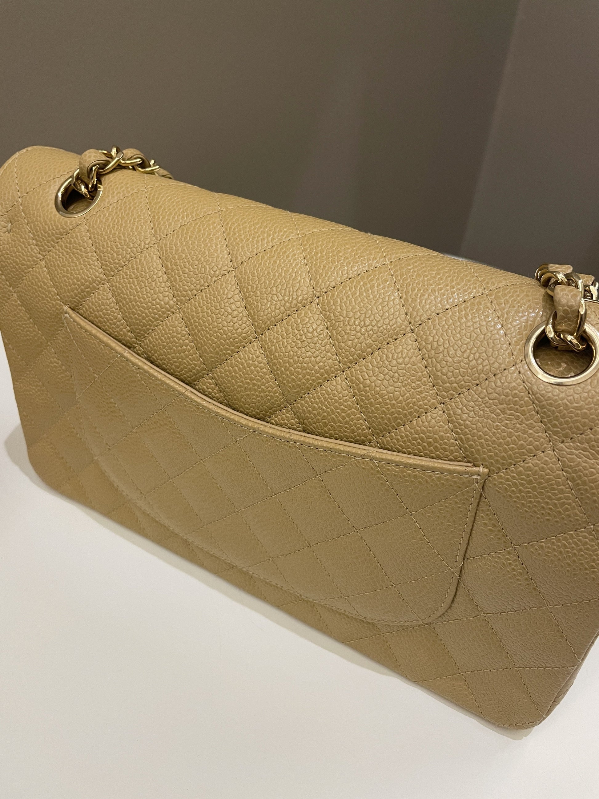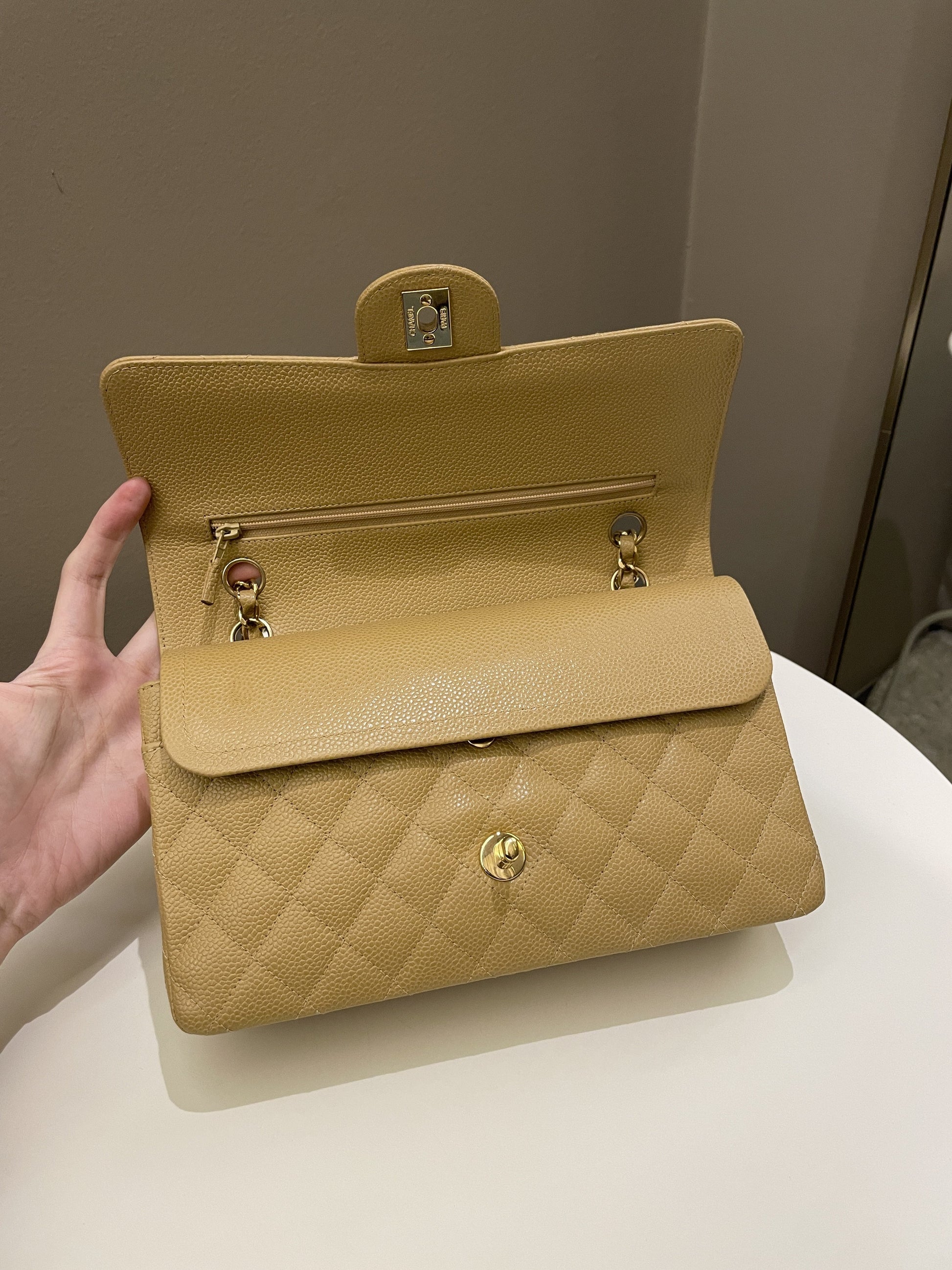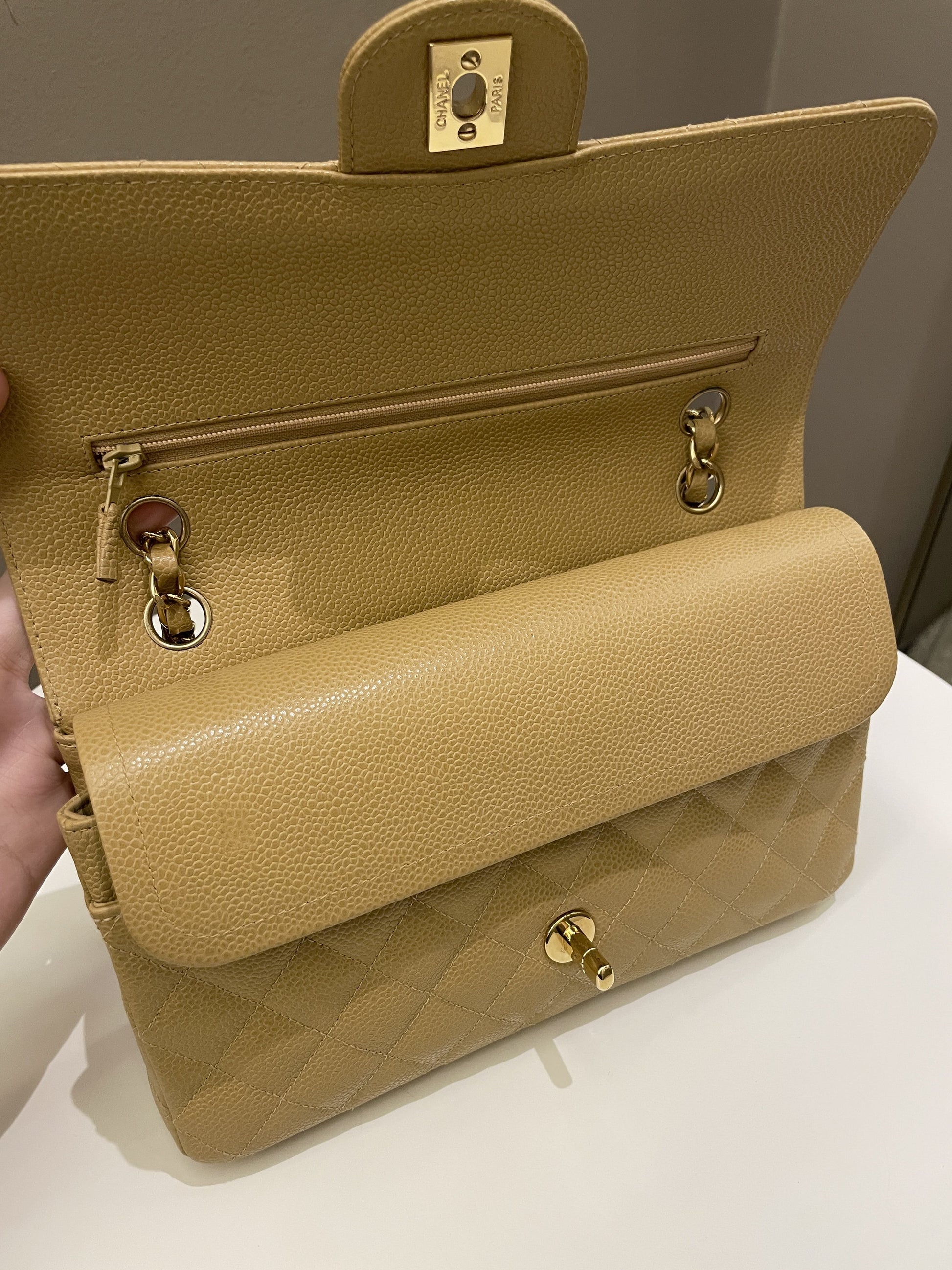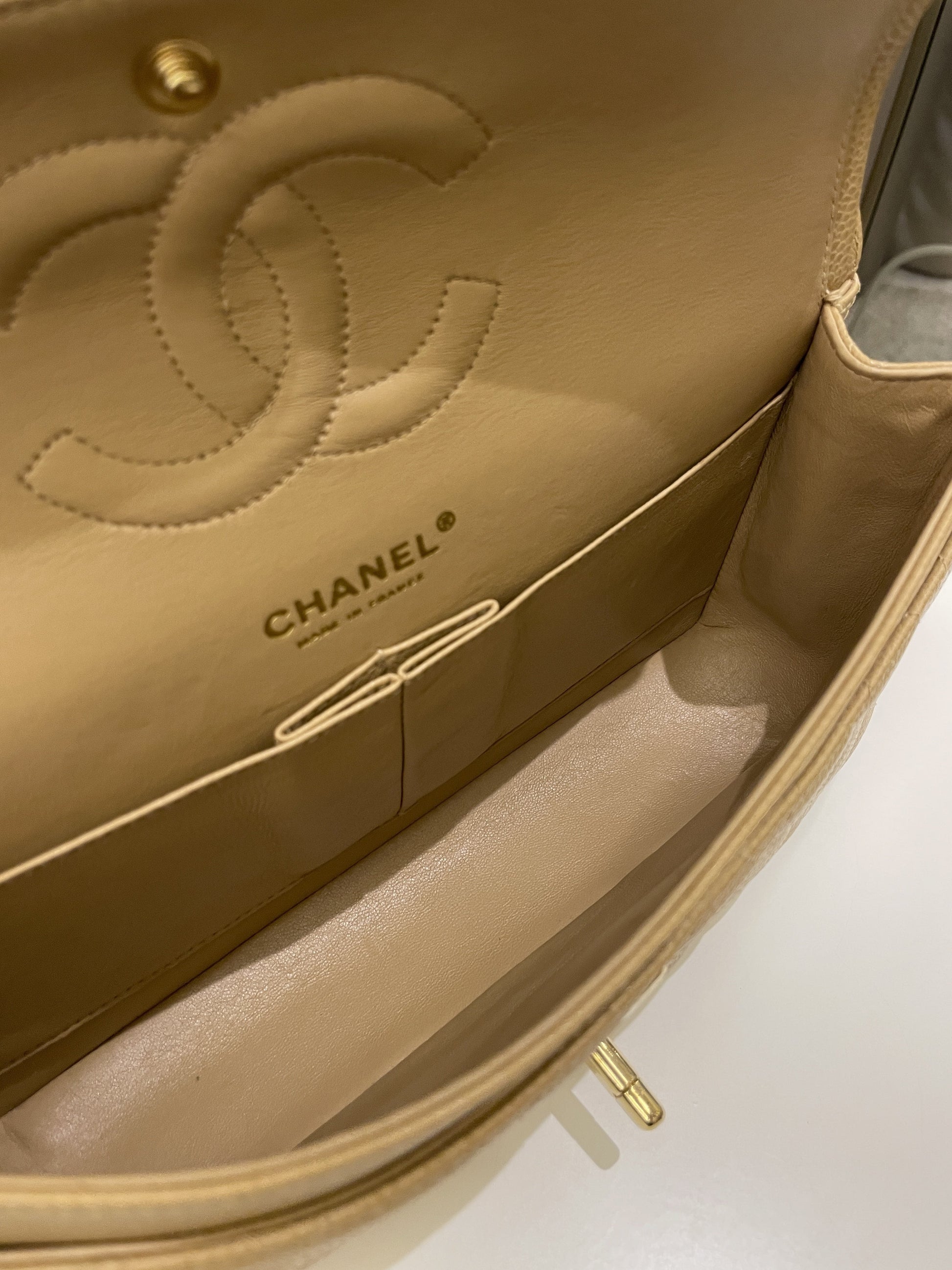 Chanel Vintage Classic Quilted Medium Double Flap Dark Beige Caviar