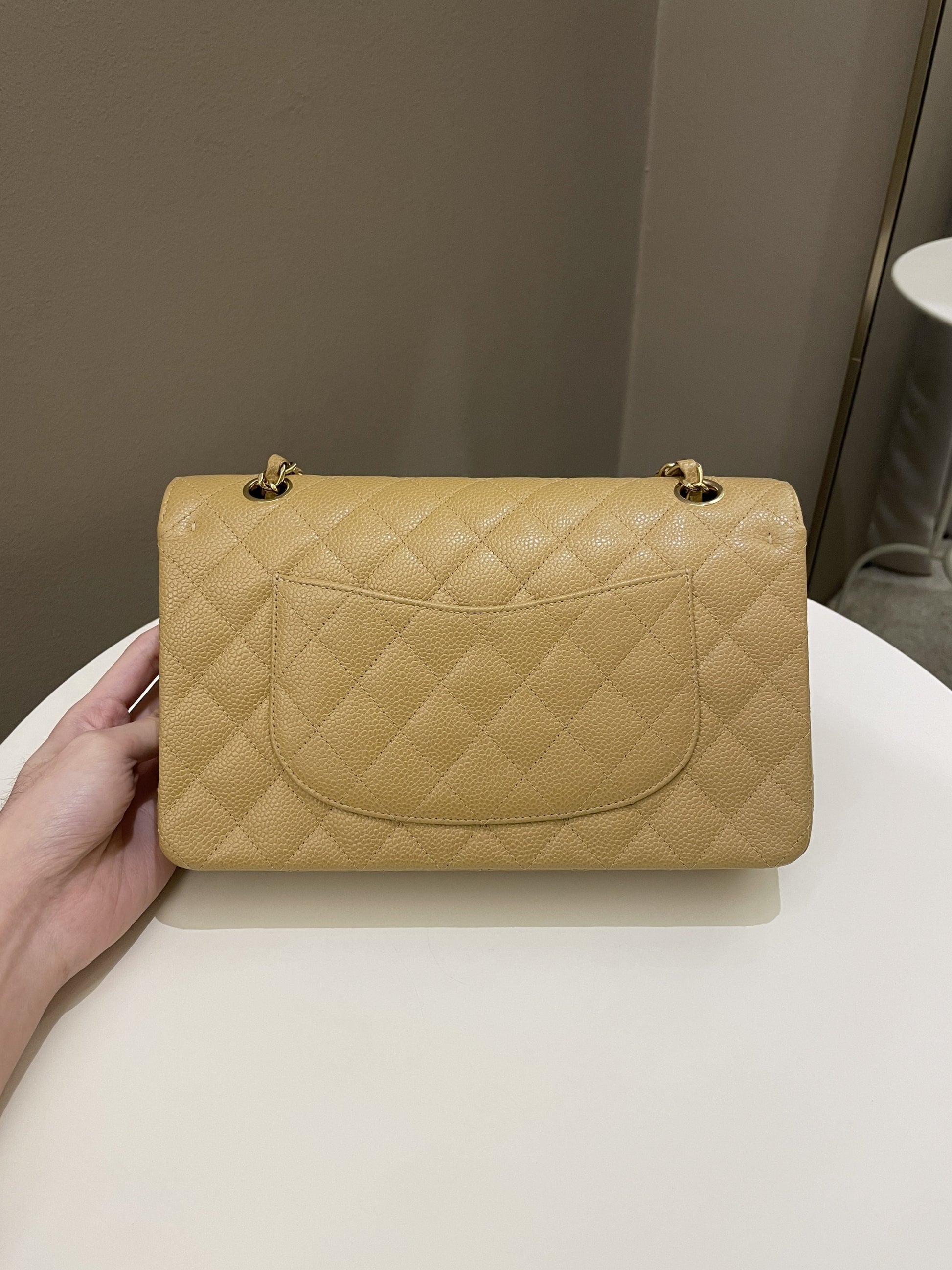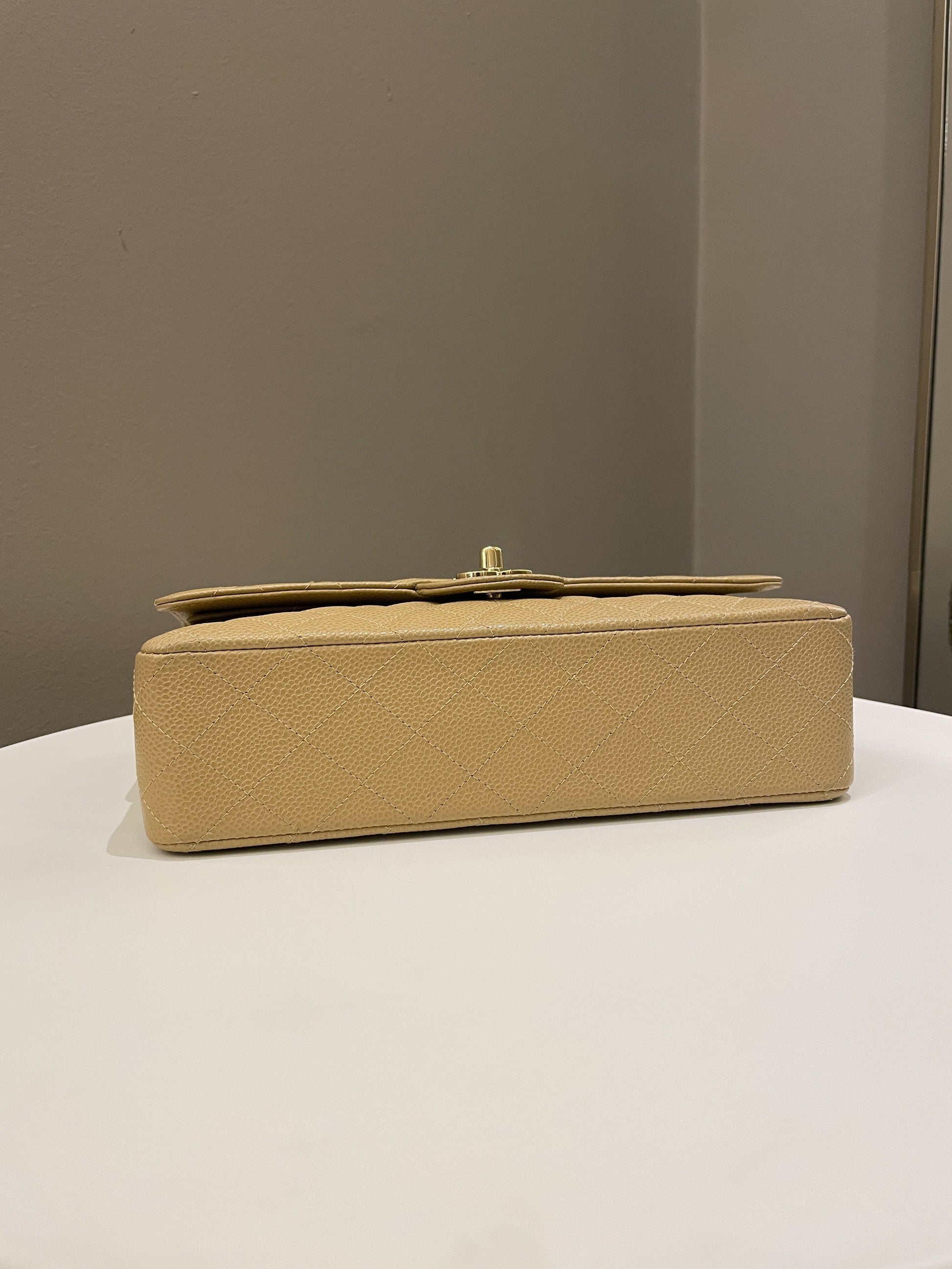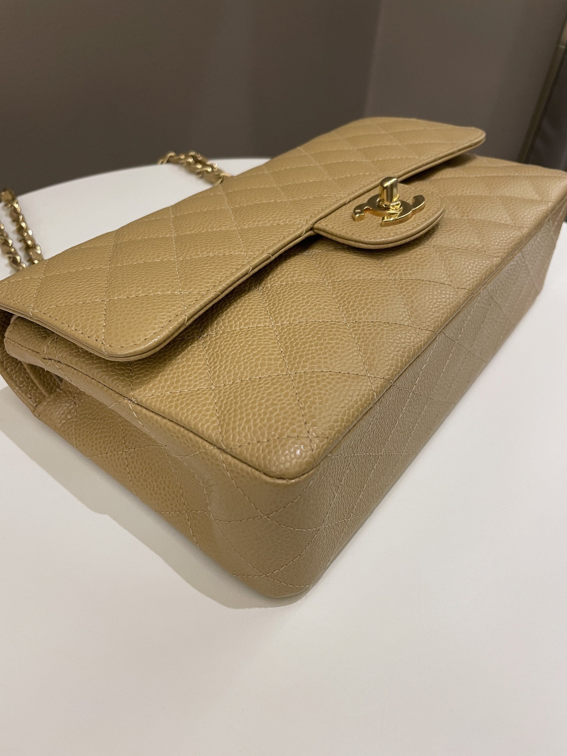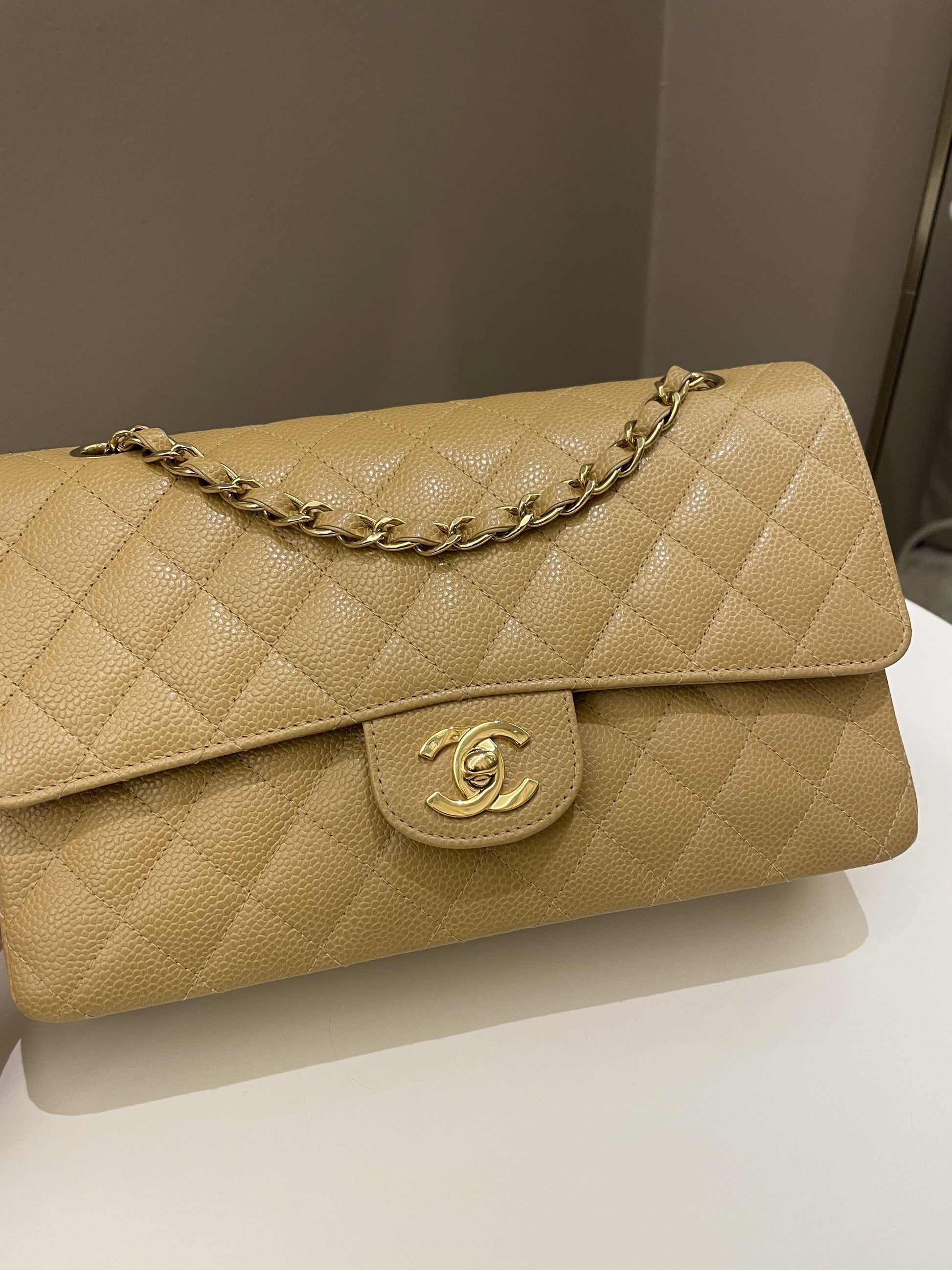 Chanel Vintage Classic Quilted Medium Double Flap Dark Beige Caviar