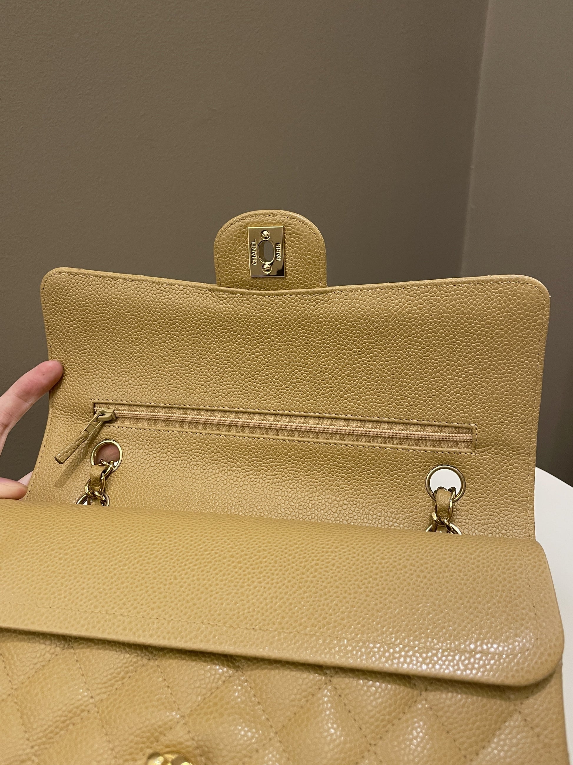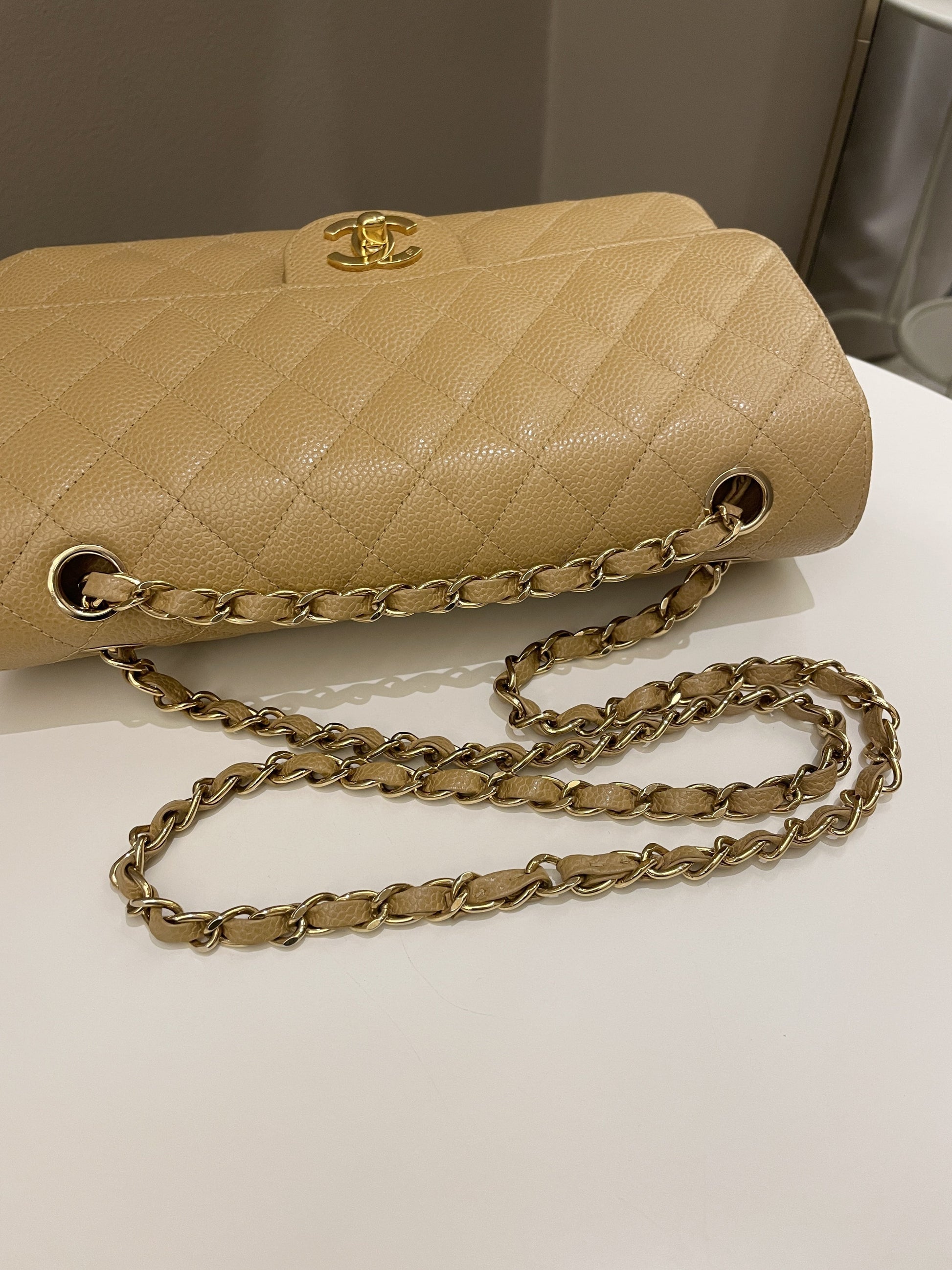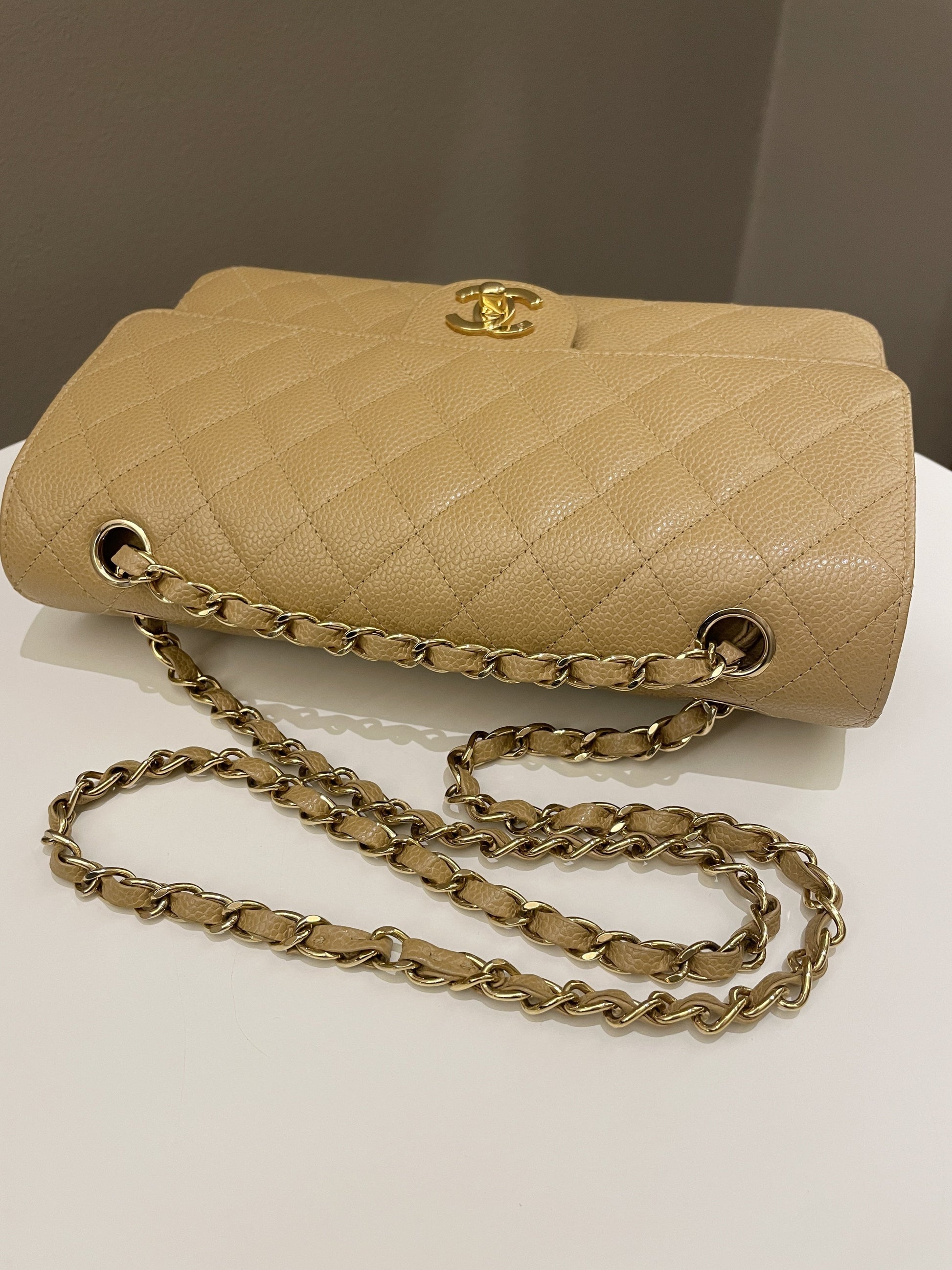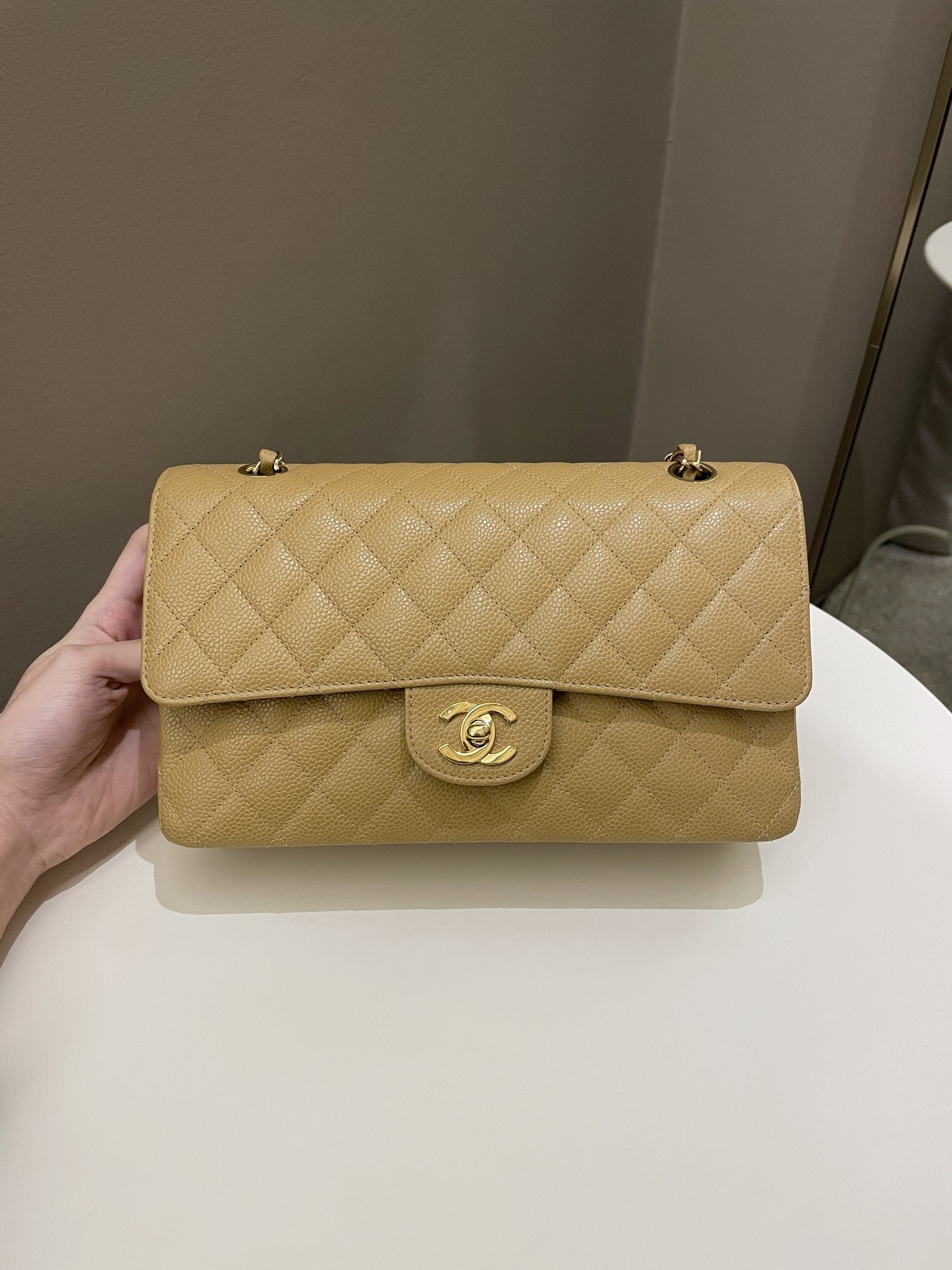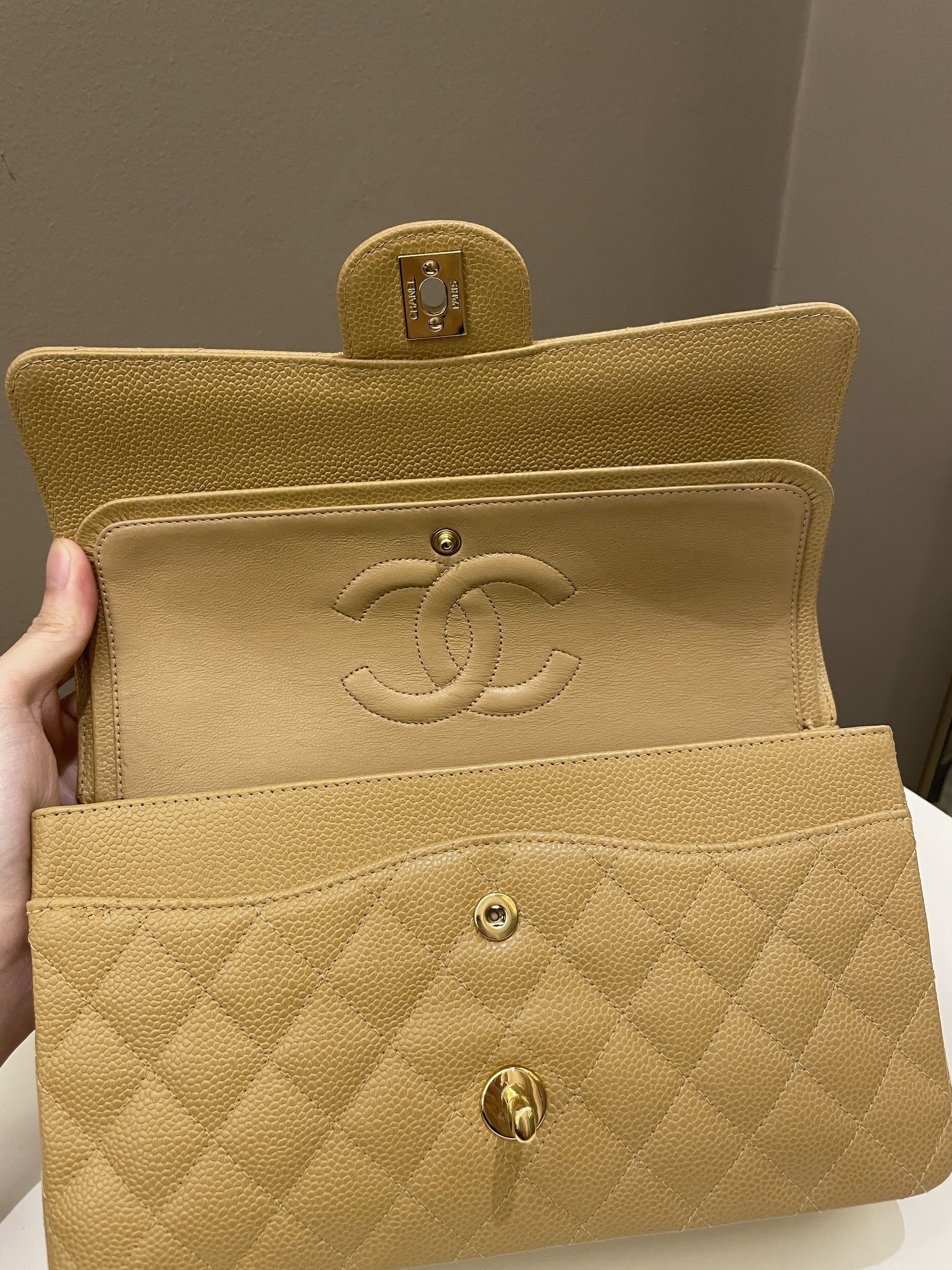 Chanel Vintage Classic Quilted Medium Double Flap Dark Beige Caviar