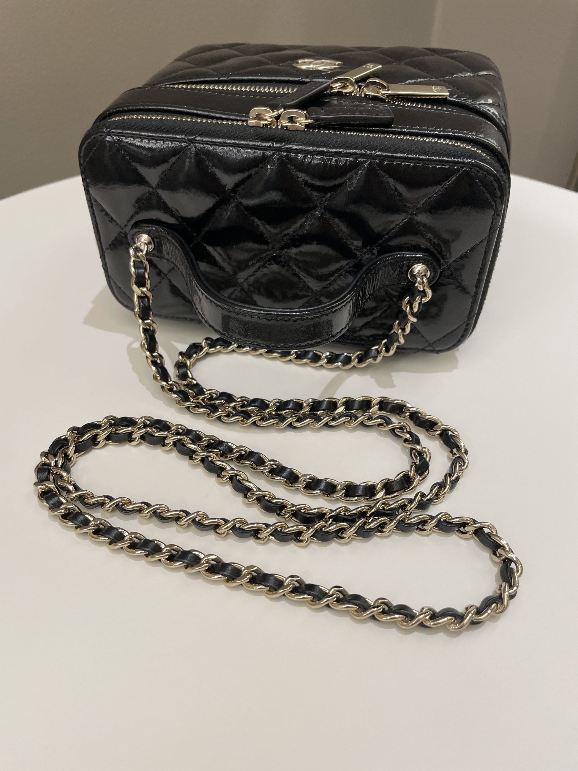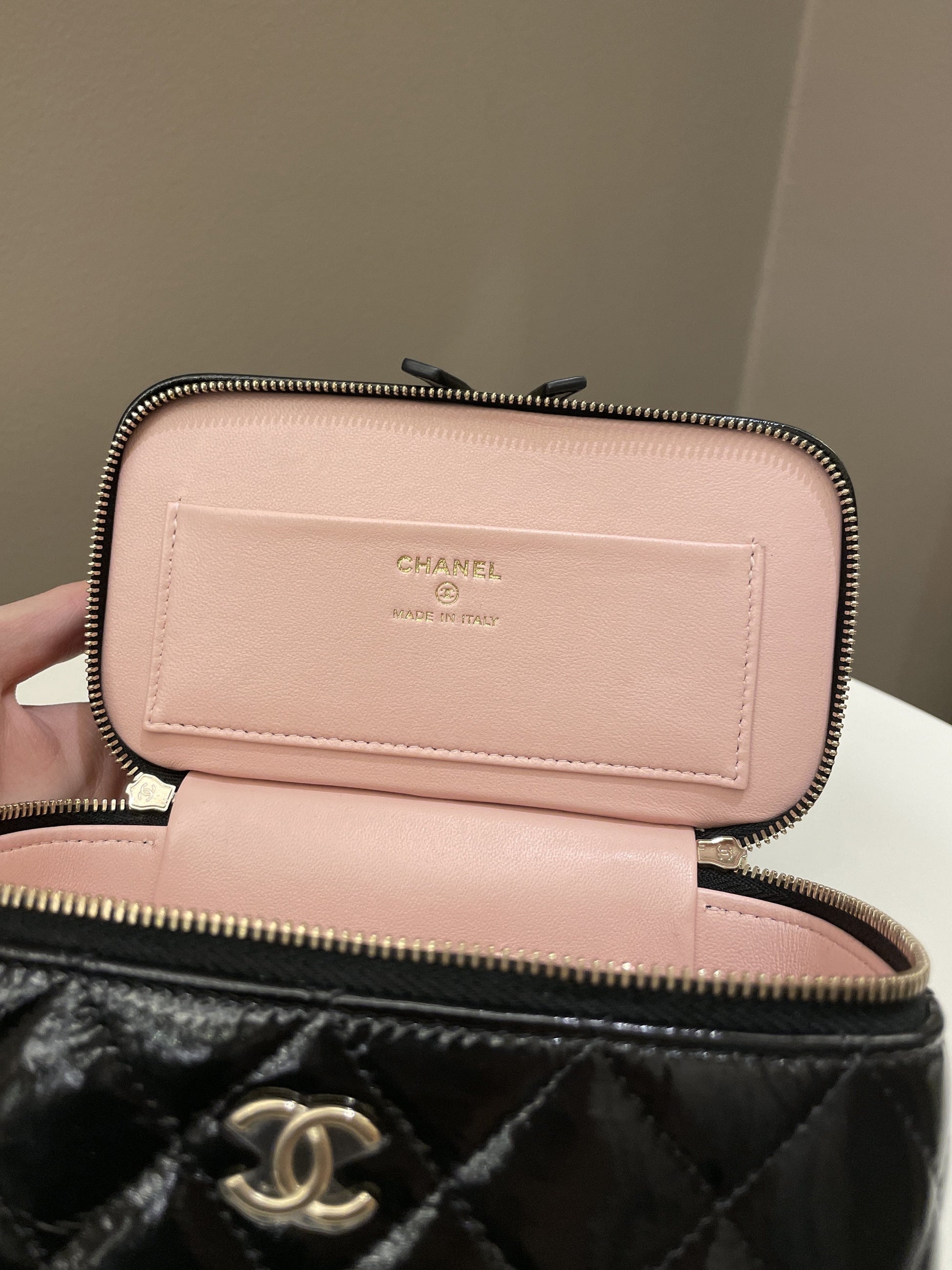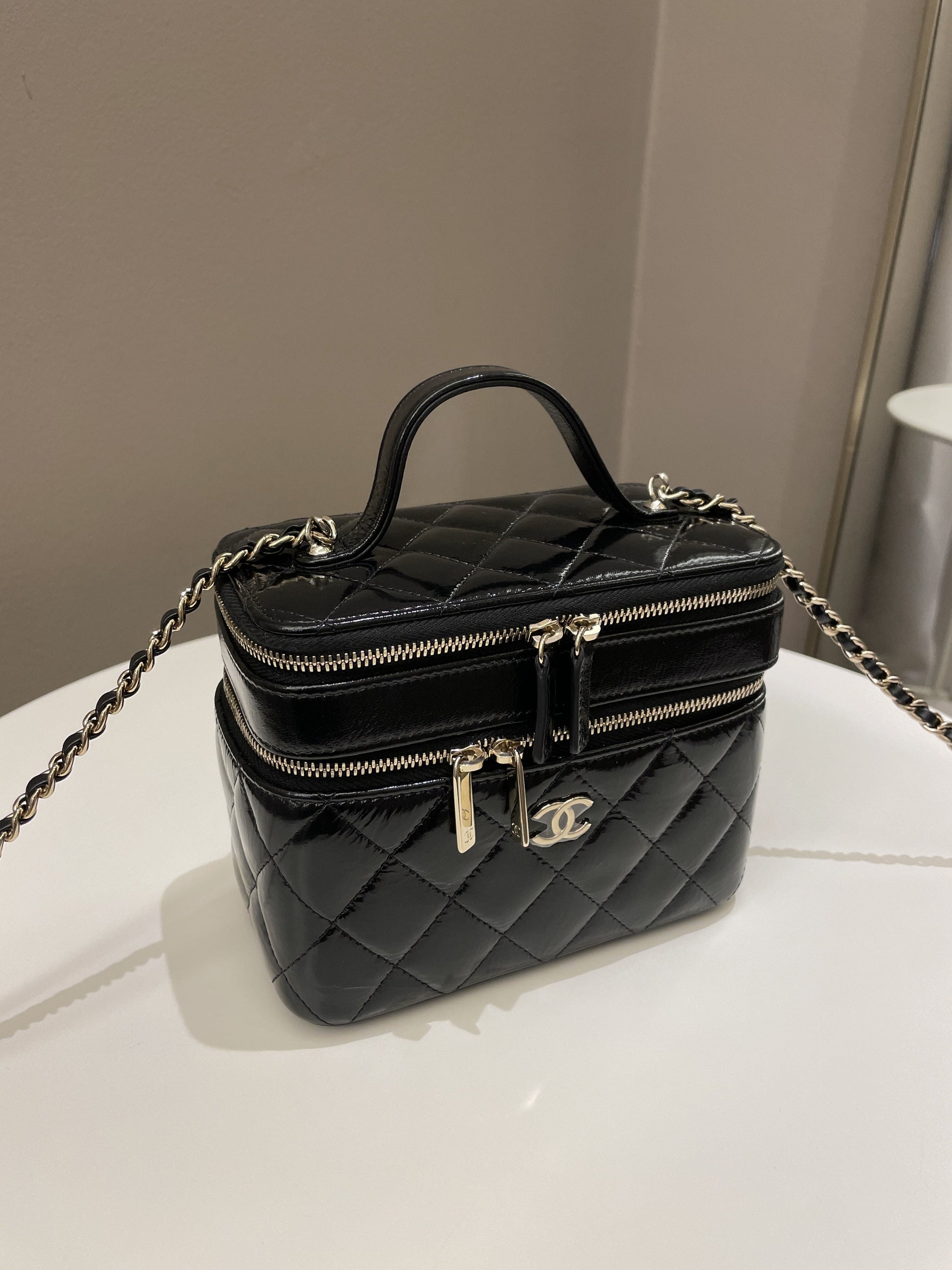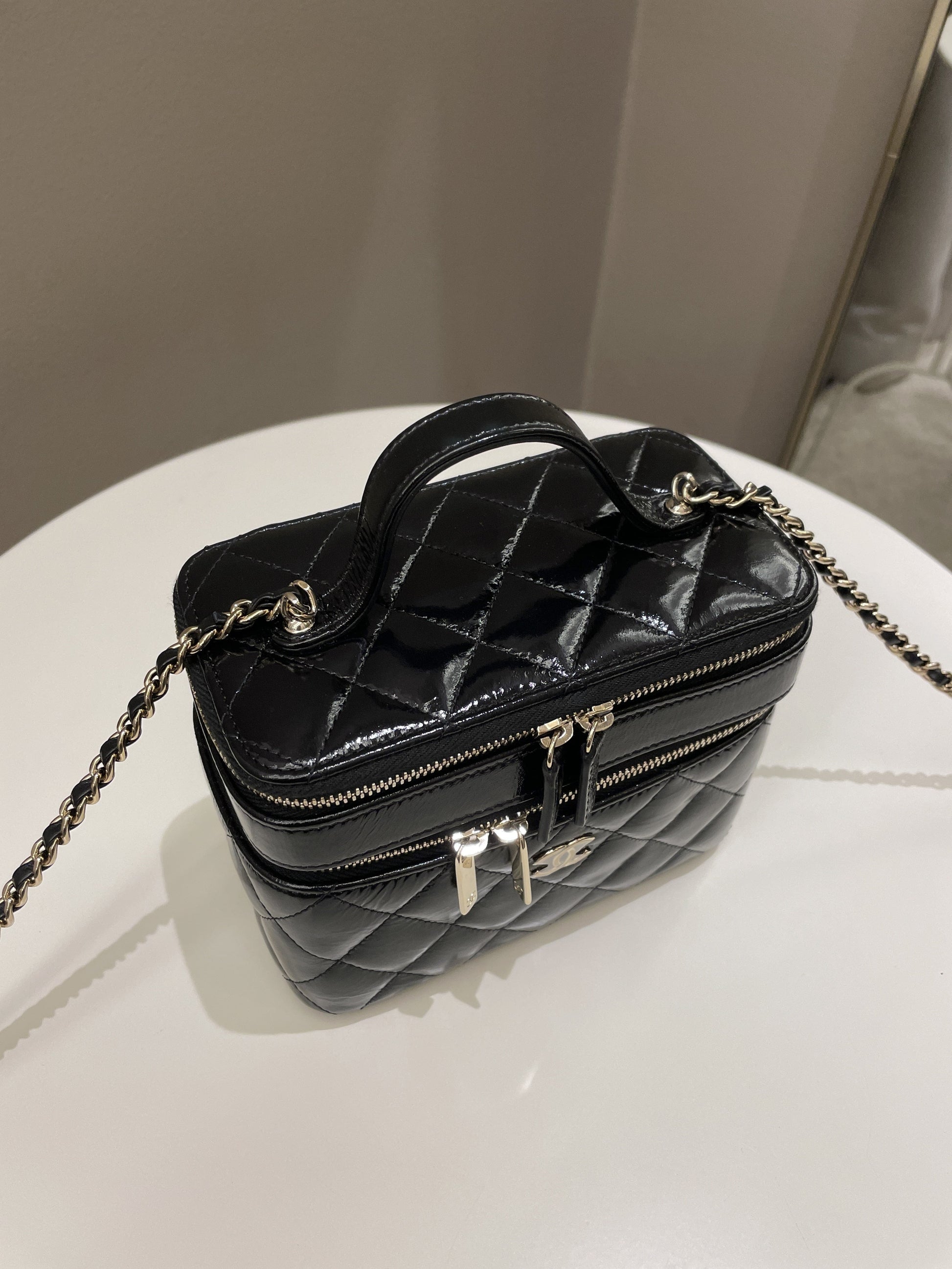Chanel 22B Top Handle Tall Vanity Black Patent