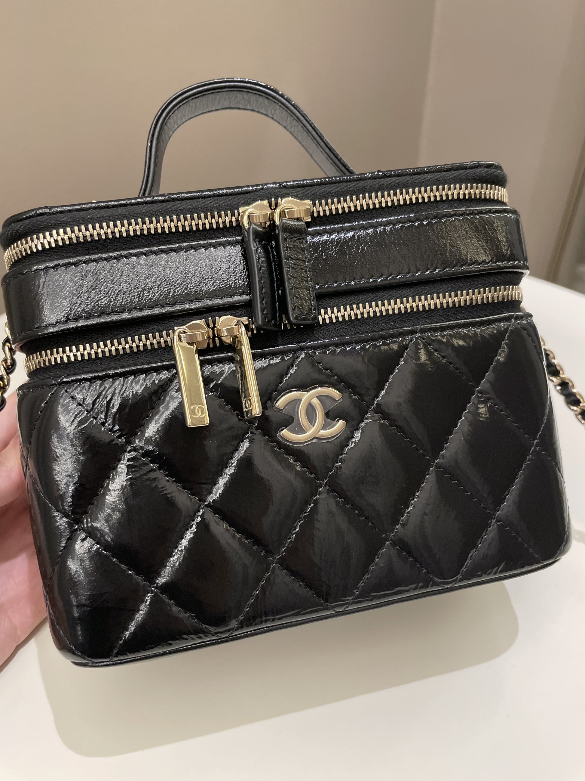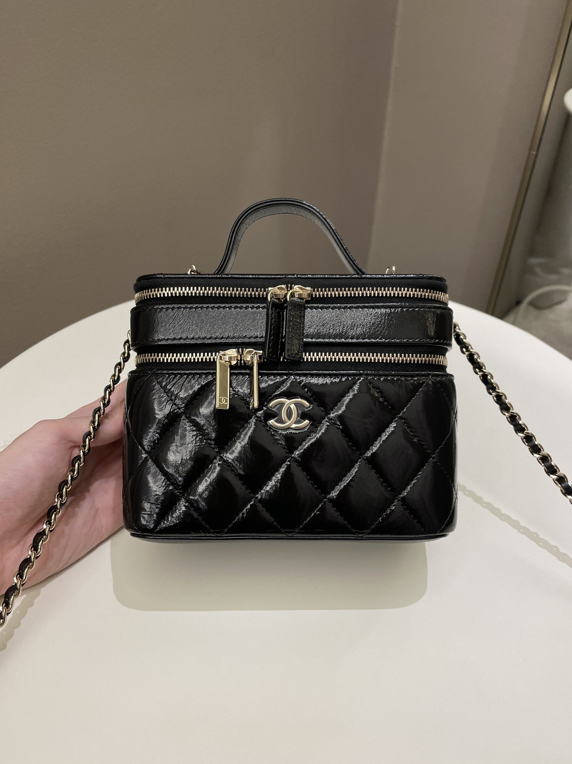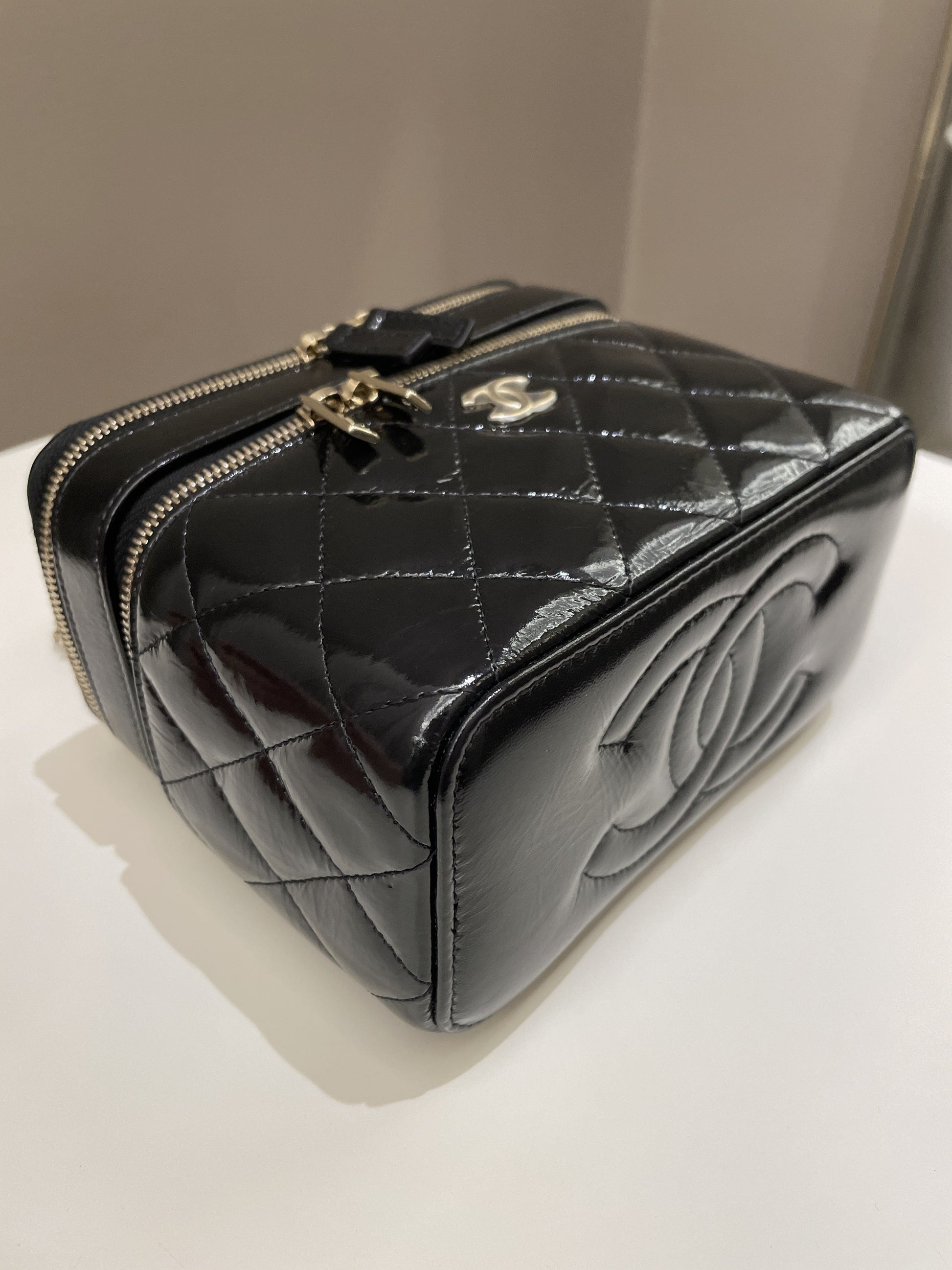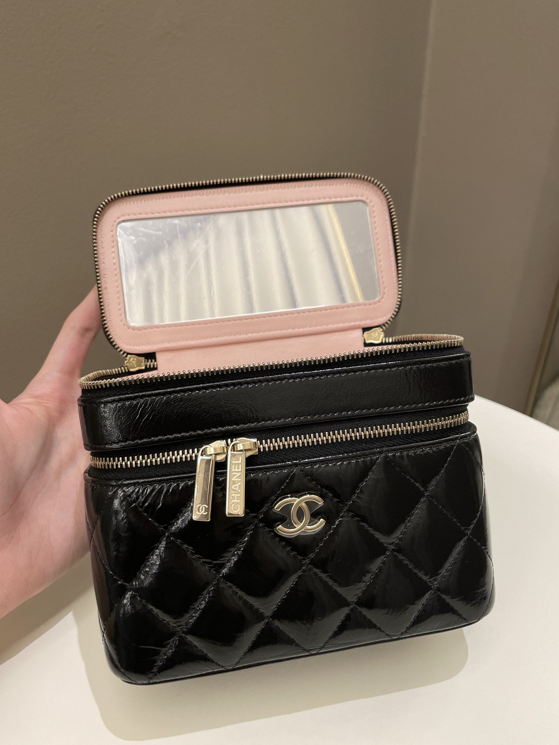 Chanel 22B Top Handle Tall Vanity Black Patent