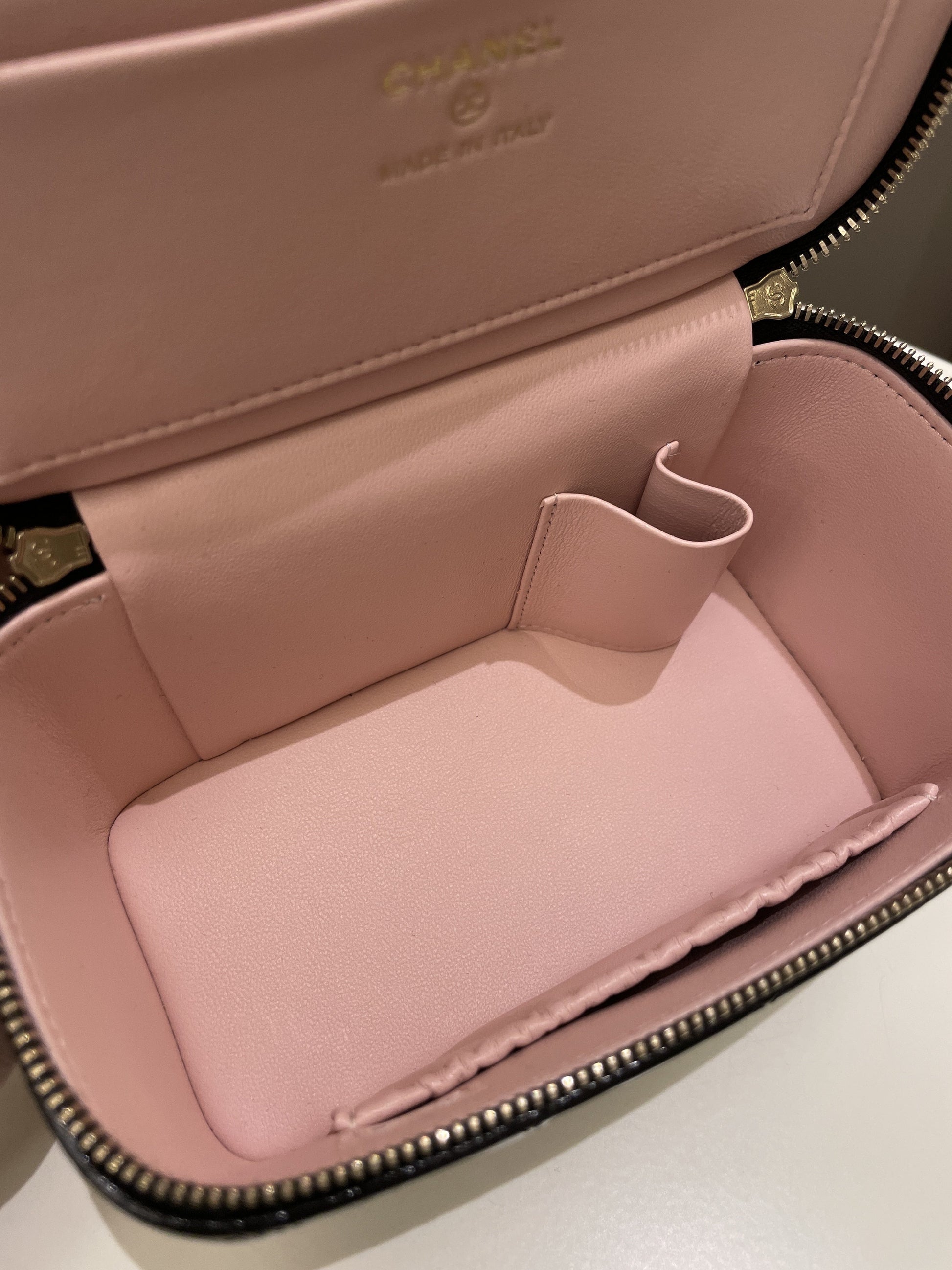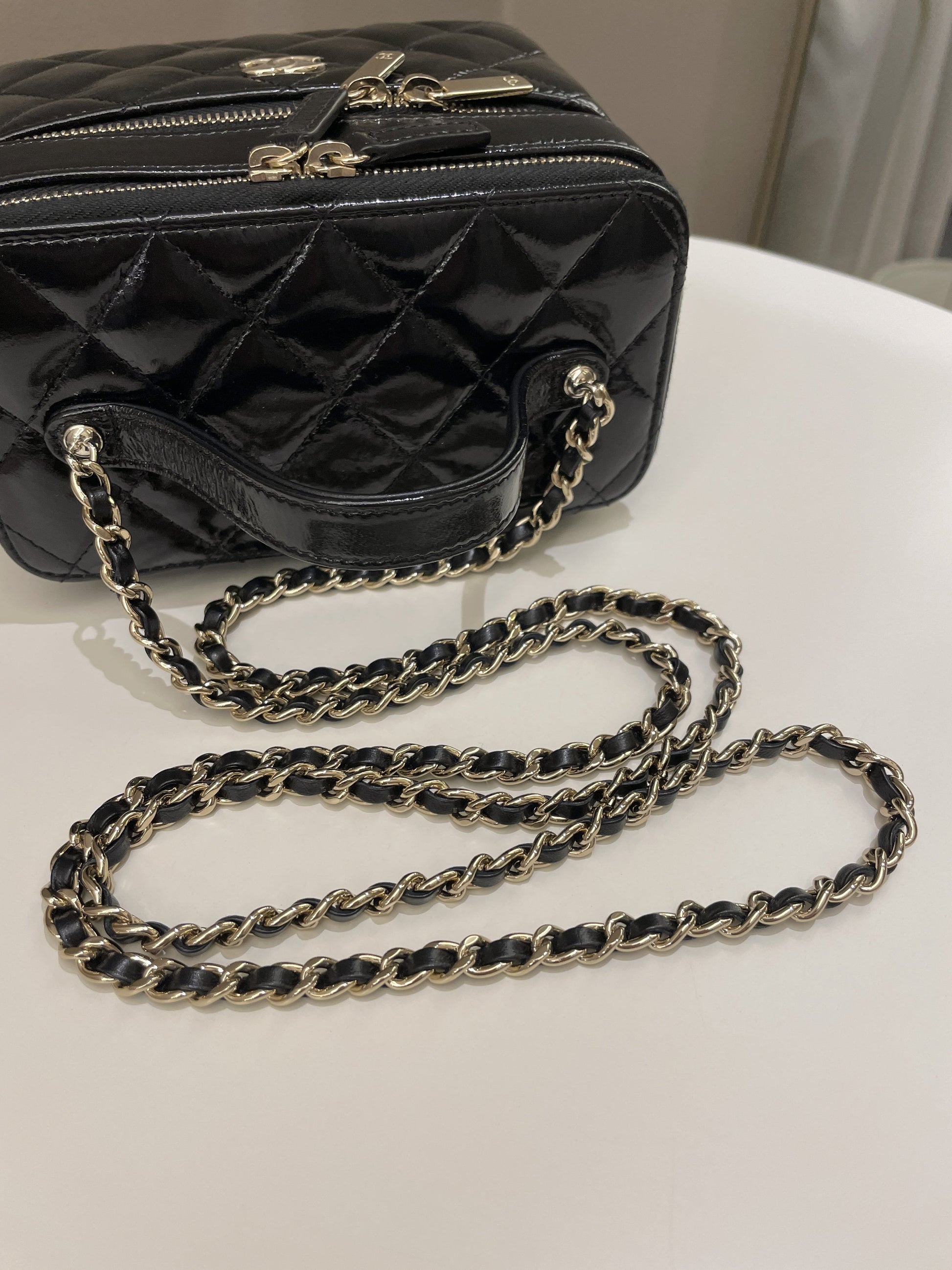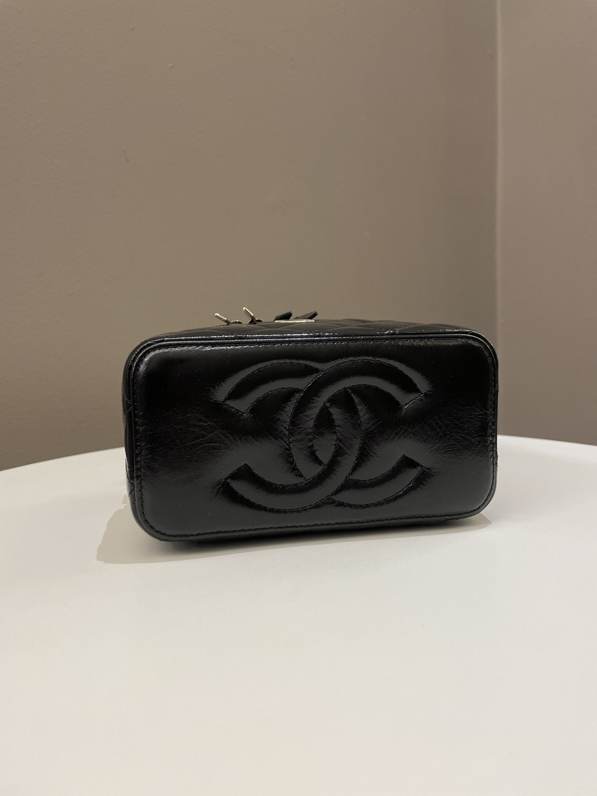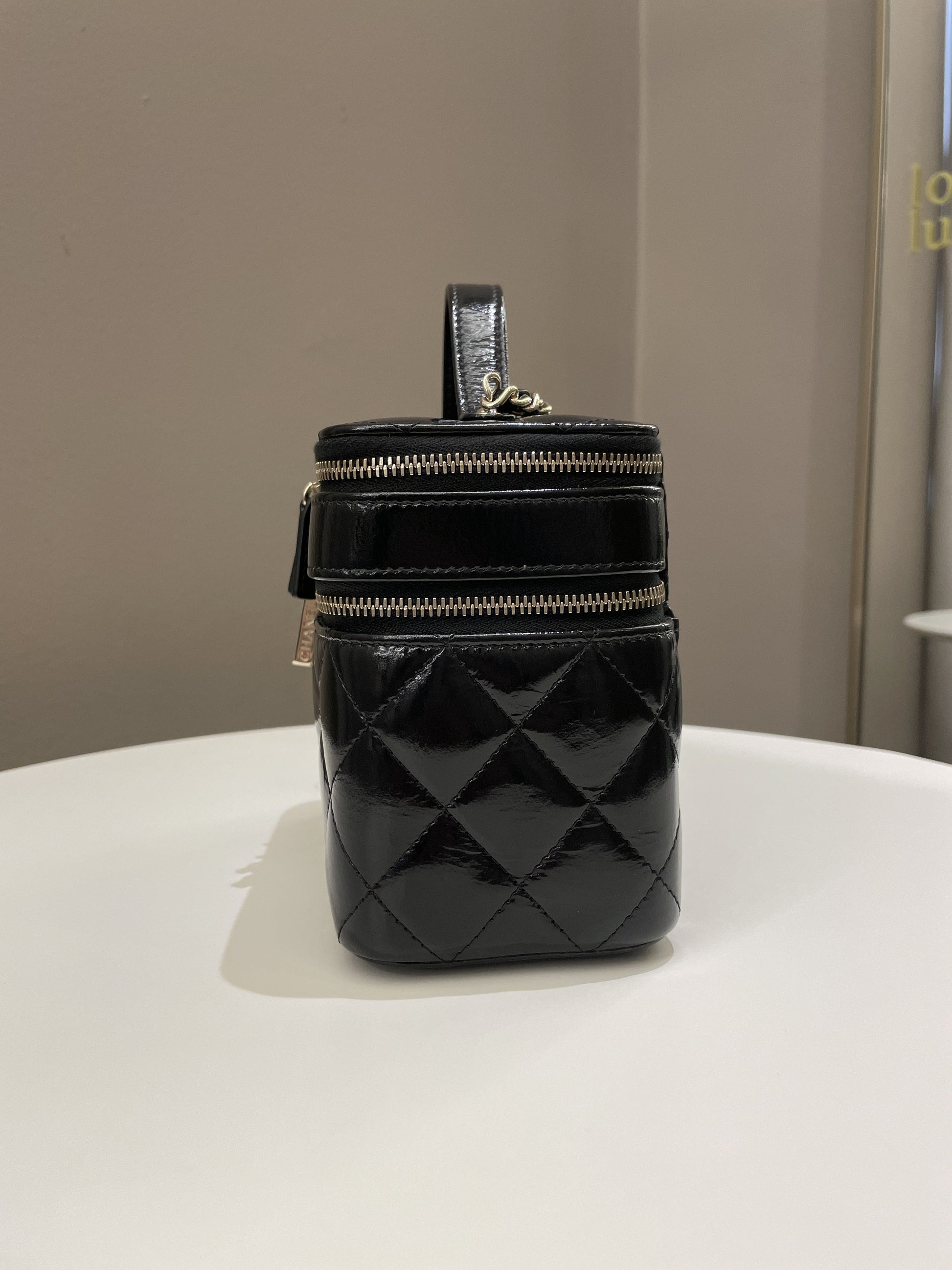 Chanel 22B Top Handle Tall Vanity Black Patent