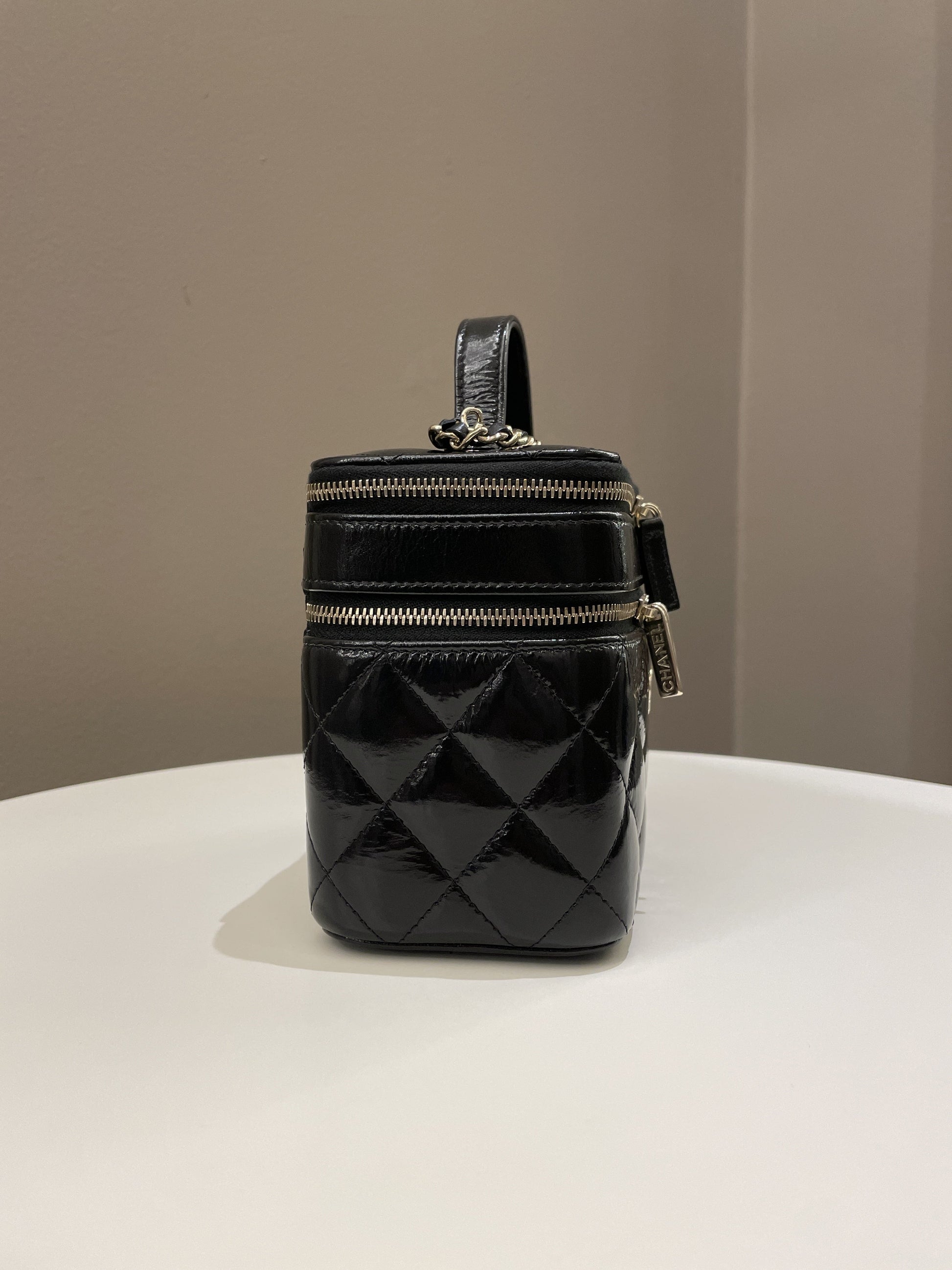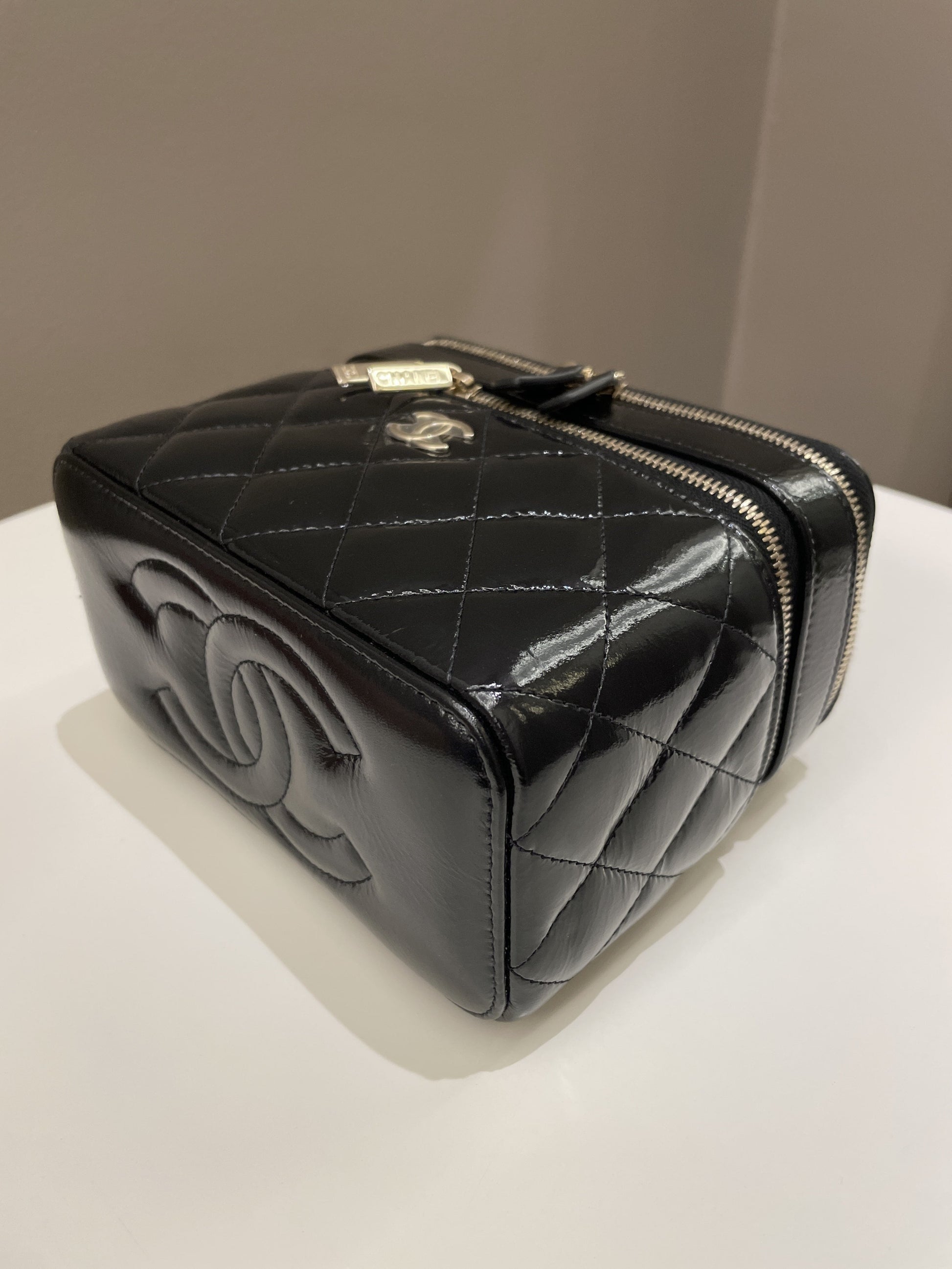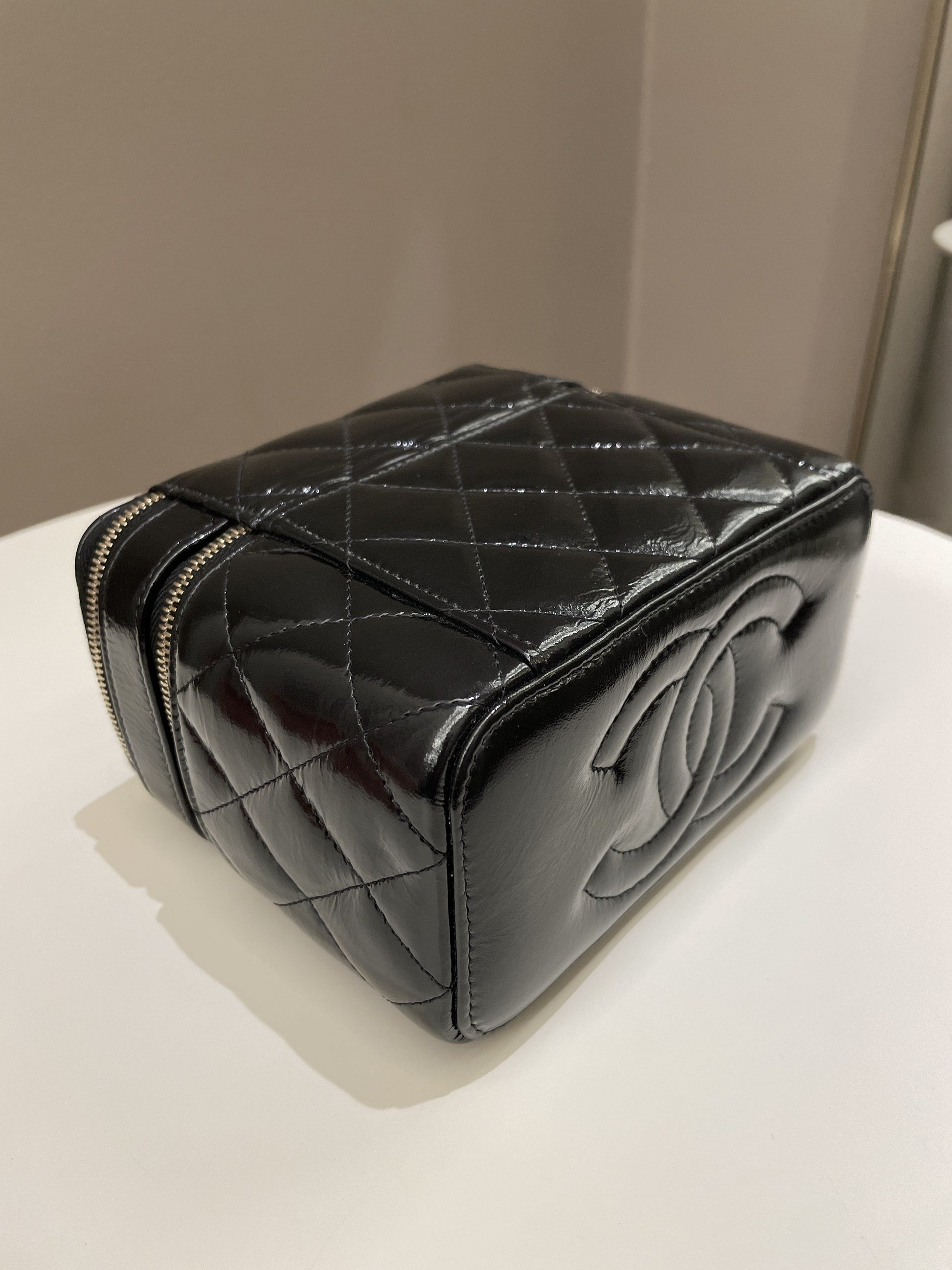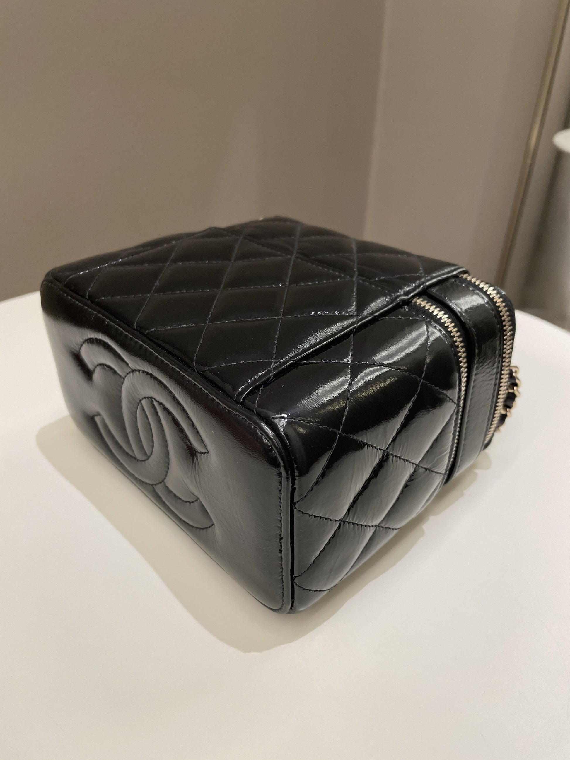 Chanel 22B Top Handle Tall Vanity Black Patent