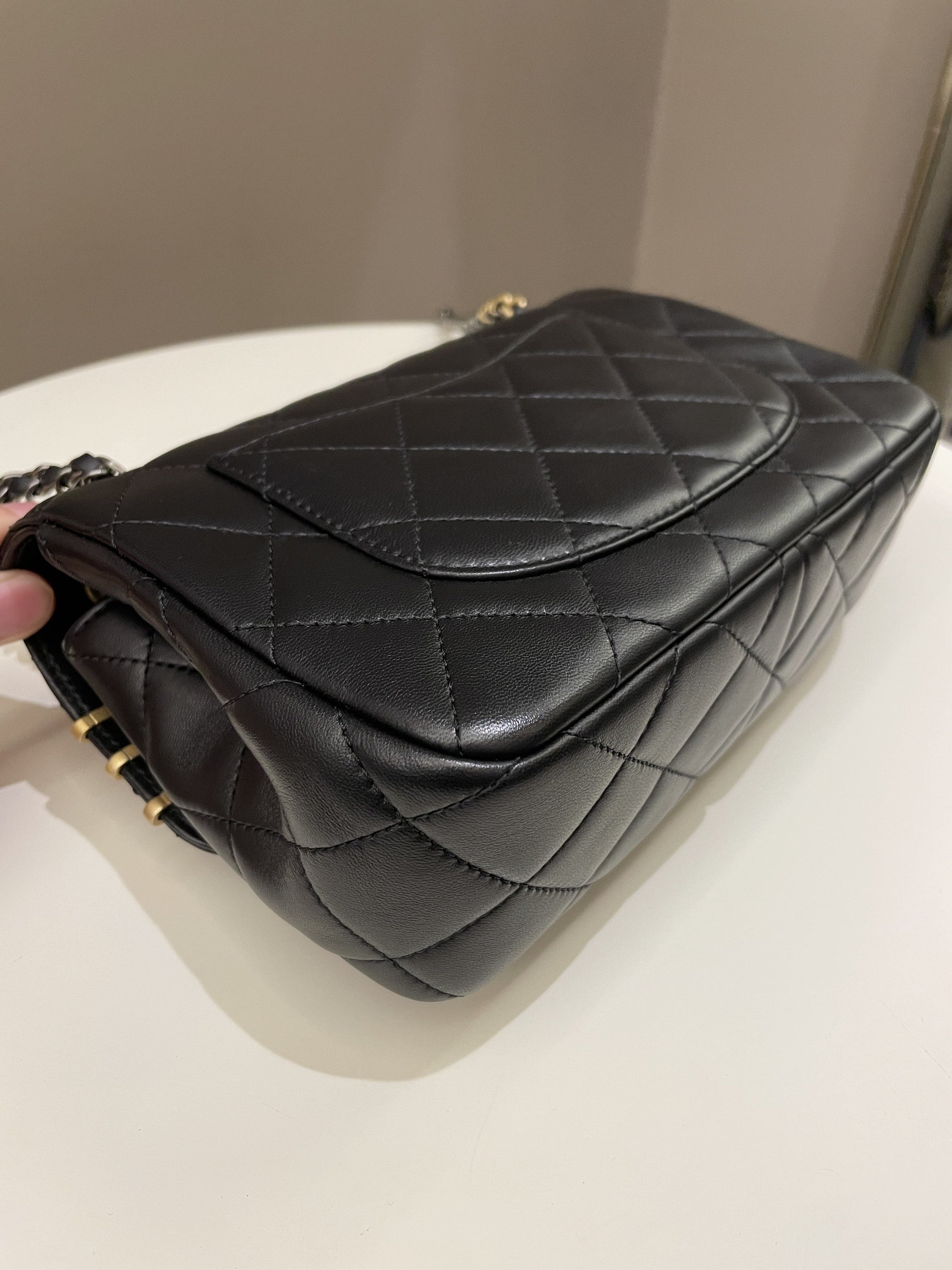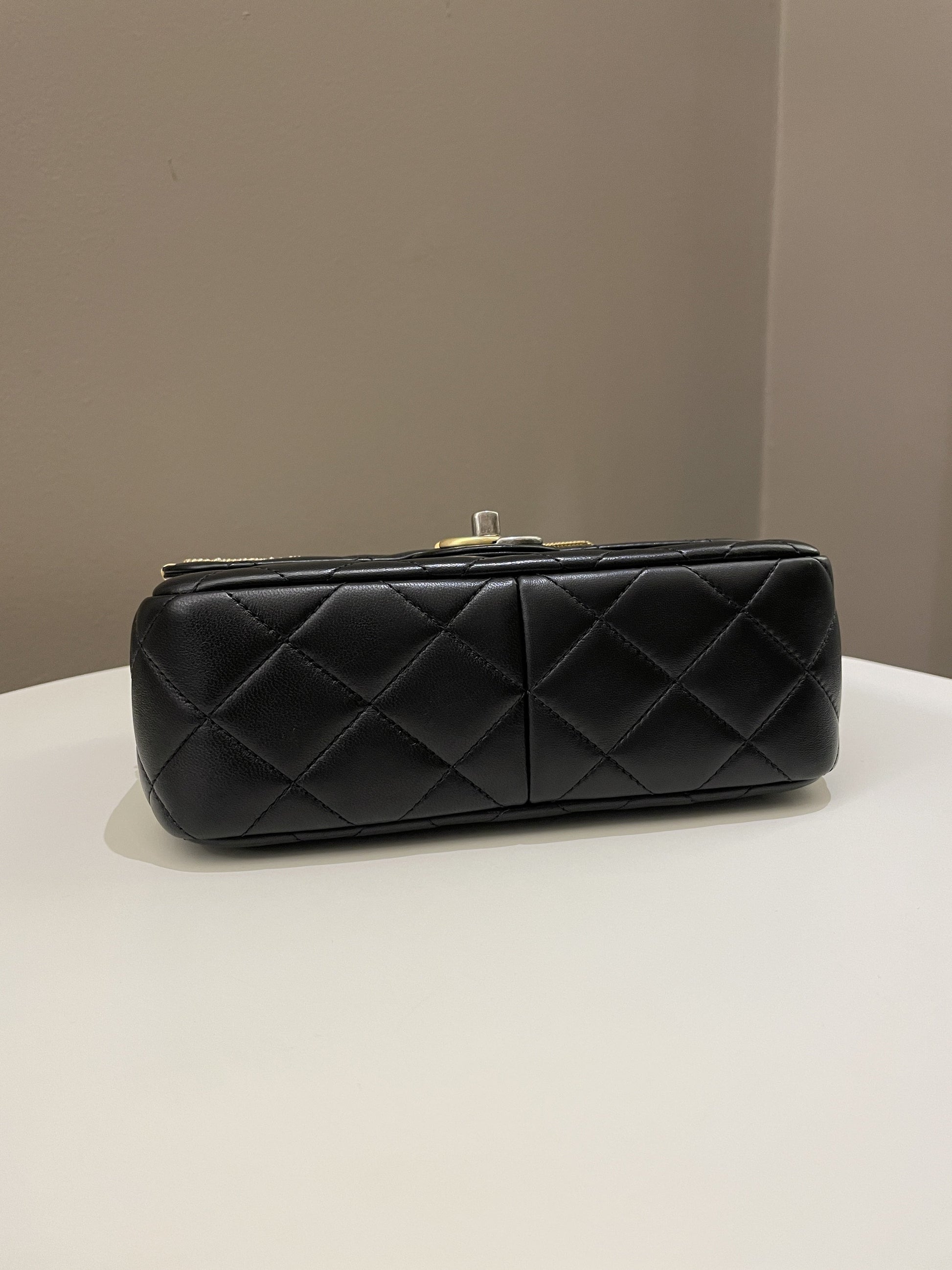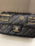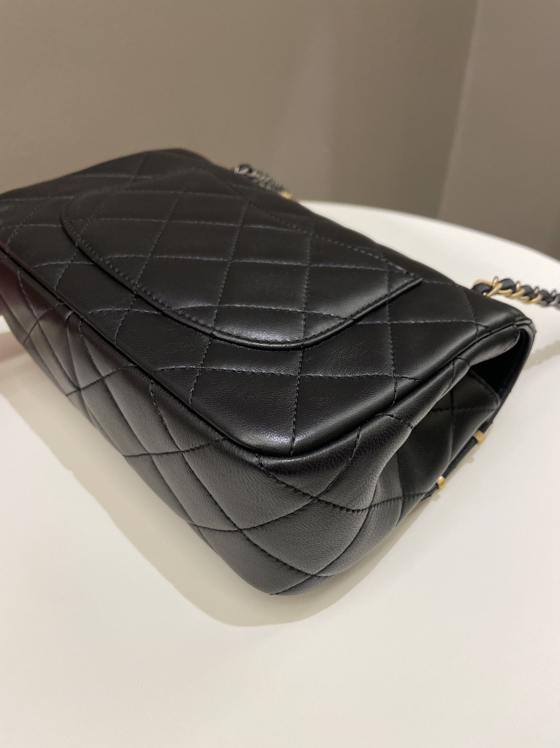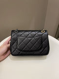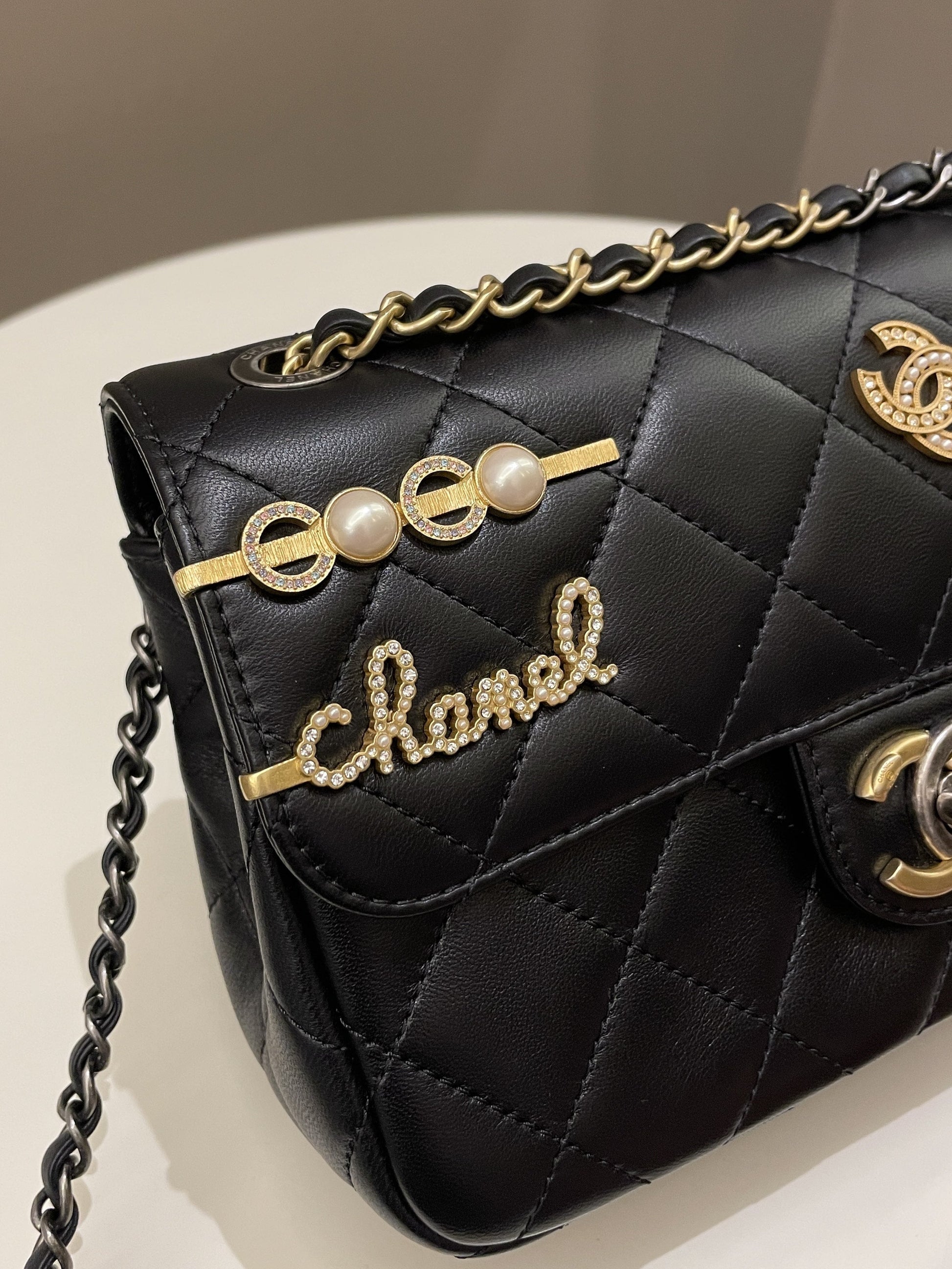 Chanel 22C Coco Pearl Signature Flap Black Lambskin
