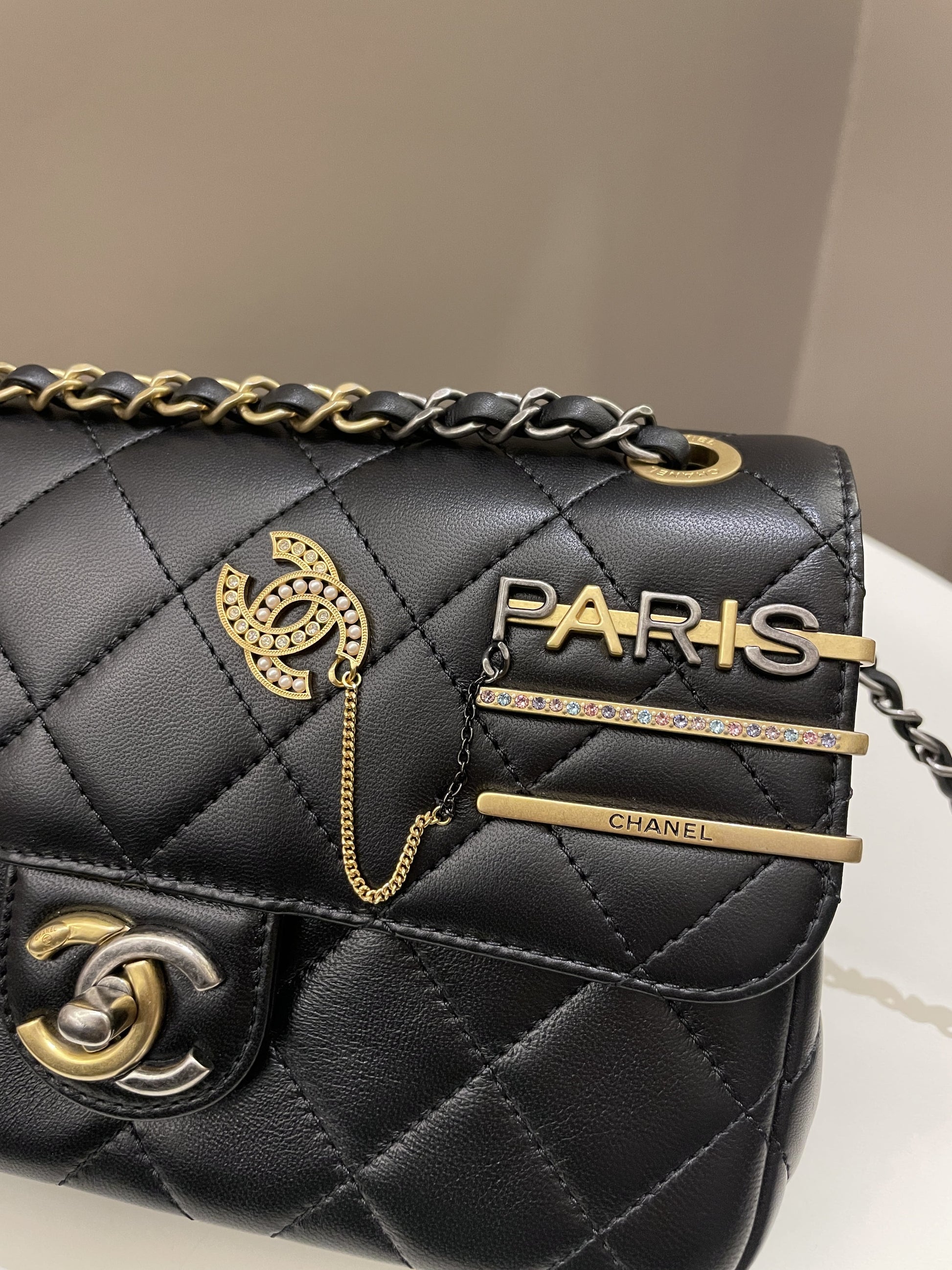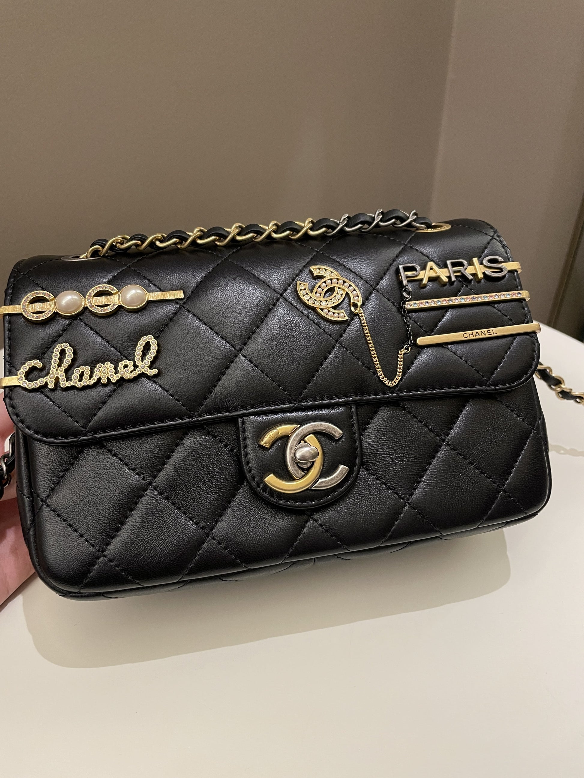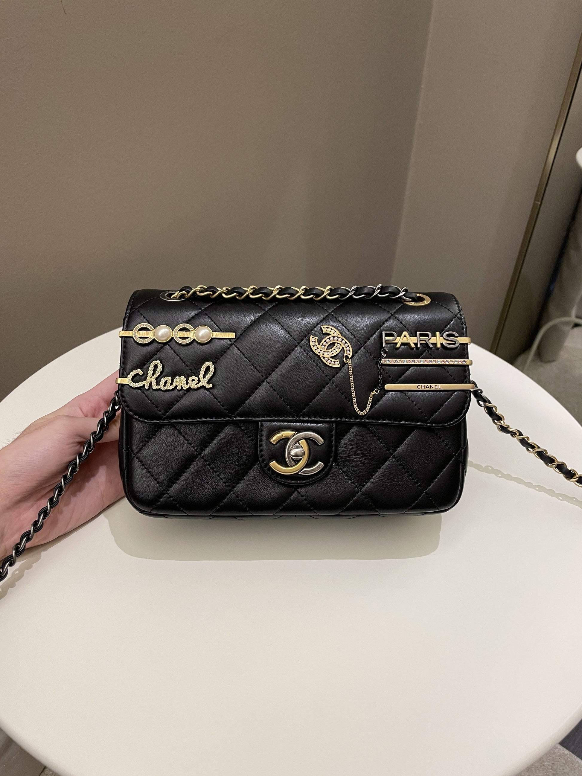 Chanel 22C Coco Pearl Signature Flap Black Lambskin