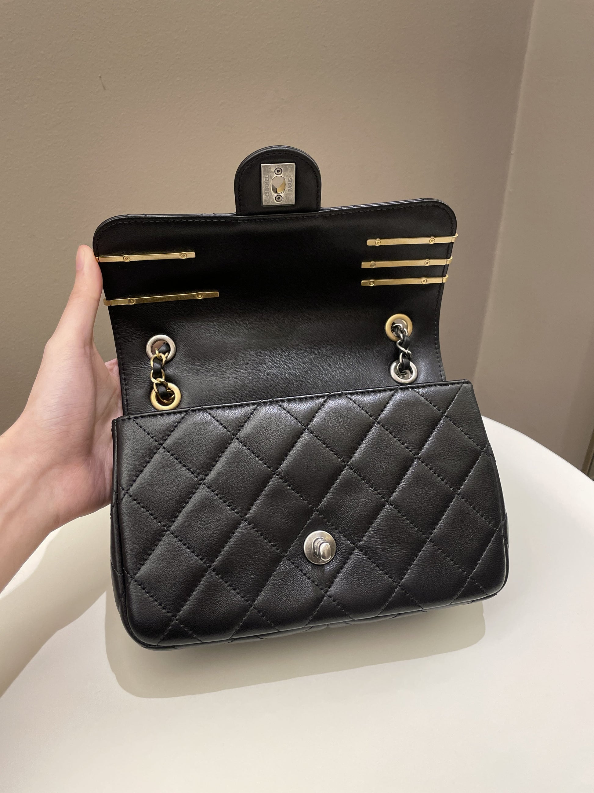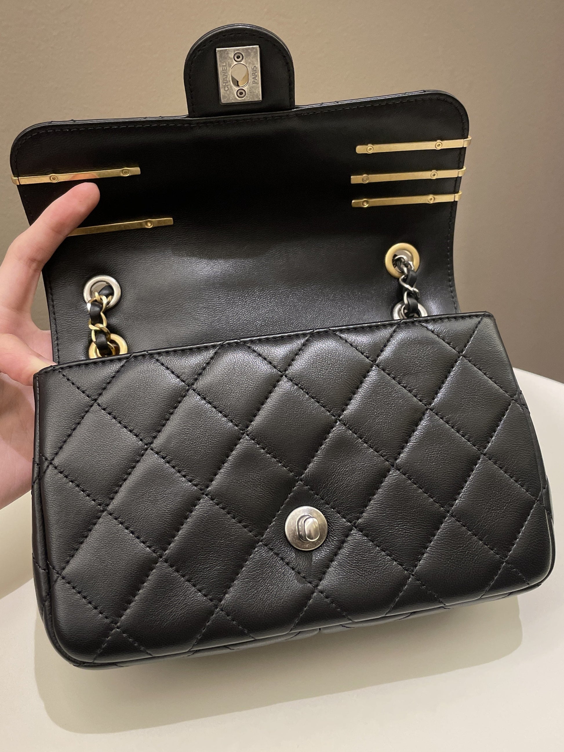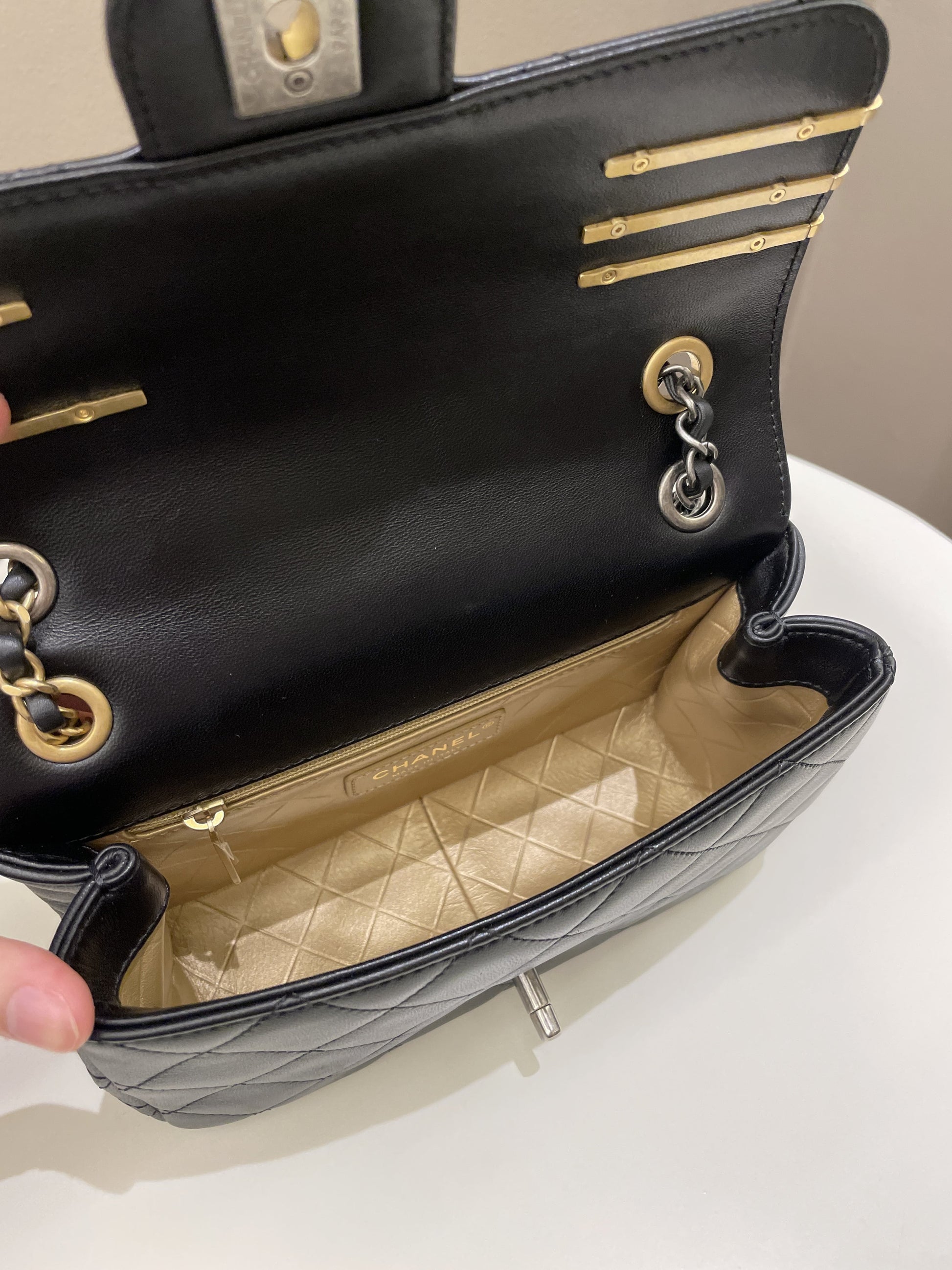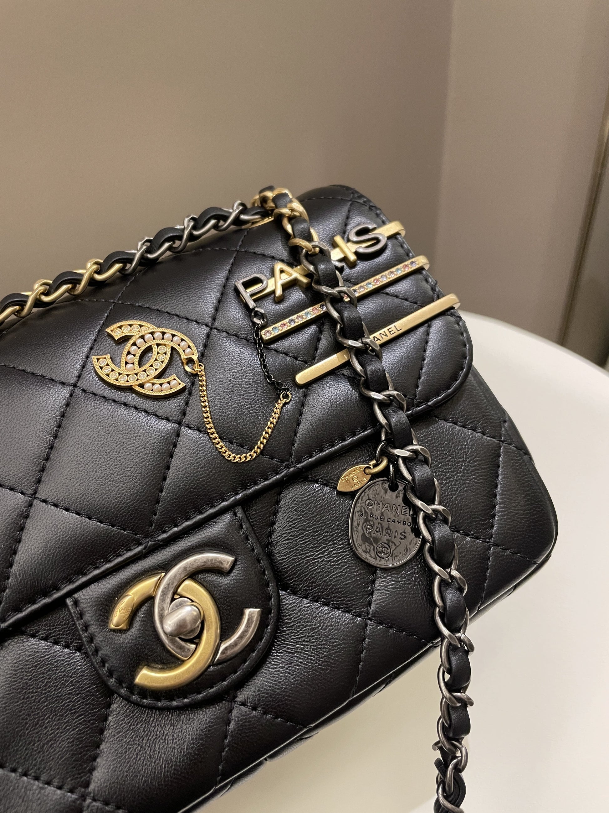 Chanel 22C Coco Pearl Signature Flap Black Lambskin