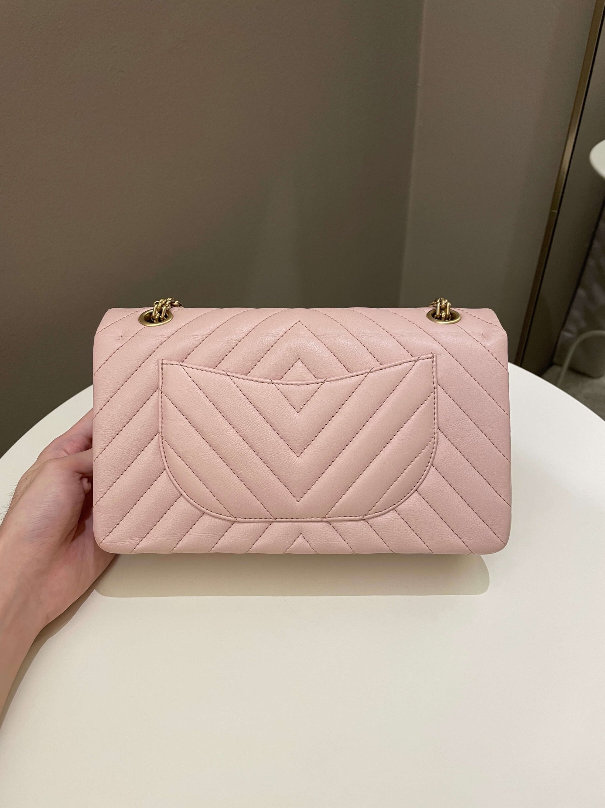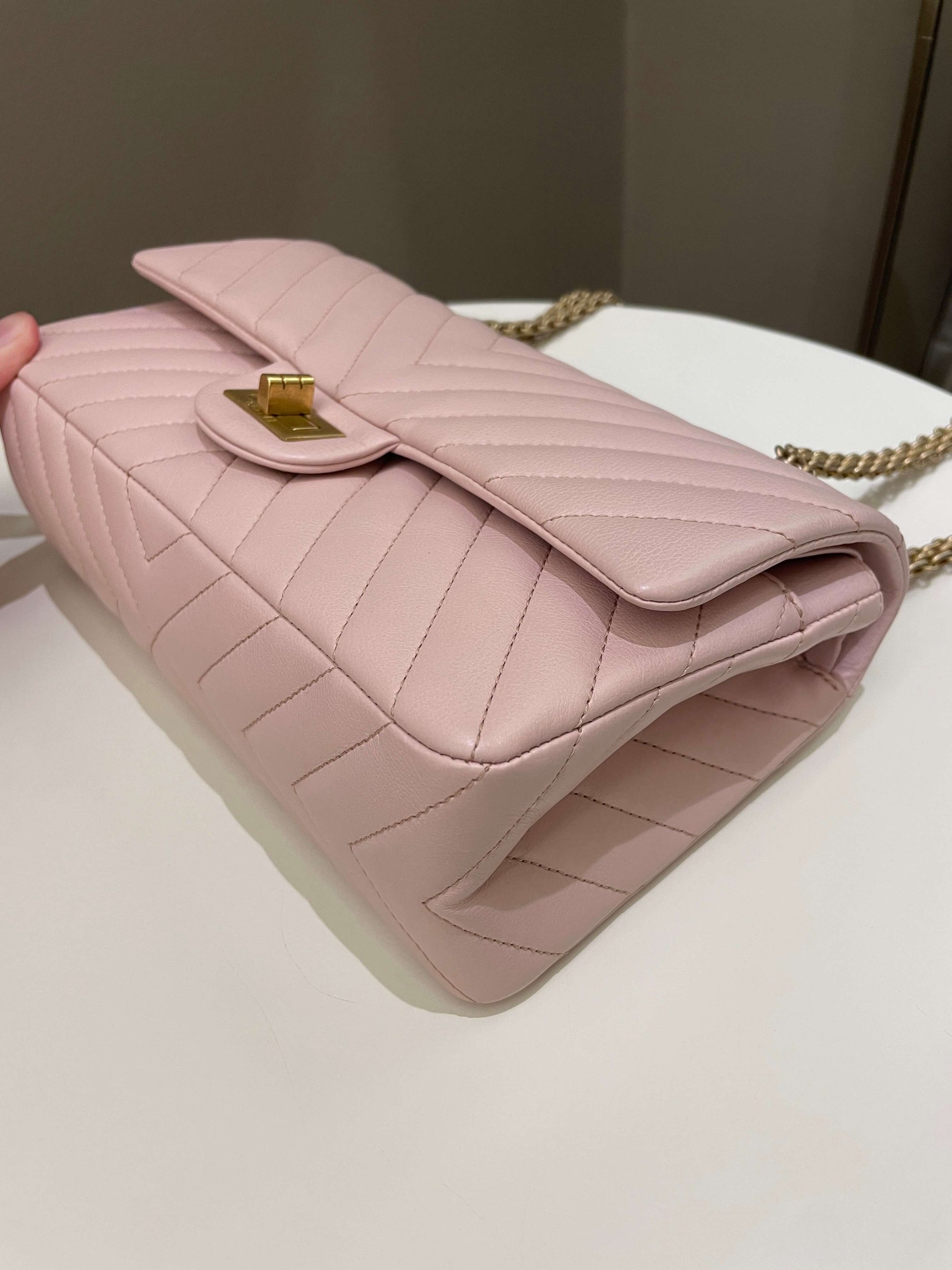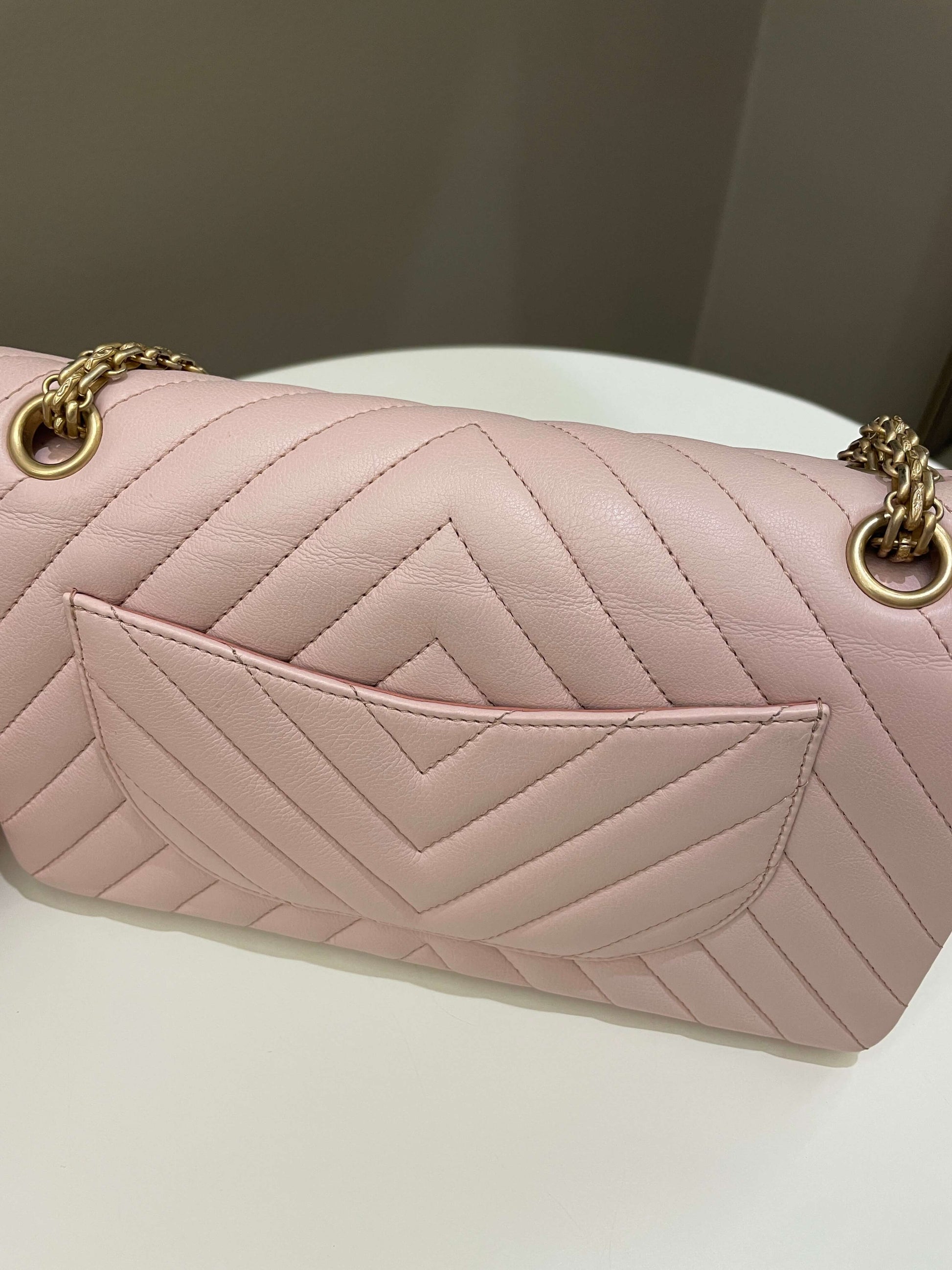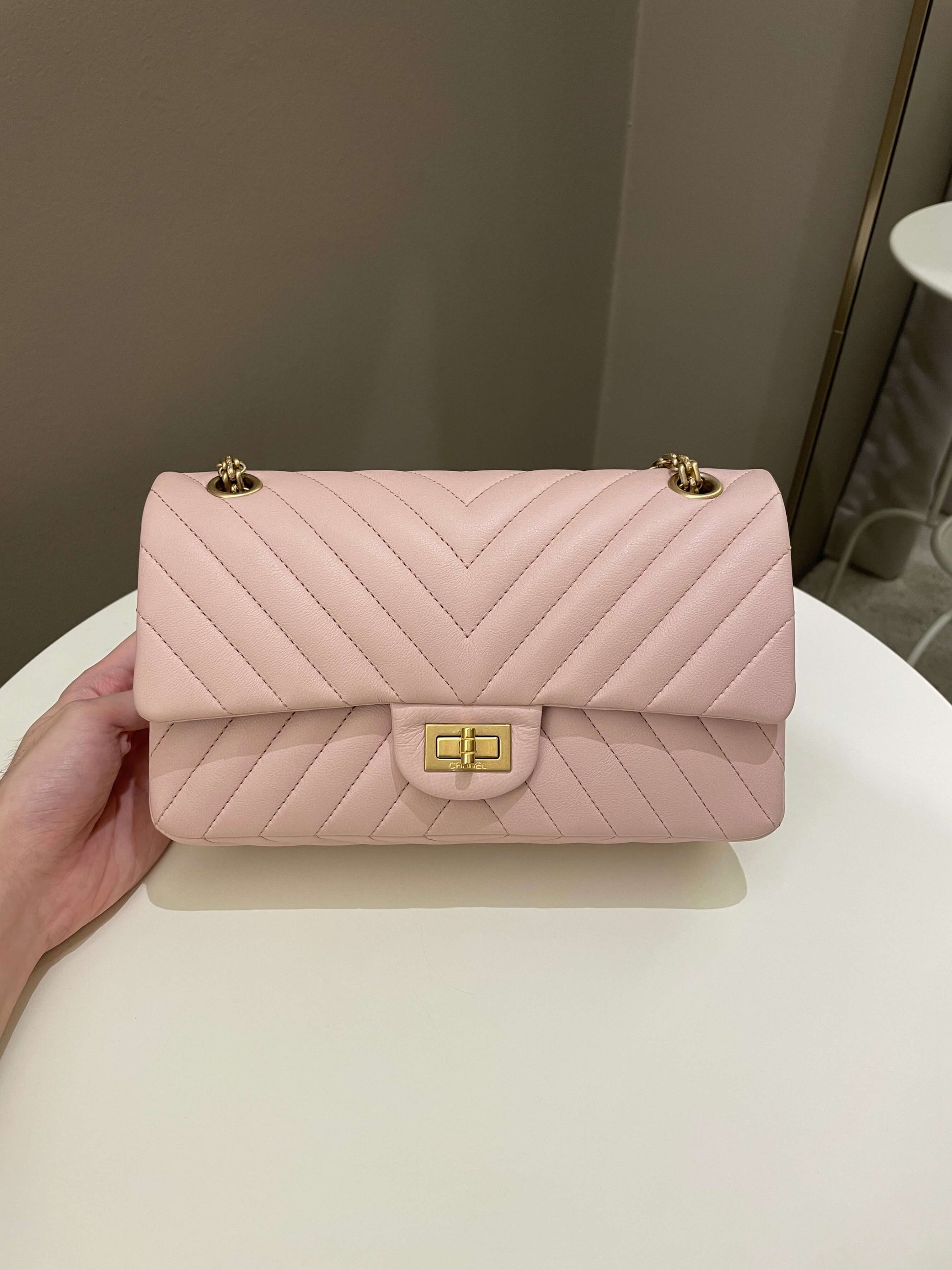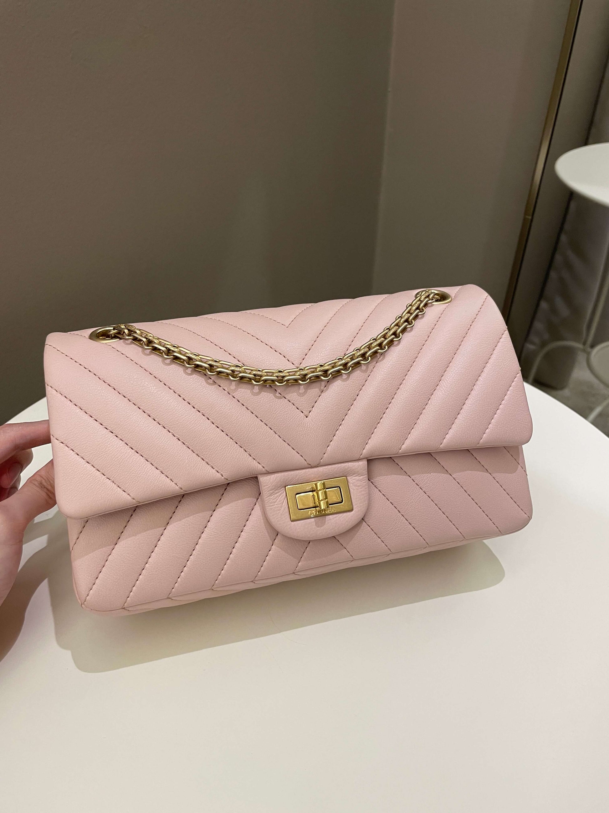 Chanel 17C Classic 2.55 Chevron Reissue 225 Pale Pink Calfskin