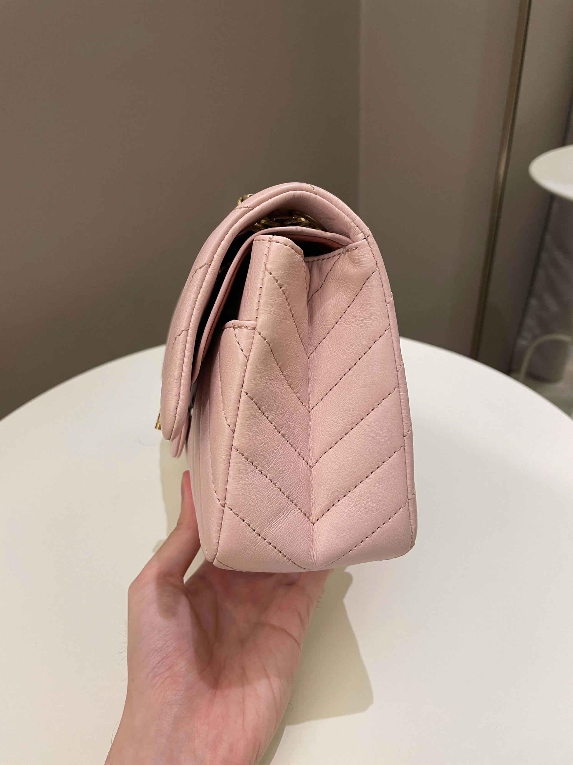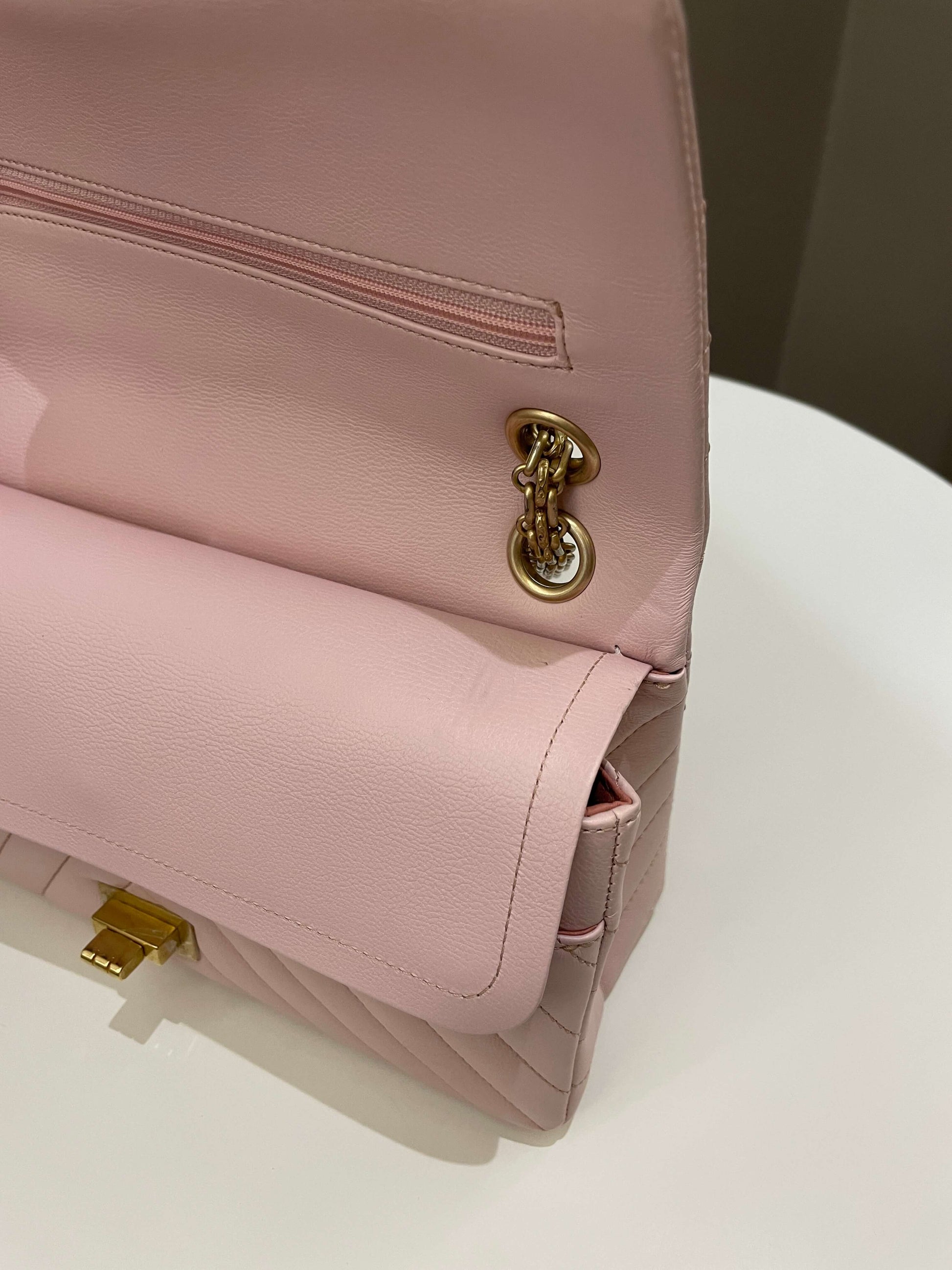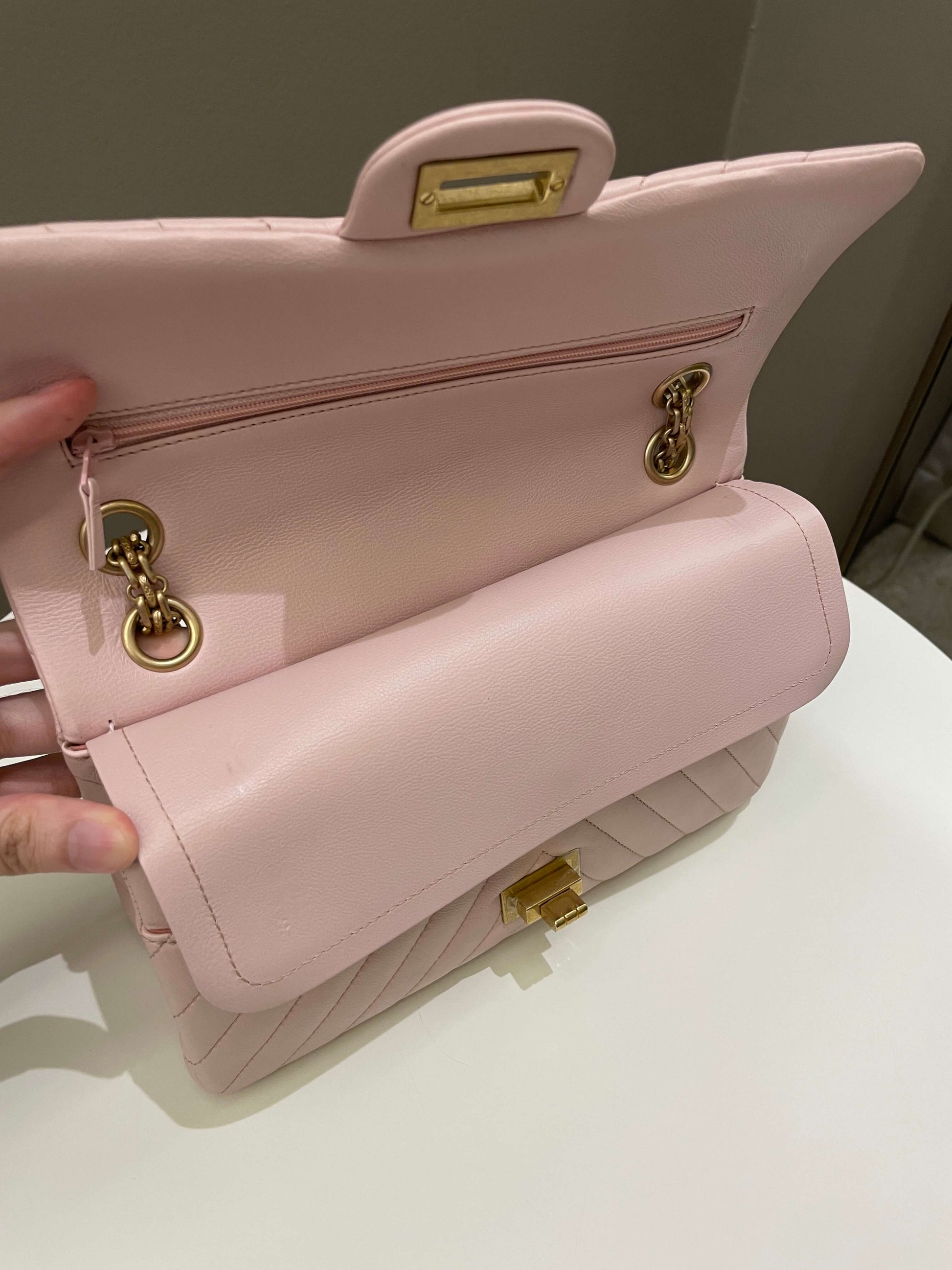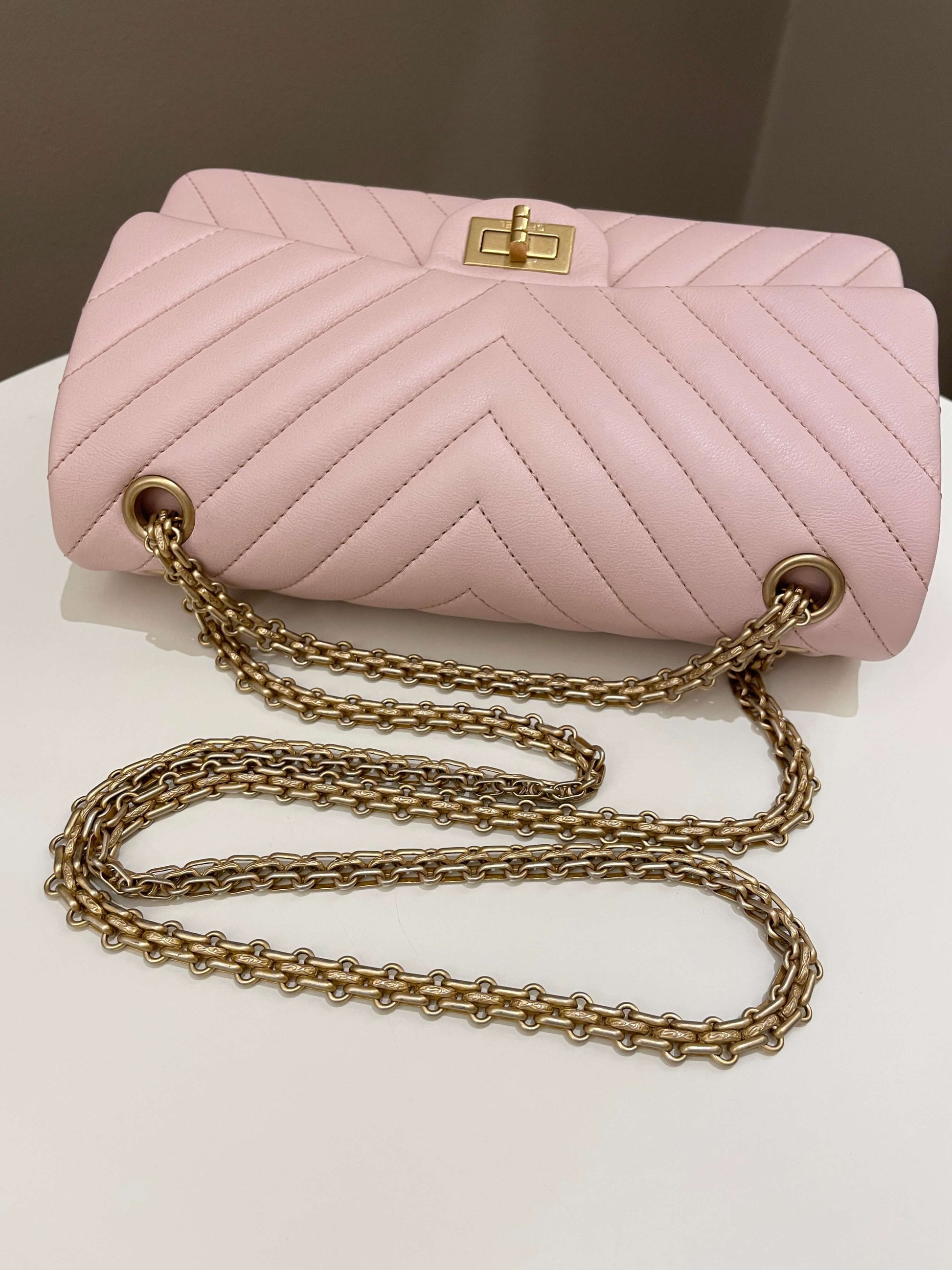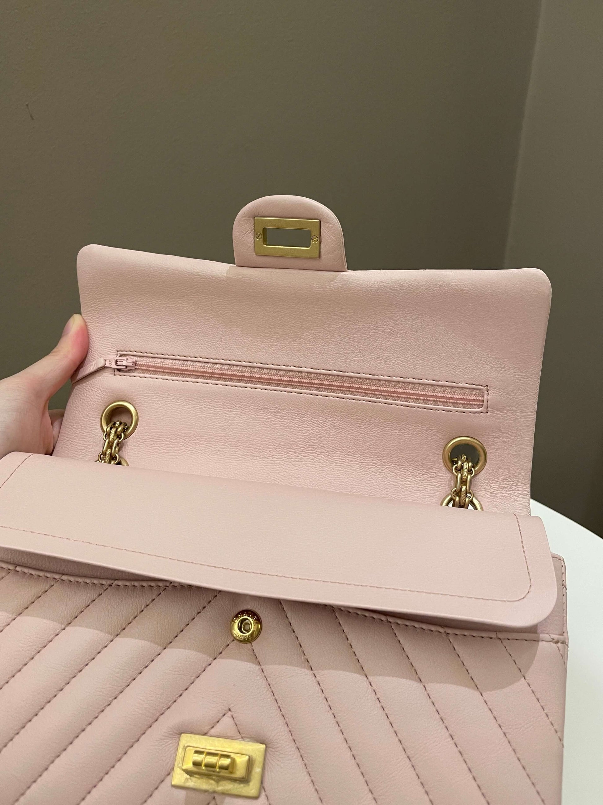 Chanel 17C Classic 2.55 Chevron Reissue 225 Pale Pink Calfskin