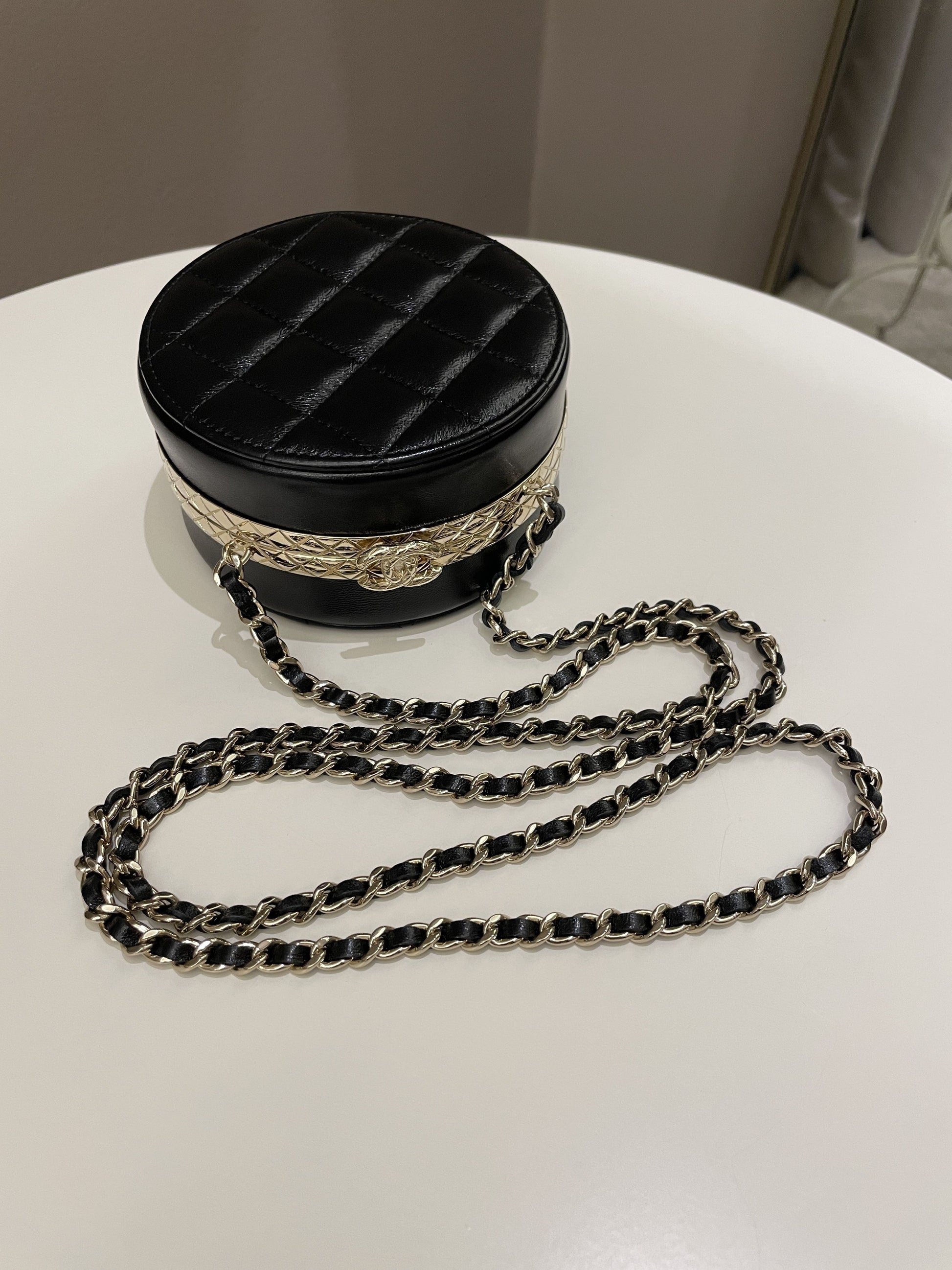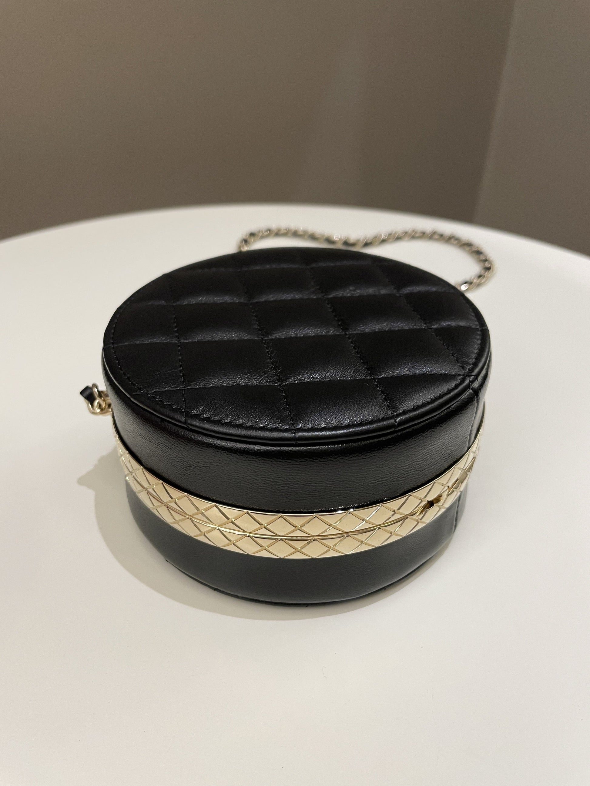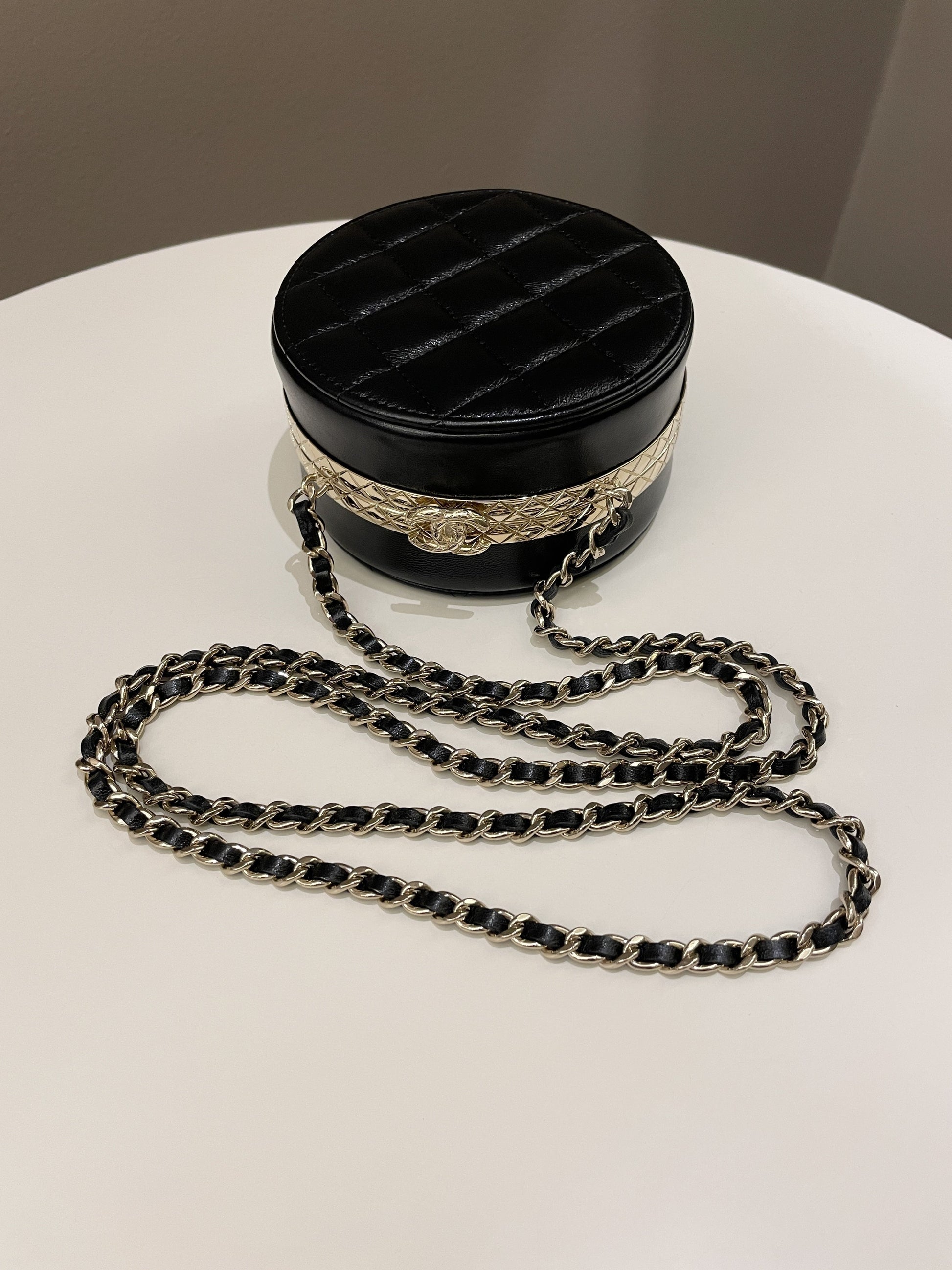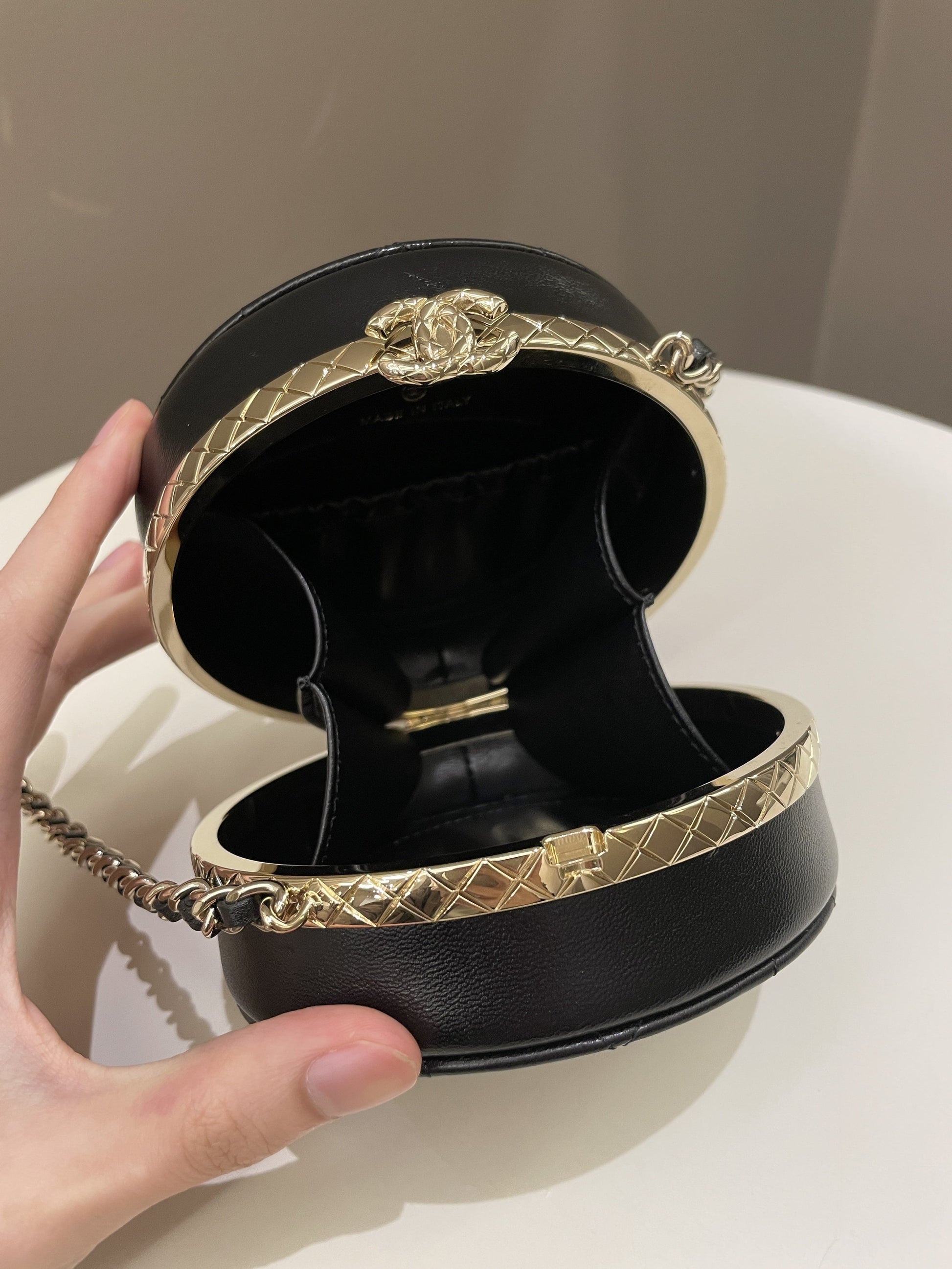 Chanel Quilted Round Evening Chain Clutch Black Lambskin