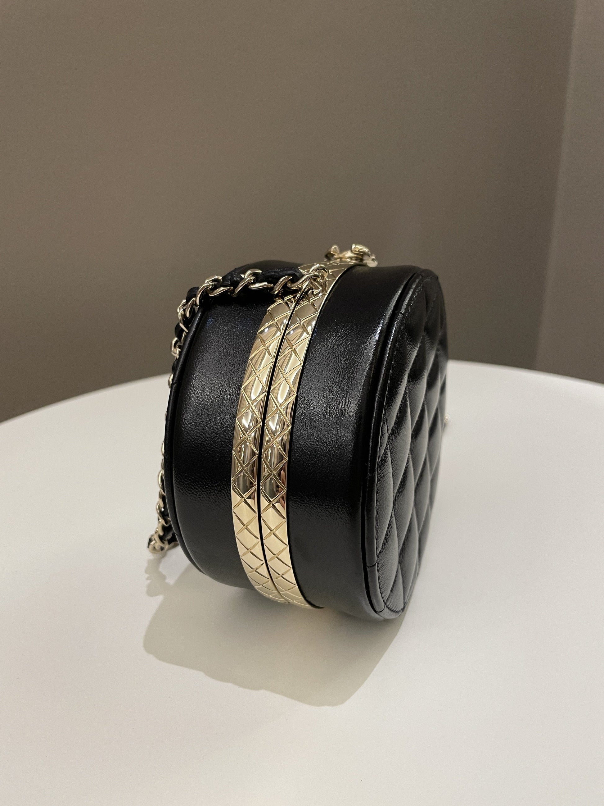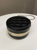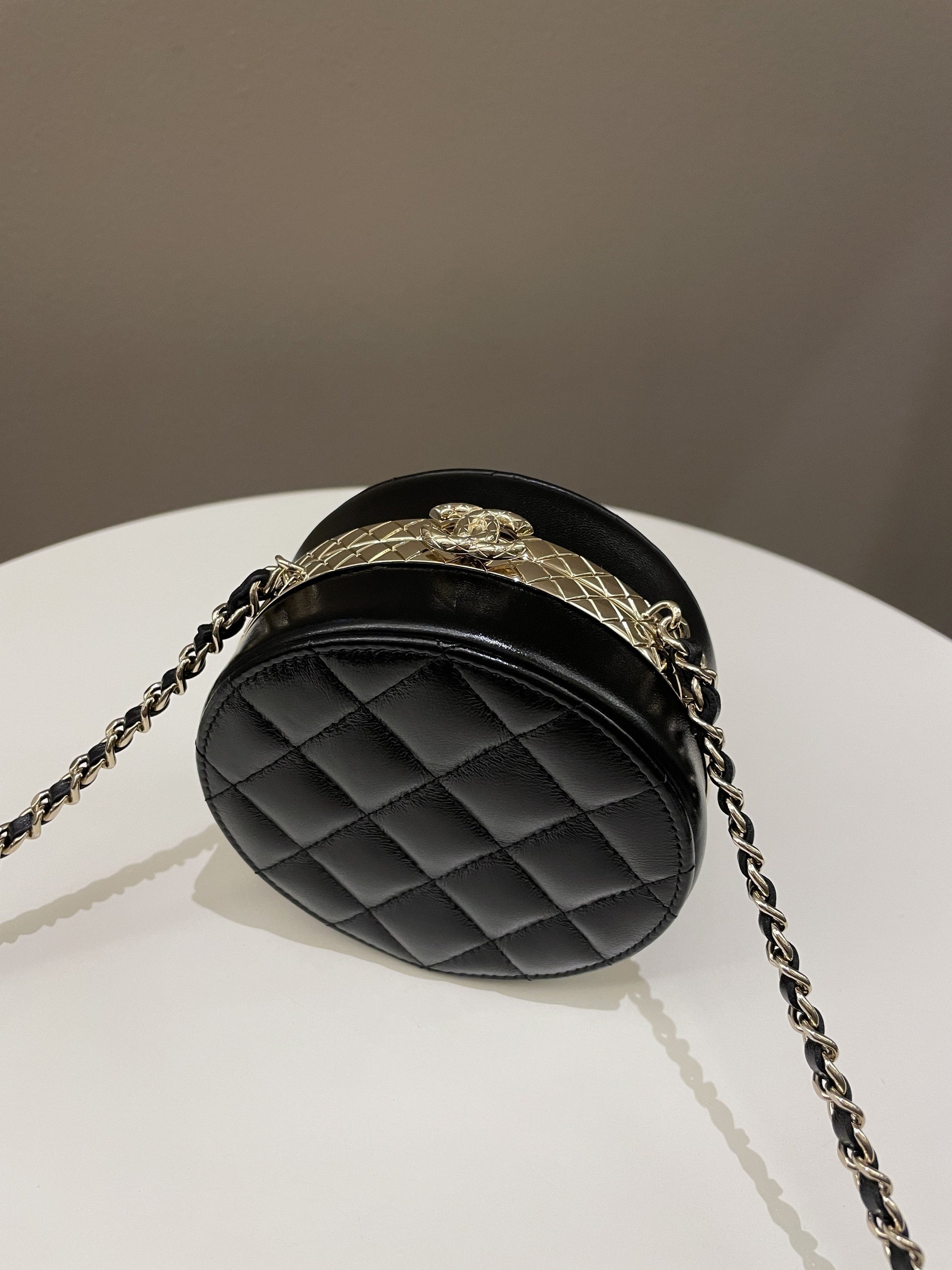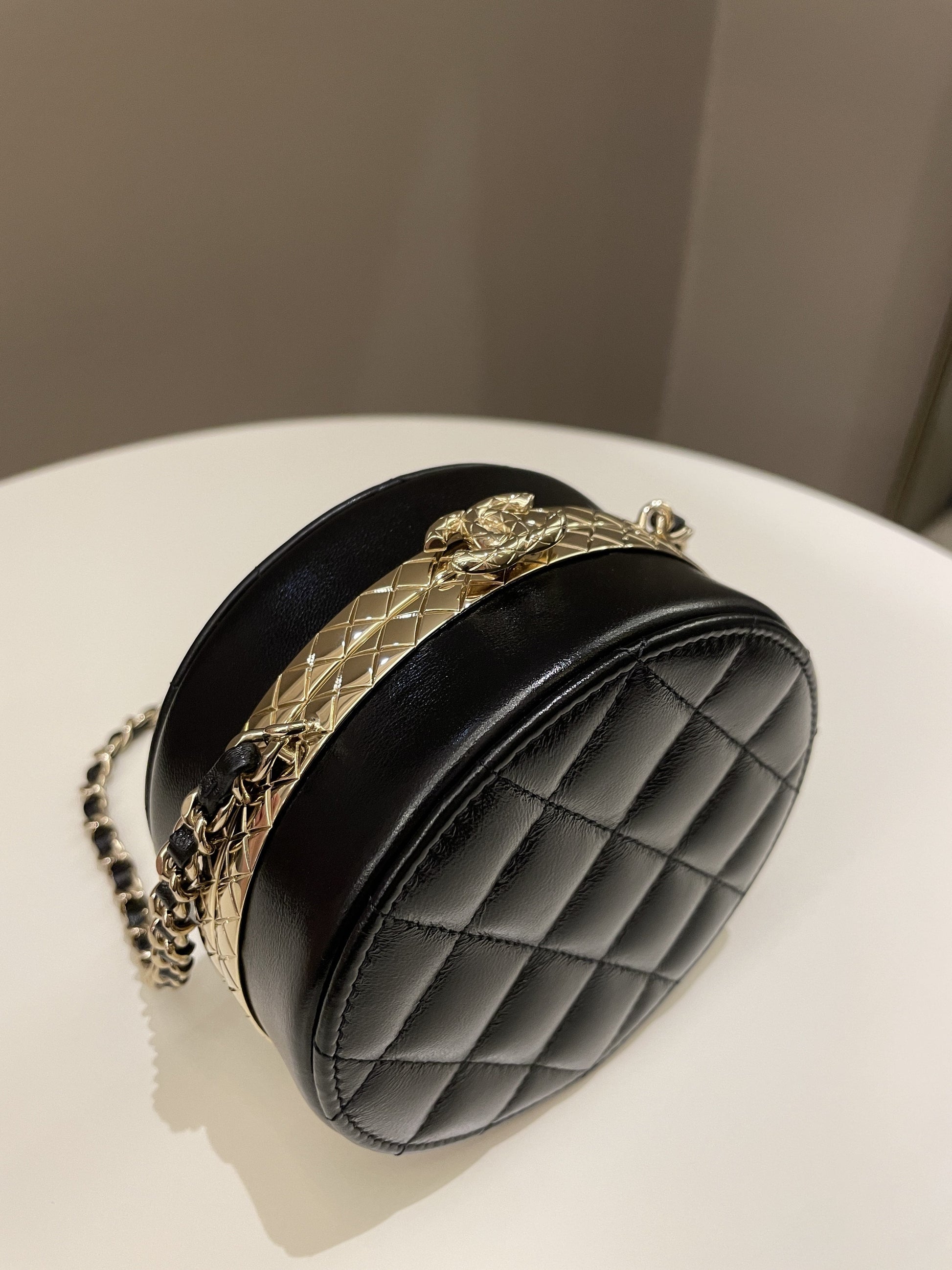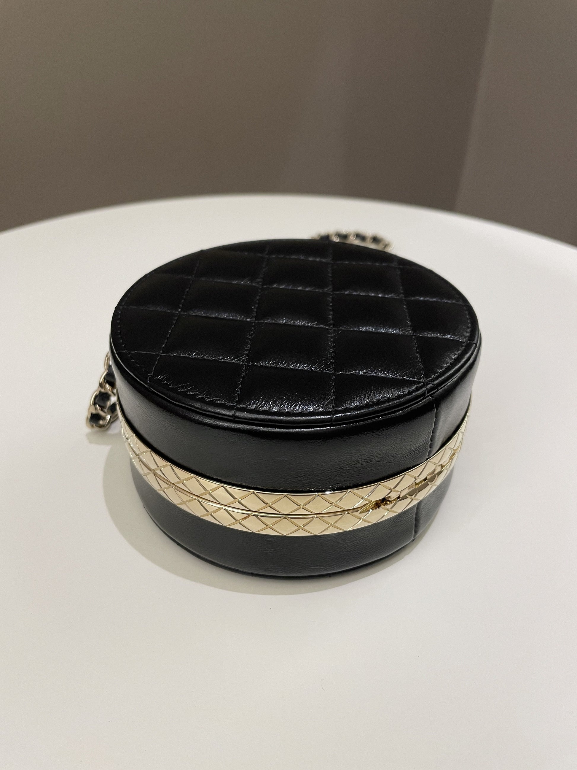 Chanel Quilted Round Evening Chain Clutch Black Lambskin