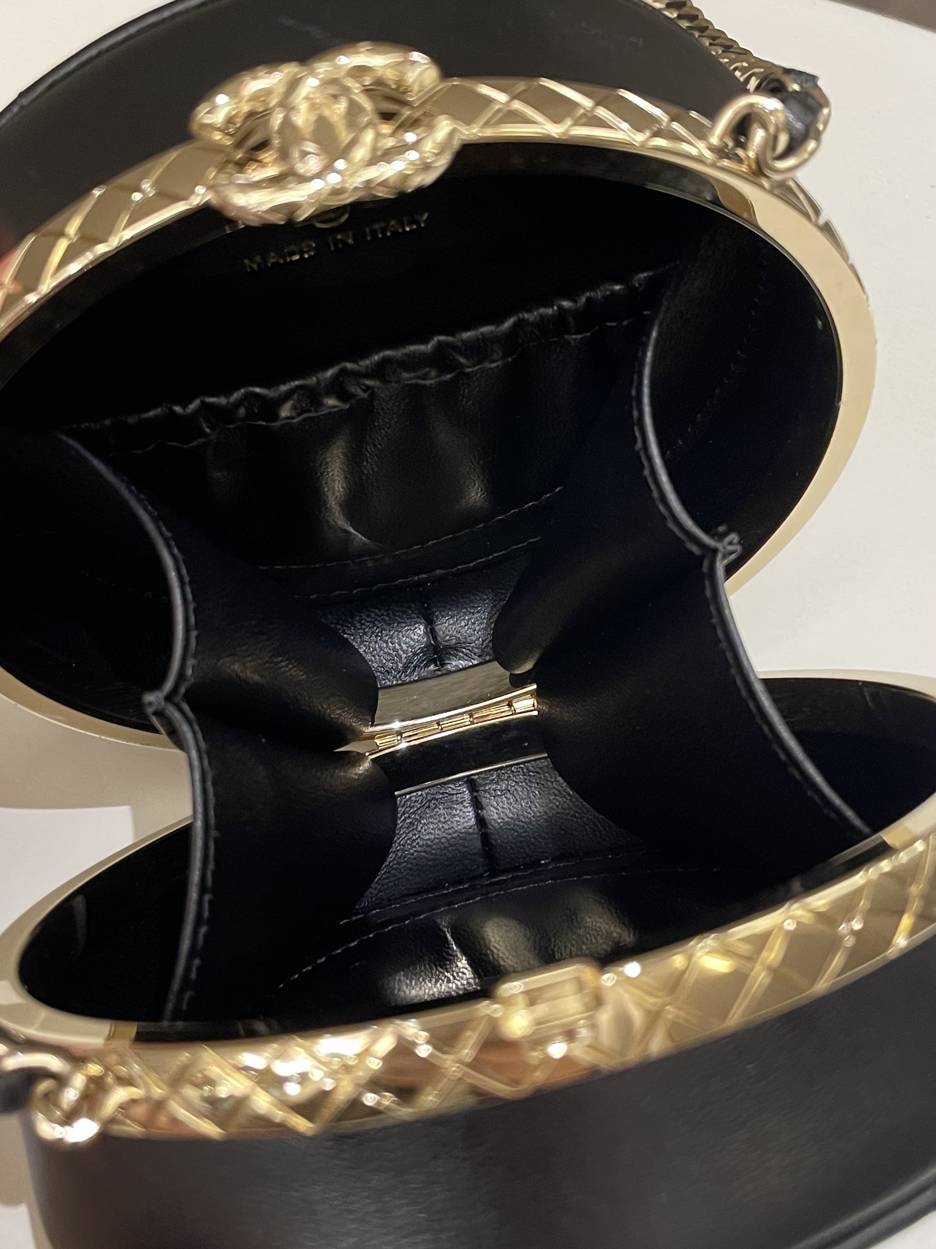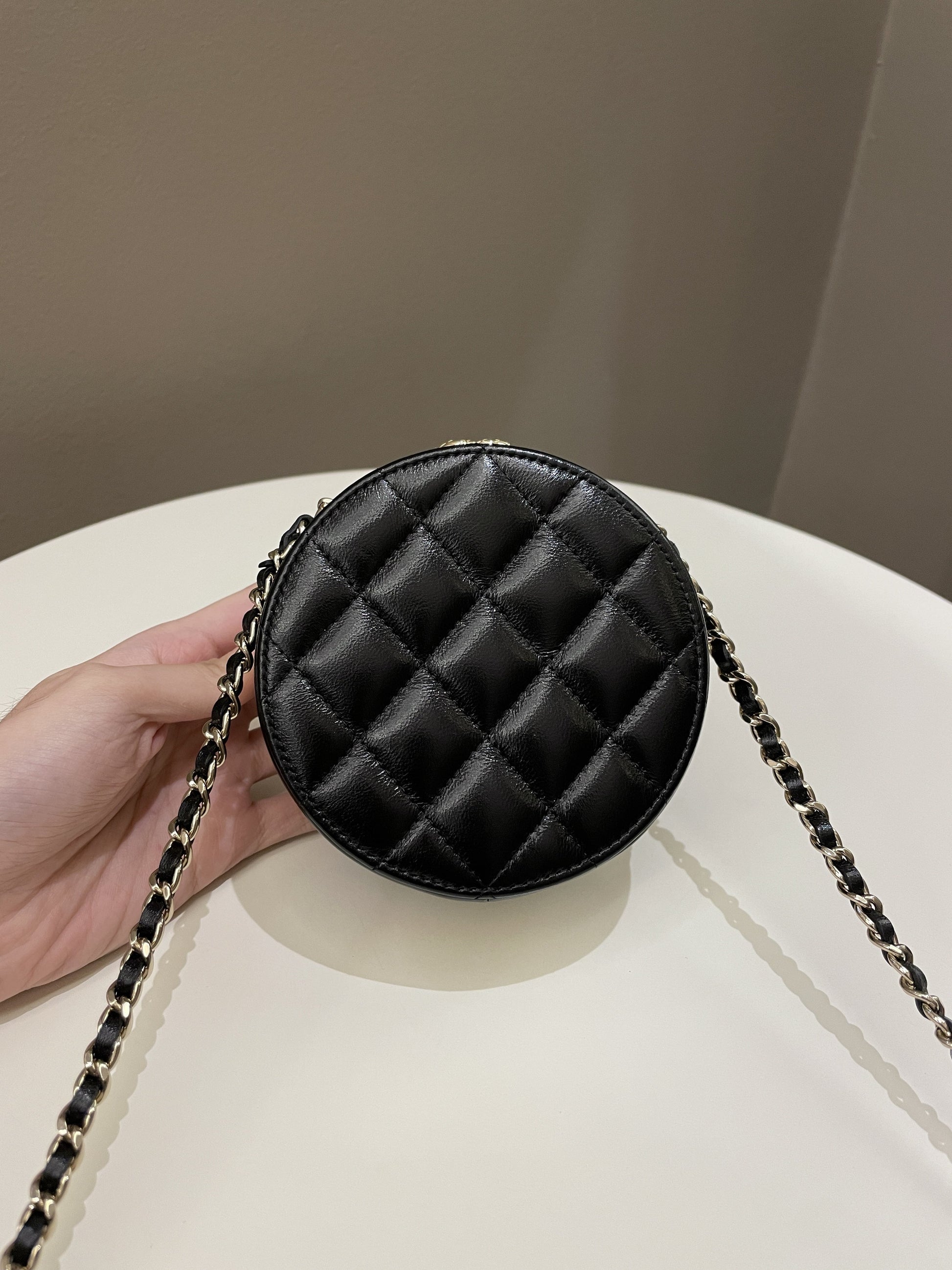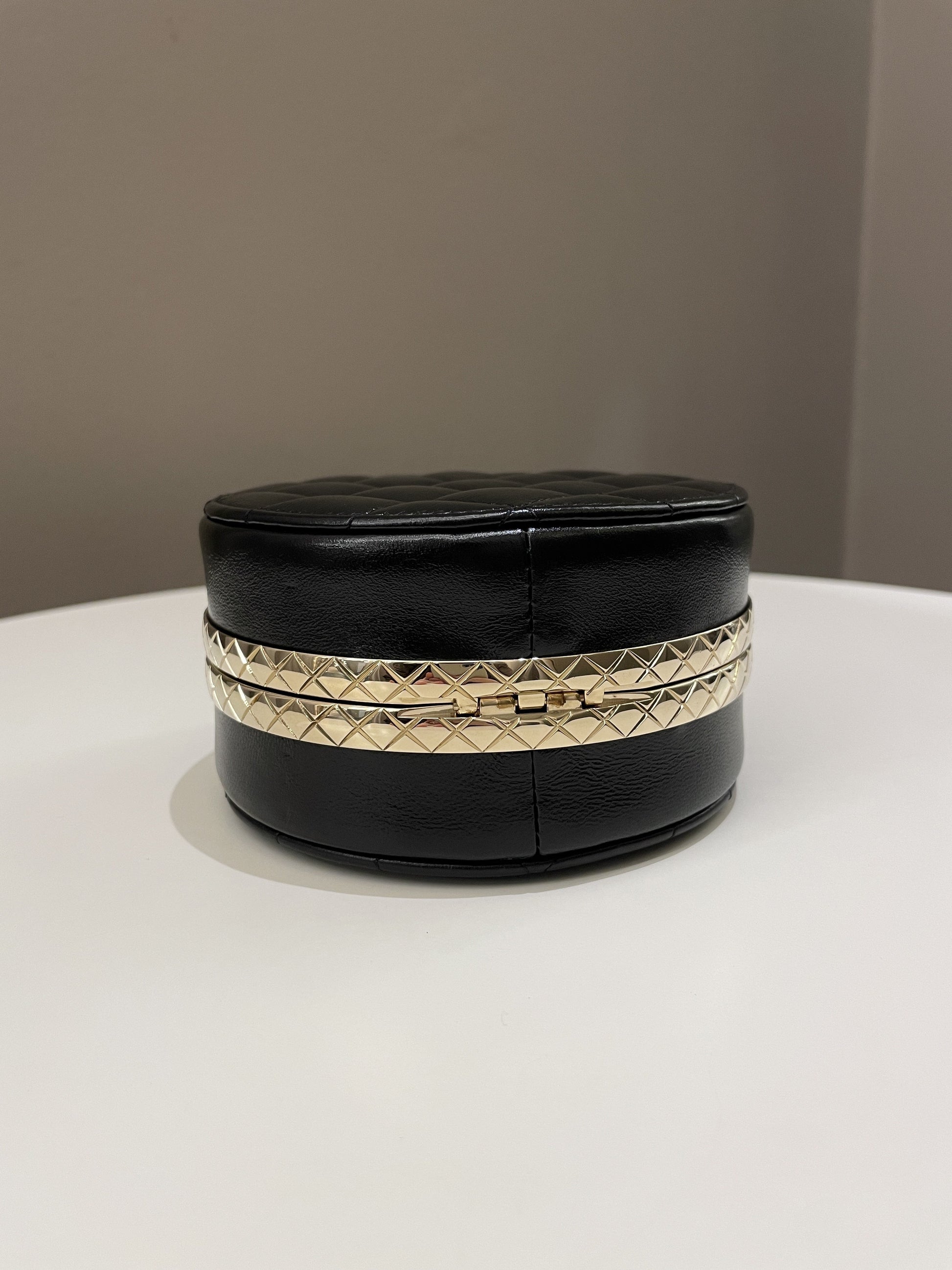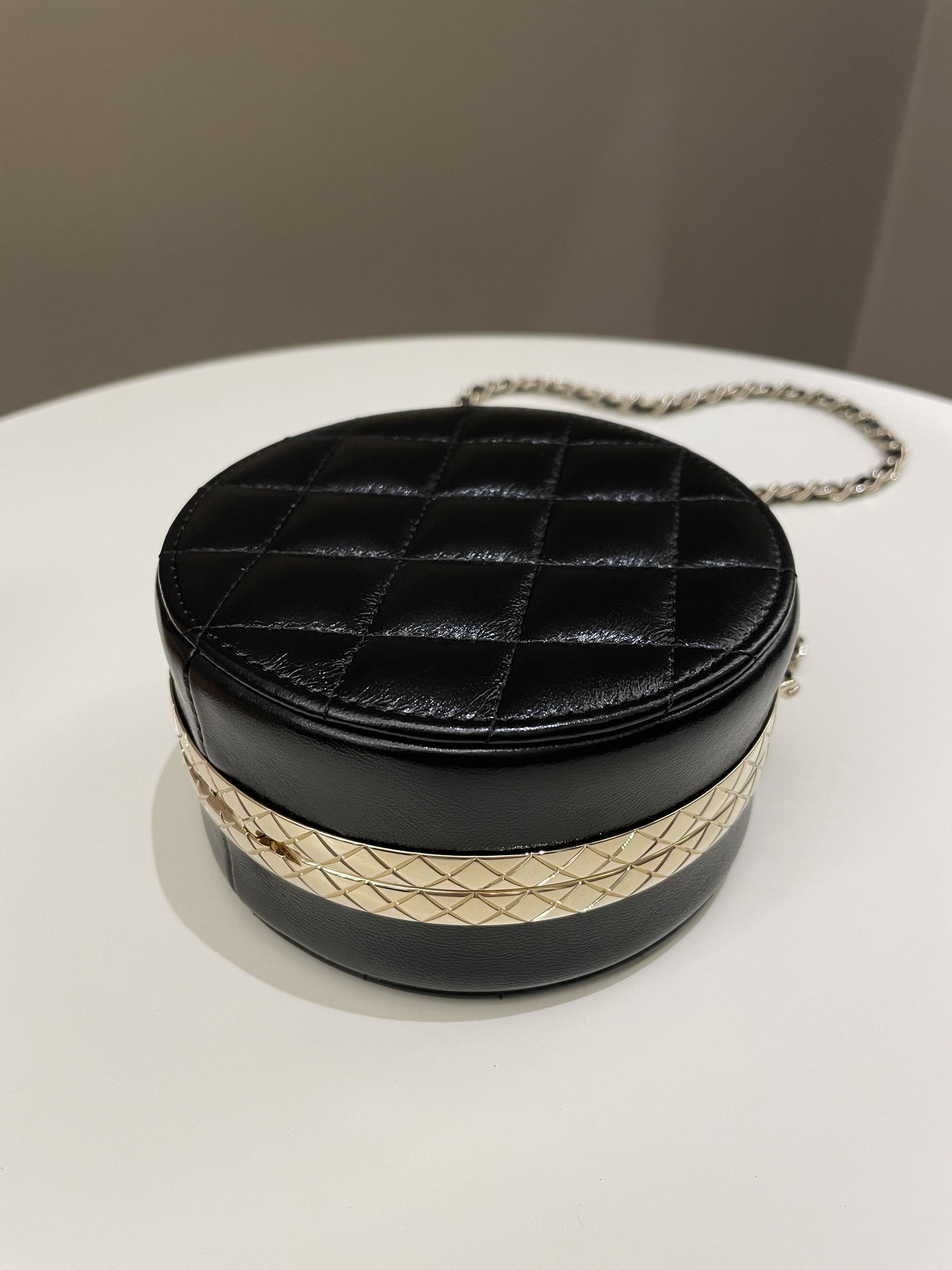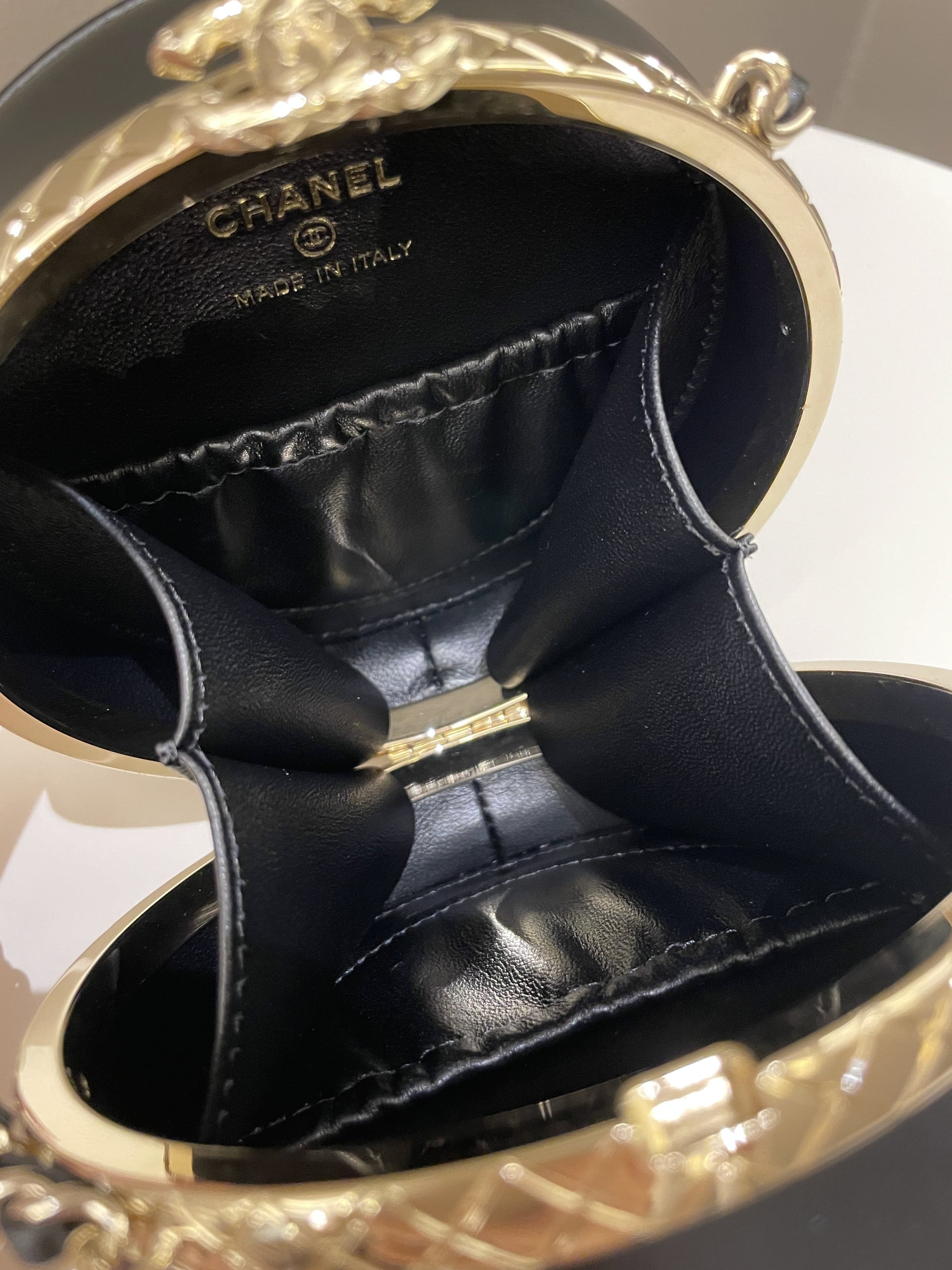 Chanel Quilted Round Evening Chain Clutch Black Lambskin