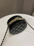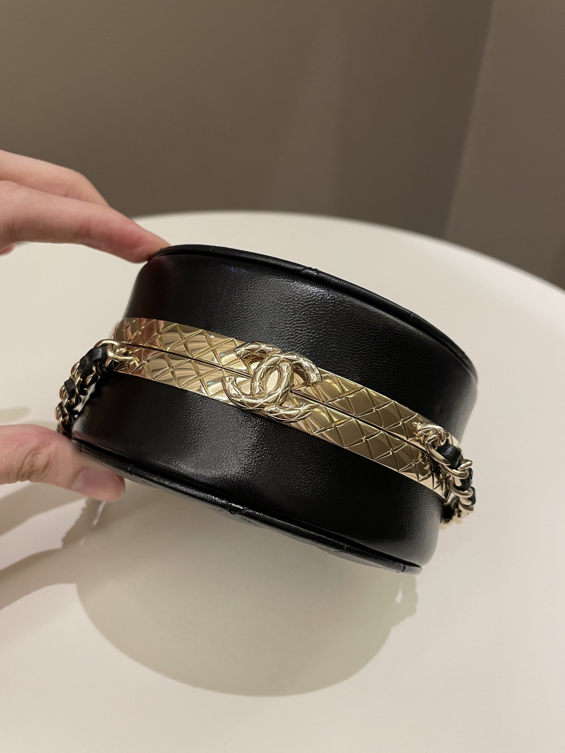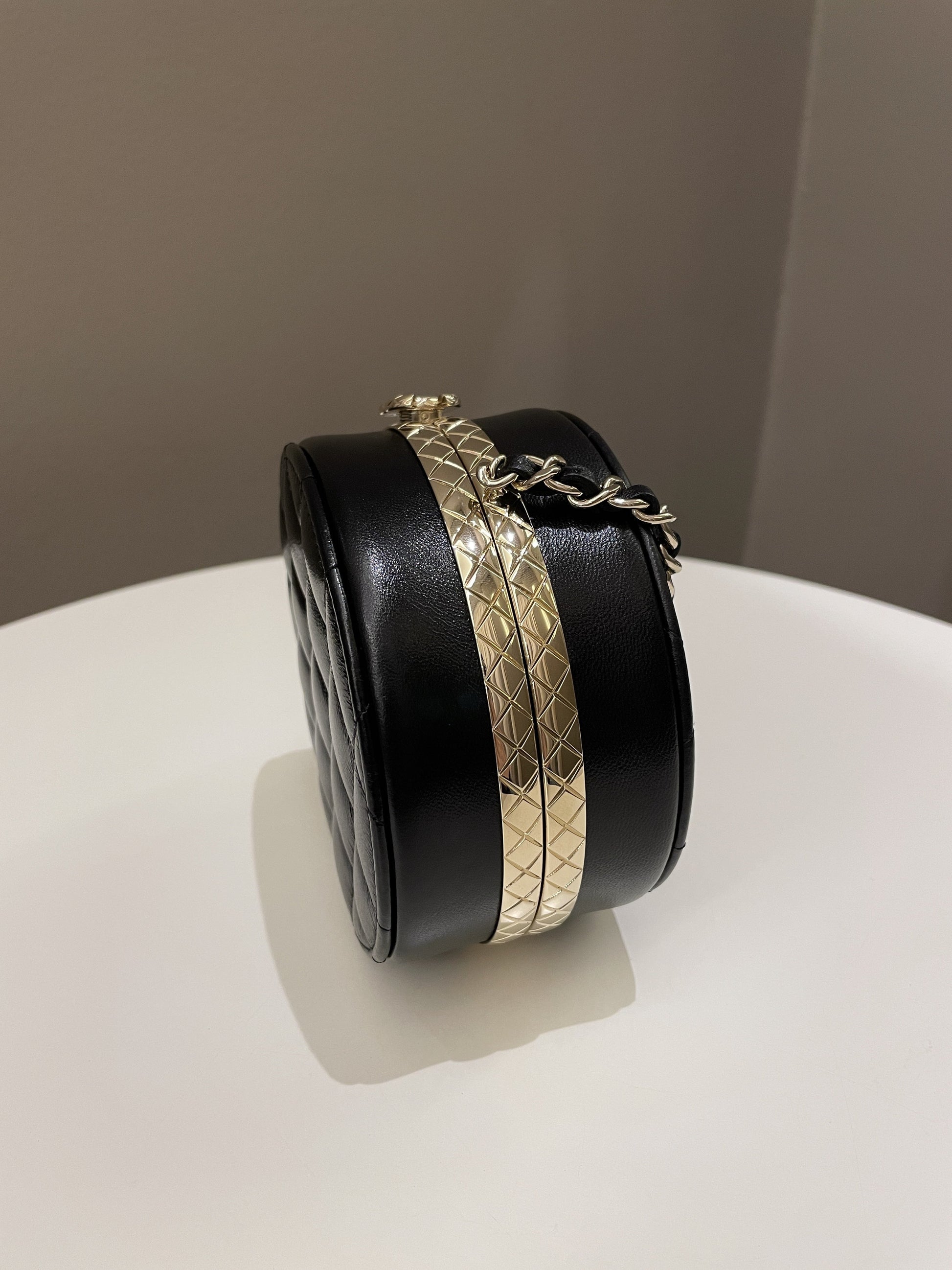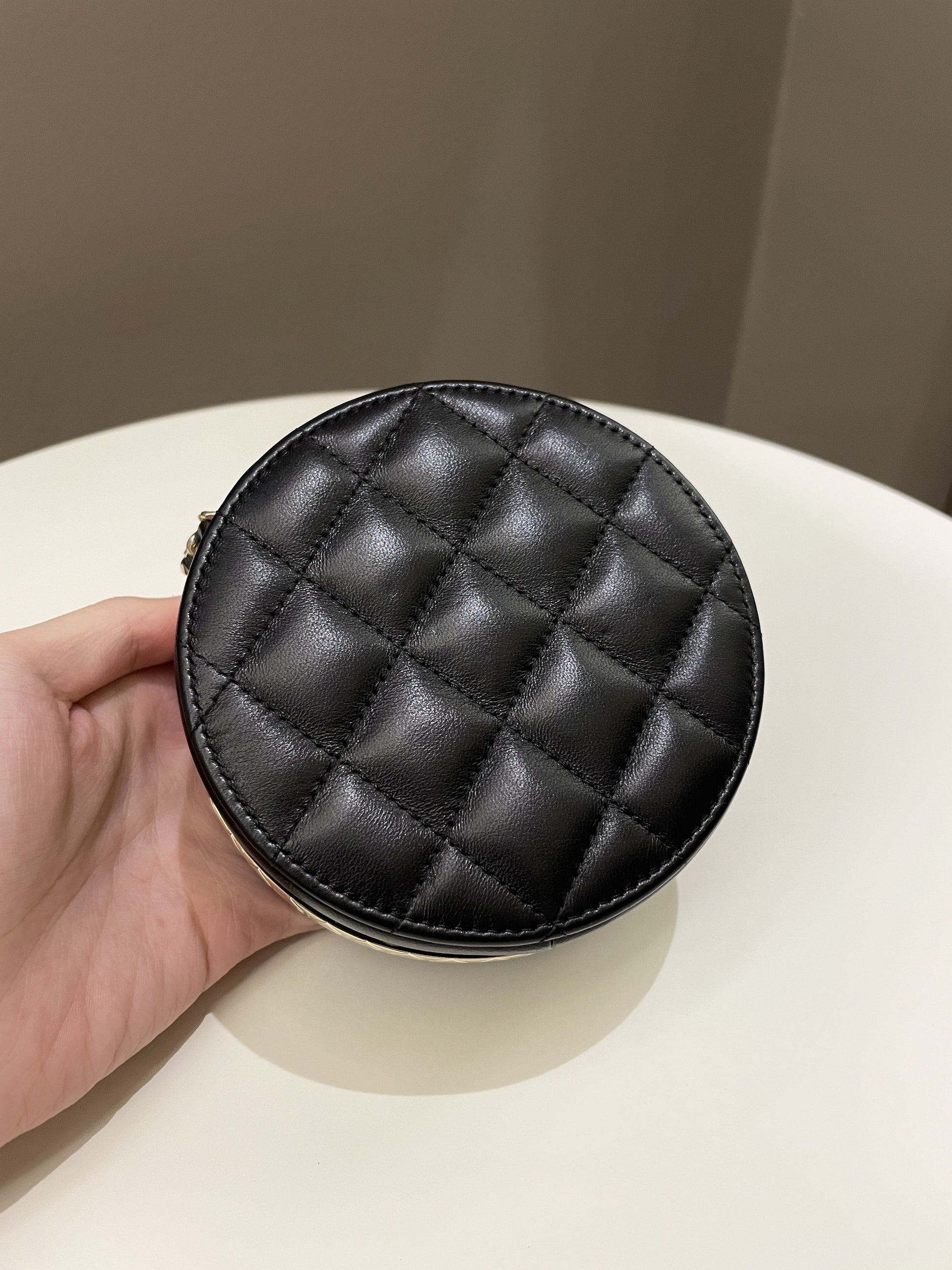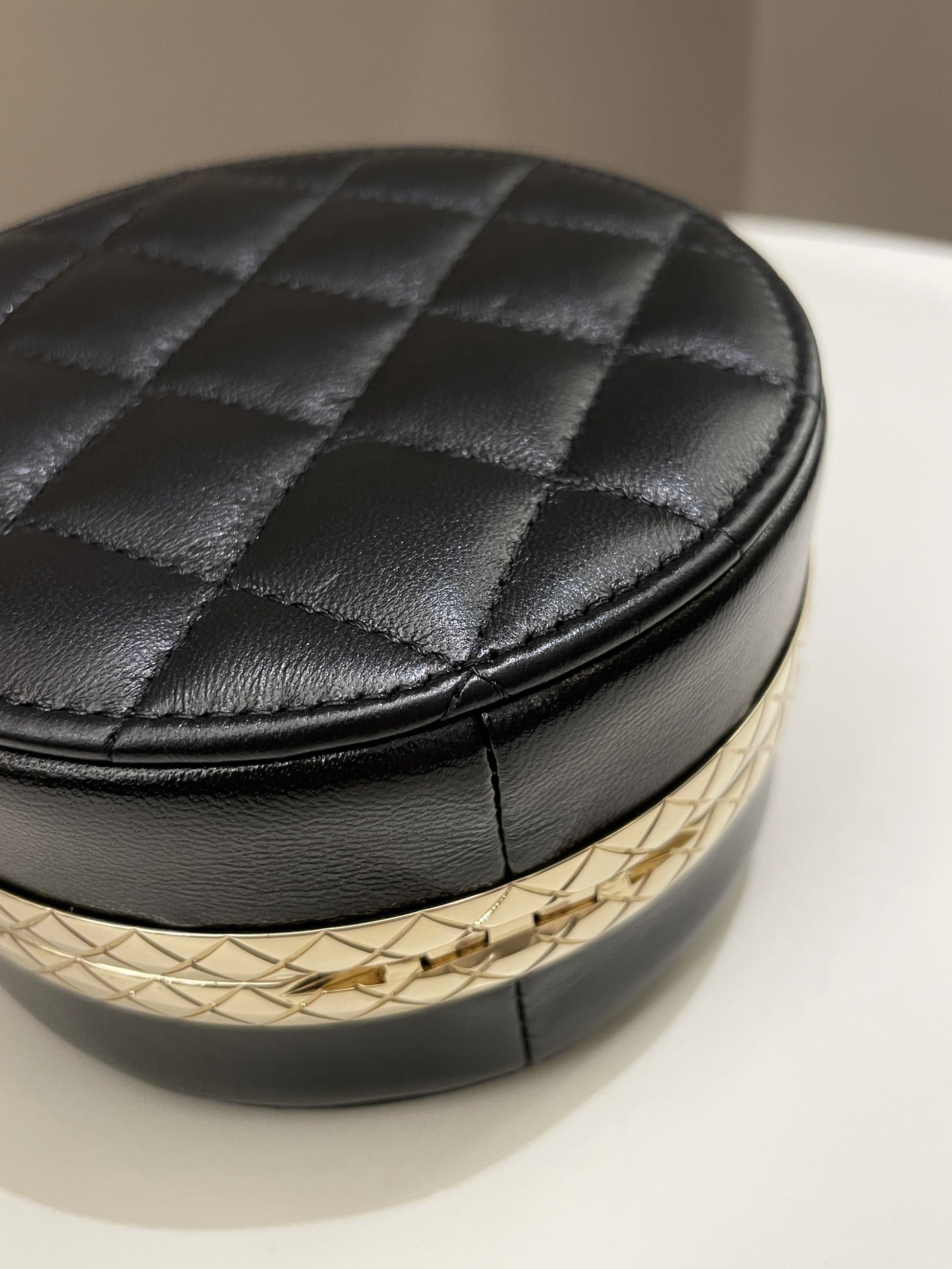 Chanel Quilted Round Evening Chain Clutch Black Lambskin