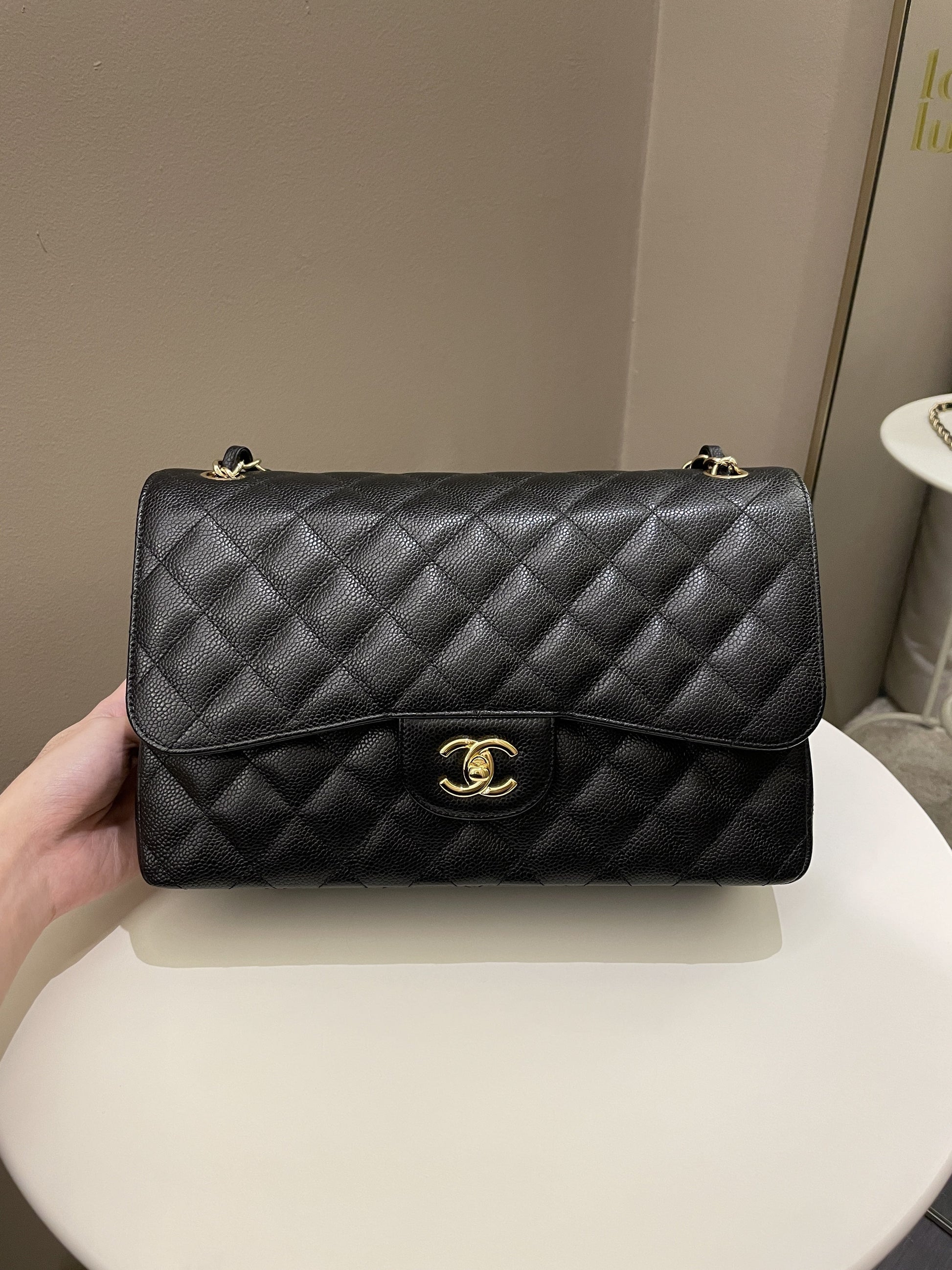Chanel Classic Quilted Jumbo Double Flap Black Caviar