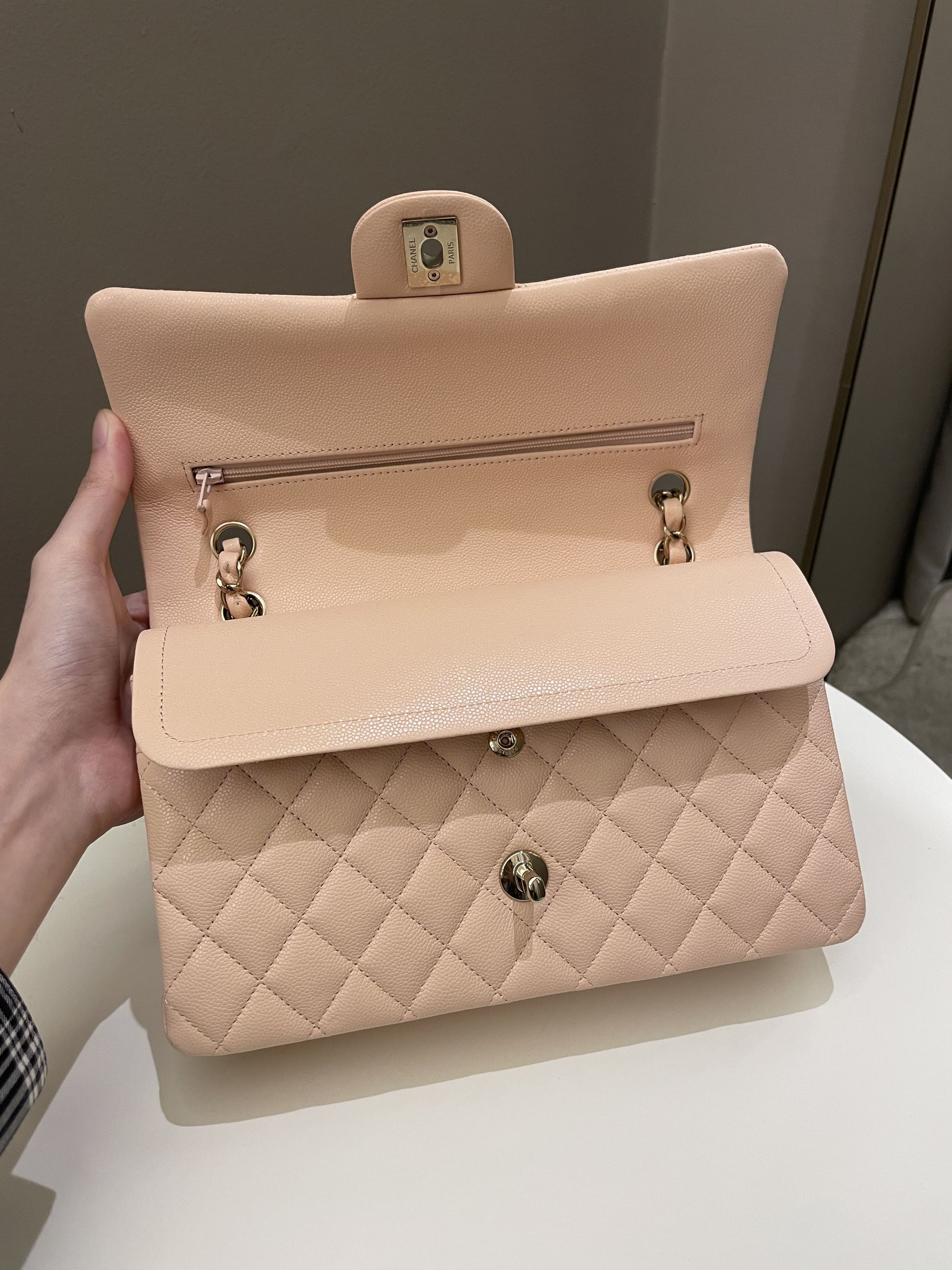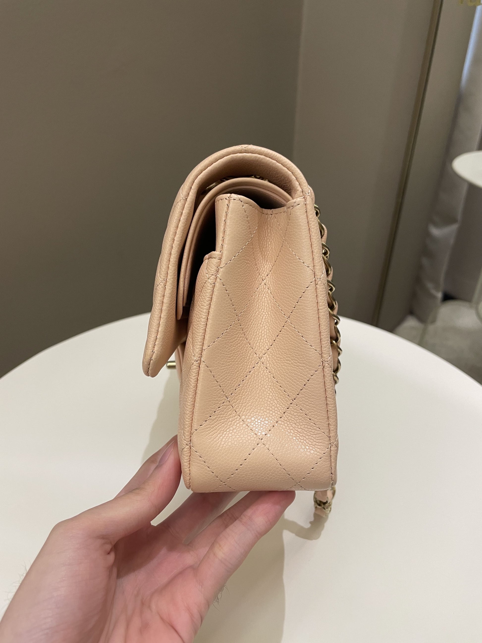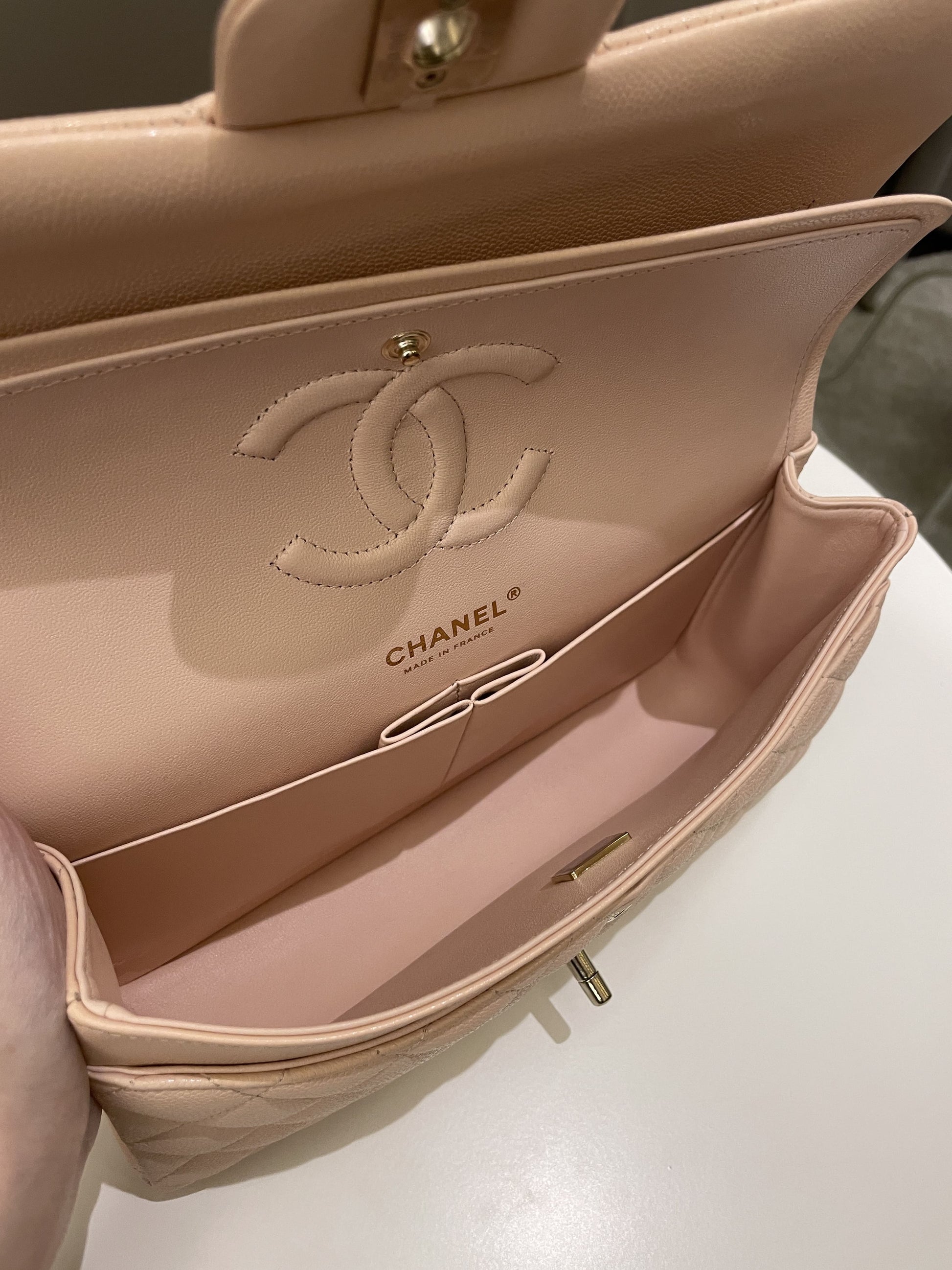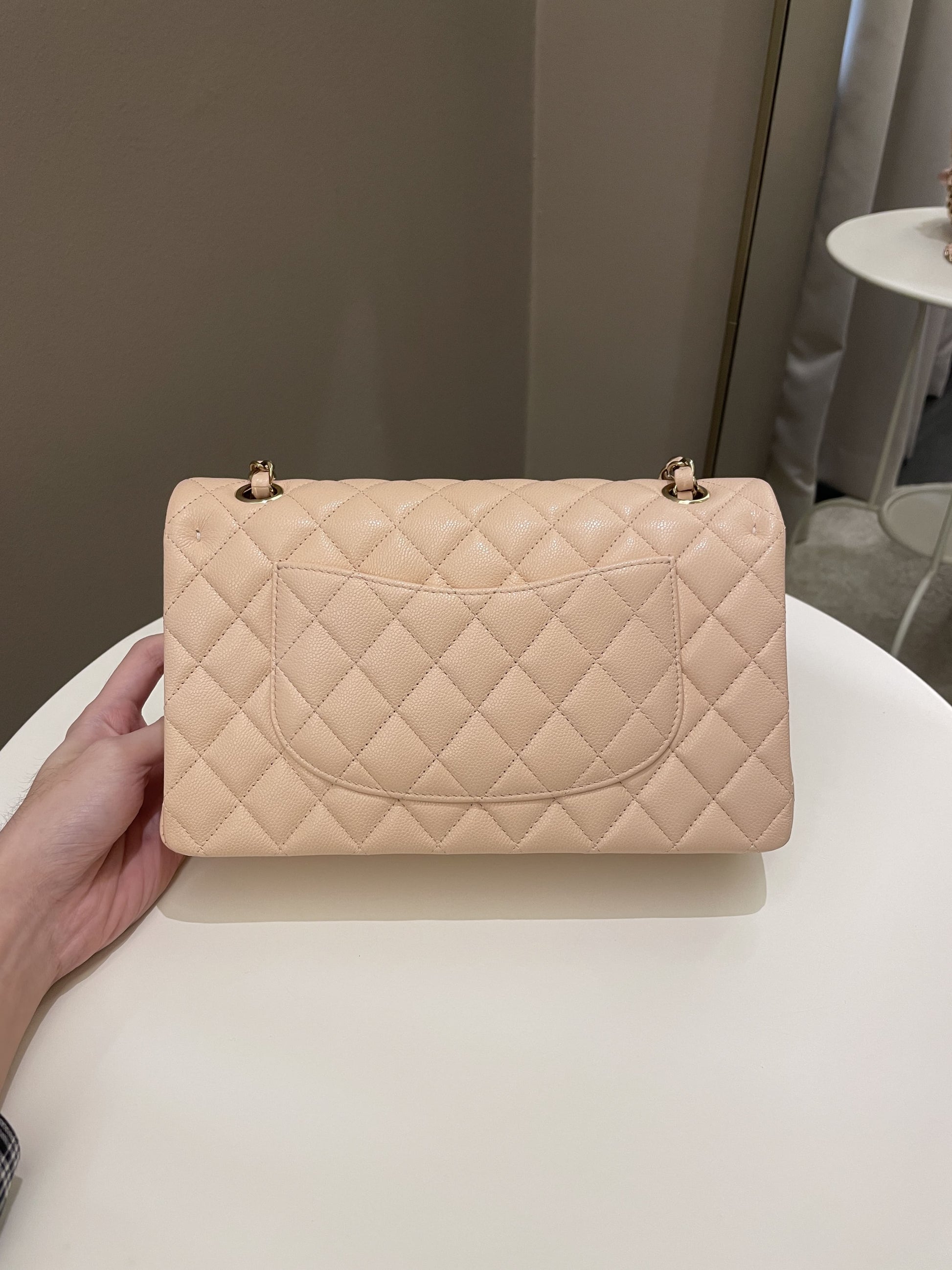 Chanel Classic Quilted Medium Double Flap Beige Peach Caviar