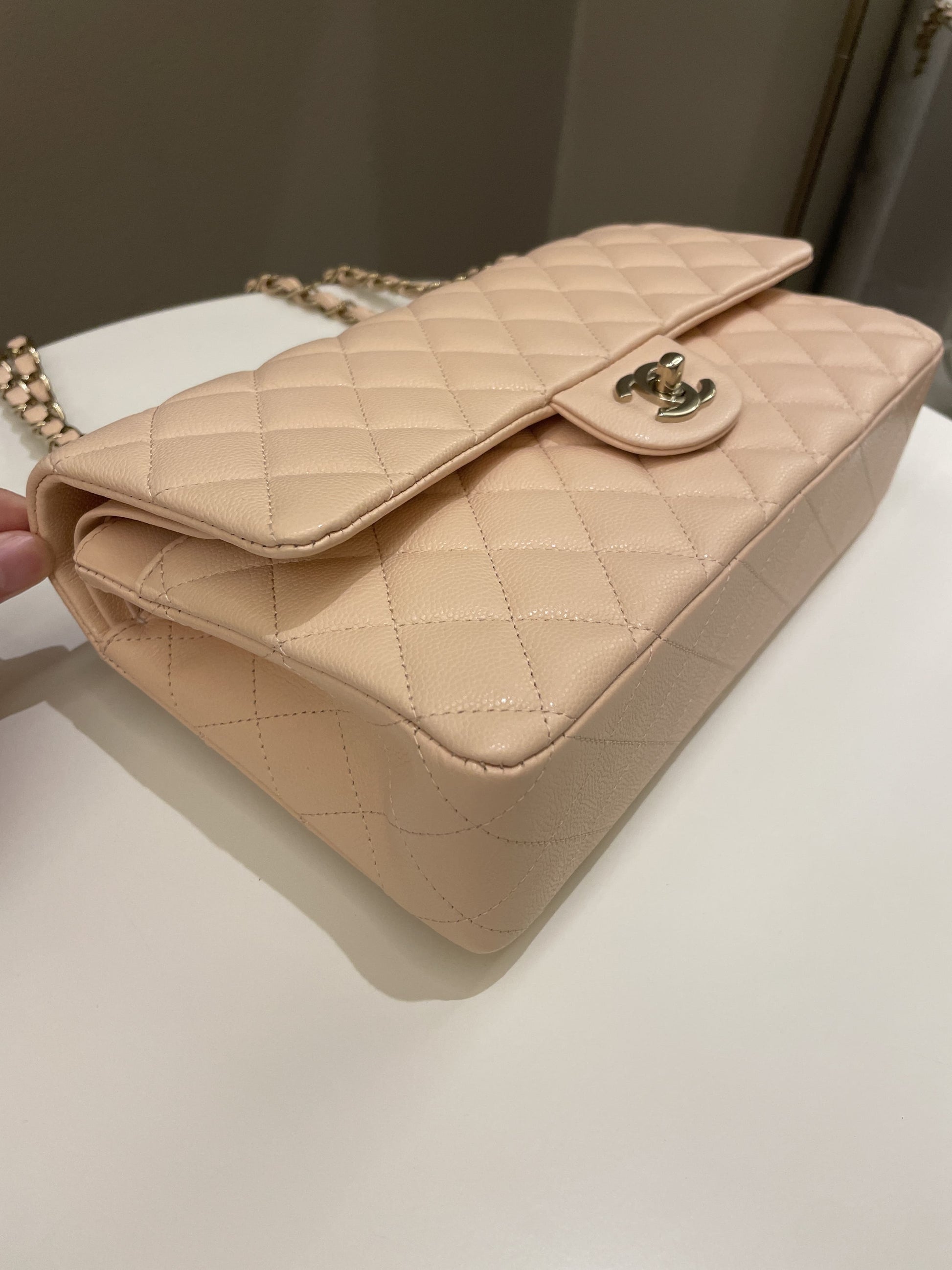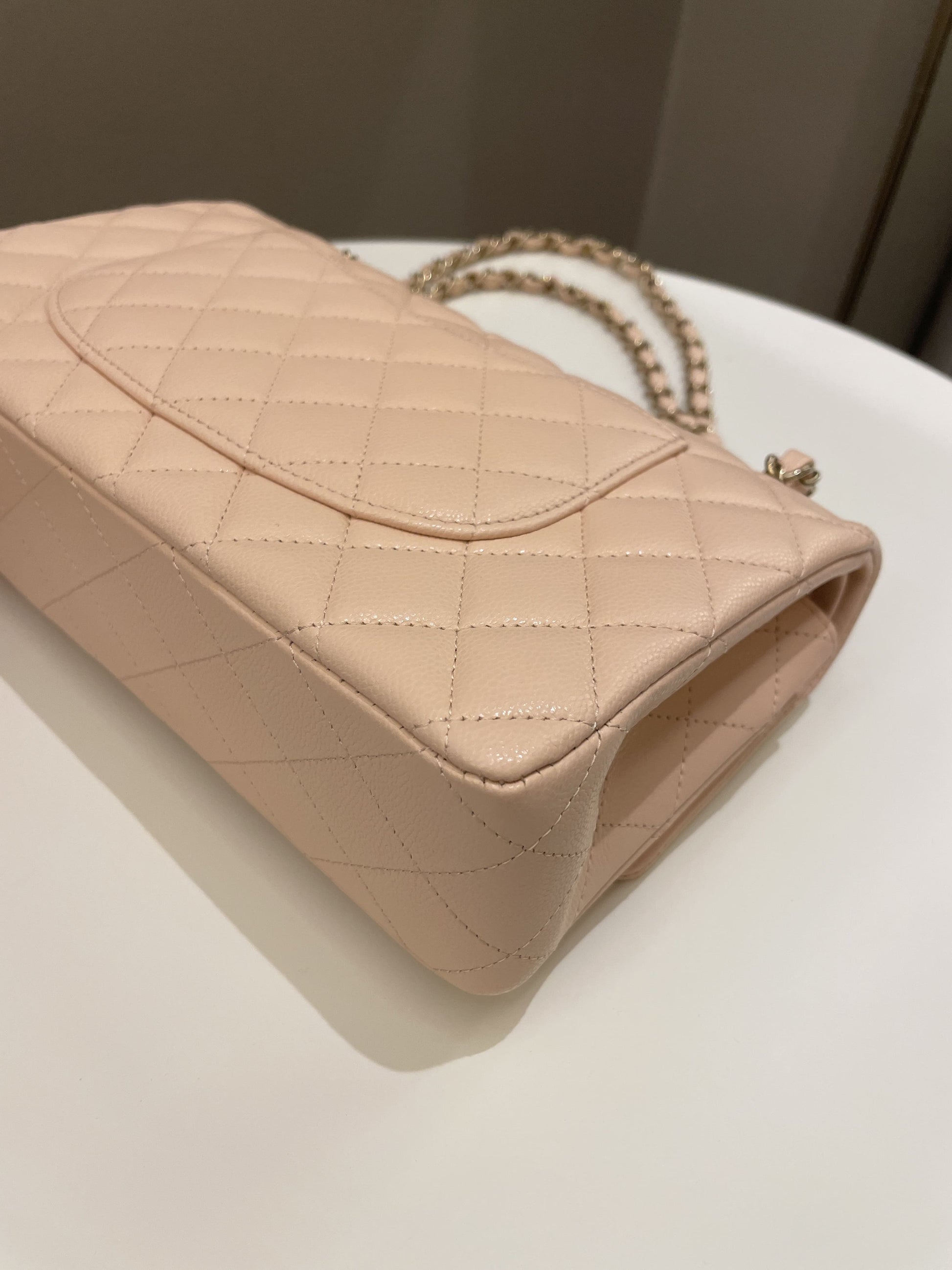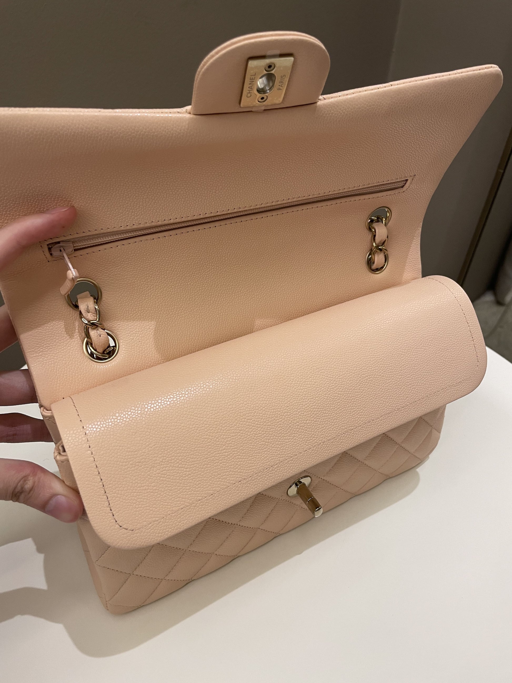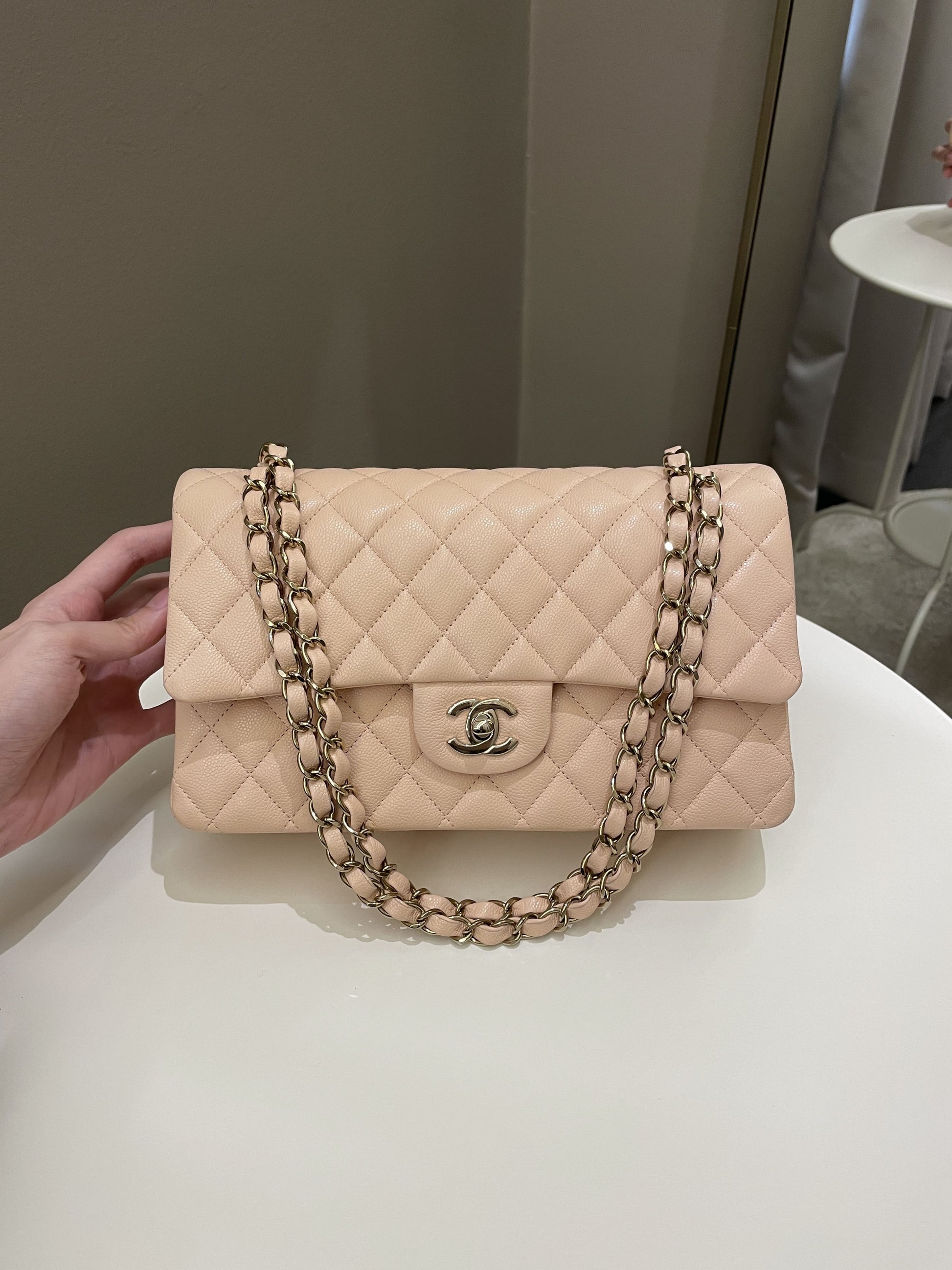Chanel Classic Quilted Medium Double Flap Beige Peach Caviar