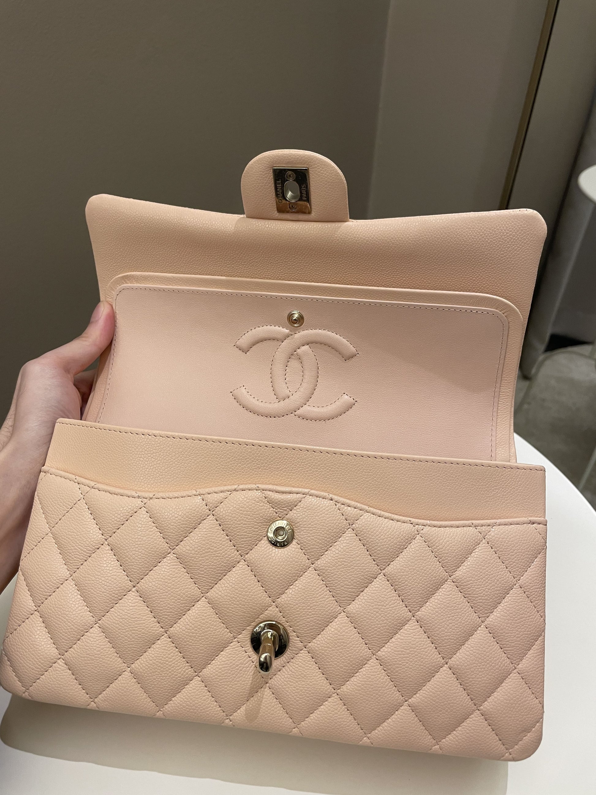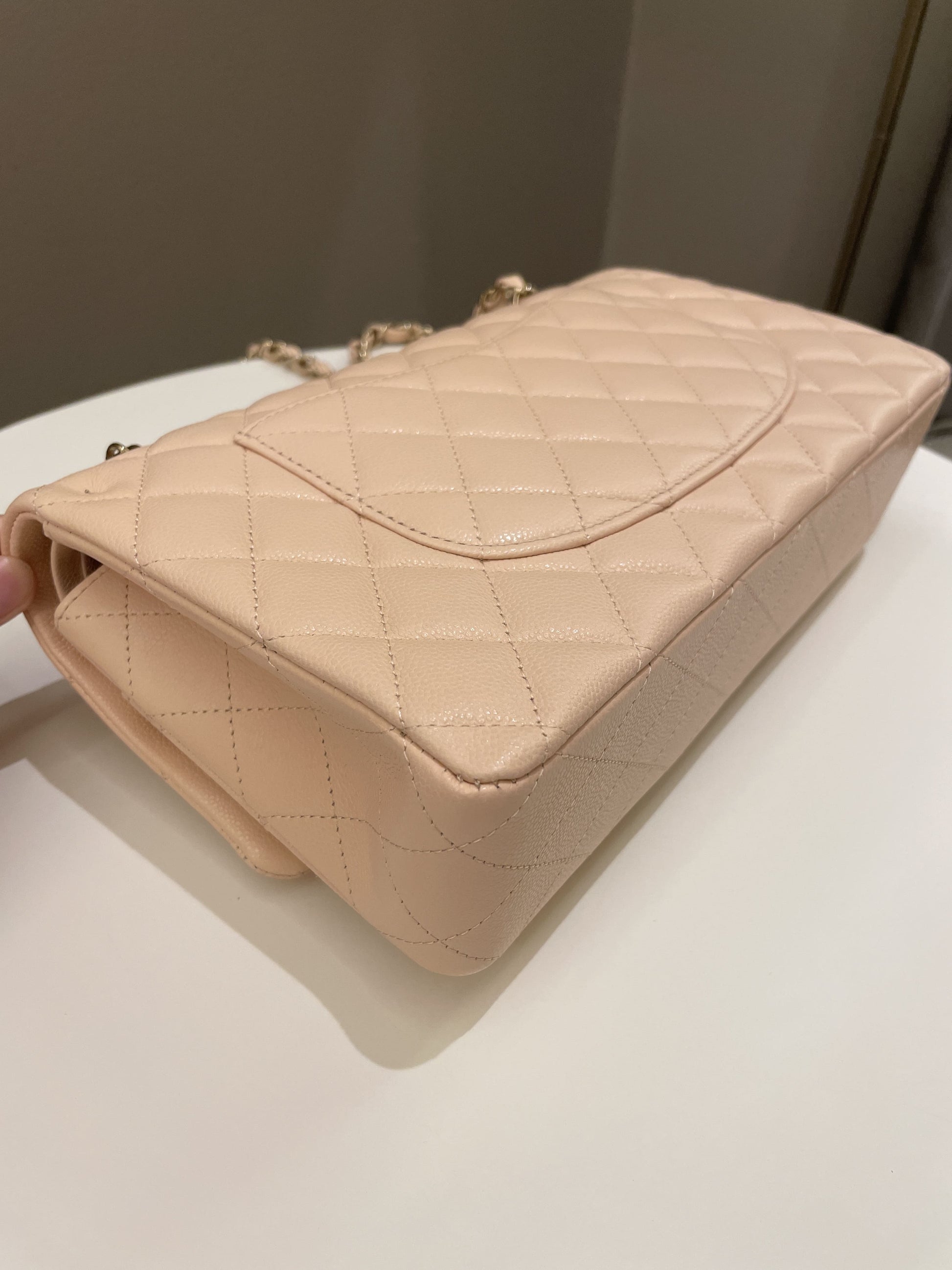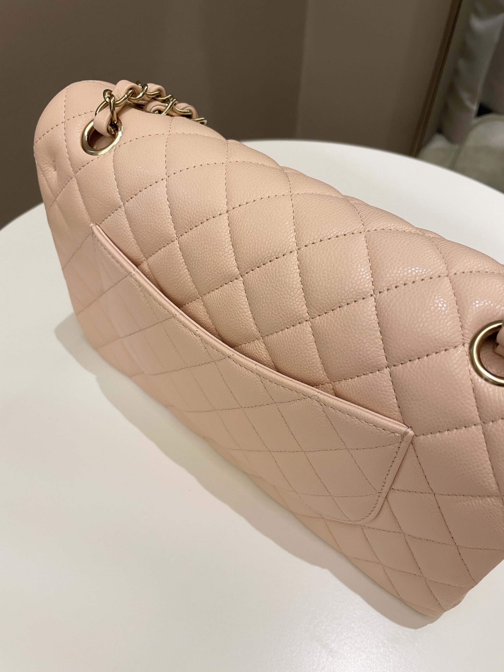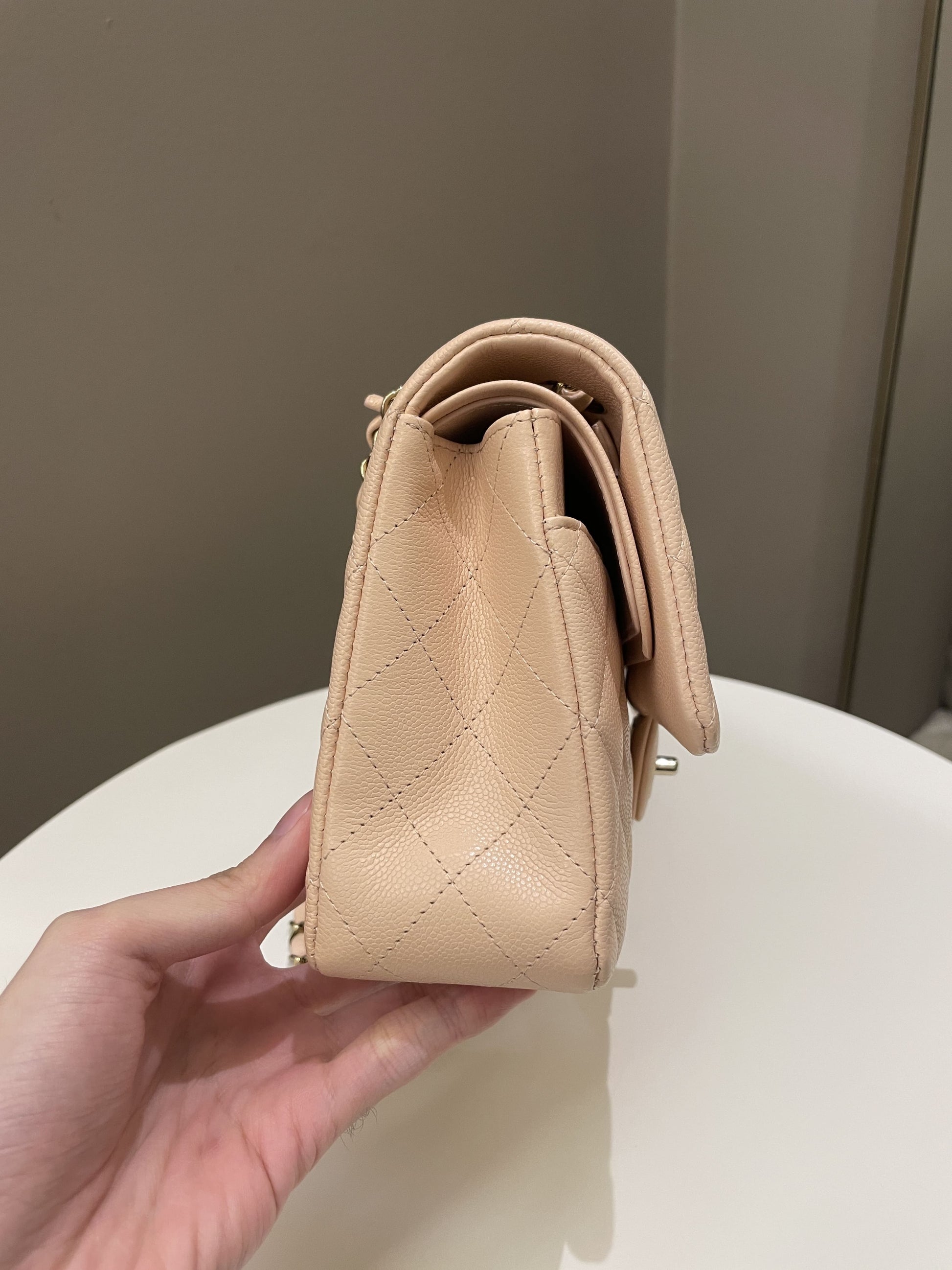 Chanel Classic Quilted Medium Double Flap Beige Peach Caviar
