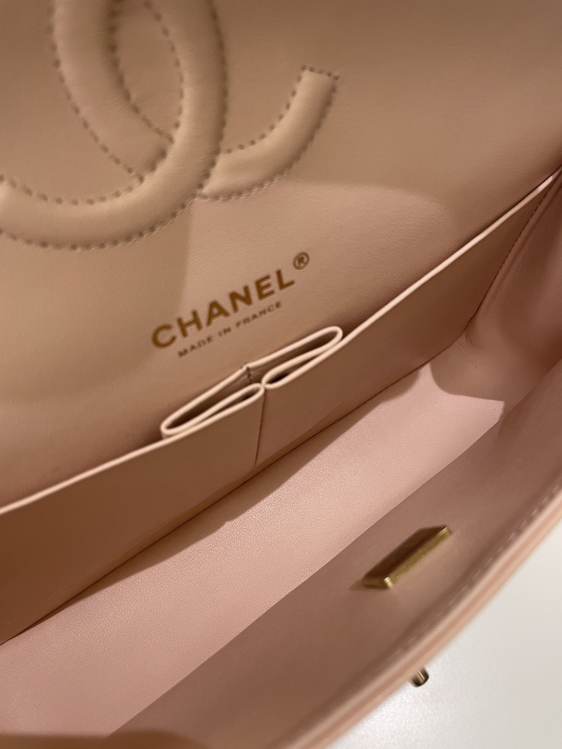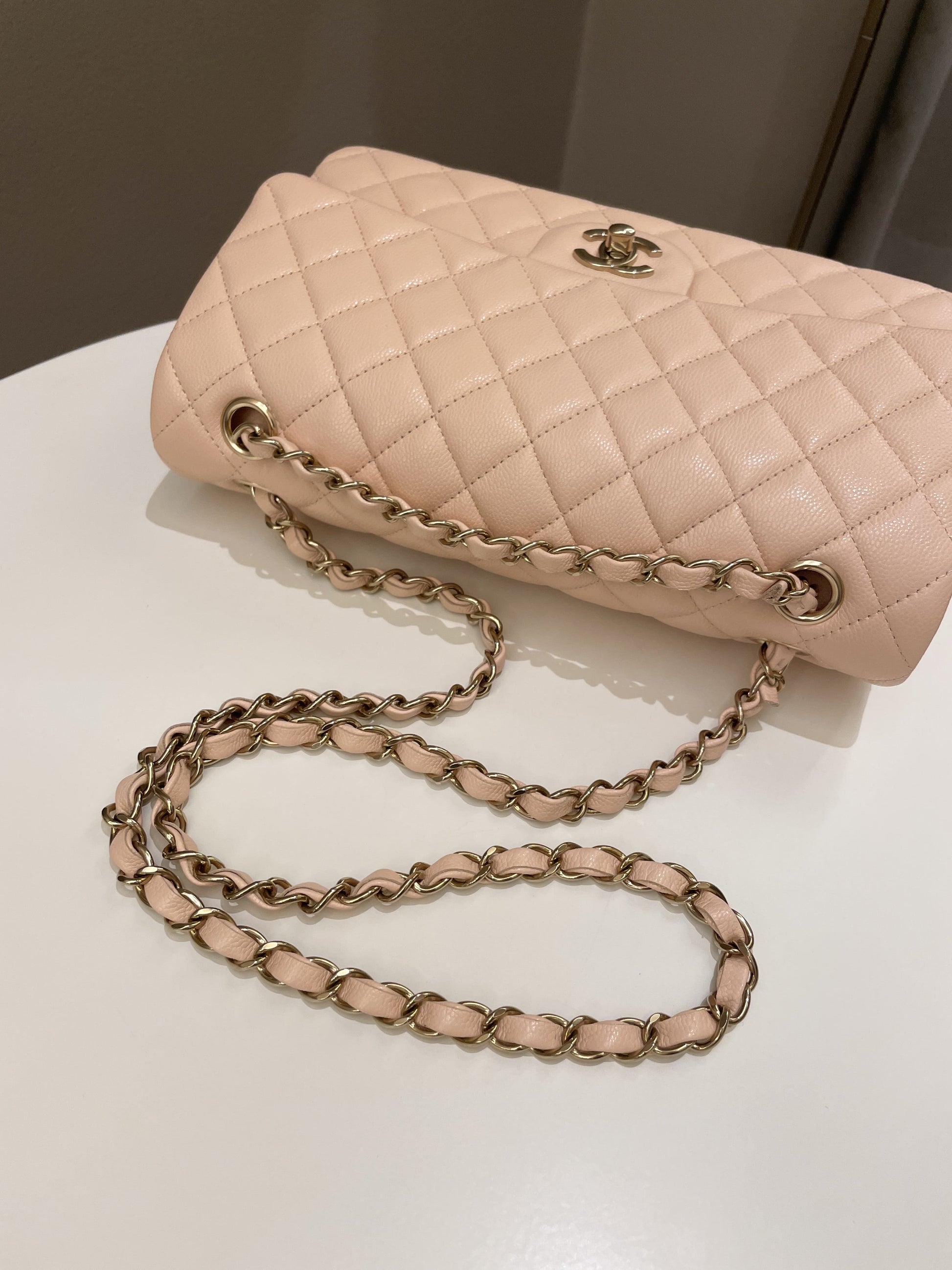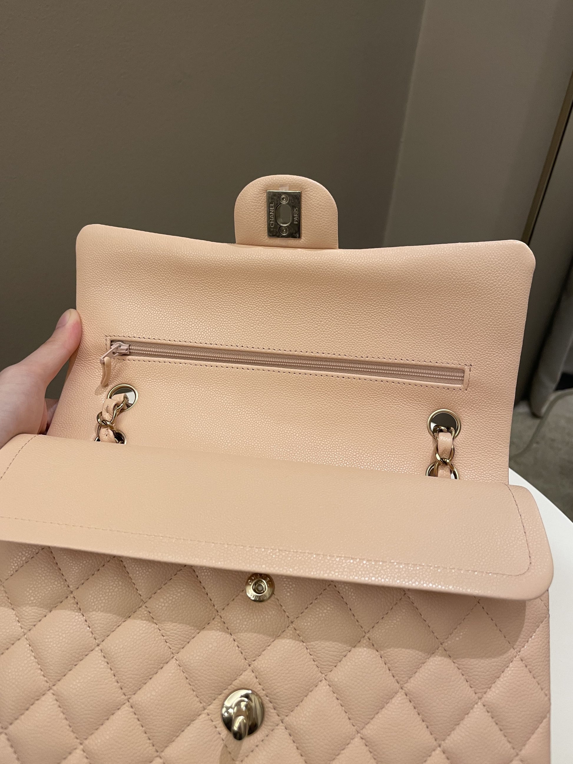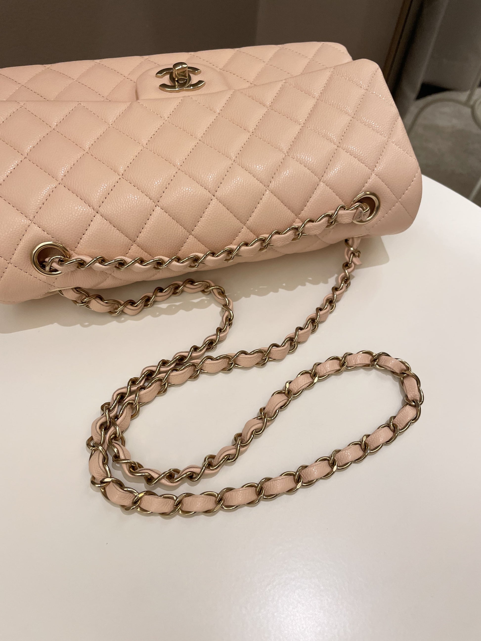 Chanel Classic Quilted Medium Double Flap Beige Peach Caviar