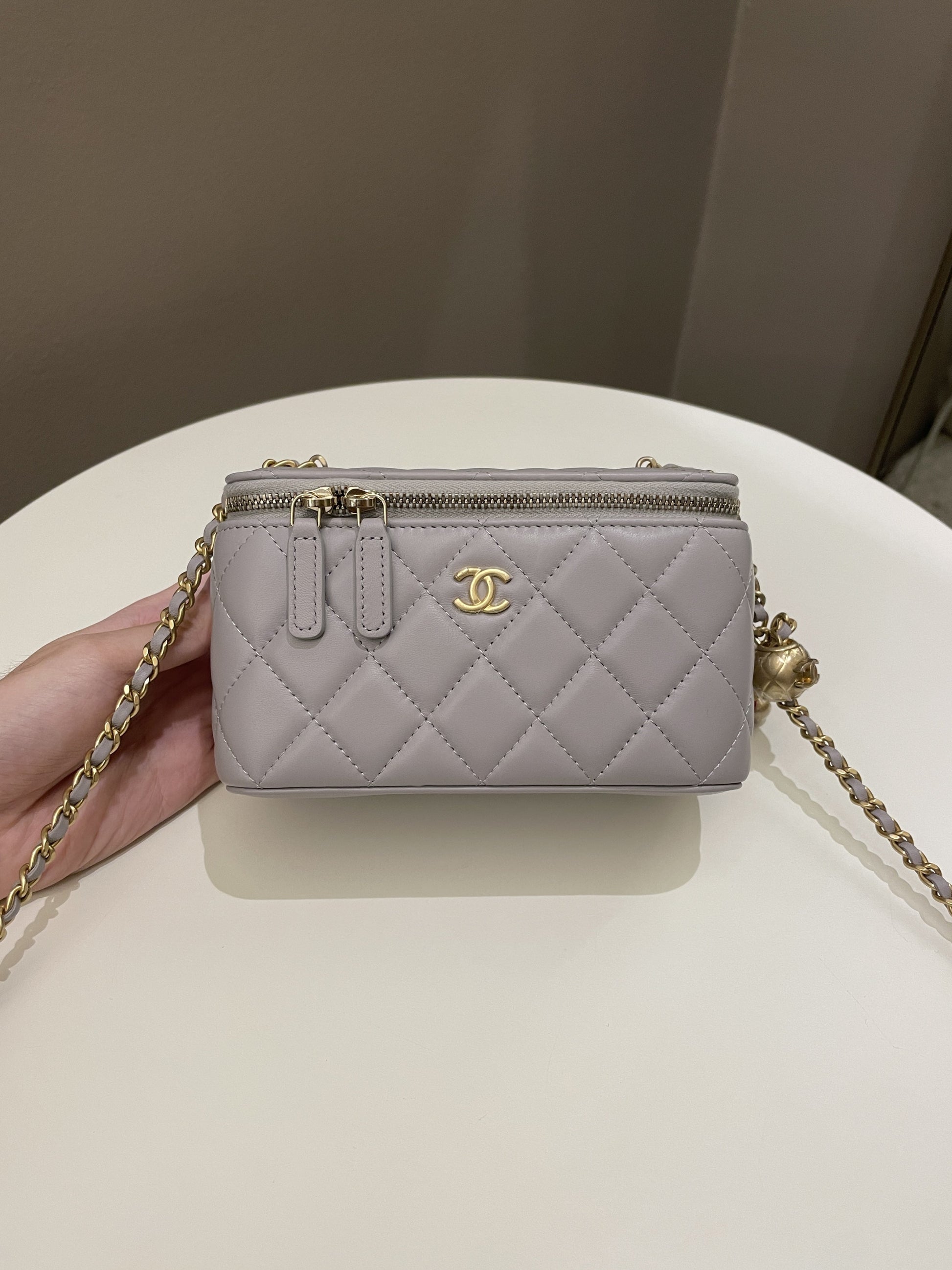 Chanel 22B Pearl Crush Vanity Rectangular Grey Lambskin