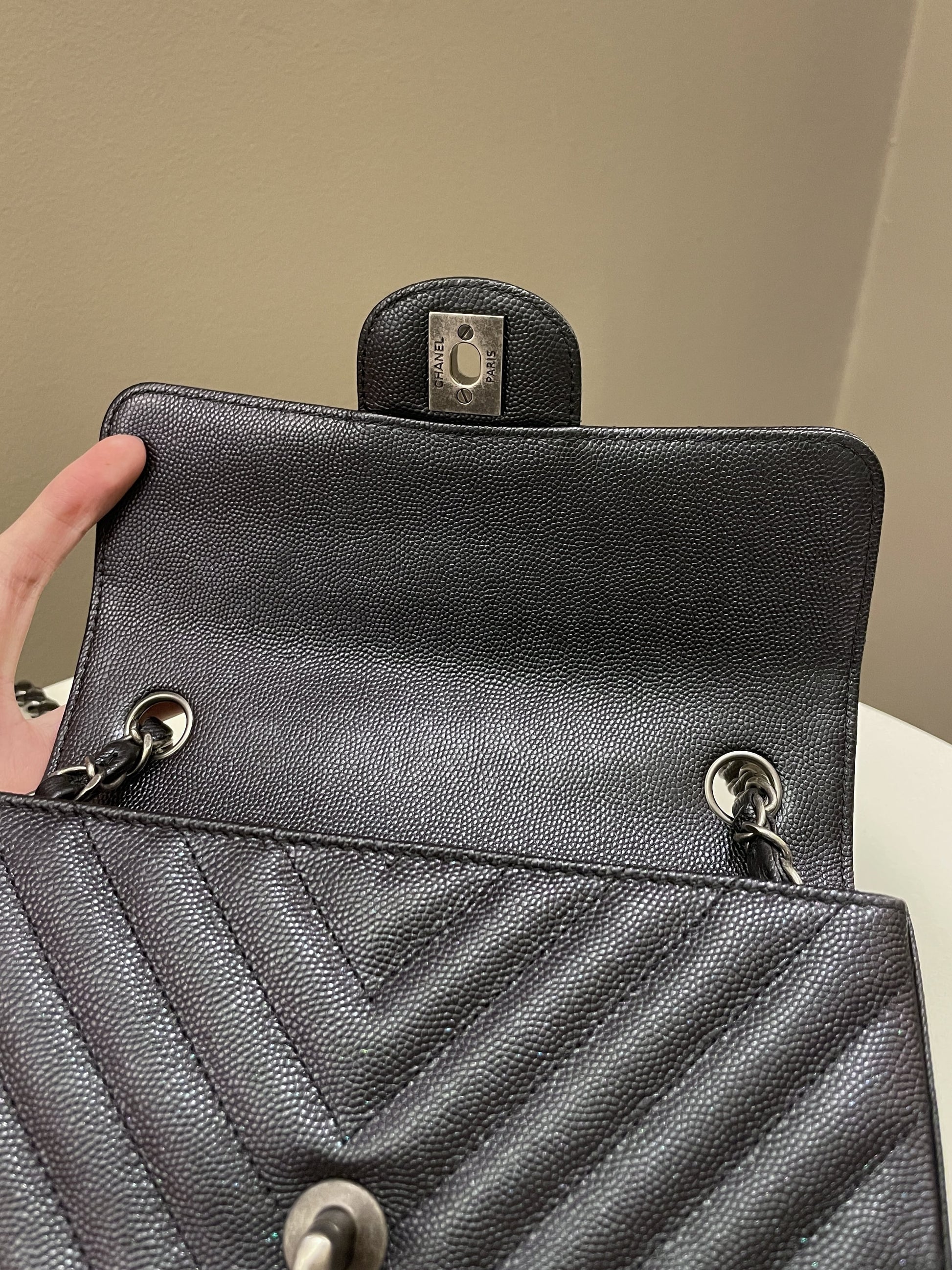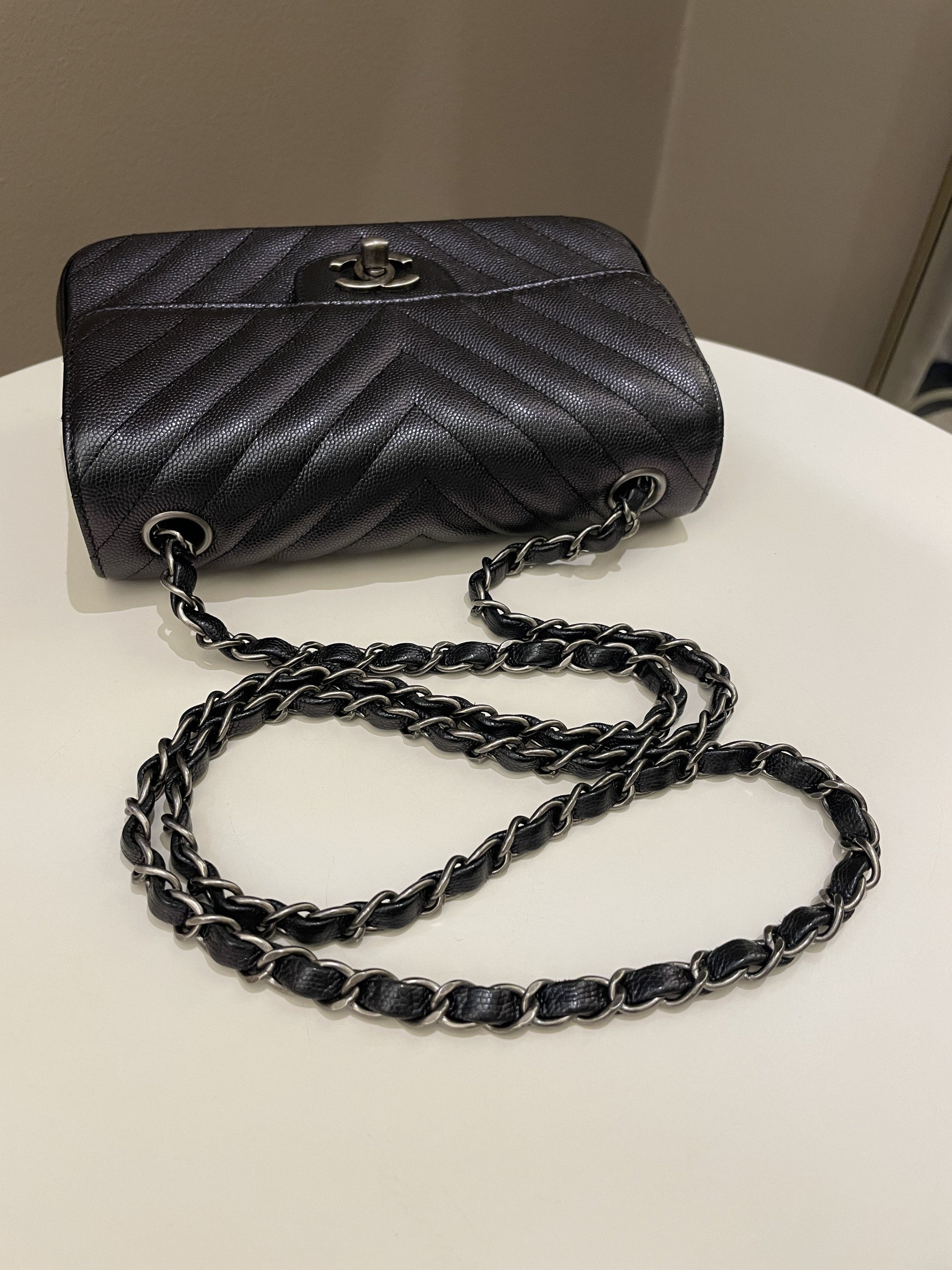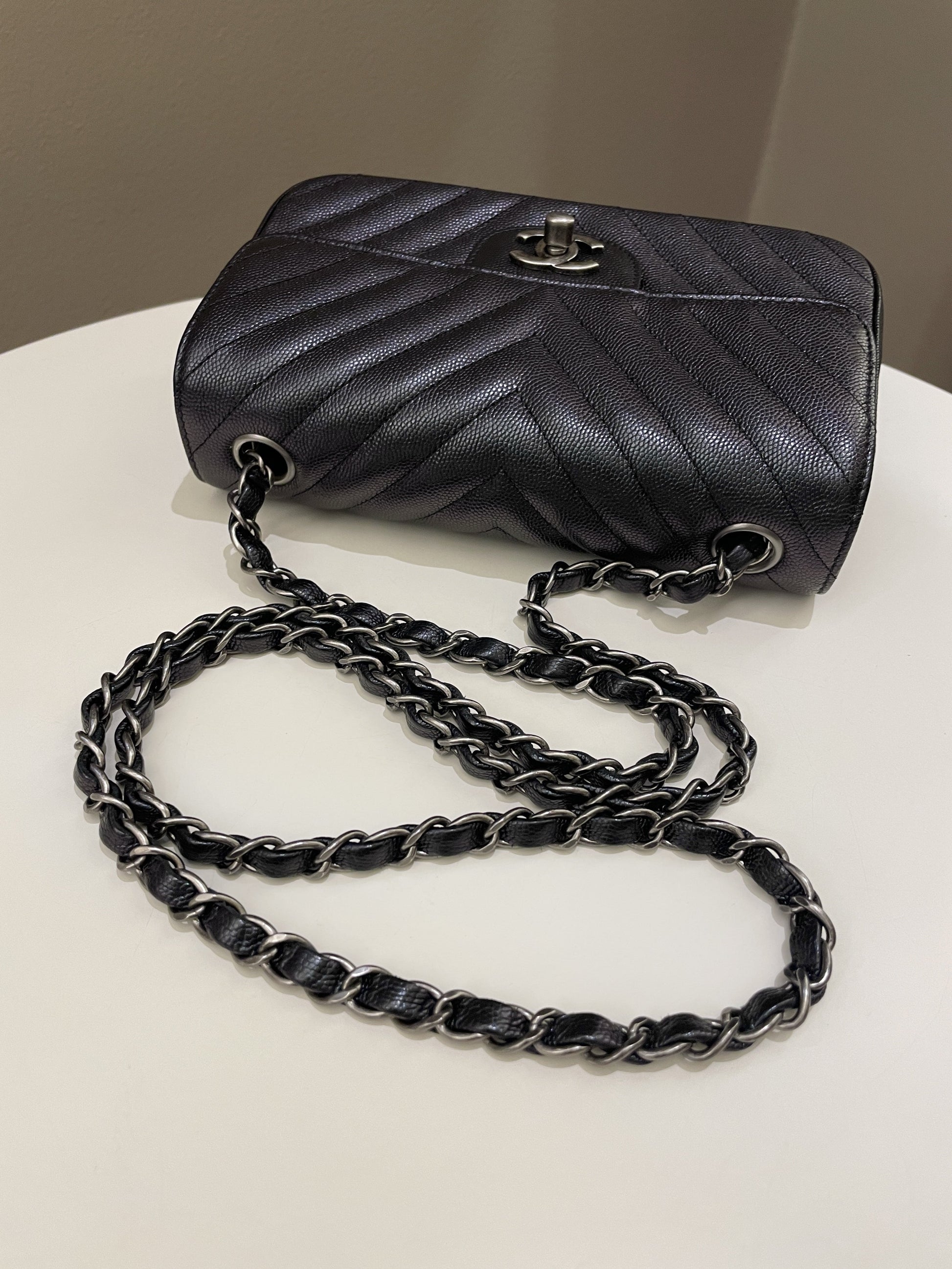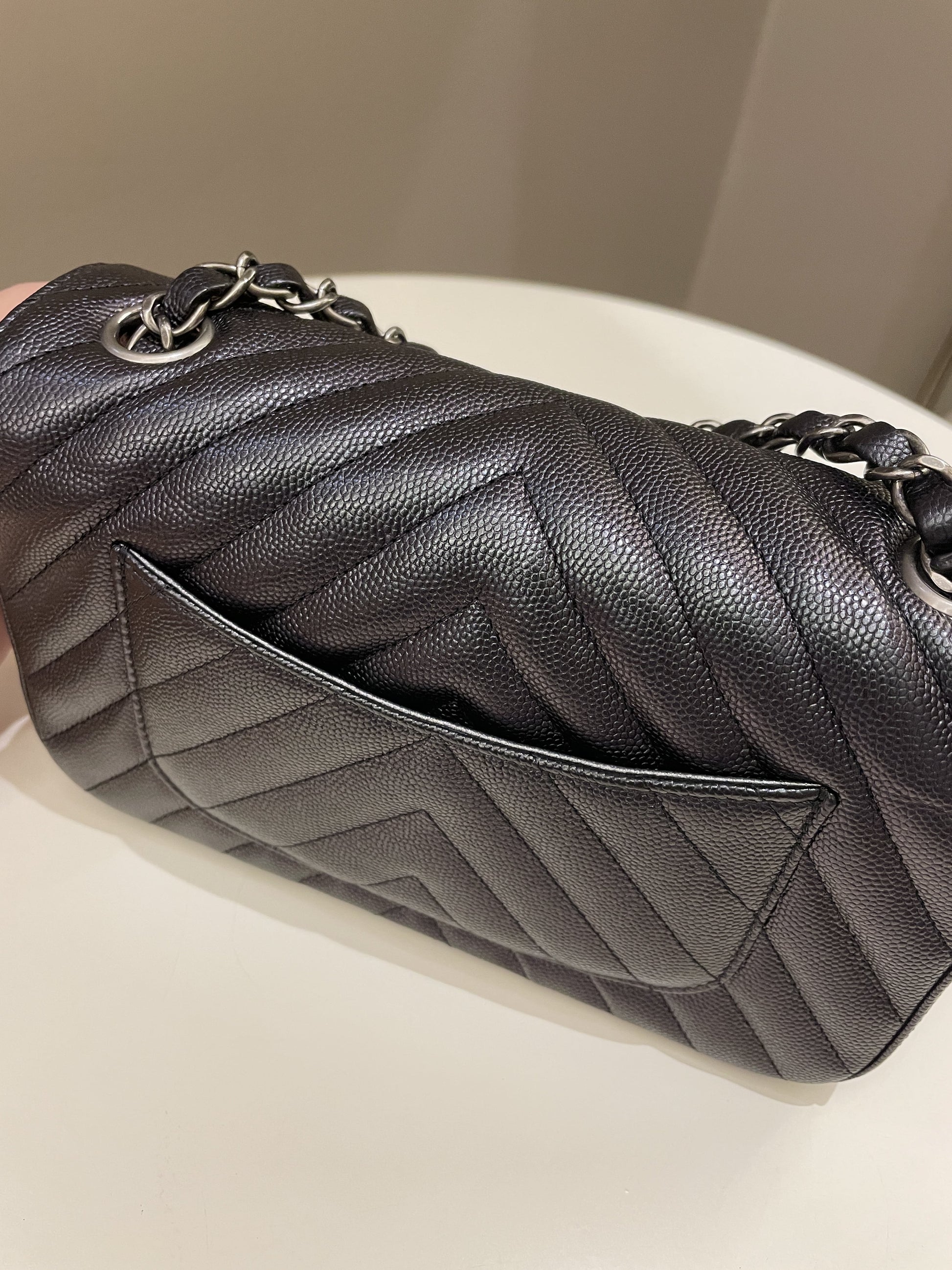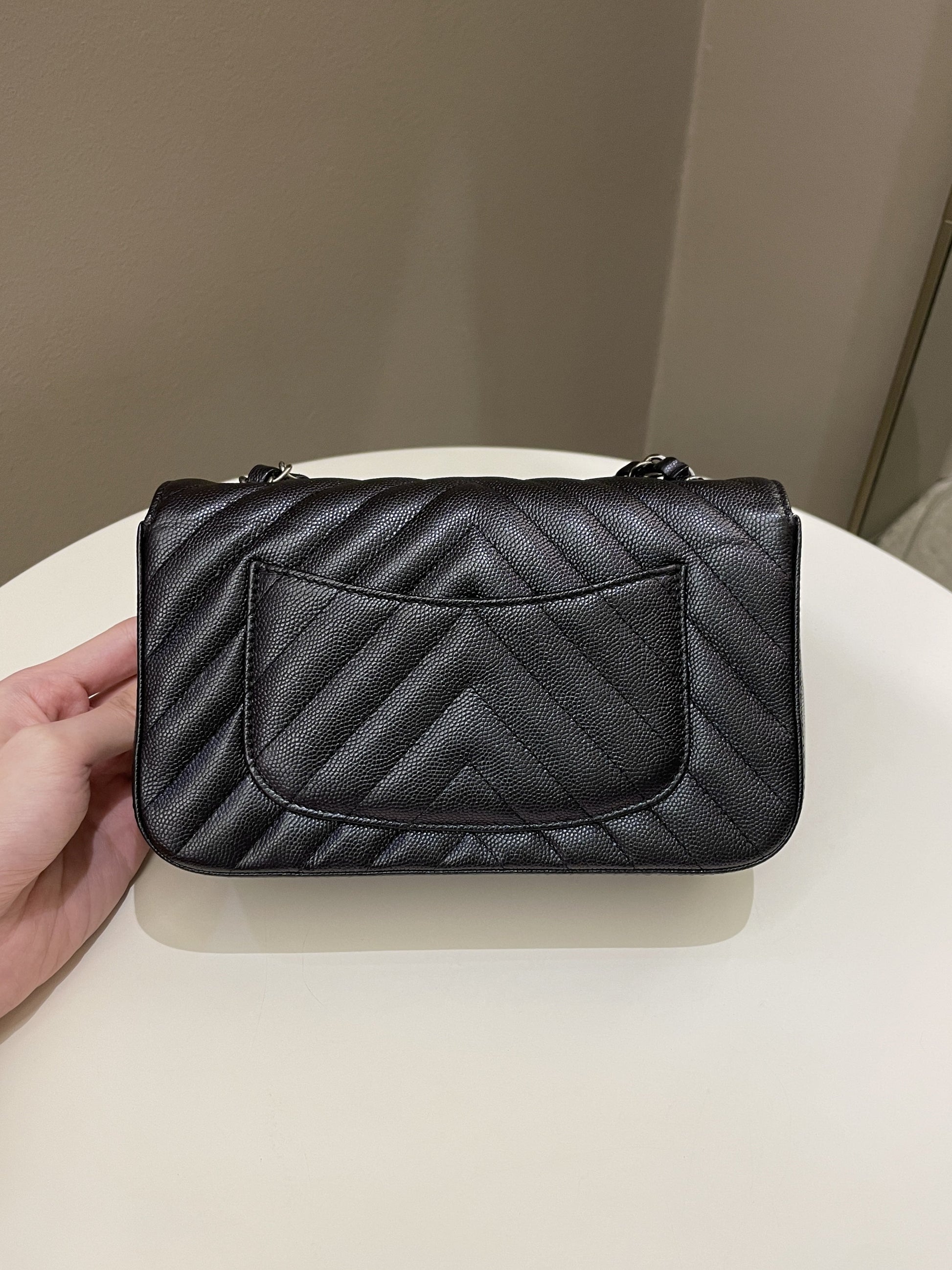 Chanel 17B Classic Chevron Mini Rectangular Black Iridescent Caviar