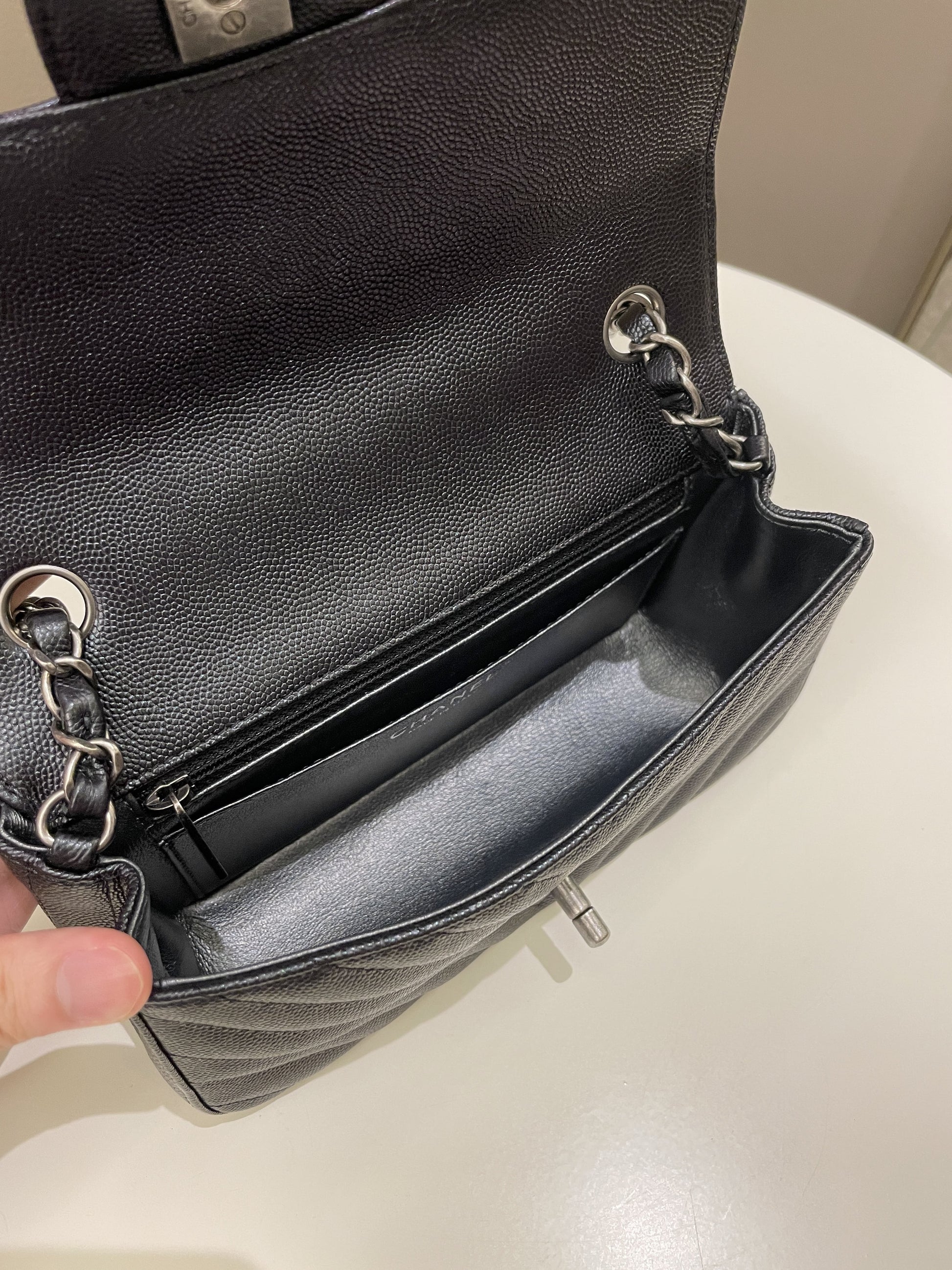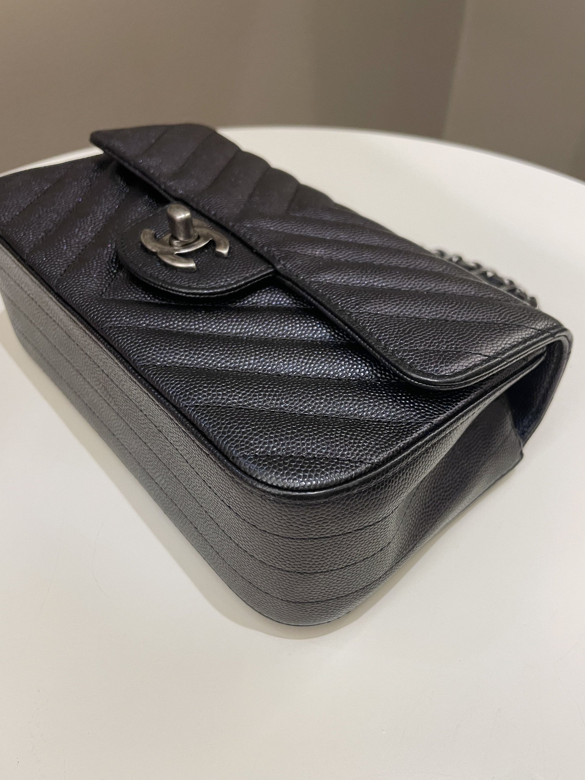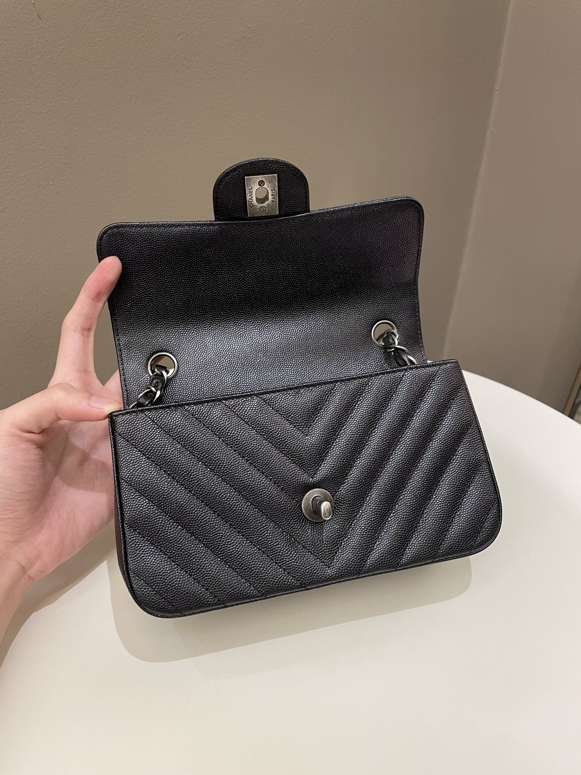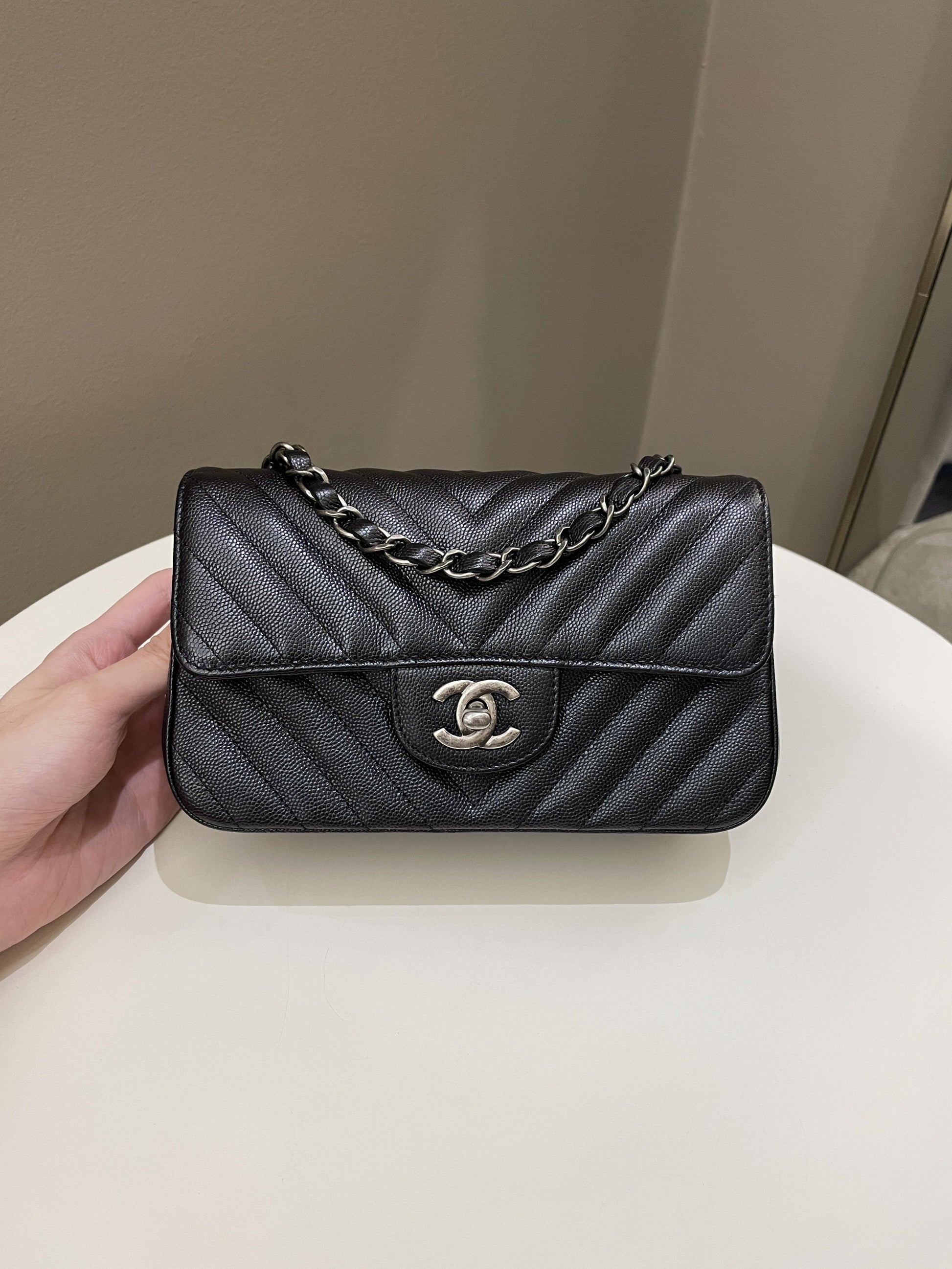 Chanel 17B Classic Chevron Mini Rectangular Black Iridescent Caviar