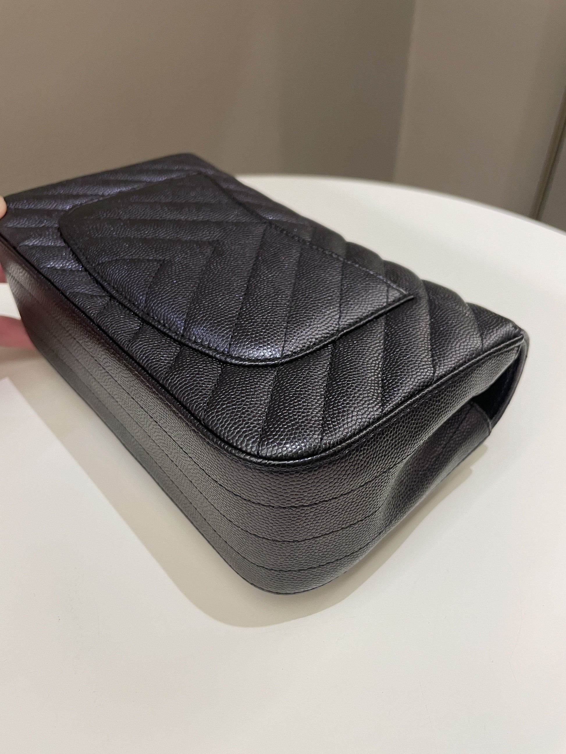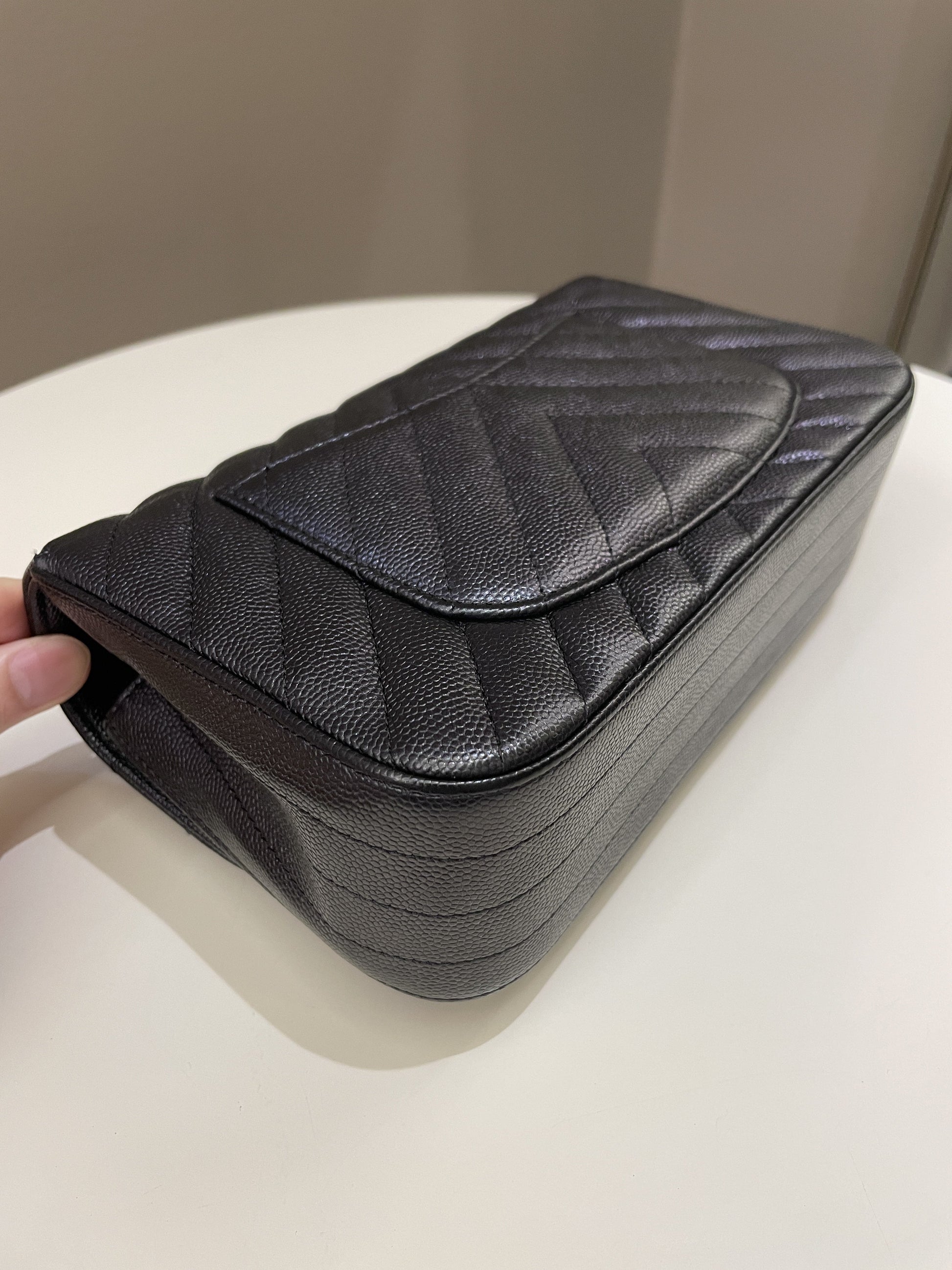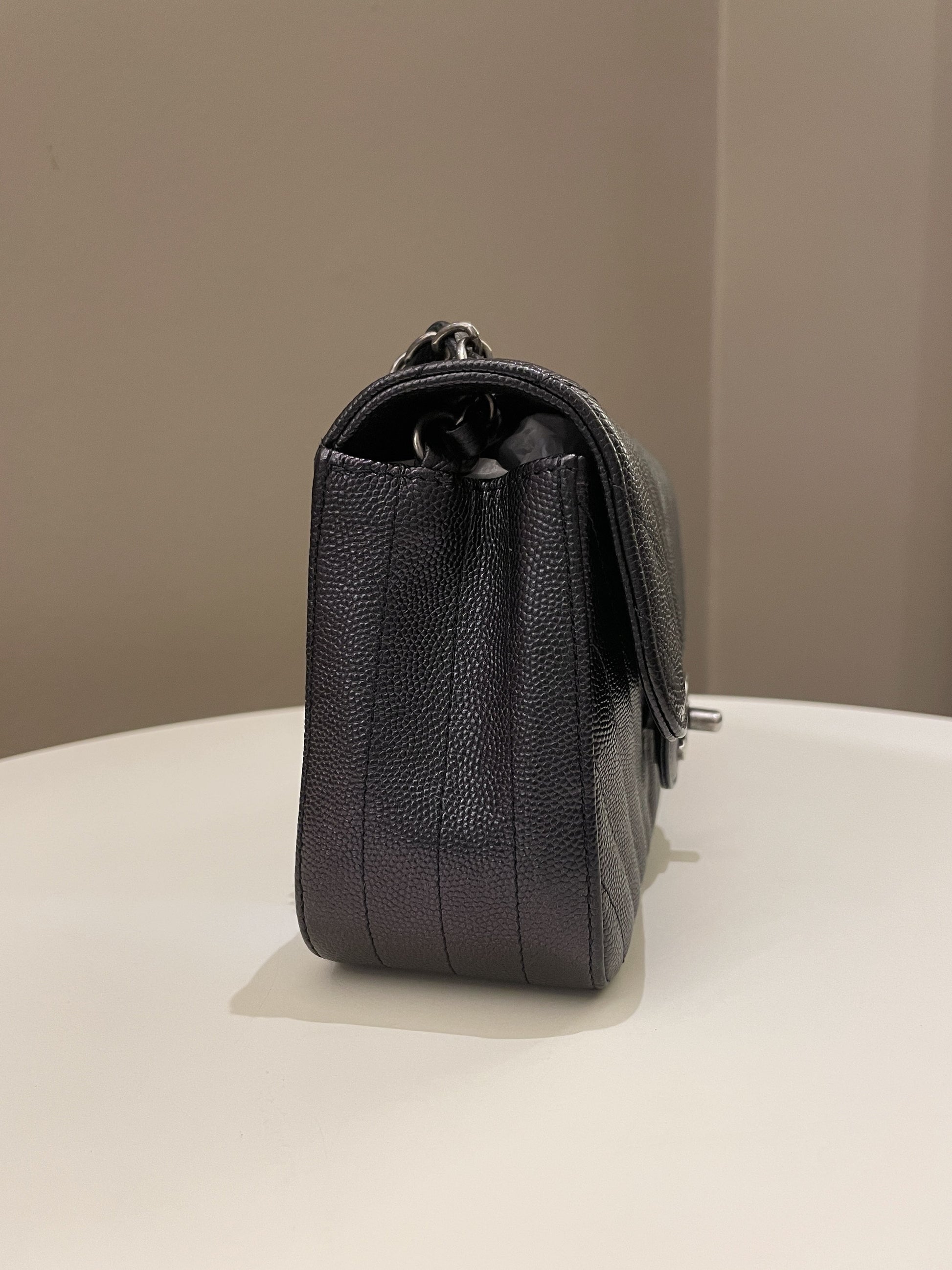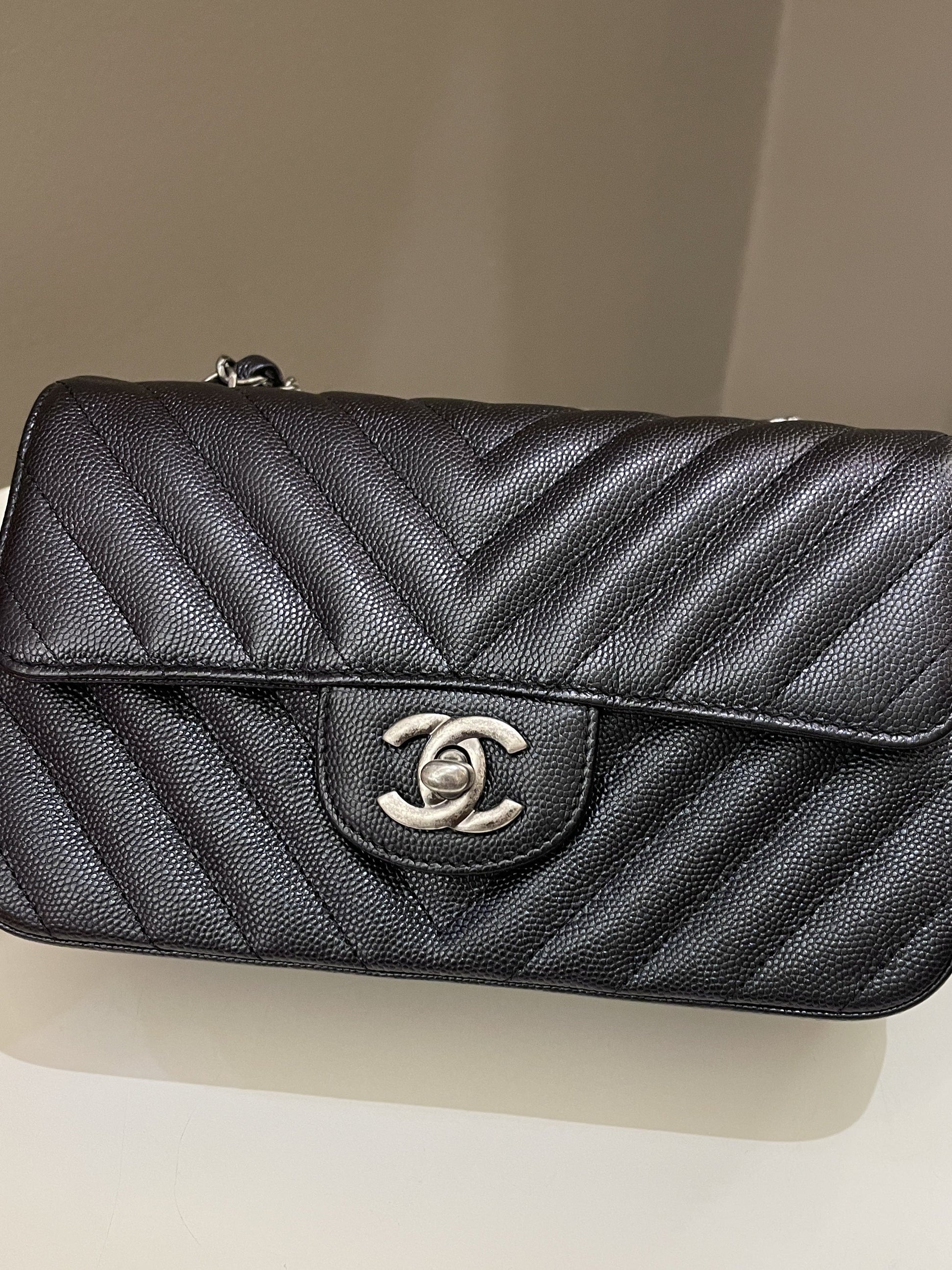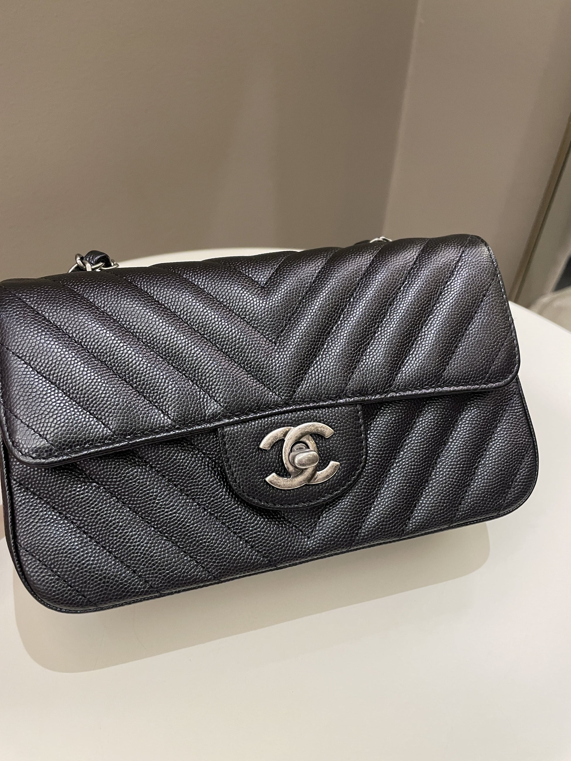 Chanel 17B Classic Chevron Mini Rectangular Black Iridescent Caviar
