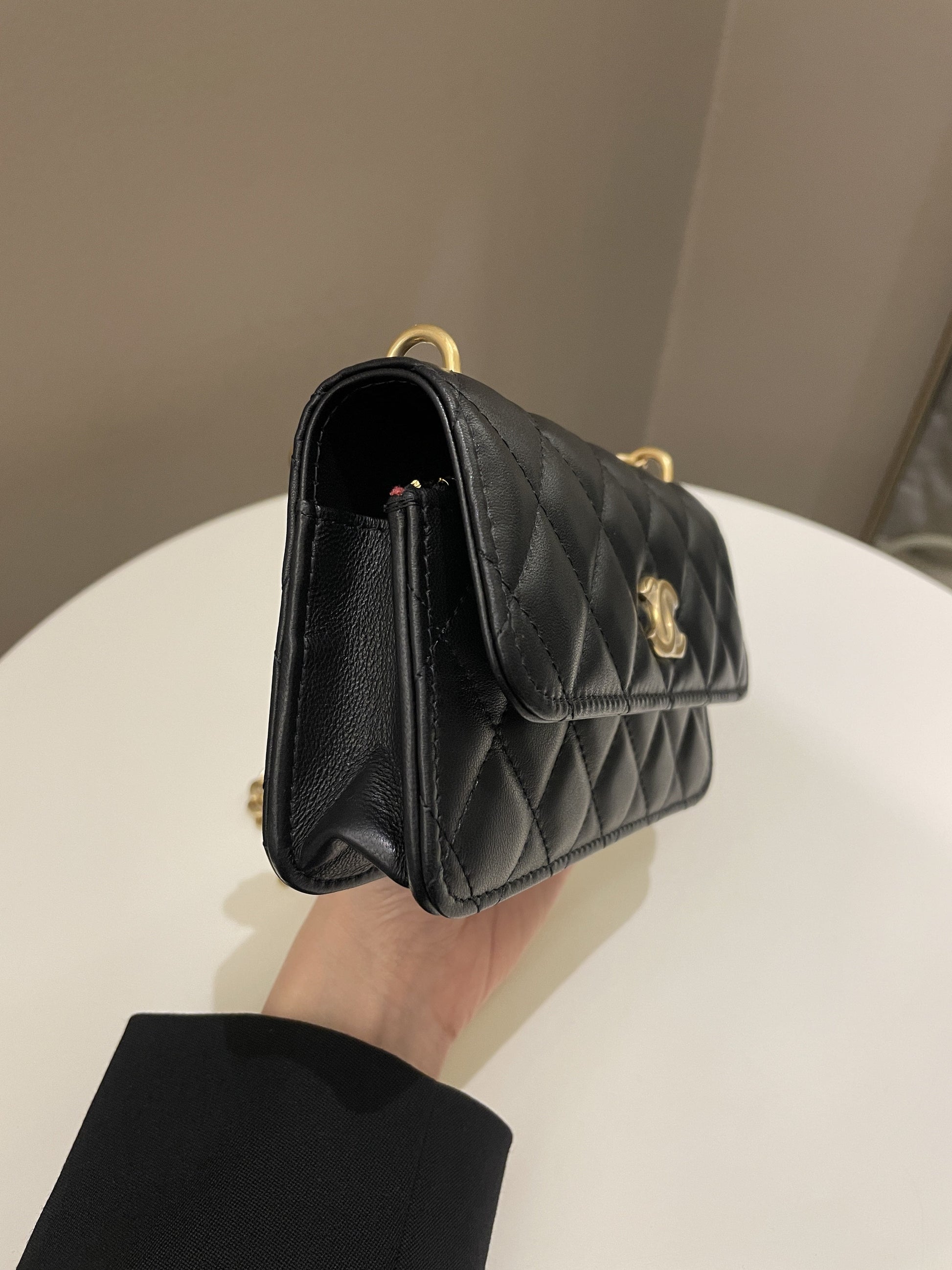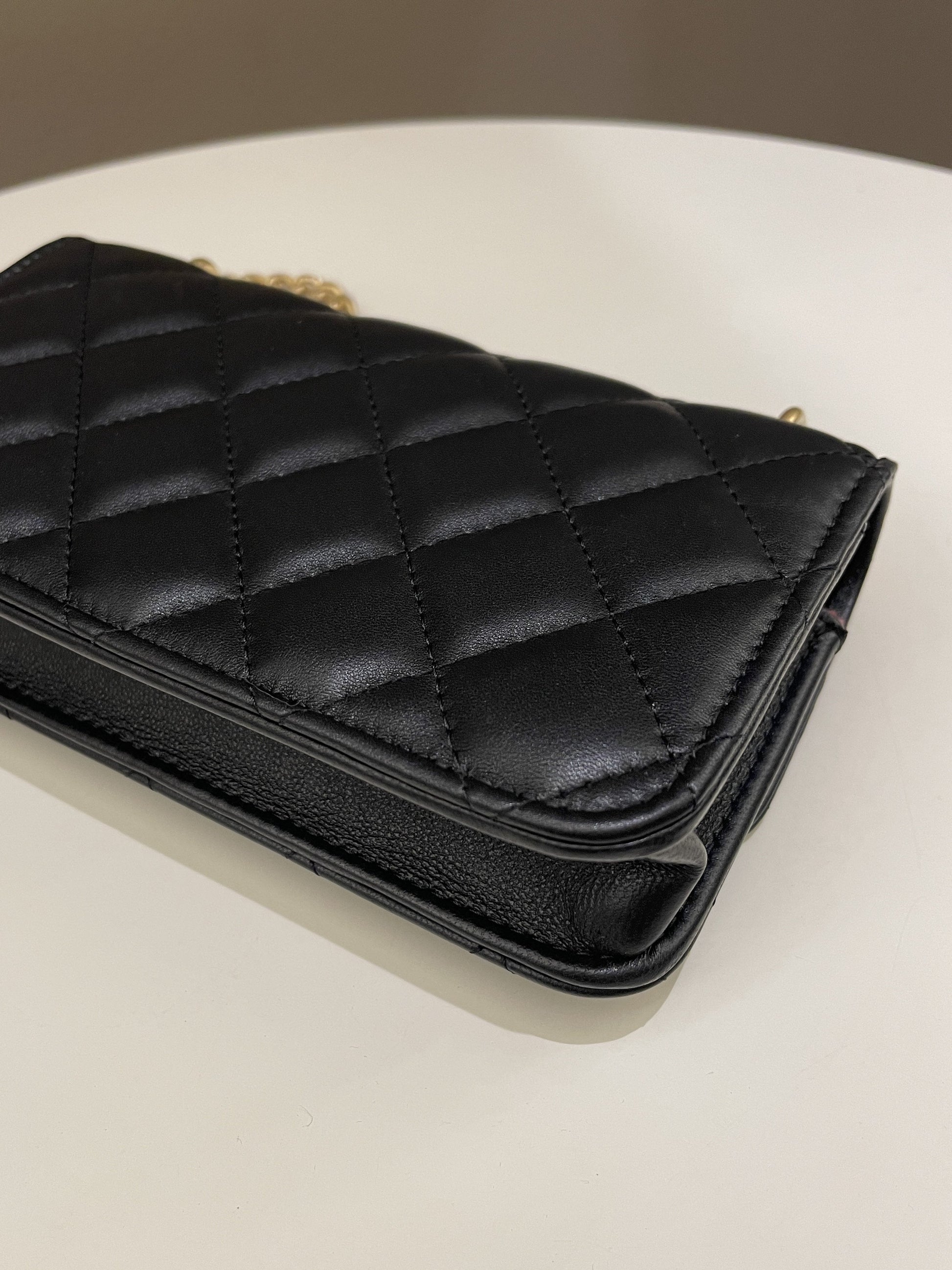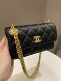 Chanel Camellia Pearl Crush Clutch on Chain Black