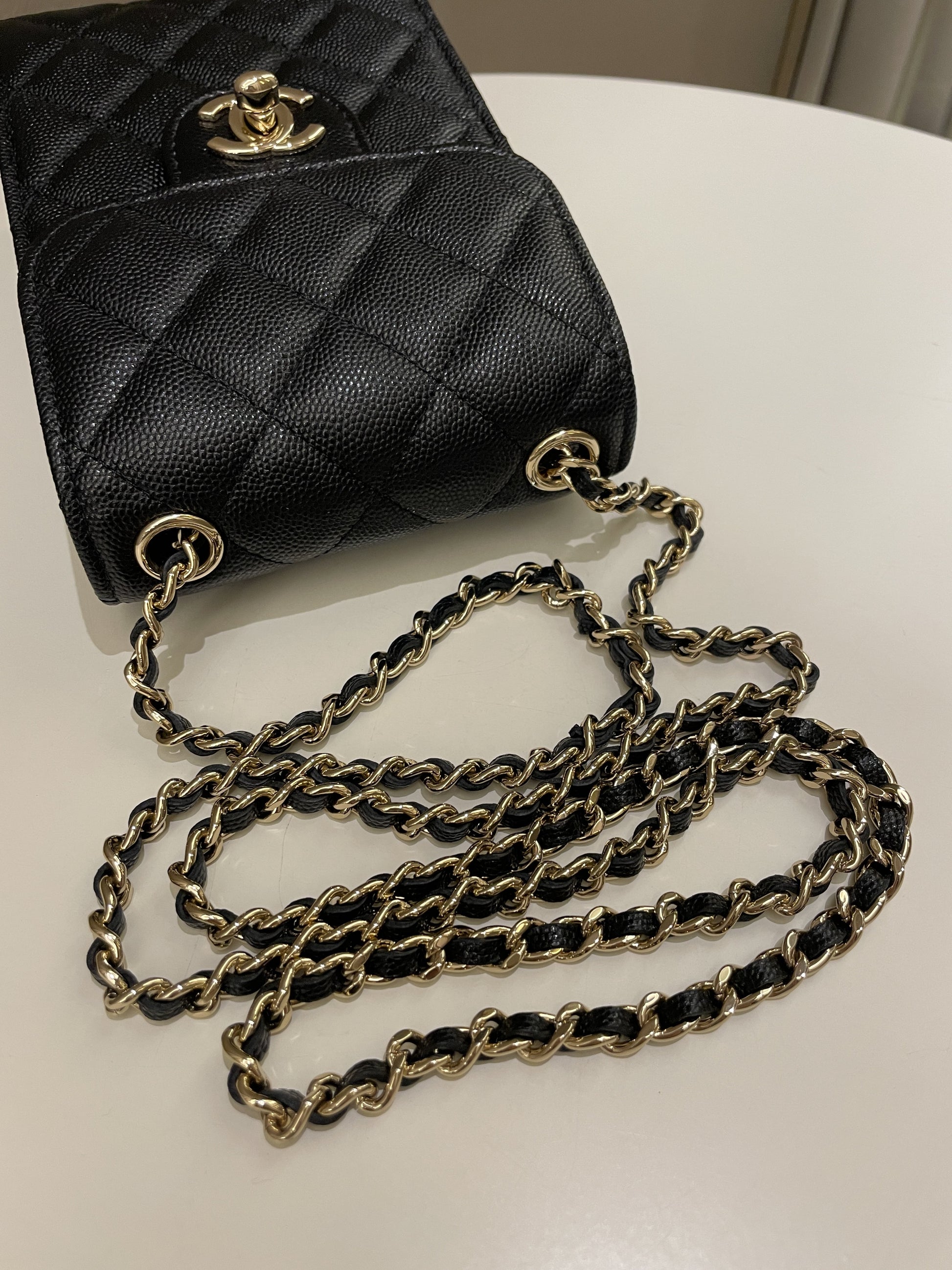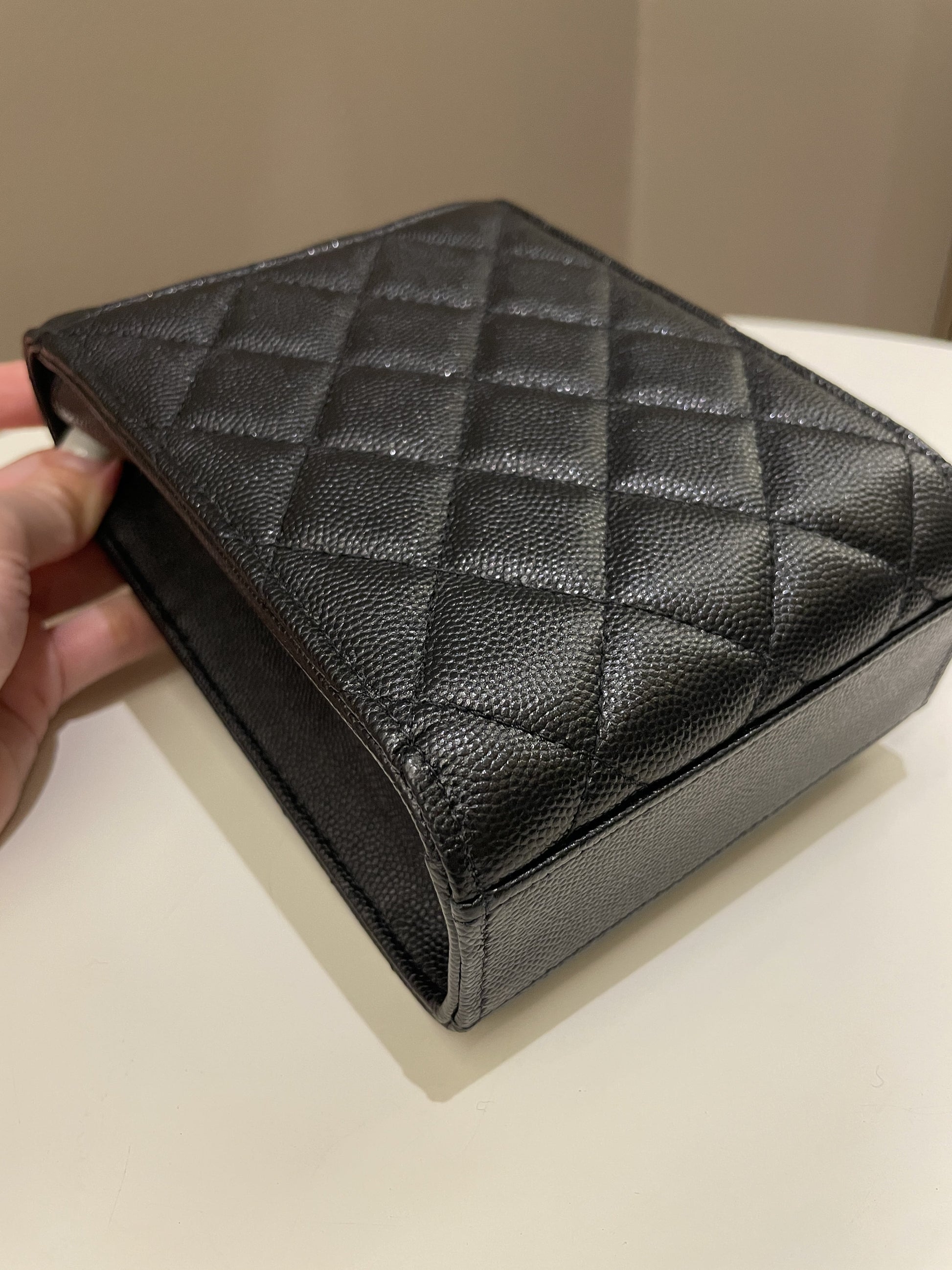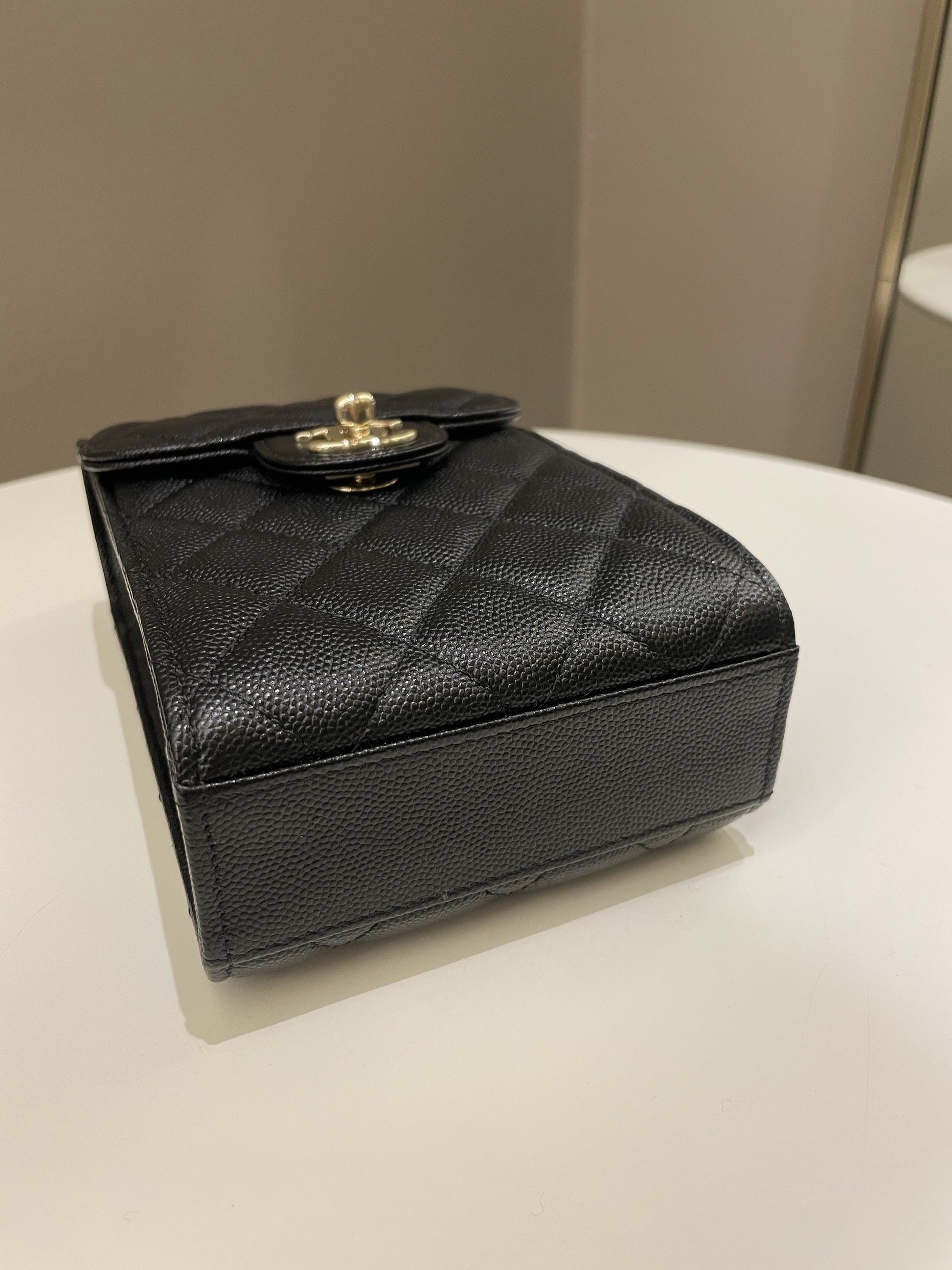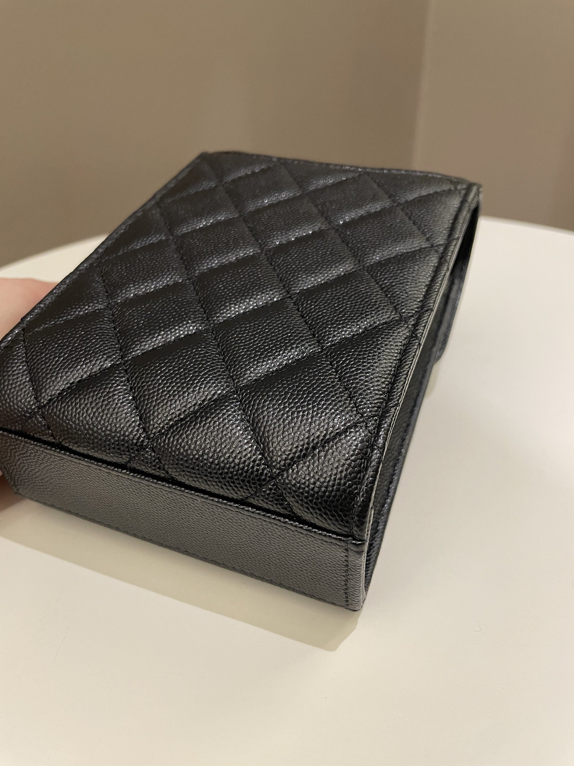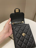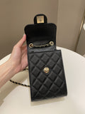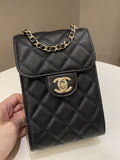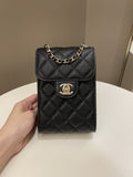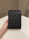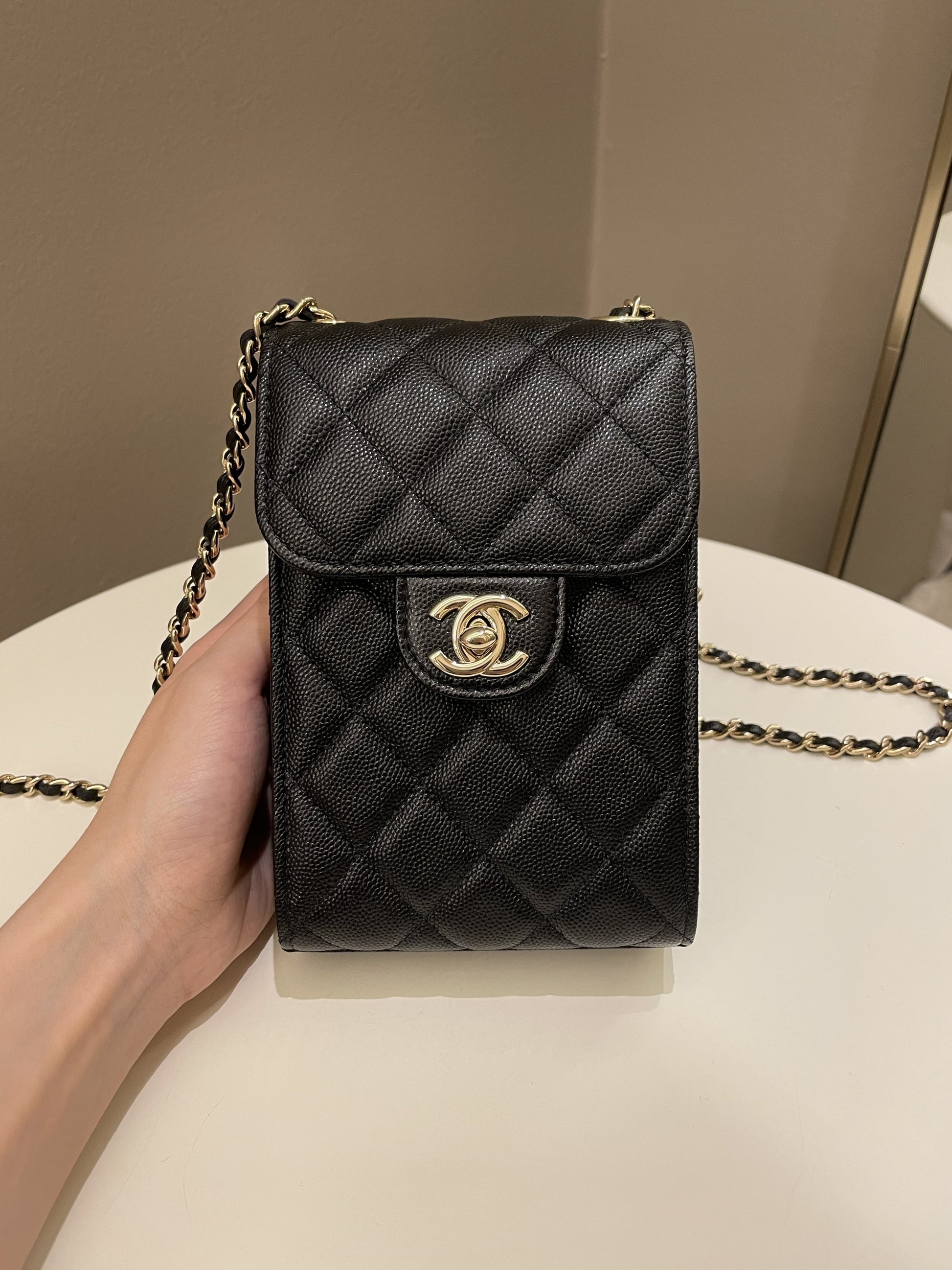 Chanel Quilted Cc Vertical Phone Clutch On Chain Black Caviar