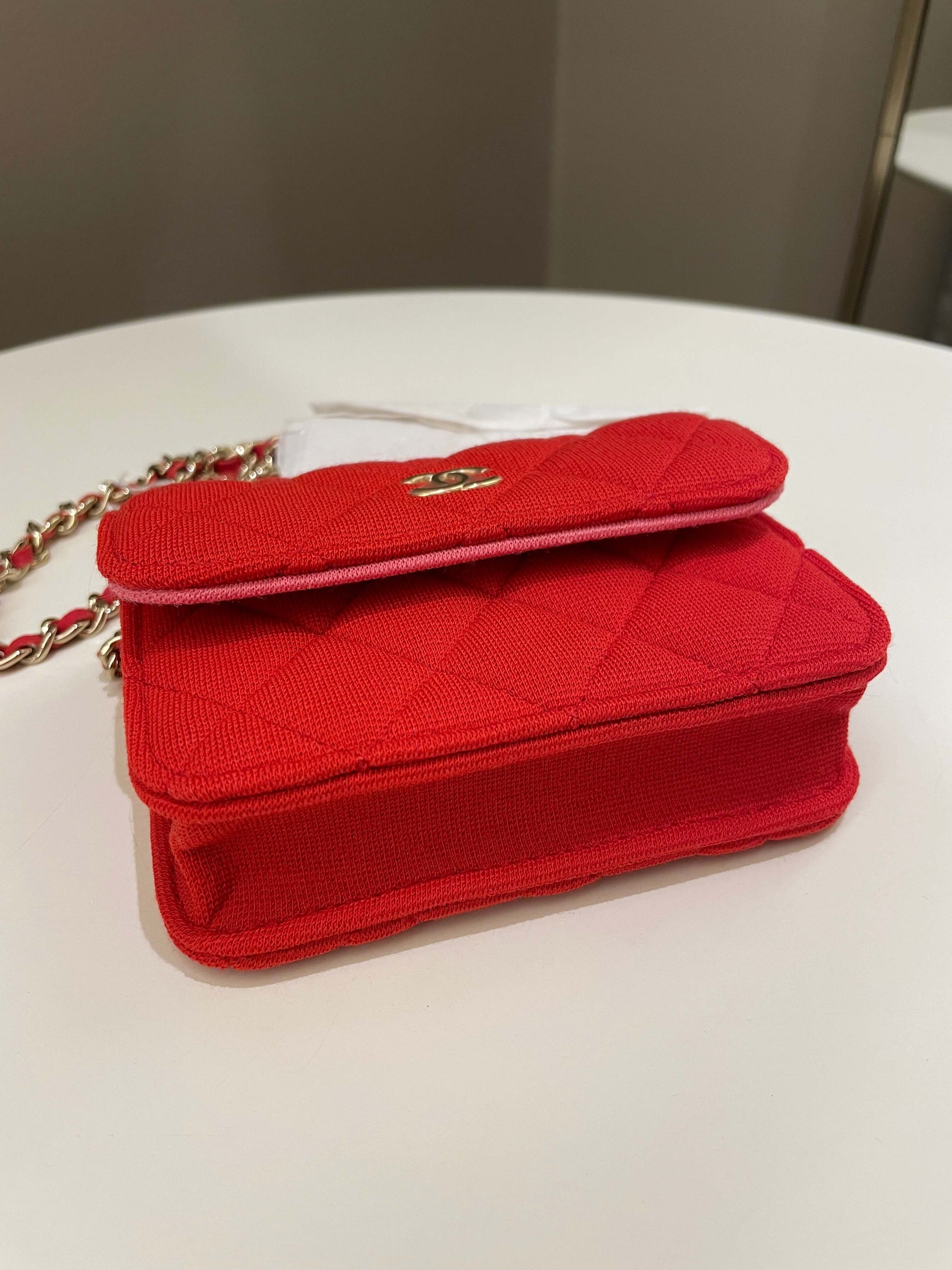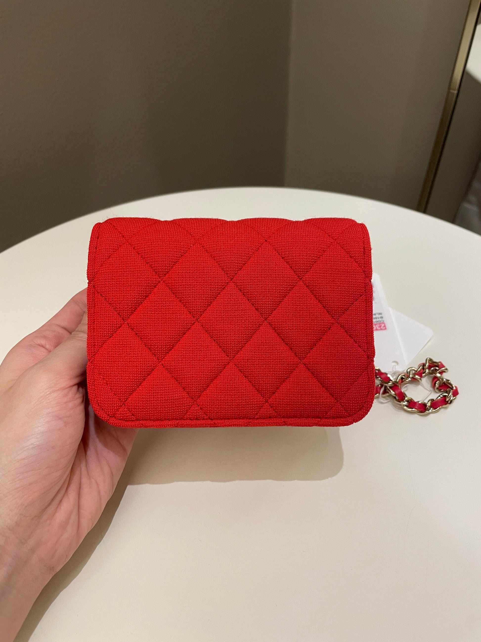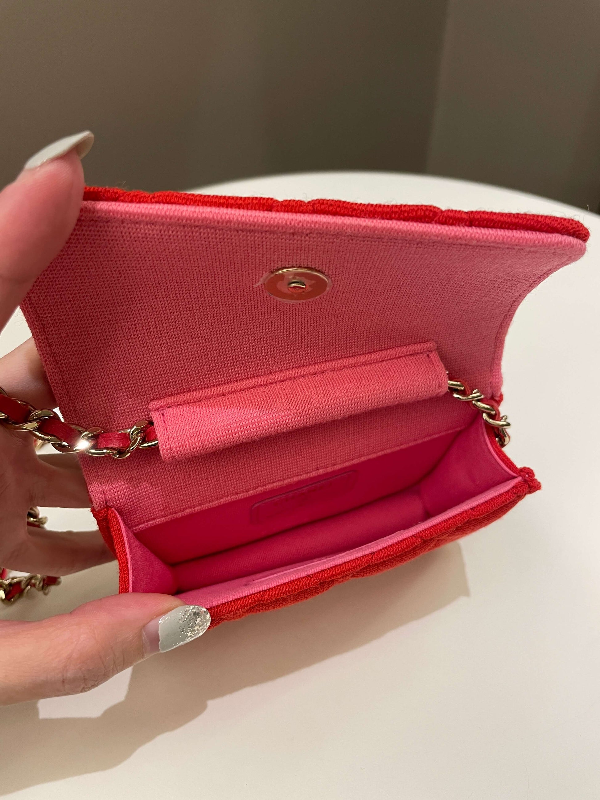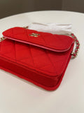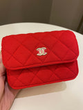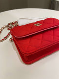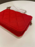 Chanel 23C Quilted VIP Clutch On Chain Red Pink Jersey