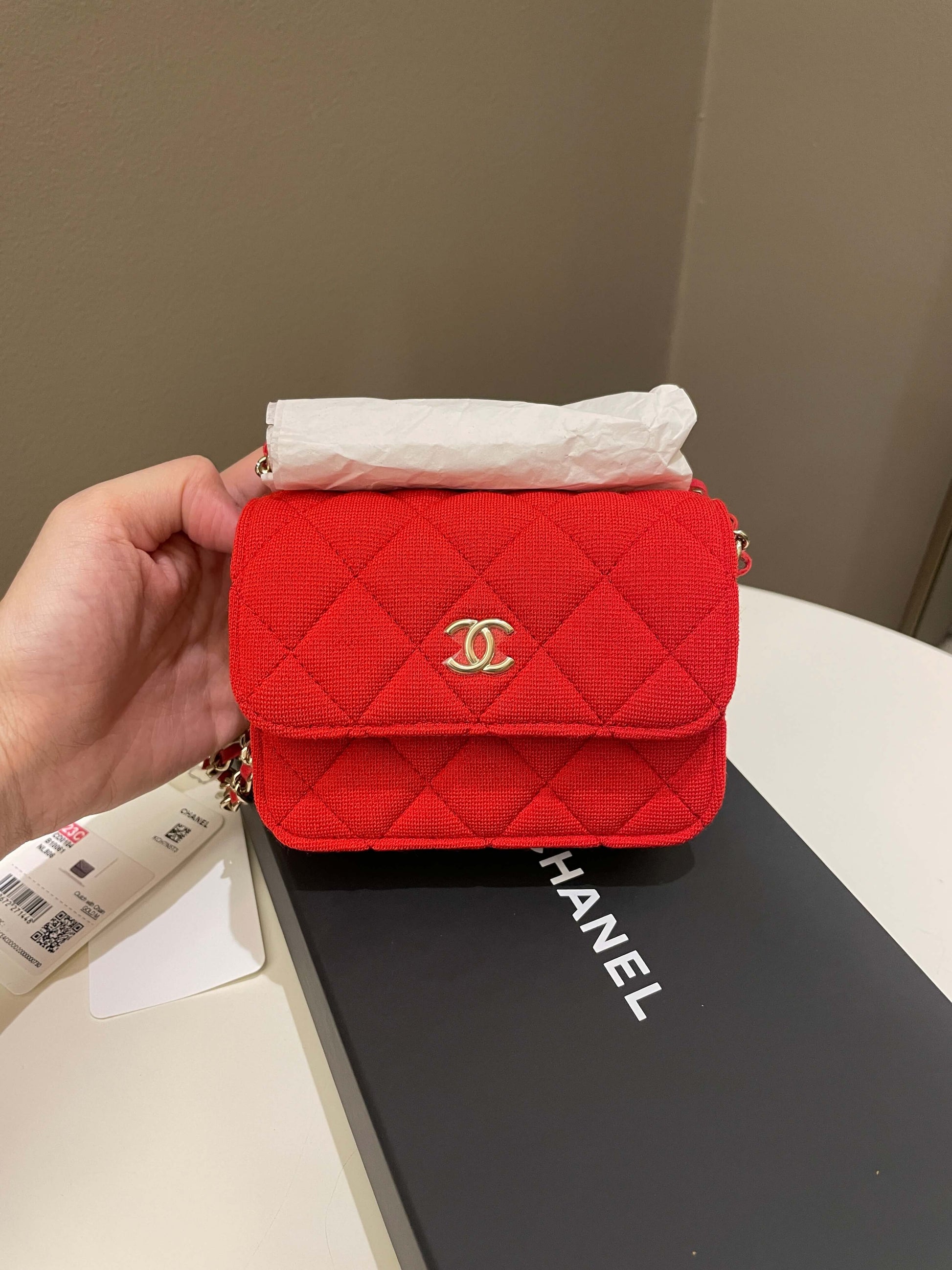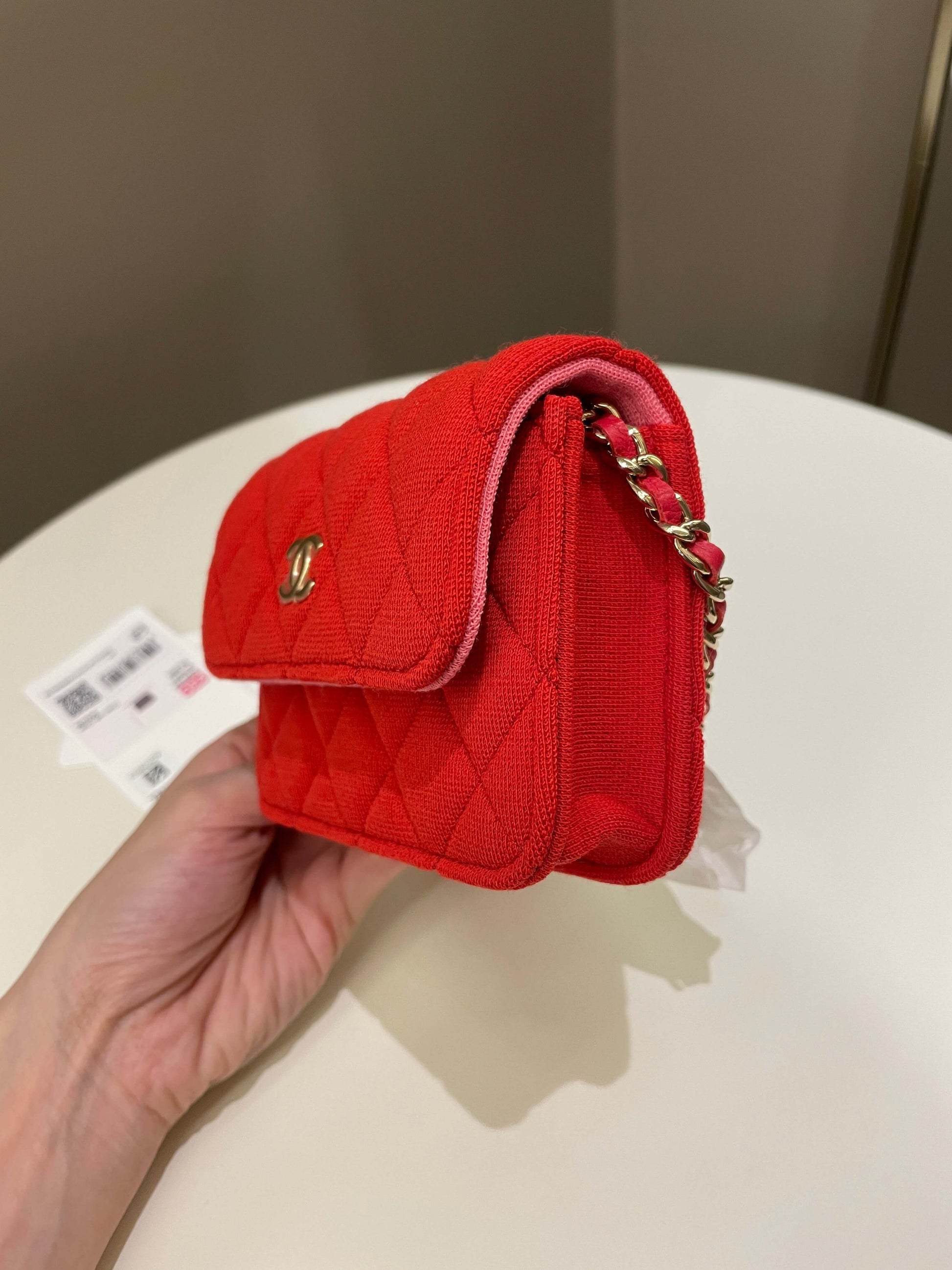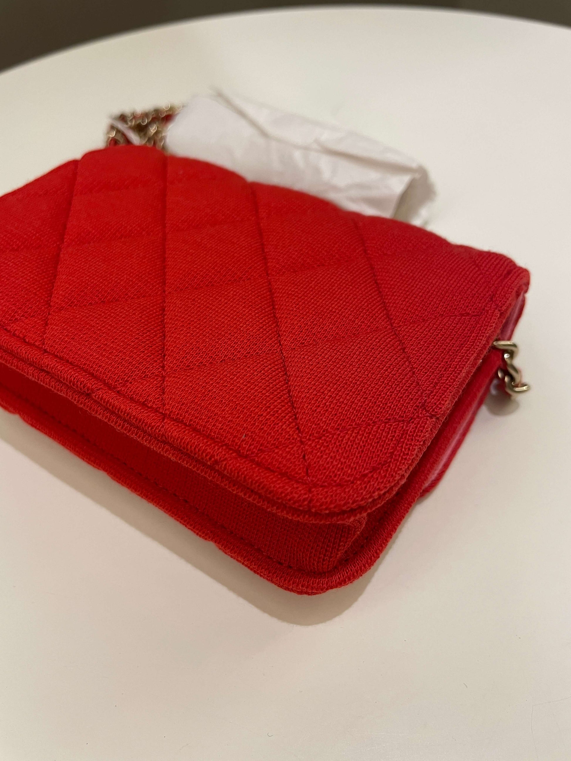 Chanel 23C Quilted VIP Clutch On Chain Red Pink Jersey