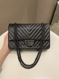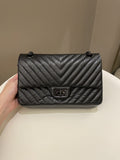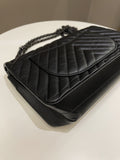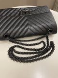 Chanel 2.55 225 So Black Chevron Reissue Double Flap Black Calfskin