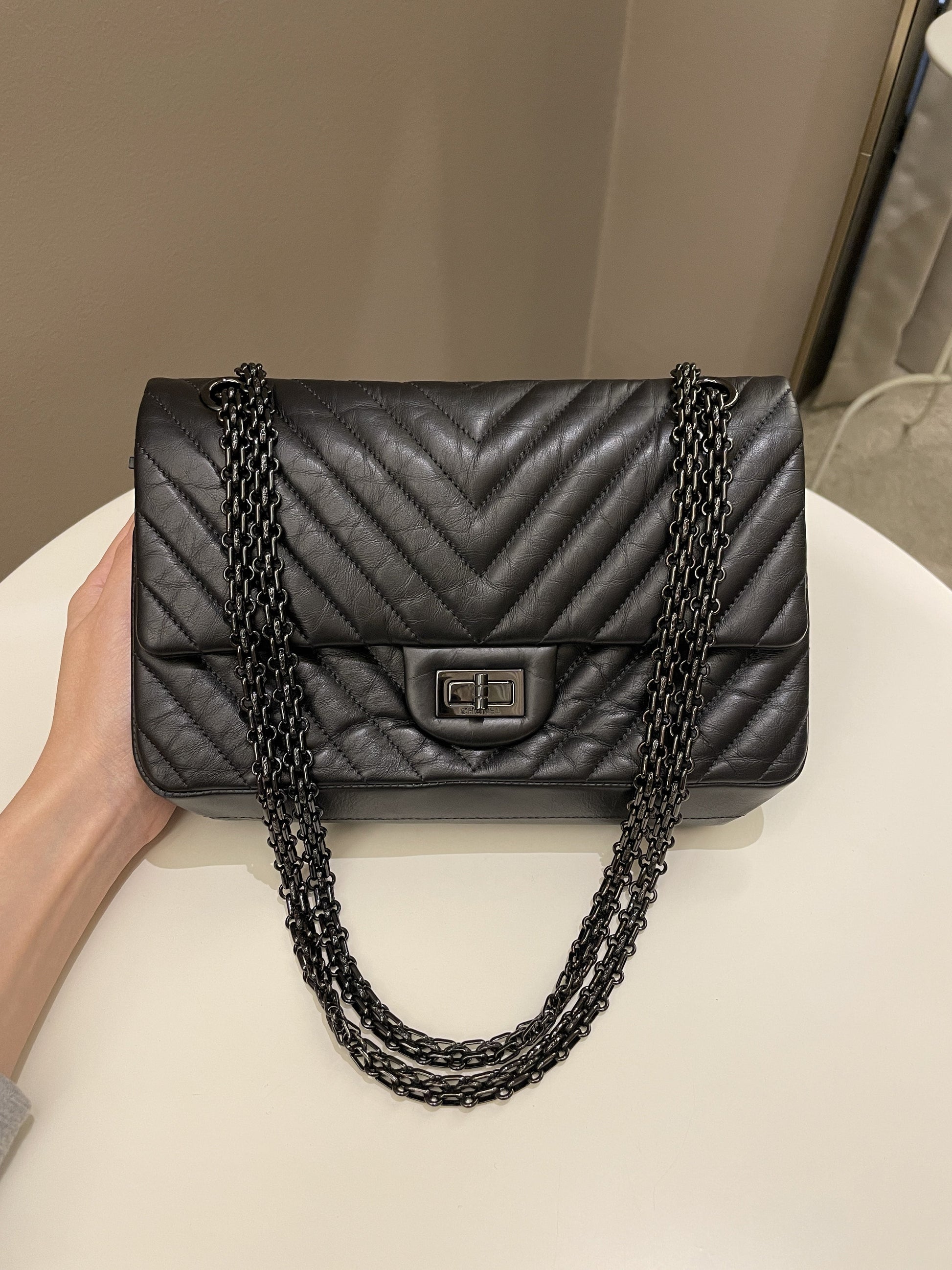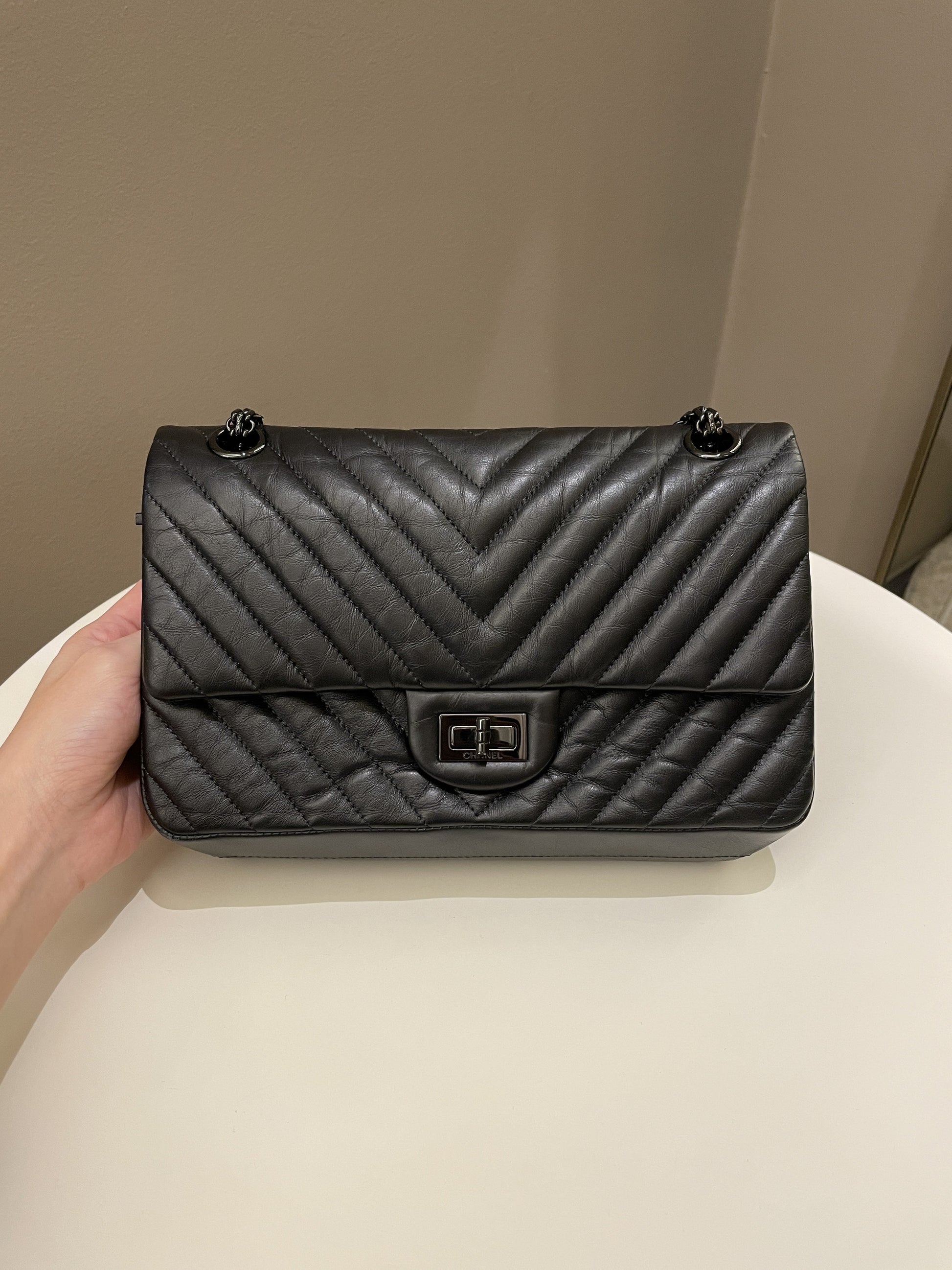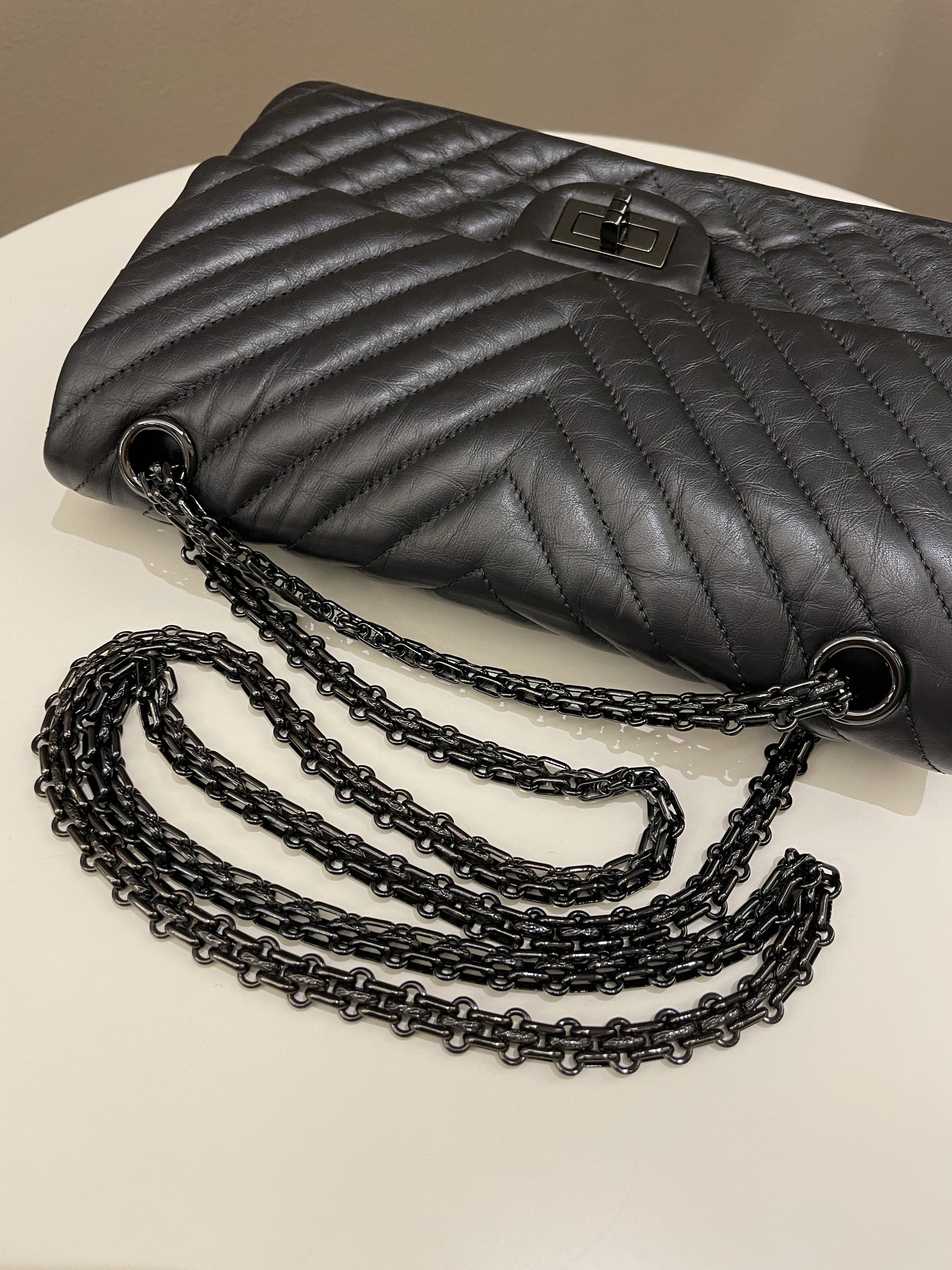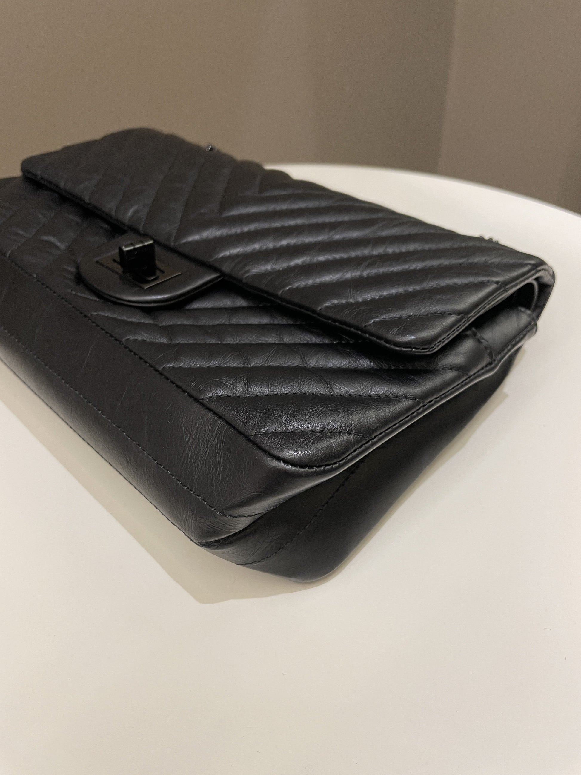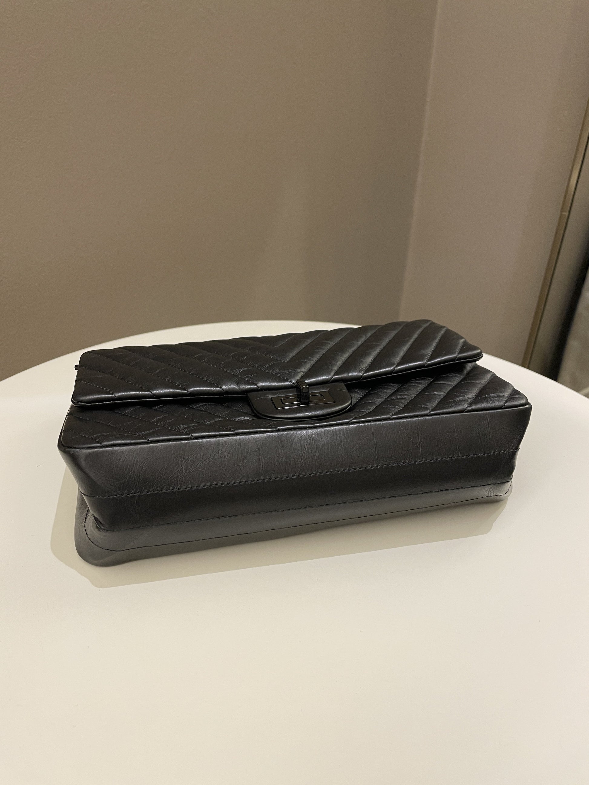Chanel 2.55 225 So Black Chevron Reissue Double Flap