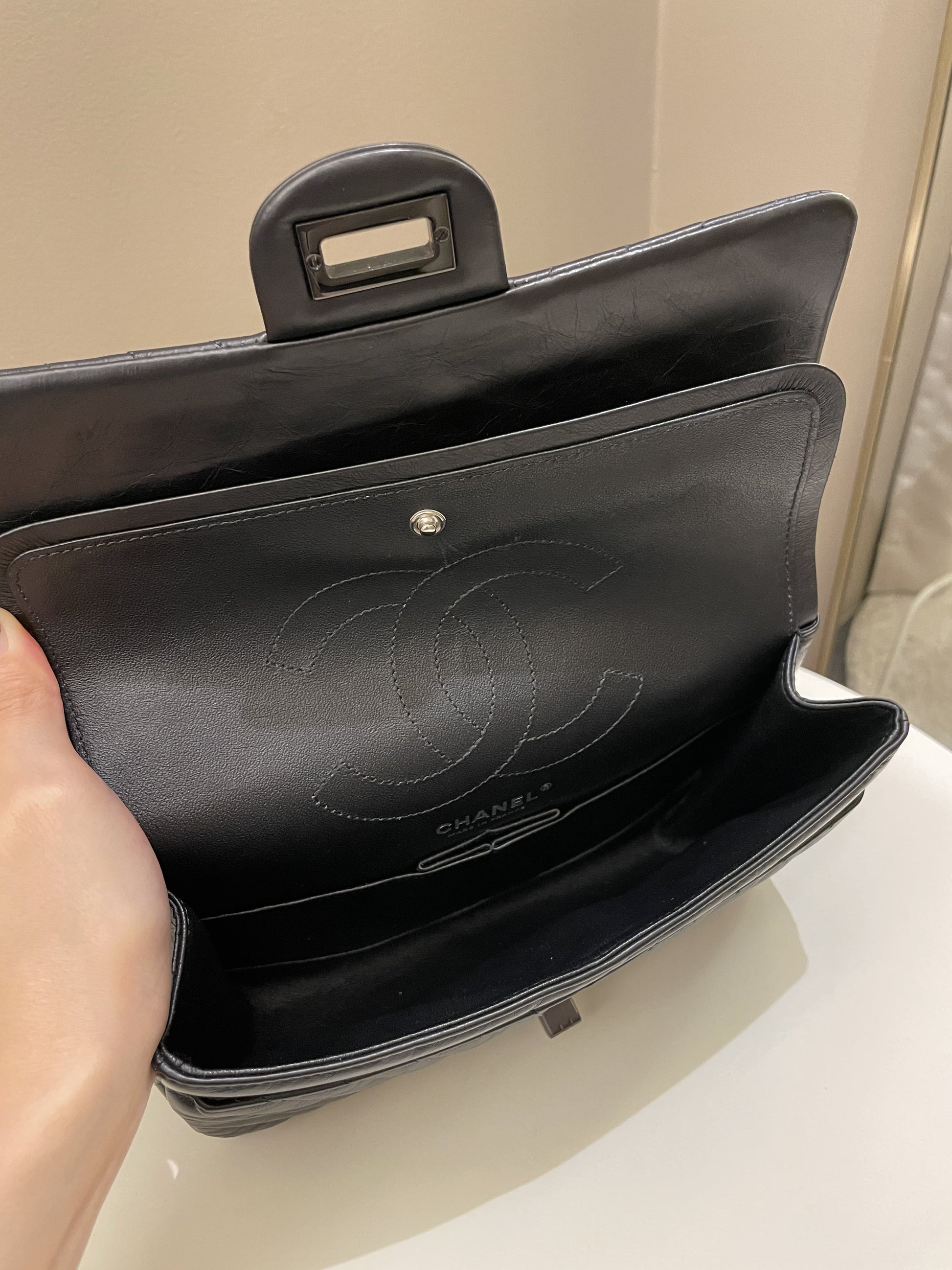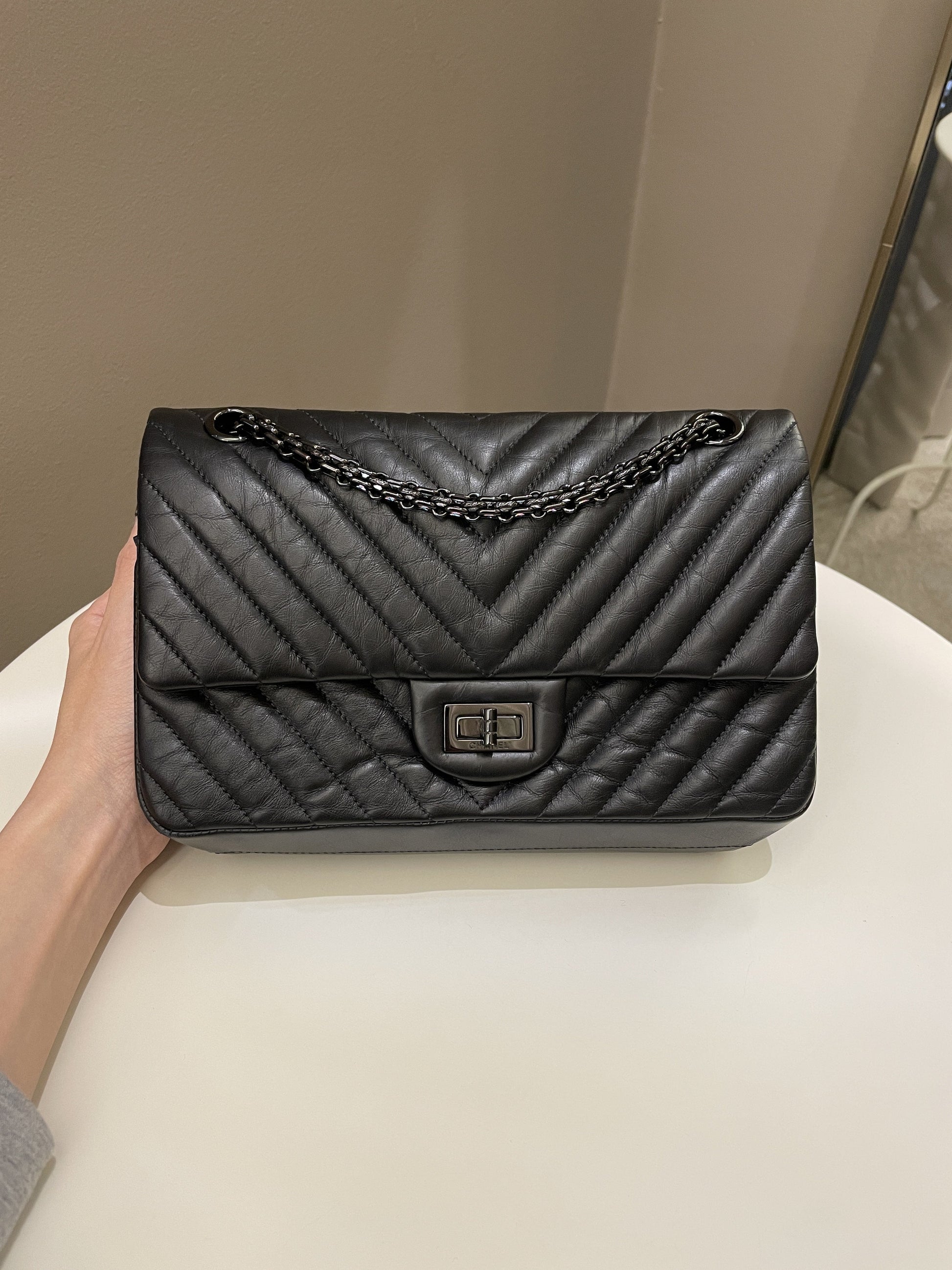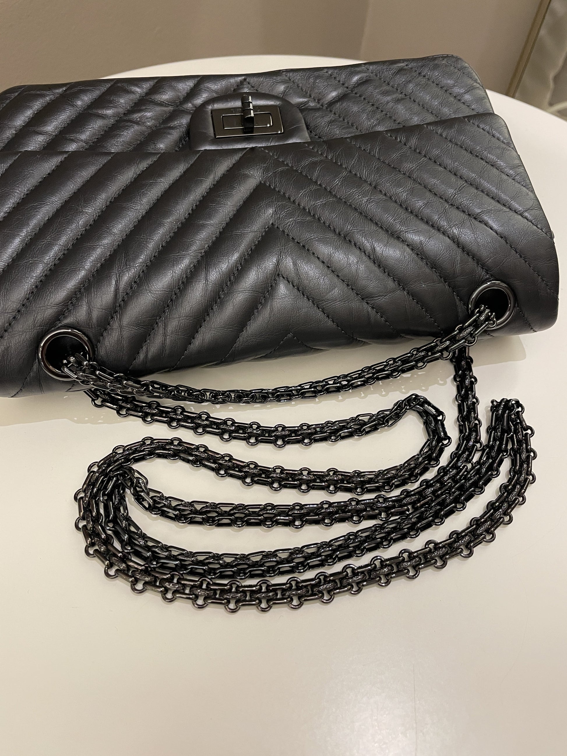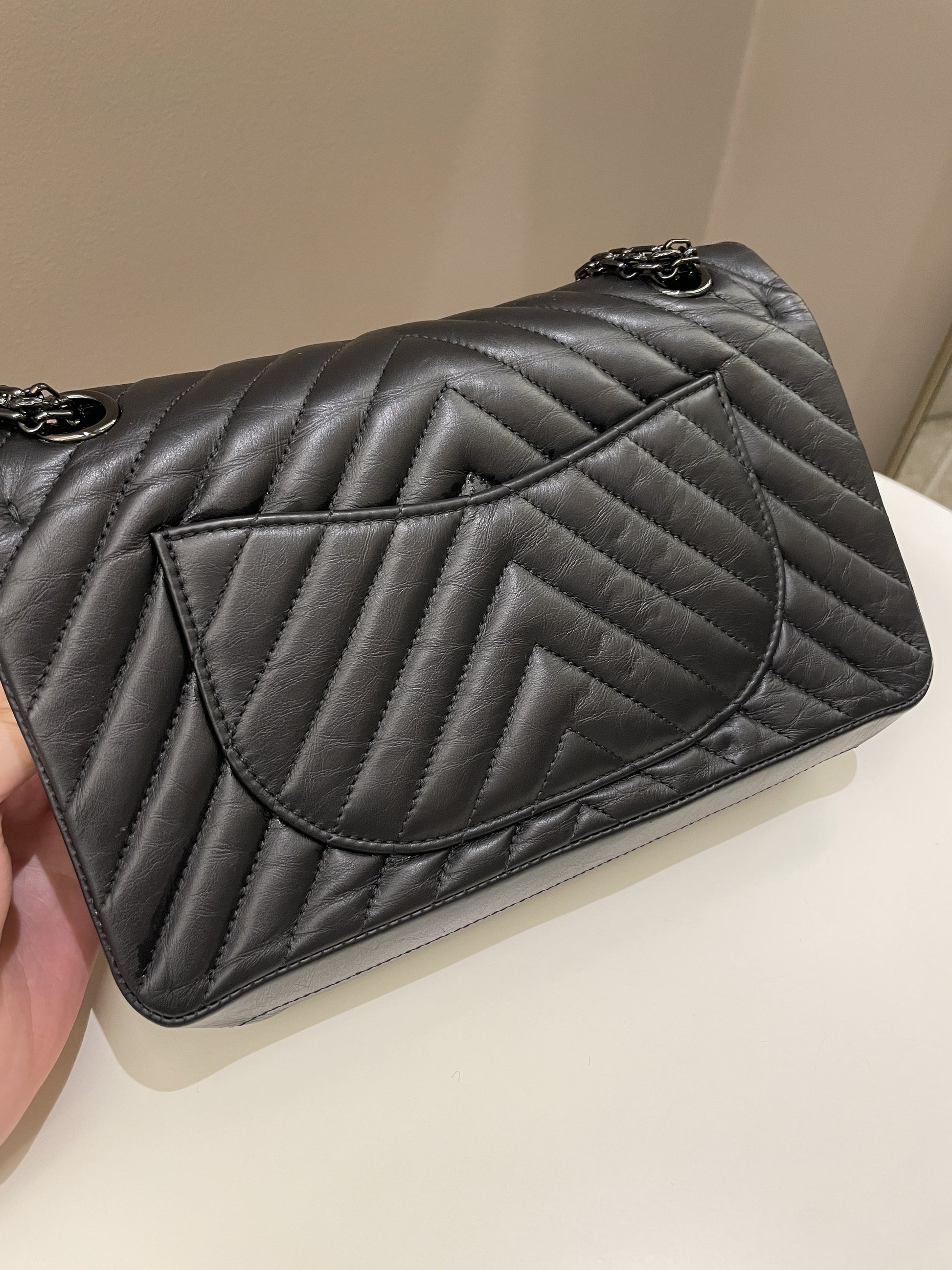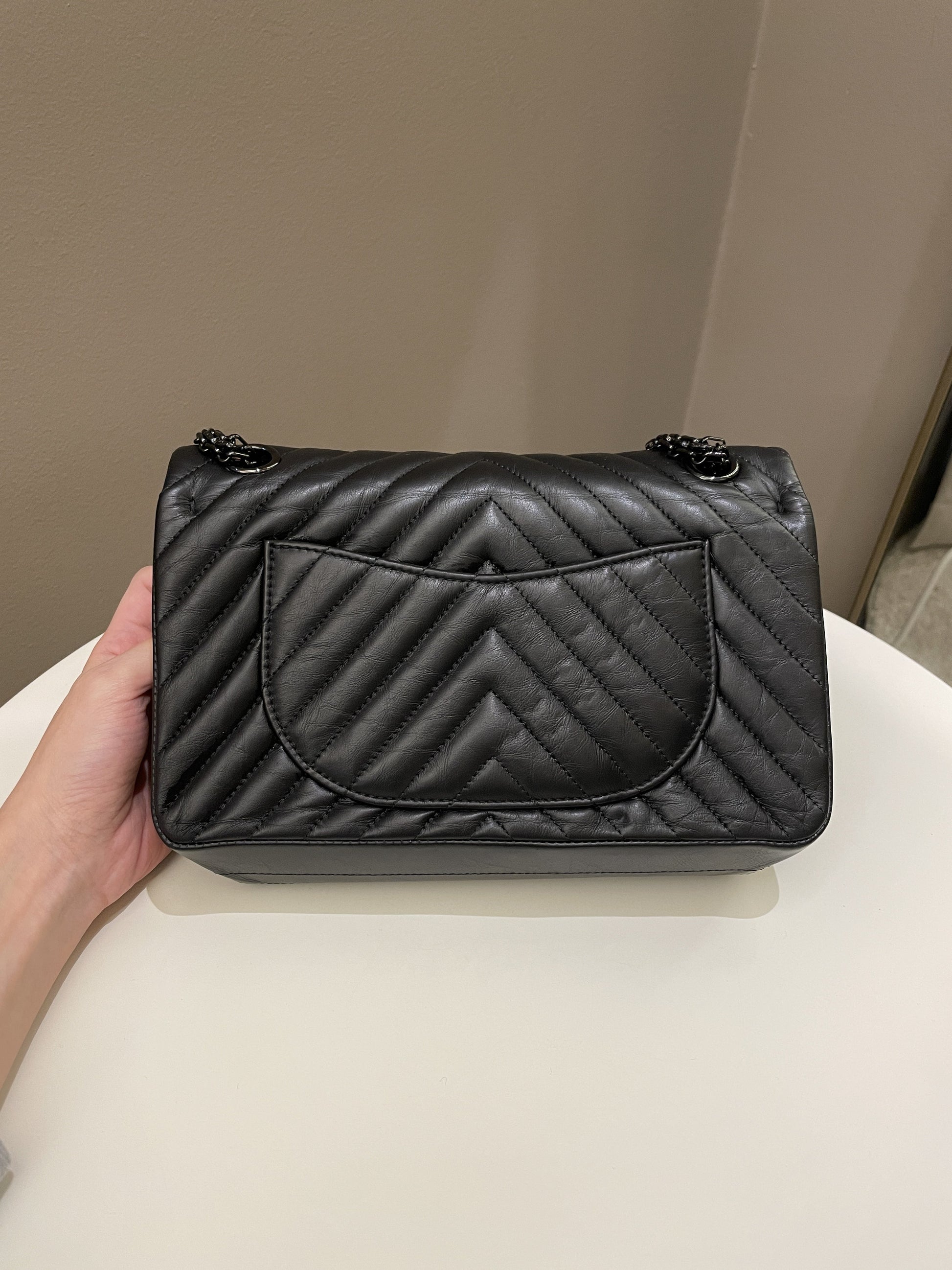 Chanel 2.55 225 So Black Chevron Reissue Double Flap