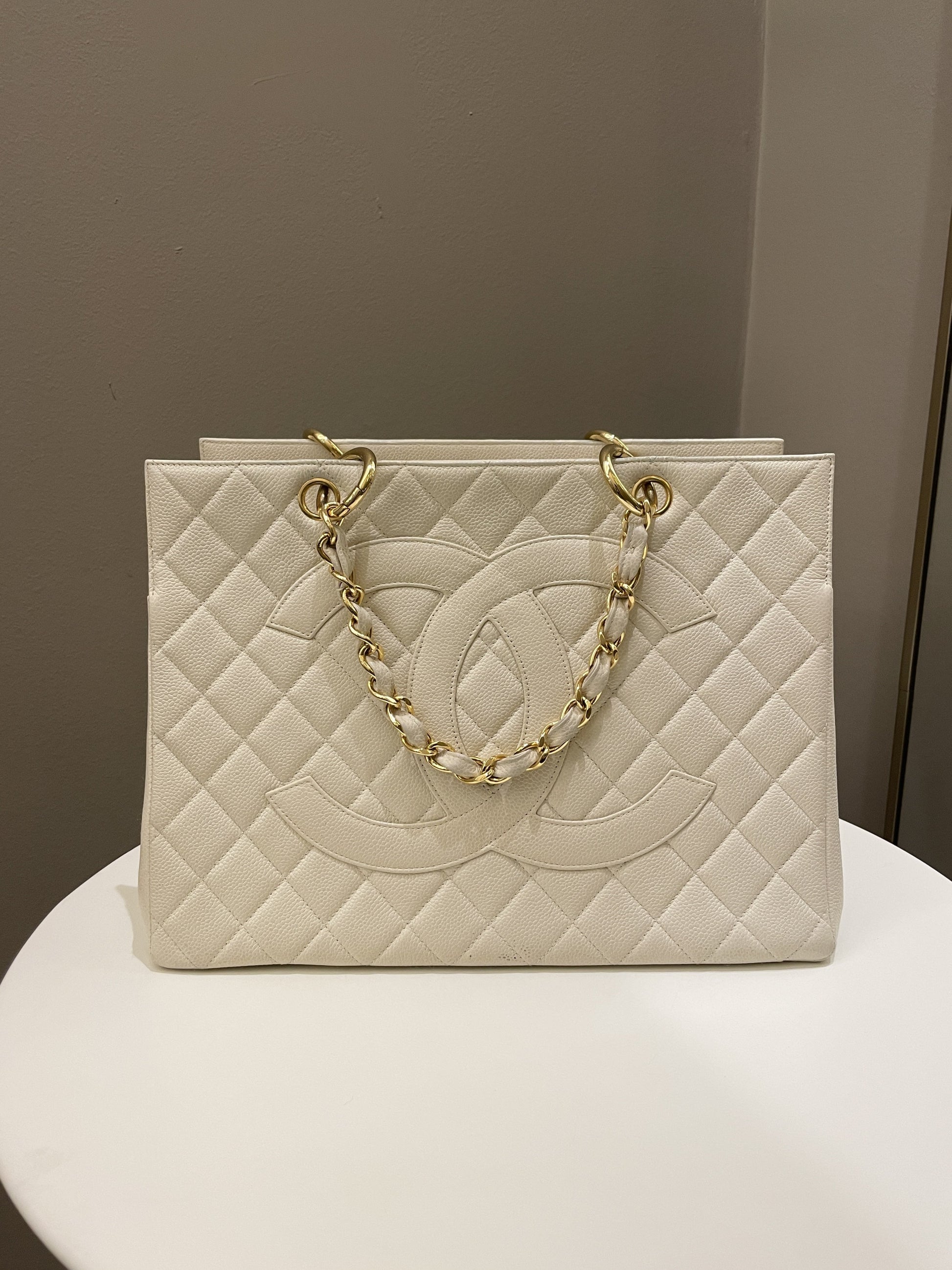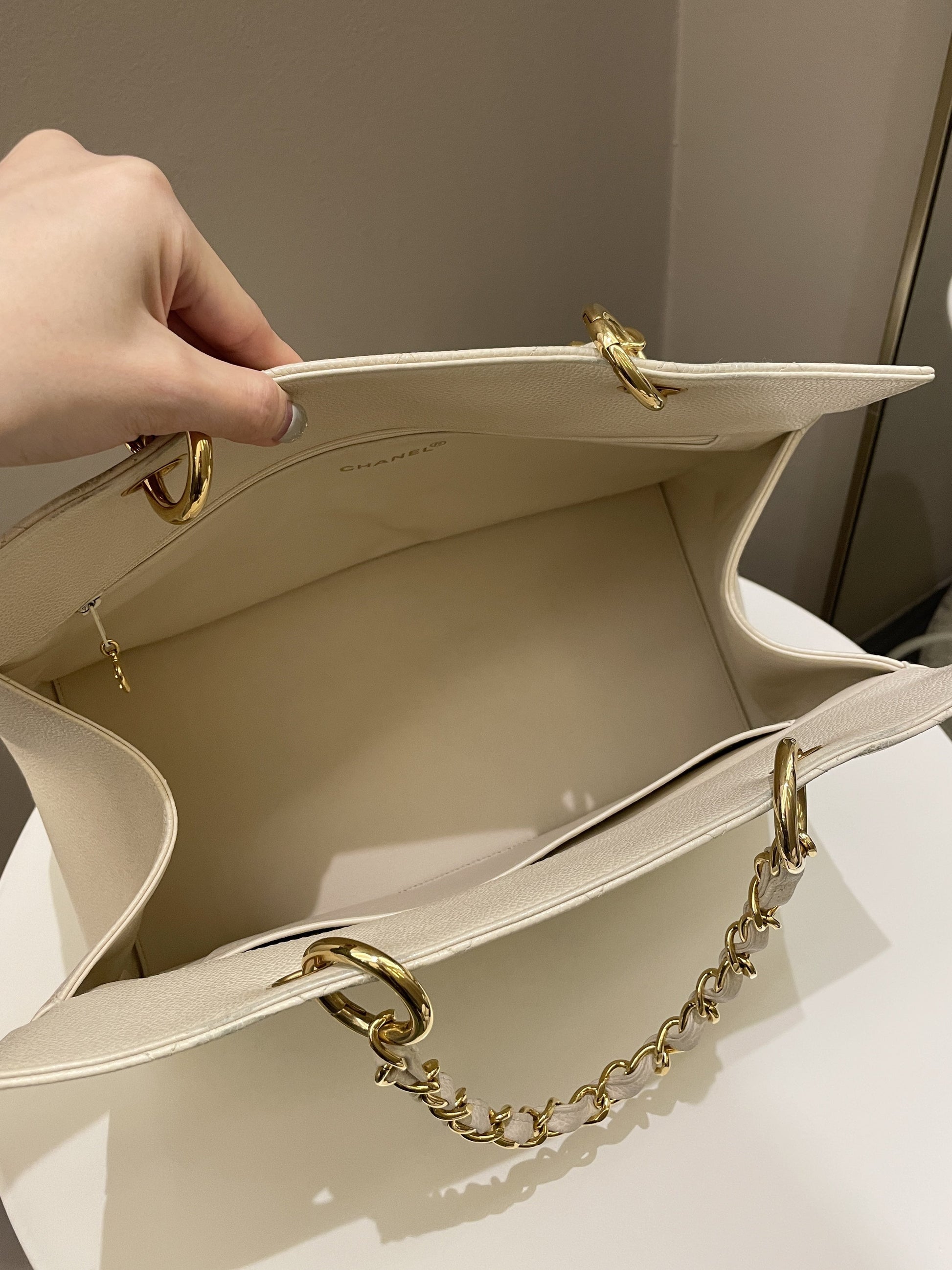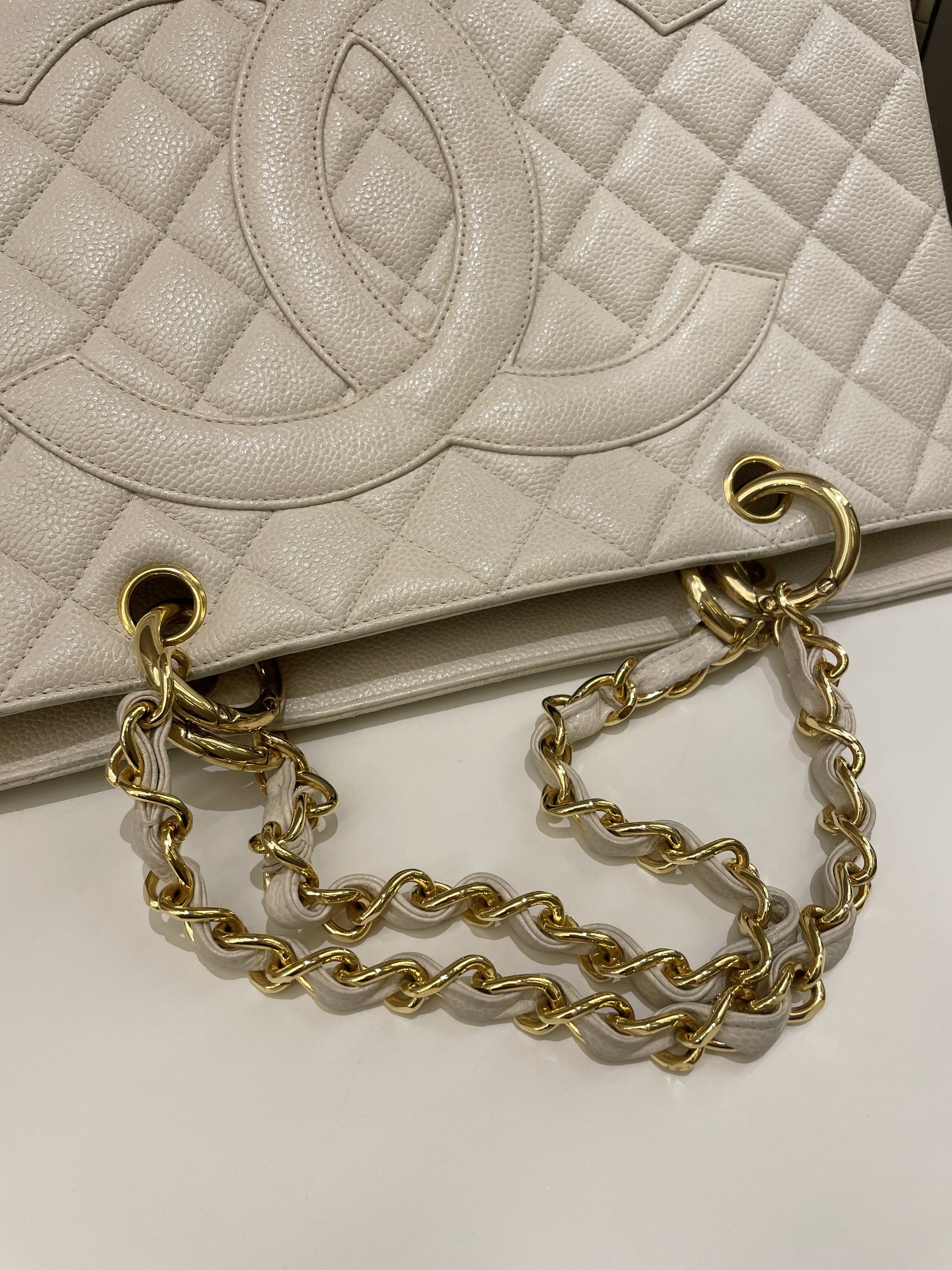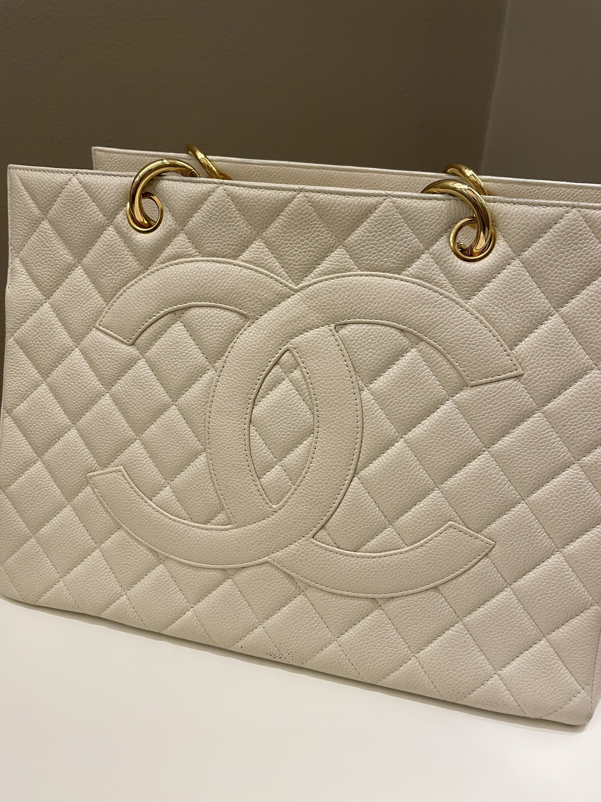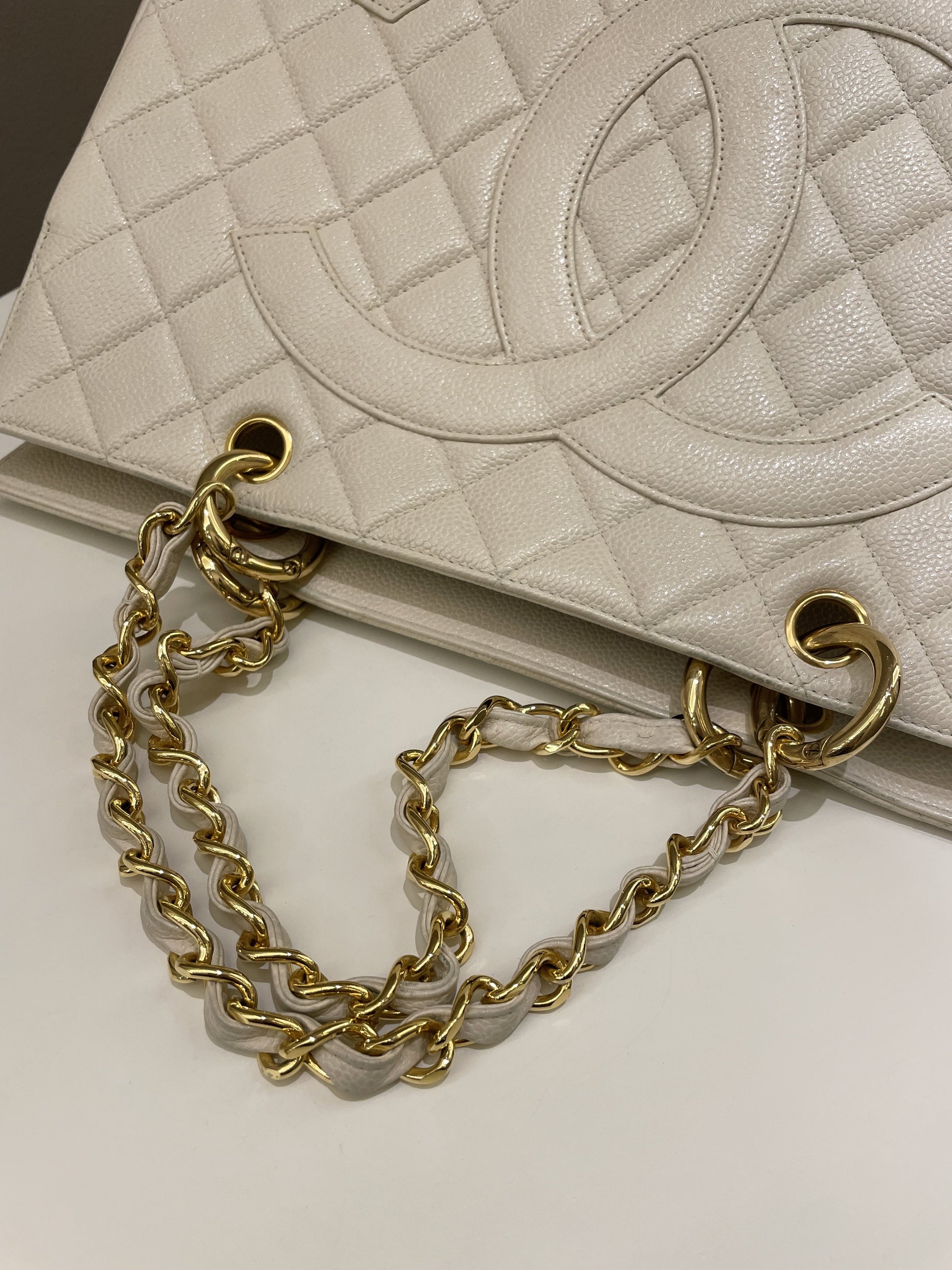 Chanel Vintage Cc Timeless Tote Ivory Cream Caviar